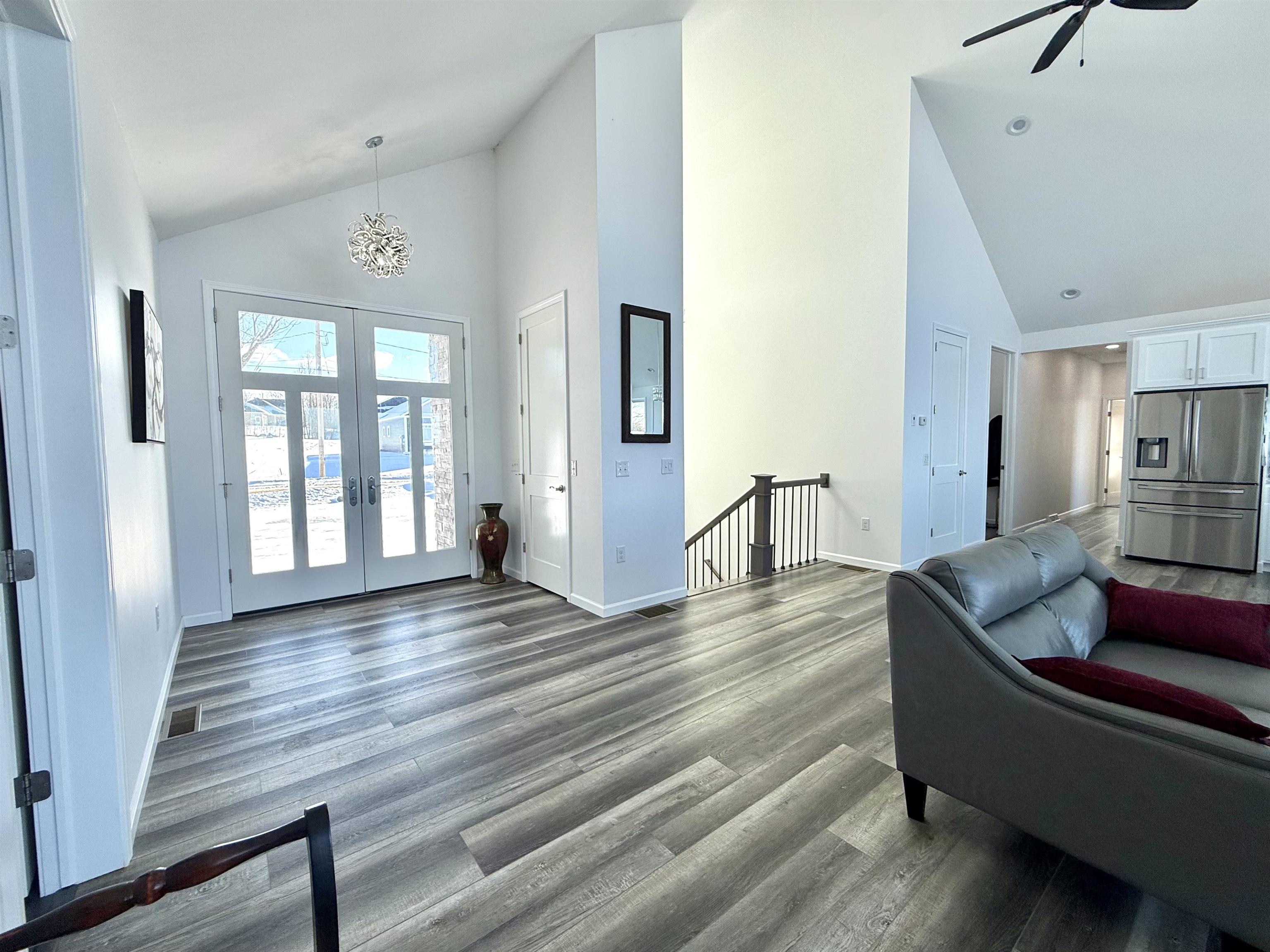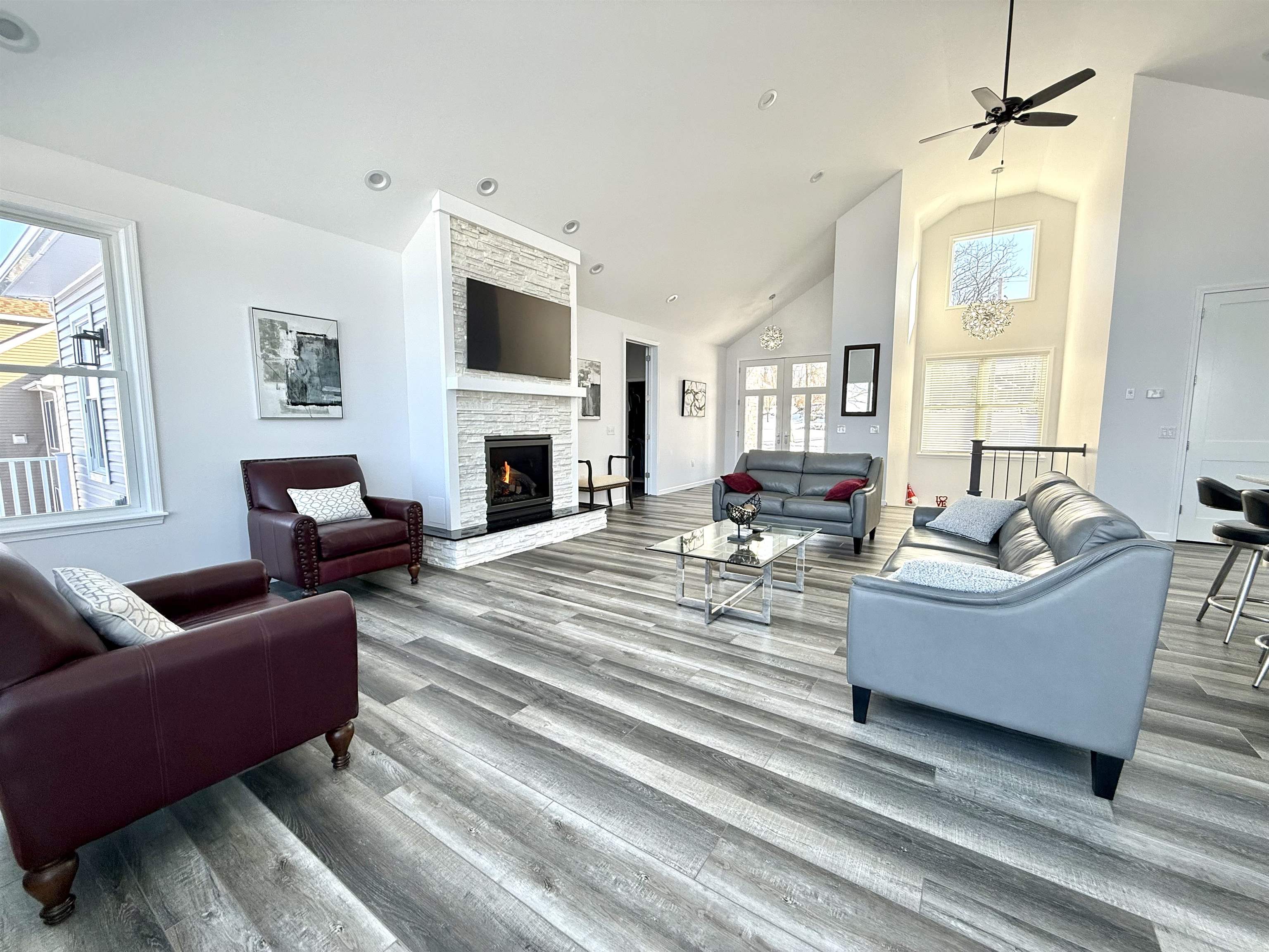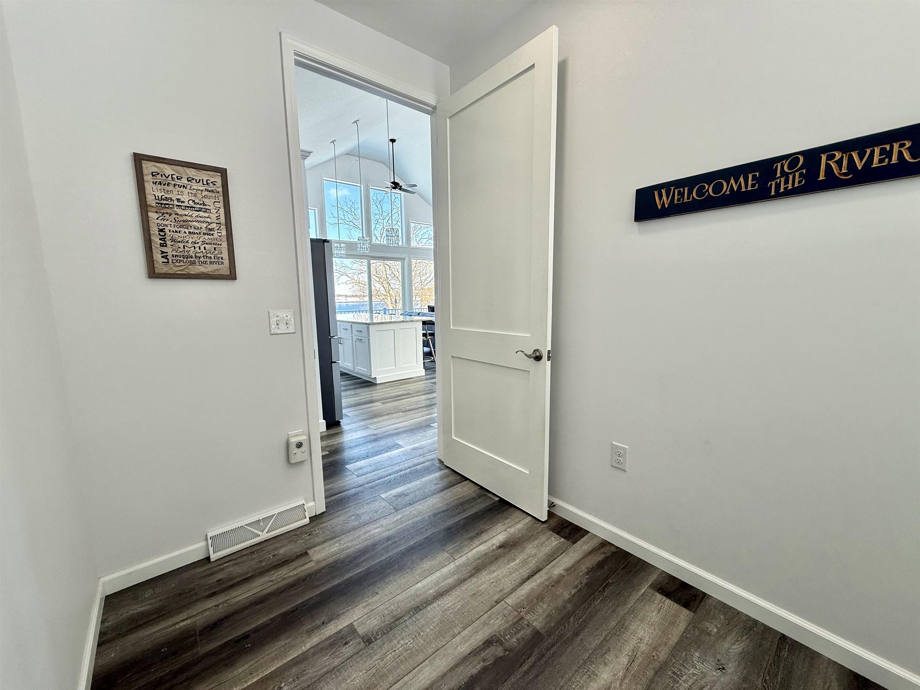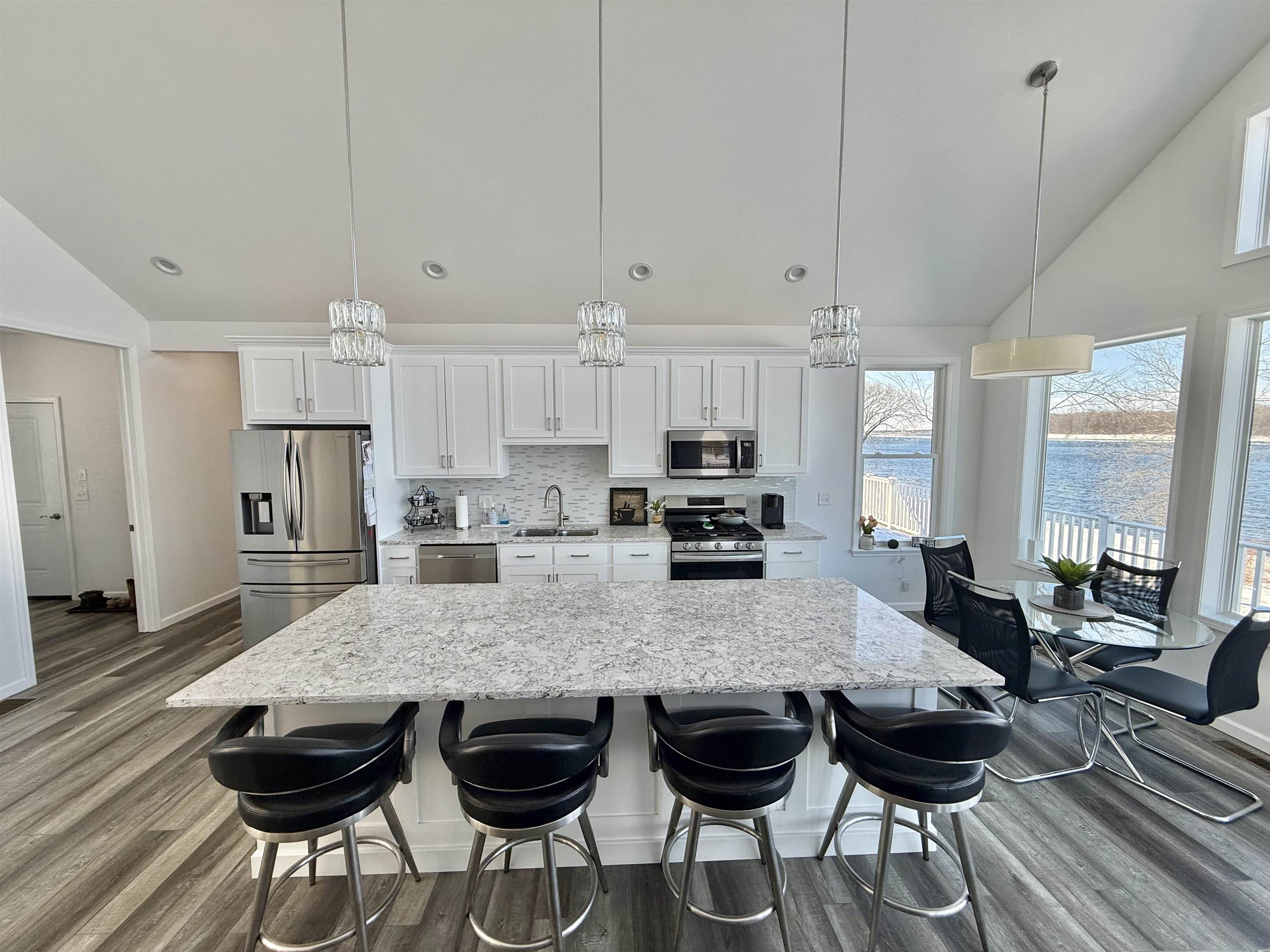 Rare Opportunity– Embrace year-round waterfront living in this exquisite custom-built residence perched along 120 feet of level St. Lawrence River shoreline, in the highly sought-after village of Waddington. Built in 2021, offering 4,300 square feet of quality craftsmanship and thoughtfully designed living space - blending sophistication with comfort, privacy, and timeless style. Step inside through impressive solid wood 10-foot glass doors into an open foyer, setting the tone for refined waterfront living. Here, the open concept layout seamlessly connects the kitchen, dining, and living areas beneath soaring 20-foot cathedral ceilings and expansive floor-to-ceiling windows, framing the breathtaking river views and unparalleled sunsets, filling the home with natural light. Featuring a floor-to-ceiling surround and quartz hearth, the fireplace creates a warm, inviting ambiance. Double glass doors open onto the full-length waterside deck—great for entertaining guests or relaxing by the water. The gourmet kitchen features solid quartz countertops, a spacious island, abundant cabinetry, premium stainless-steel appliances, and a walk-in pantry—perfect for meal preparation and socializing. To the right of the main living area is the primary wing—a private retreat with dual walk-in closets and a spa-inspired en-suite bathroom, complete with a quartz double vanity, and a double-headed shower. Sliding glass doors through the primary bedroom offer direct access to the waterside deck. On the opposite side of the home, two additional bedrooms and a full bath are thoughtfully placed, with each bedroom featuring walk-out glass doors to the deck, ensuring comfort and privacy for family and guests. Completing the main level is a functional mudroom that connects directly to the attached two-car garage, with a conveniently located laundry area. The lower level of the home is designed for both relaxation and productivity. Enjoy a sprawling family and entertainment area with glass doors opening to the stamped concrete waterside patio. One side features a spacious bedroom with river views and a full bathroom, separated by an office nook, while the other side includes an additional bedroom—perfect for guests or hobbies—and an adjacent storage room that can easily serve as a bedroom, both with river views. Additional features include a whole-home generator, central air, water softener, 10-foot interior doors, designer lighting, walk-in closets, recessed lighting, outbuilding for storage, and more. Kitchen appliances and a 30-foot floating dock (with ladder and mooring whips) are included; furnishings and laundry units are negotiable. Located in the charming village of Waddington within walking distance to shops, restaurants, walking trails, and recreational parks with ice skating, pickleball, tennis, and basketball courts, volleyball club, etc. Waddington is famous for hosting the Bassmaster Elite Series, offers world-class carp fishing, and connects to the St. Lawrence snowmobile trail. This home is 20 minutes from the Canadian Bridge to Ottawa, Ogdensburg-Prescott International Airport (with direct flights to DC and Orlando), and Massena International Airport, as well as within an hour of the Adirondack Park and Thousand Islands, and two hours from Lake Placid. Don’t miss this chance to own a remarkable retreat on the St. Lawrence River—schedule your private tour today and experience refined waterfront living.