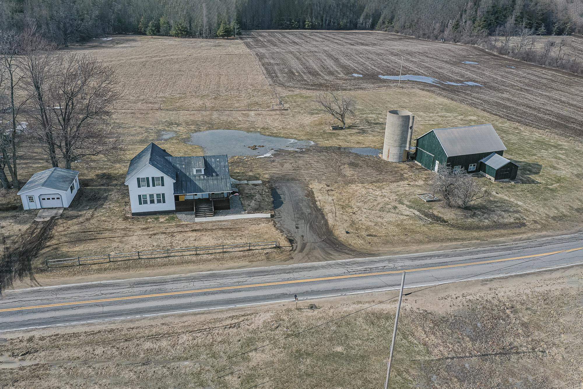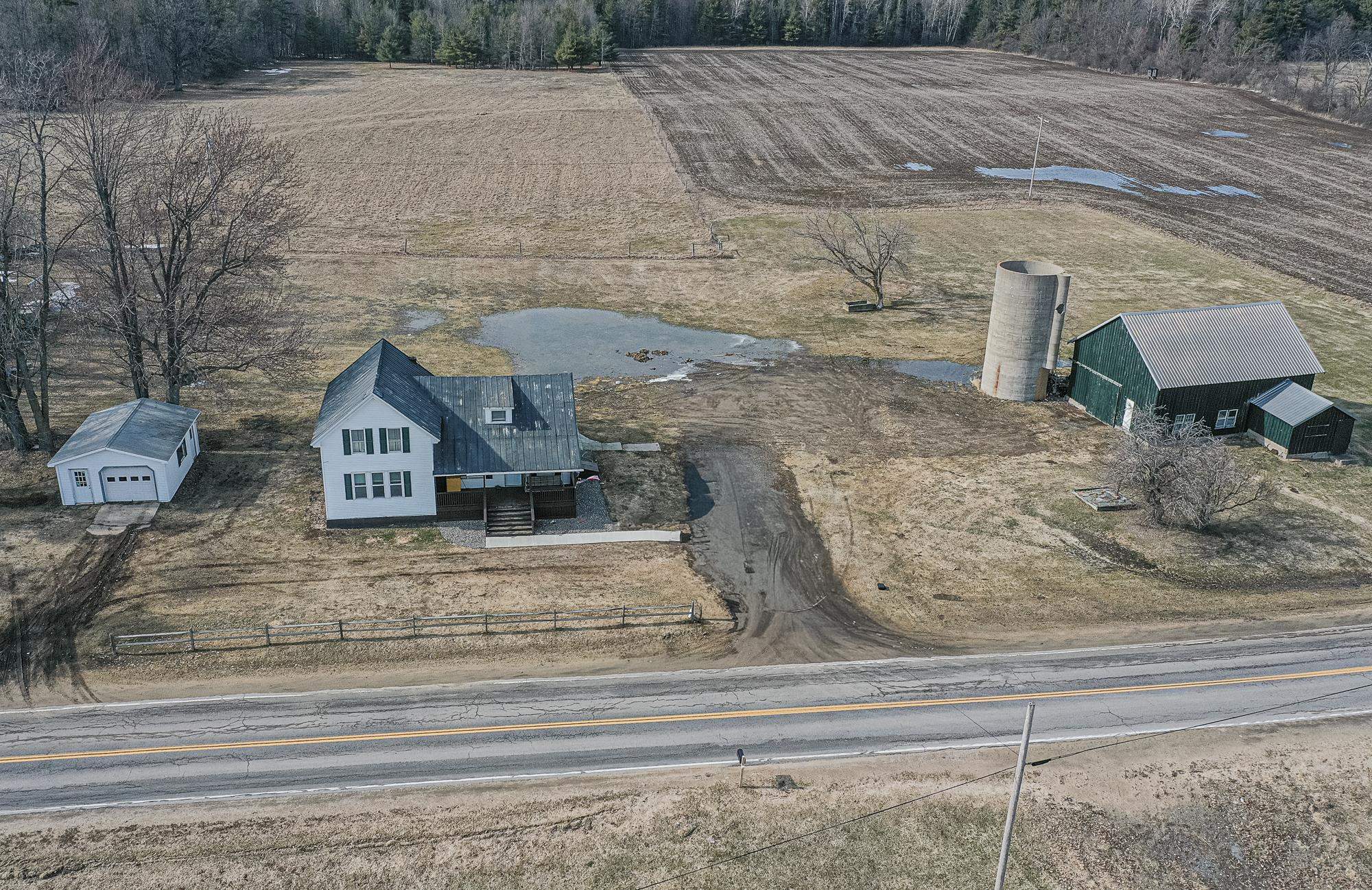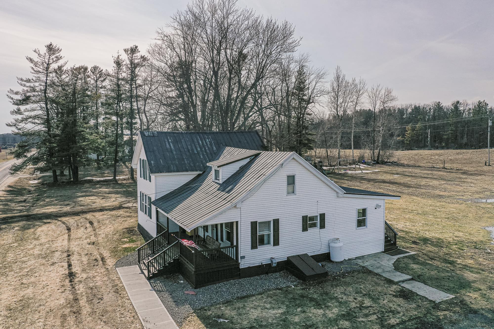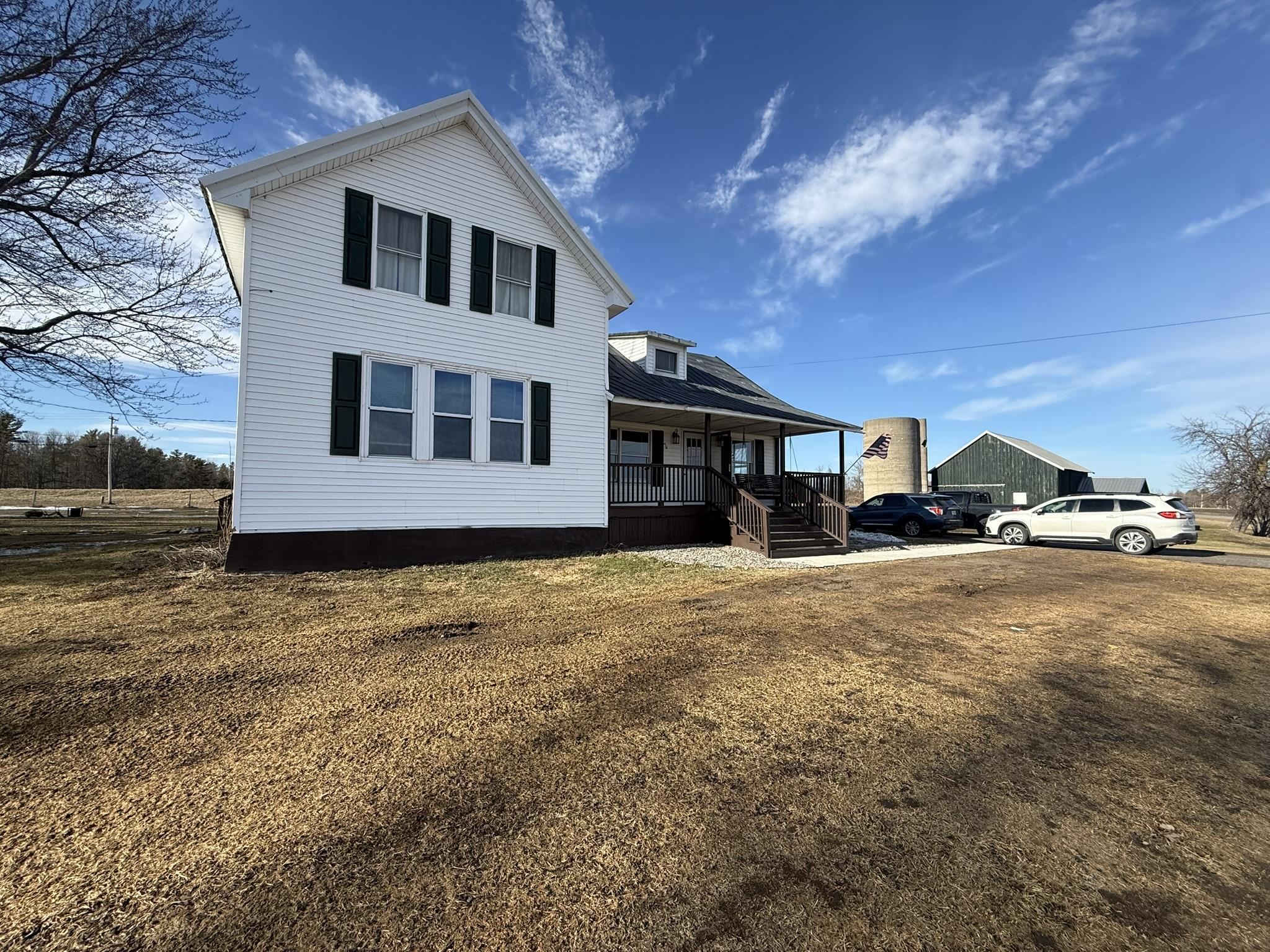 Situated on a beautiful country road, this 2.3-acre property has been tastefully remodeled and is move-in ready! As you walk up the front porch, enjoy the beautiful year-round views of country life. Through the front door, you are greeted with a new entryway, a fully renovated kitchen with an island, stainless steel appliances, plenty of cabinet and counter space! Open to the kitchen is a dining room with plenty of natural light! Just off the dining room is a new addition that is a perfect office, playroom, or could even be a first-floor bedroom. The back mudroom is perfect for dropping coats and boots. The living room is oversized with a beautiful built-in propane fireplace and mantel. The first floor is completed with a full bathroom, including laundry space and storage. Upstairs, you will find three spacious bedrooms, including a large primary with a custom-built-in closet system. There is also a large full bathroom on this level as well. Outside, you will find 2.3 spacious acres with panoramic views of stunning fields. There is a detached garage that is currently a workshop with extra space. The property also includes a full-sized barn currently used for storage. The current owners have invested in full electric baseboard heat but the fuel oil baseboard is also still available so you can choose! Additional updates include, flooring, bathrooms, kitchen, addition, new banister, trim, fill for the yard and more! There is a full list of updates available, ask your REALTOR® for a copy! Schedule your private tour today!