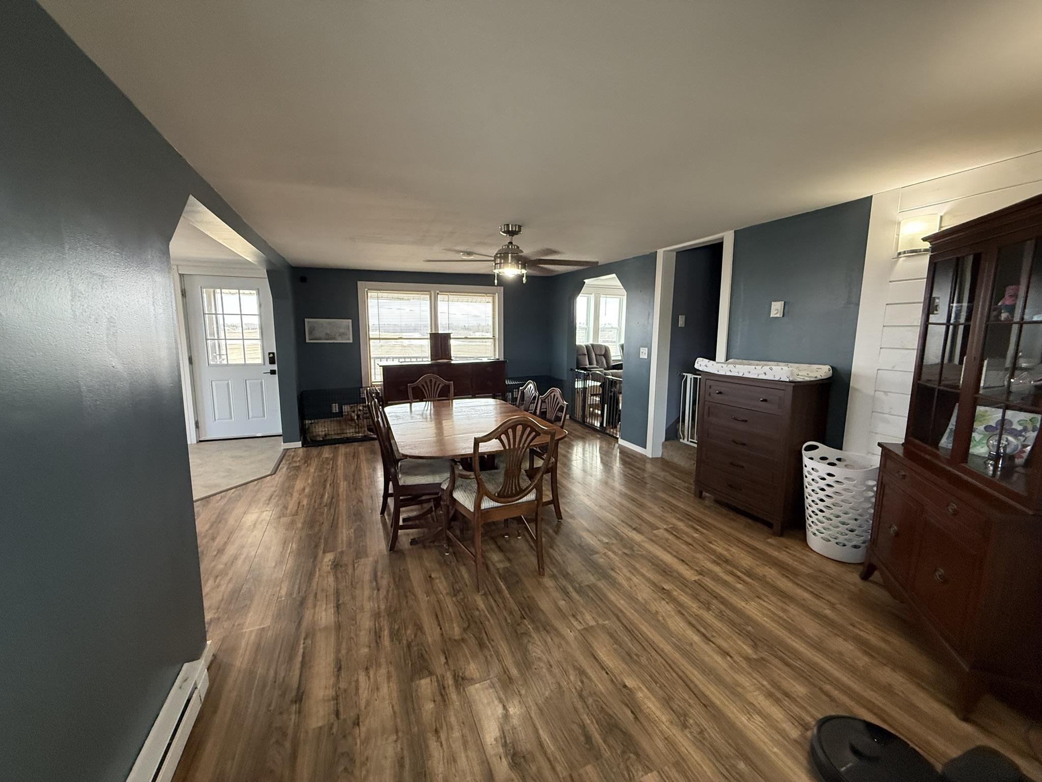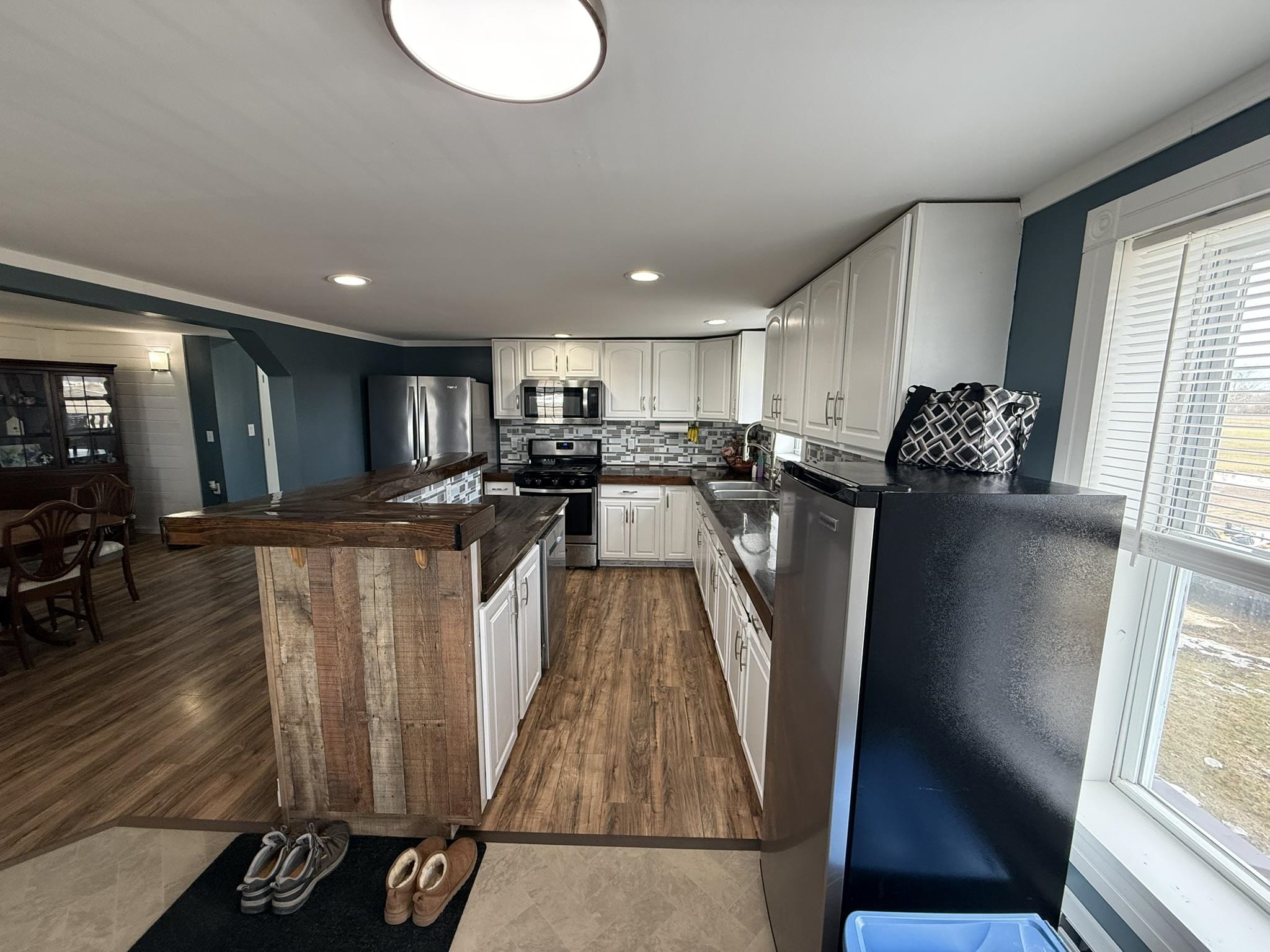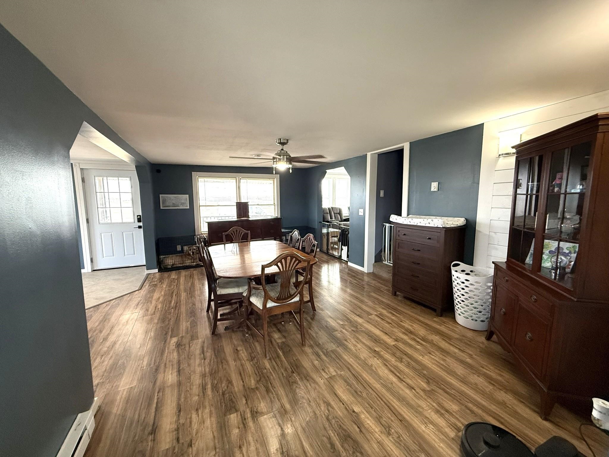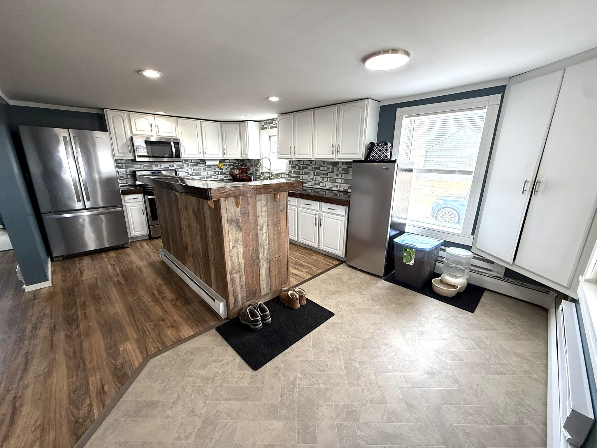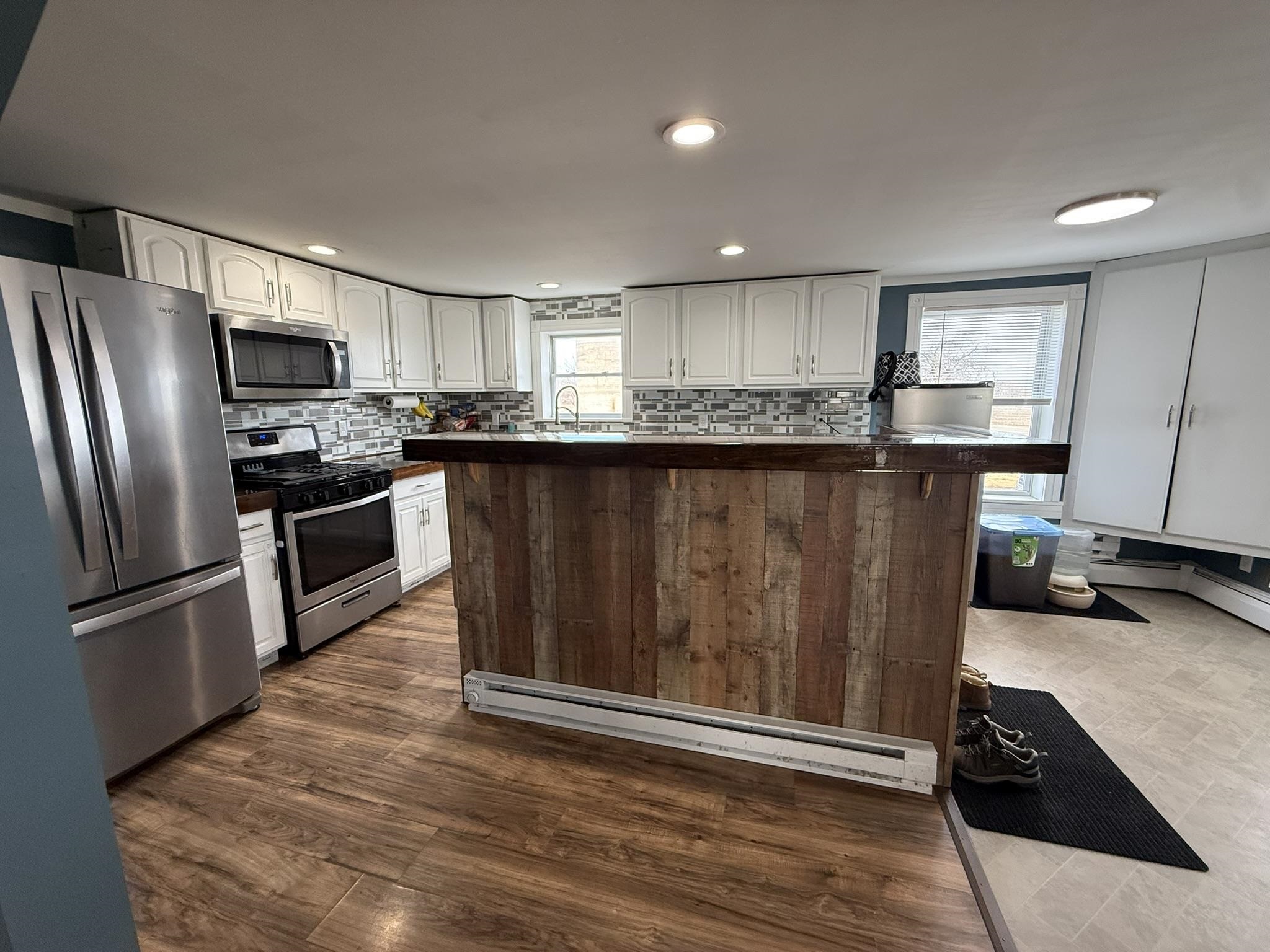 Situated on a beautiful country road, this 2.3-acre property has been tastefully remodeled and is move-in ready! As you walk up the front porch, enjoy the beautiful year-round views of country life. Through the front door, you are greeted with a new entryway, a fully renovated kitchen with an island, stainless steel appliances, plenty of cabinet and counter space! Open to the kitchen is a dining room with plenty of natural light! Just off the dining room is a new addition that is a perfect office, playroom, or could even be a first-floor bedroom. The back mudroom is perfect for dropping coats and boots. The living room is oversized with a beautiful built-in propane fireplace and mantel. The first floor is completed with a full bathroom, including laundry space and storage. Upstairs, you will find three spacious bedrooms, including a large primary with a custom-built-in closet system. There is also a large full bathroom on this level as well. Outside, you will find 2.3 spacious acres with panoramic views of stunning fields. There is a detached garage that is currently a workshop with extra space. The property also includes a full-sized barn currently used for storage. The current owners have invested in full electric baseboard heat but the fuel oil baseboard is also still available so you can choose! Additional updates include, flooring, bathrooms, kitchen, addition, new banister, trim, fill for the yard and more! There is a full list of updates available, ask your REALTOR® for a copy! Schedule your private tour today!