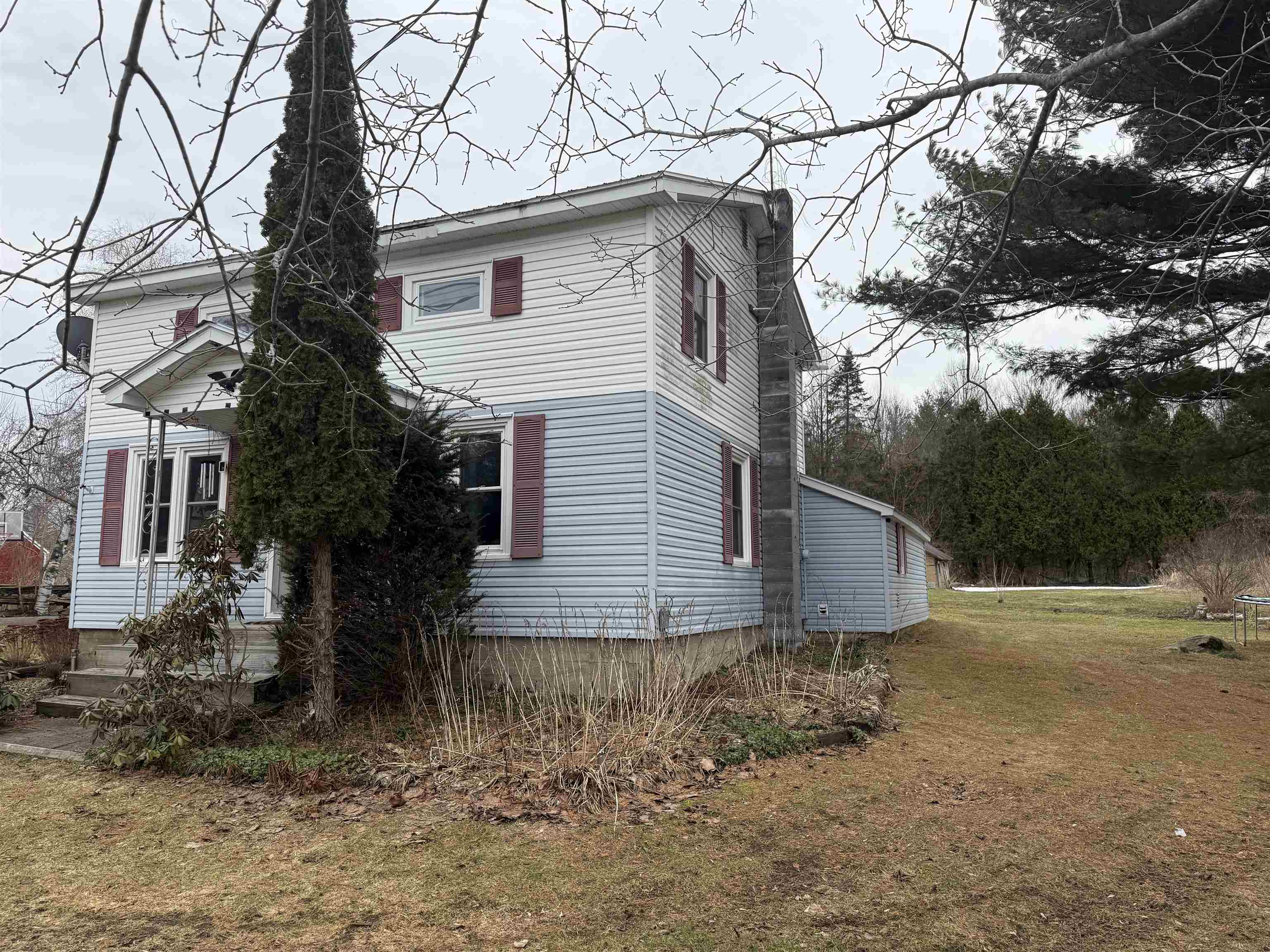 Are looking for an affordable, move-in ready, 4-bedroom, 1 1/2-bathroom home with over 1,500 square feet of well-appointed living space with an attached, insulated garage and paved driveway, high speed internet, equal distance to Malone and Massena, NY in a peaceful country setting?? Well...read on...From the driveway or attached garage you enter to a mudroom with an adjacent office space and laundry area that leads to a good-sized storage area, from there you you'll be led to the kitchen which offers attractive, painted wood cabinets, good counter space, attractive backsplash, laminate wood flooring and appliances that will convey. Off the kitchen there is a first floor main, full bathroom. The kitchen is open to the living room with plenty of space for your family to relax. Off the living room there is a generously sized bedroom. (Current living room was formerly the dining room and 1st floor bedroom was the living room and can staged as such again, but sellers needed 4 bedrooms). The stairs lead you to 3 more generously sized bedrooms and a half bathroom. Outside you'll find a nice yard with mature trees, perennials, flowering crab tree, a ground level back deck with privacy fence, covered front porch and storage barn with chicken coup. For affordable county living in the Salmon River school district this property is spot-on, call right away to come see it for yourself.