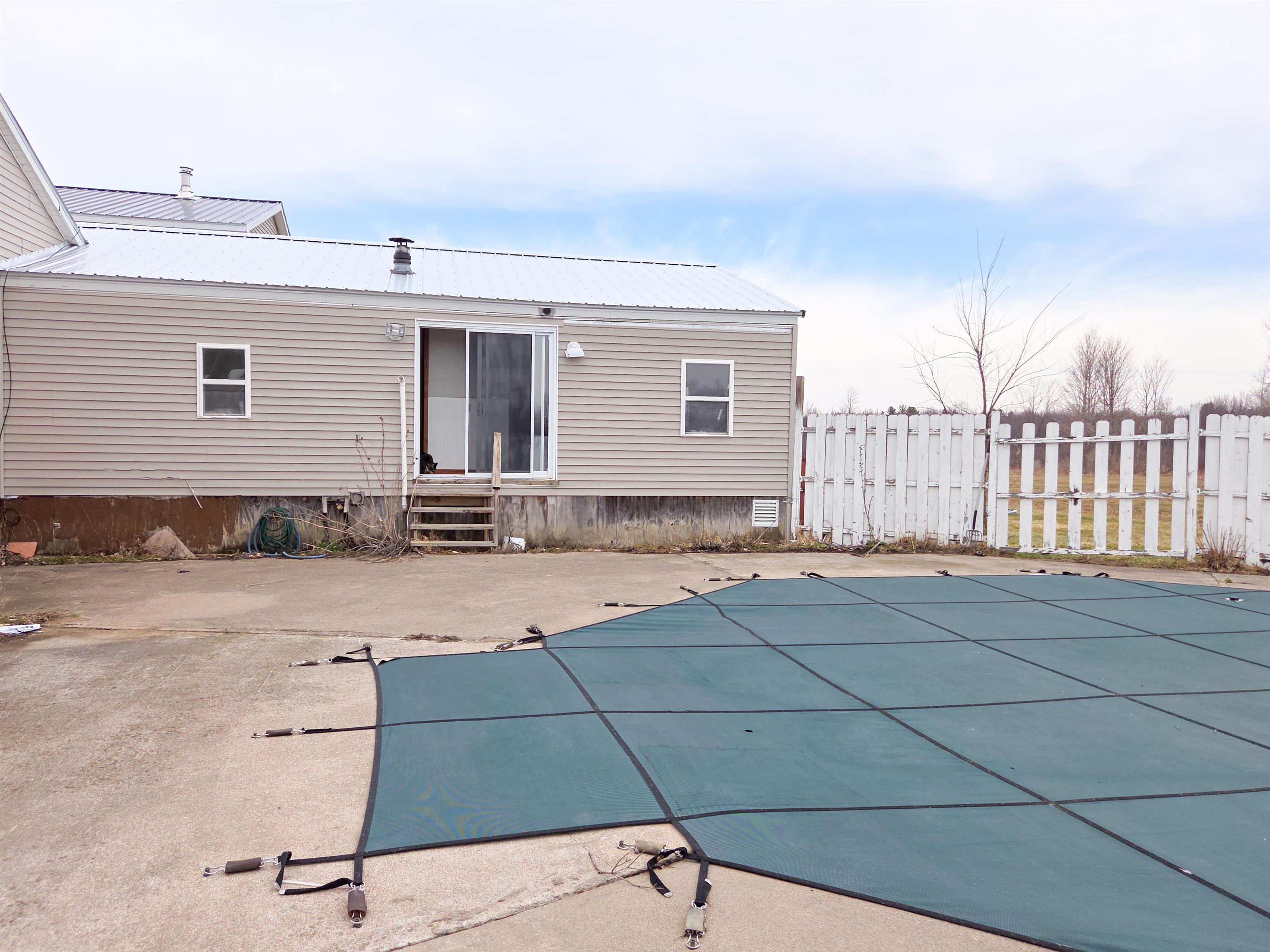 Versatile 3-4 Bedroom, 1 bathroom Home on 4.4 Acres with Multiple Income & Lifestyle Opportunities! Originally a 1971 single-wide mobile home, this property has been thoughtfully expanded over the years into a spacious 1,600 sq ft residence offering comfort, flexibility, and room to grow. The home features 4 bedrooms and a functional layout, perfect for everyday living or as the centerpiece of a larger investment opportunity. Step outside and enjoy your own private retreat with an octagon-shaped in-ground pool, fully enclosed within a fenced area—ideal for relaxing or entertaining during warmer months. This unique property truly sets itself apart with its extensive additional structures and amenities. A fully insulated 2-car garage with impressive 10-foot ceilings includes a hot tub and offers ample space for vehicles, hobbies, or workshop use. Above the garage, you’ll find a 800 square ft 1-bedroom, 1-bath accessory apartment—perfect for guests, rental income, or multi-generational living. For those seeking workspace or storage, the 70’ x 35’ Quonset building provides incredible versatility. The front half is spray foam insulated, while the rear is traditionally insulated, and the entire structure is heated by a fuel-run forced hot air furnace. It has 16ft garage door that will fit the largest vehicles through and it it also includes a large air compressor and a composting toilet, making it well-suited for a variety of commercial, agricultural, or hobby uses. Toward the back of the property sits a former milk house, now ready to be reimagined to suit your needs. Complete with its own drilled well and septic system, this structure offers even more potential for expansion or income. An additional uninsulated Quonset building, previously used for livestock, adds further utility. With 3.2 acres, two drilled wells, two septic systems, and a whole-property generator capable of powering every building, this property is well-equipped for both residential living and entrepreneurial ventures. Whether you envision a private homestead, multi-unit income property, or a live-work setup, the possibilities here are truly endless.