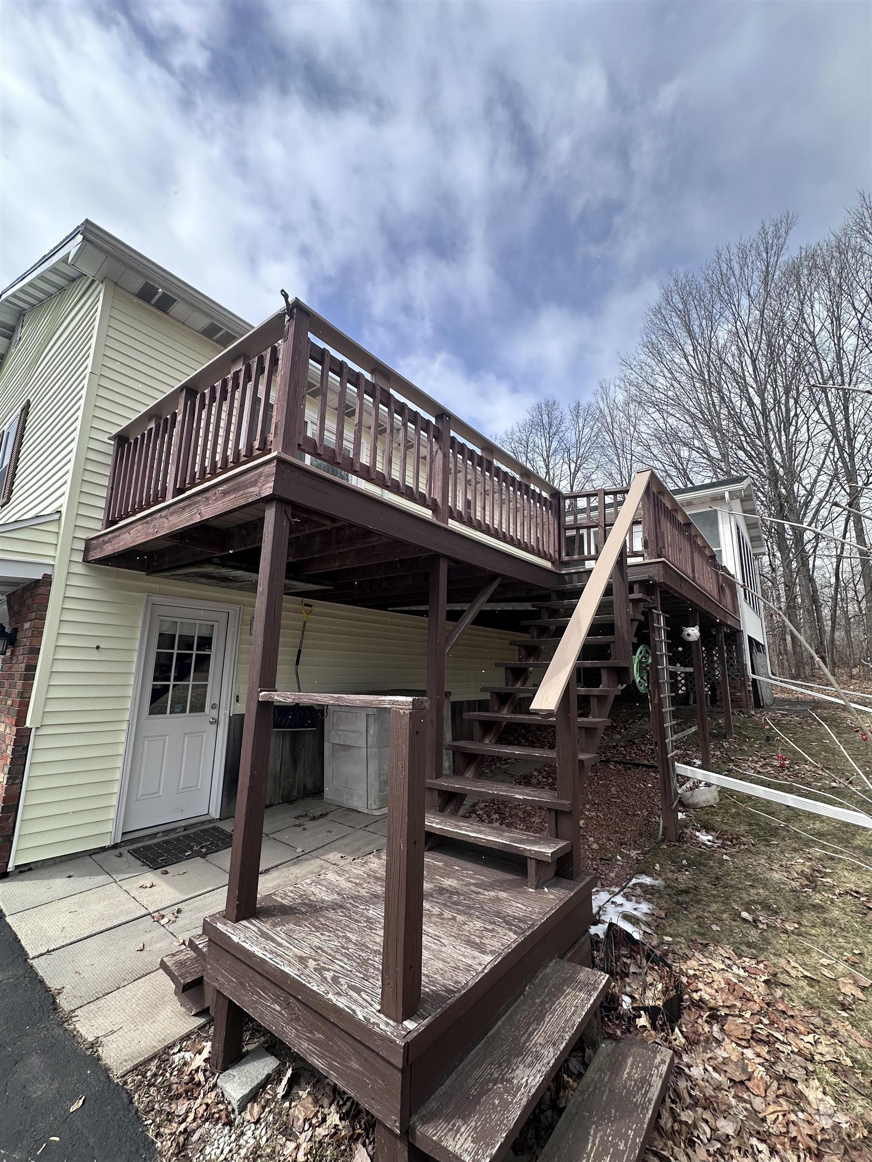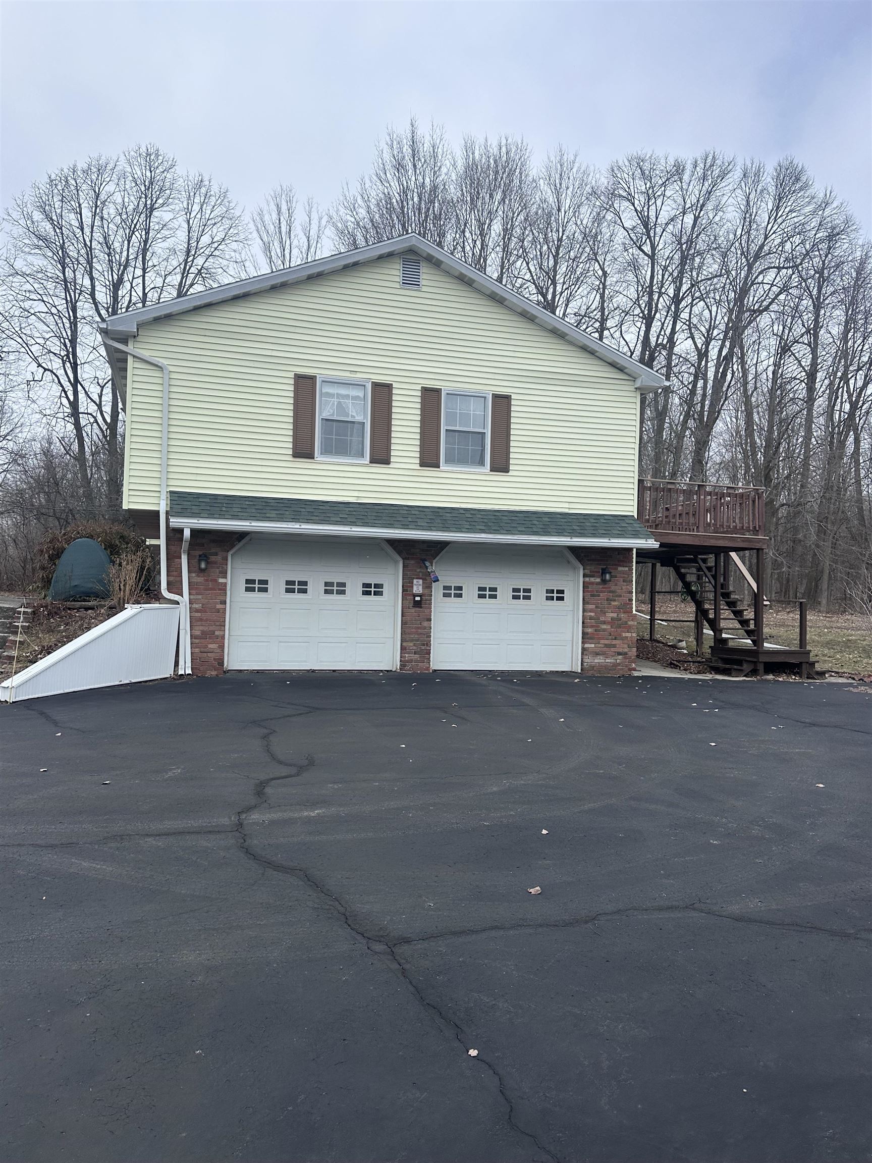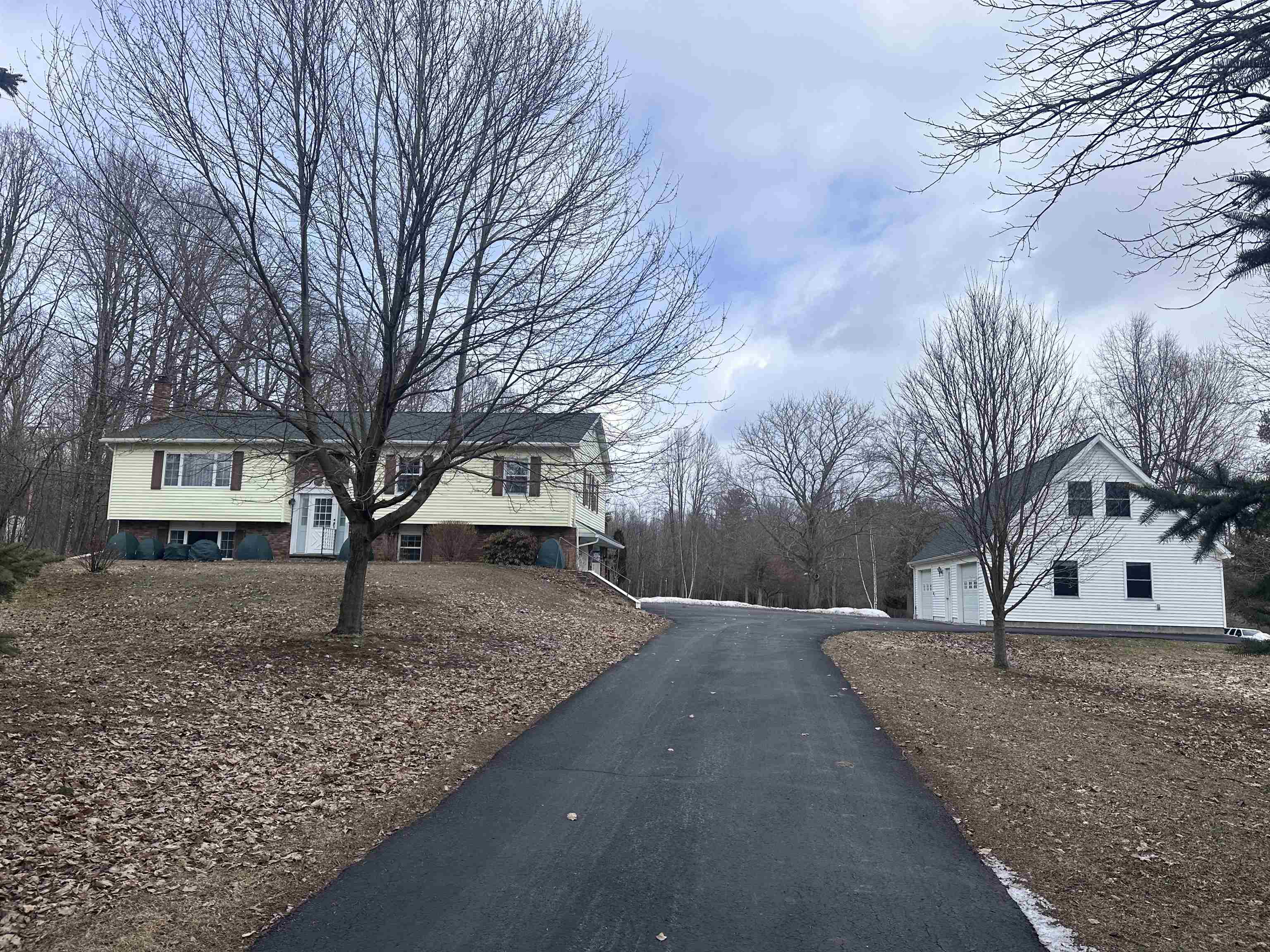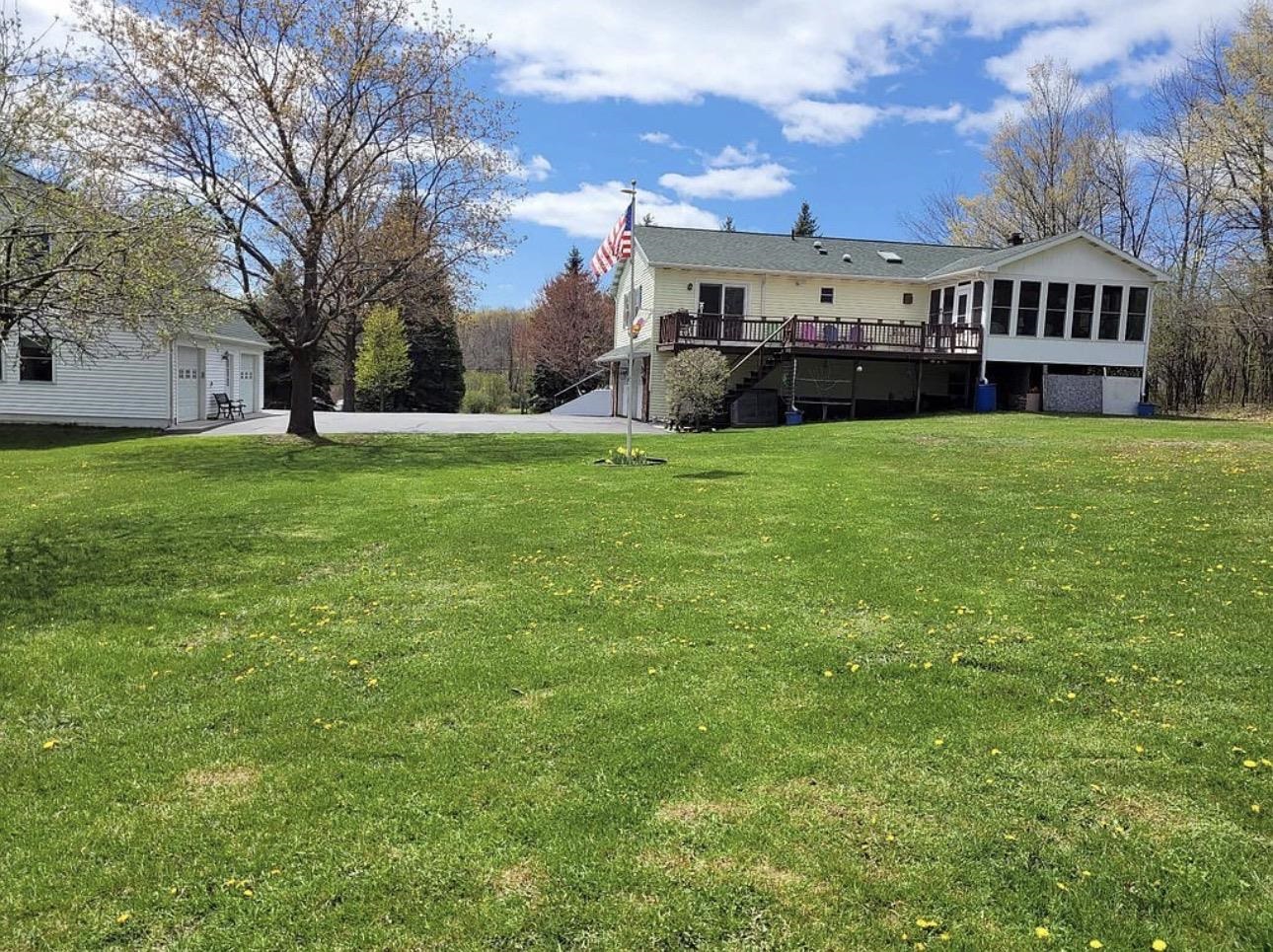 Situated on 2.8 acres is this well maintained raised ranch in the town of Massena. The lot is surrounded by trees making for wonderful privacy. There are also apple, pear, crab, red maple, and harlequin trees in this park like yard. You enter the home through the large 2 stall attached garage that has water access, window shades, and utility room. From there enter into a large family room with slate entry floors, and a wood stove that was professionally cleaned in 2025. There is a half bath for convenience, as well as a laundry room with washer, utility sink, and an extra refrigerator that conveys. This is an extra 600 Sq ft of living space! As you head upstairs to the main level of the home you will find the large living room with built in shelves and storage with large windows for natural light. The dining area is off this room and leads into the large kitchen. It has cherry cabinets, double sinks, and all appliances convey. There are bar stools for added eating space. Off the dining area is a three season sunroom built in 2013, with screens, and yard exits to enjoy the beautiful summers. This opens to a balcony deck with composite decking for added outdoor enjoyment. The home has three bedrooms with closets, and another full semi updated bathroom with tub. The main bedroom boasts an updated en-suite and sliding doors leading to the deck! Outside you find another 24''by 36'' 2 story 2/3 stall garage workshop built in 2000, that is heated and has an additional 100 amp subpanel. The upstairs has so many opportunities to create any kind of space you need. There is a storage shed that will convey as well. With many newer updates including roof in 2017, shop roof in 2018, and shed roof in 2021. Well pump with new wiring in 2024, and a lengthy paved driveway. This home is in the Massena School district and is close to all the village amenities, as well as being 1 mile from the boat launch to enjoy the St. Lawrence River! Call an agent for a tour!