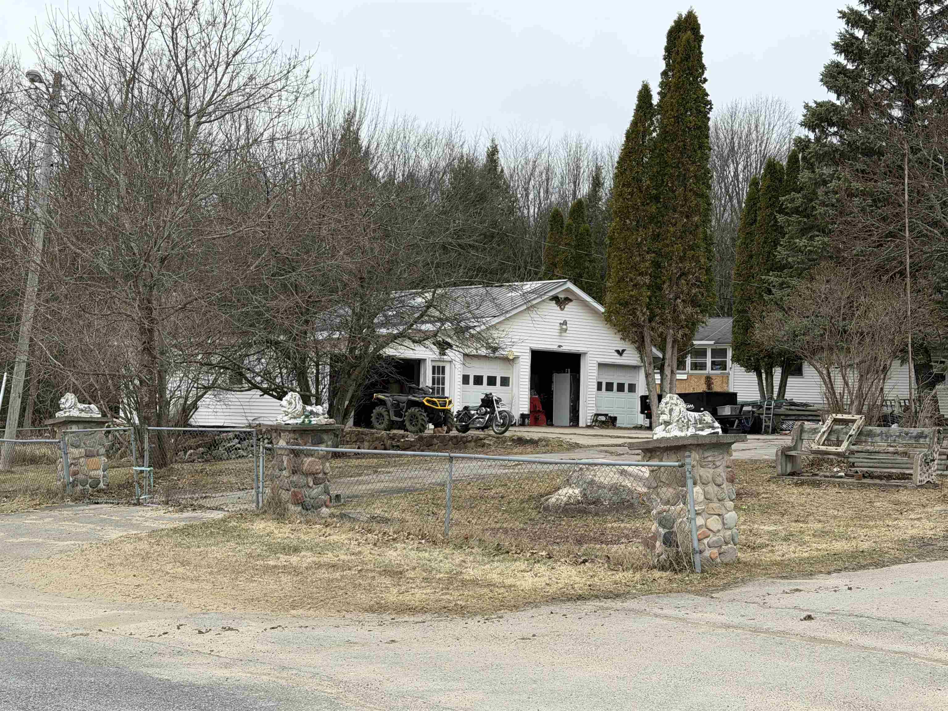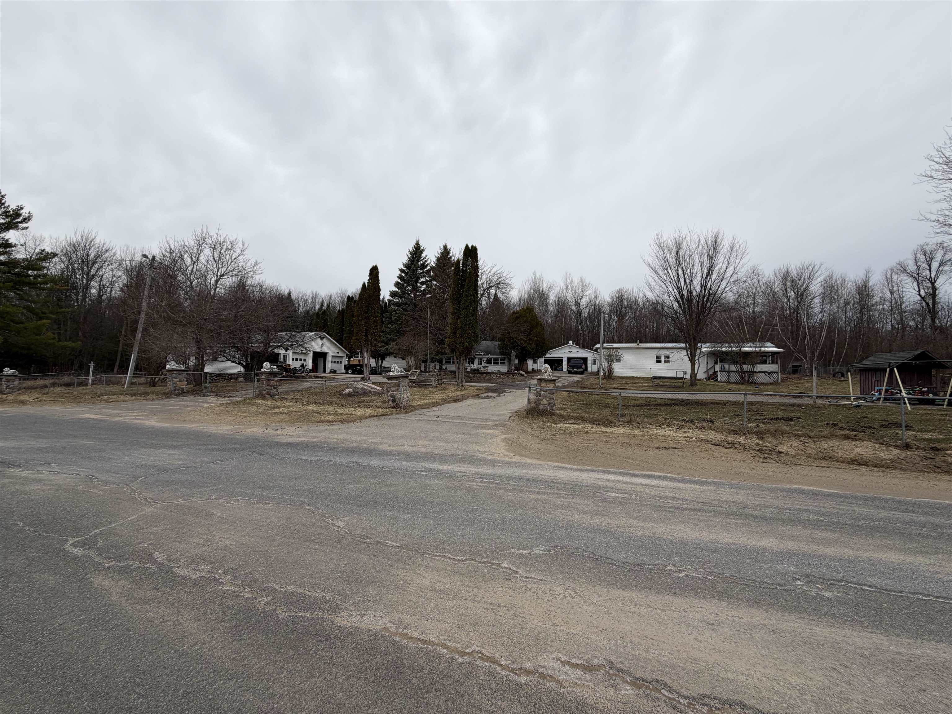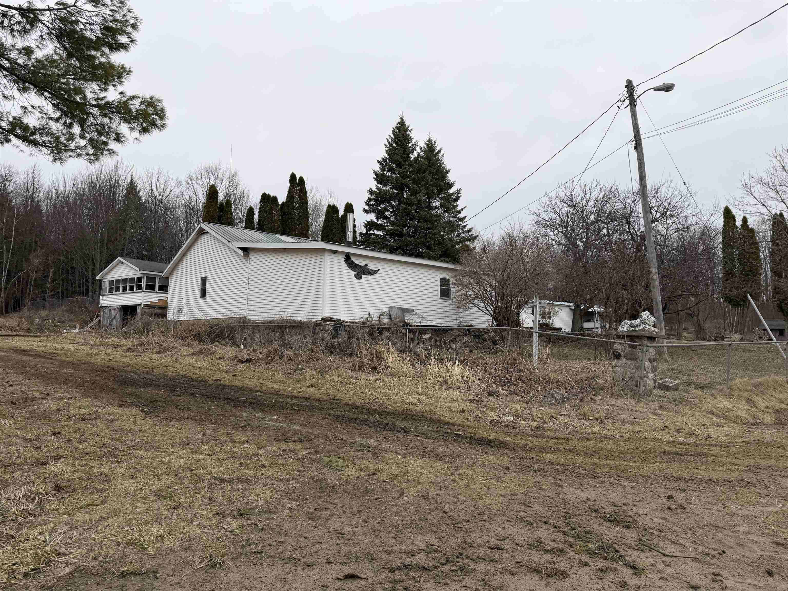 One story ranch in rural setting with single wide home all set up. There is a third pad where there used to be a third home set up on this property as well. Plenty of garage space here for many options for workspace, winter storage, entertainment or whatever you may need. Fenced yard for convenience. The adjacent property is also for sale separately by the same owner which consist of another single wide home.