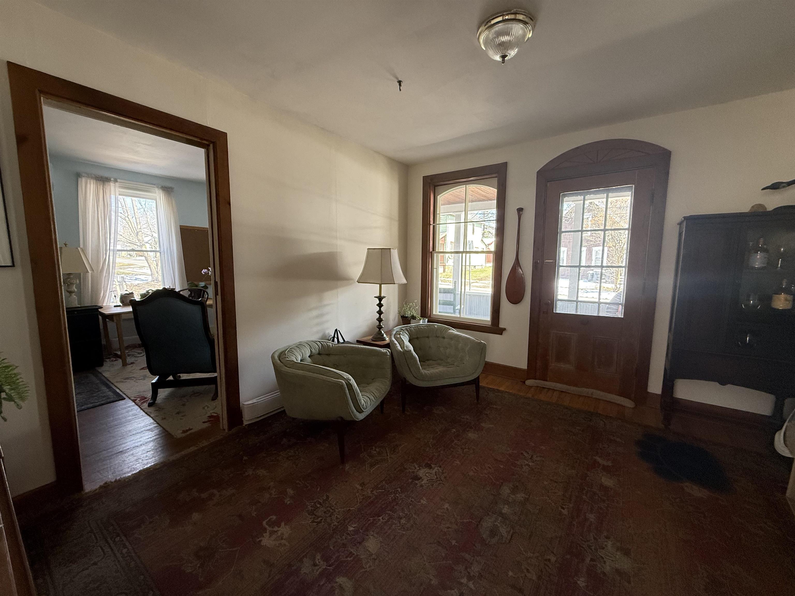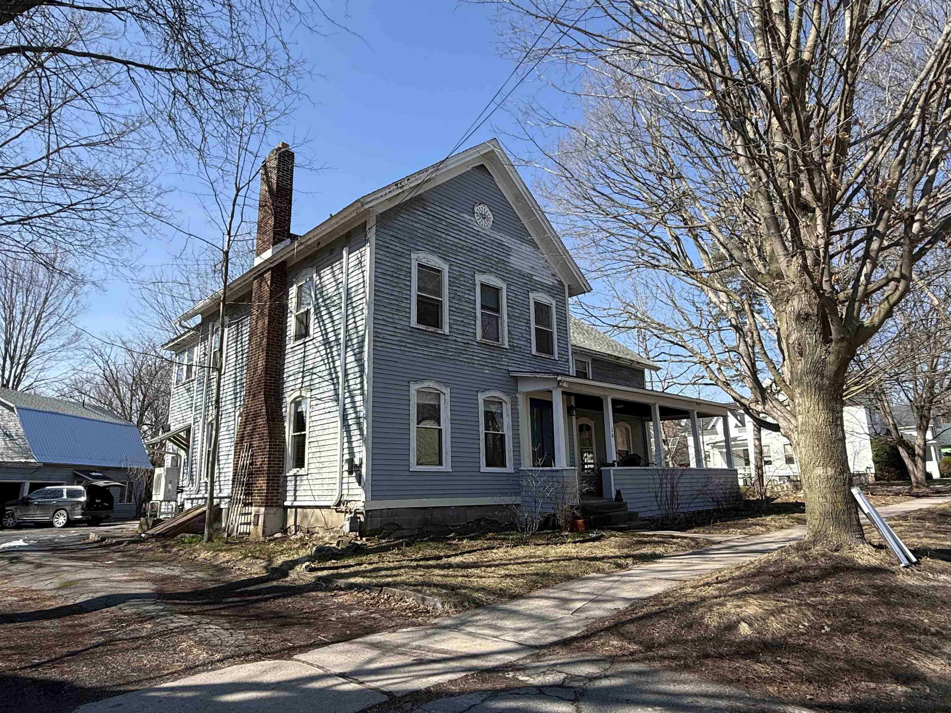 Don't be fooled...the exterior of this 1850's village home needs painting, but inside you’ll find its loaded with space and charm. Situated on nearly an acre this home features 5 bedrooms, 2 baths, eat-in kitchen, formal dining room, living room with fireplace, formal dining room and laundry room. There are beautiful hardwood floors throughout most of the home. A detached 2-car garage includes a workshop and a one-bedroom apartment with its own patio—ideal for guests, rental income to off set your mortgage. The apartment is comprised of an open kitchen and living area, bedroom, bath and laundry room. Outside, enjoy a beautiful yard filled with established perennials and 19 varieties of mature trees, offering privacy and a park-like setting. Located in the village and close to schools, this property offers the perfect blend of space, charm, and investment opportunity.