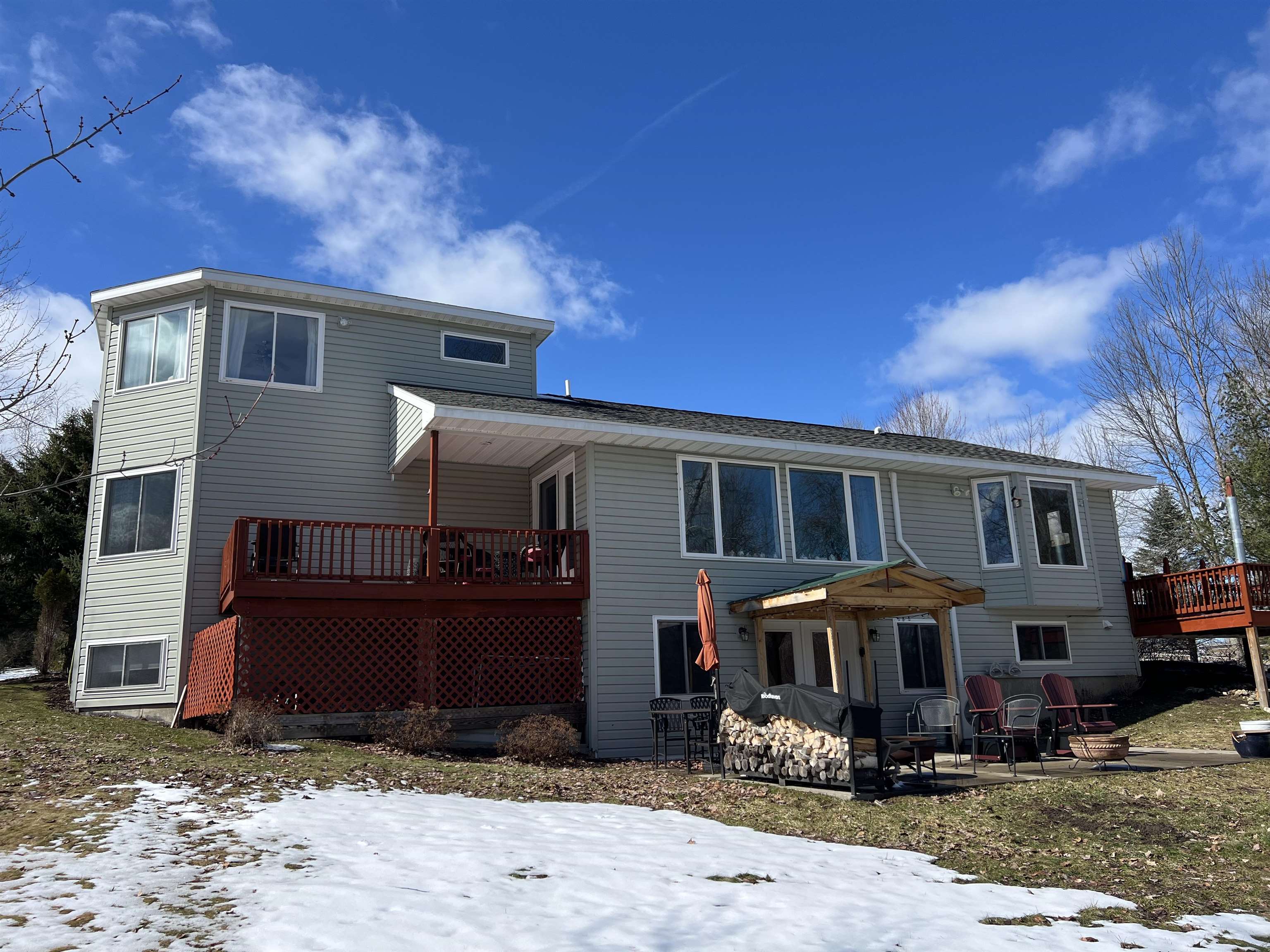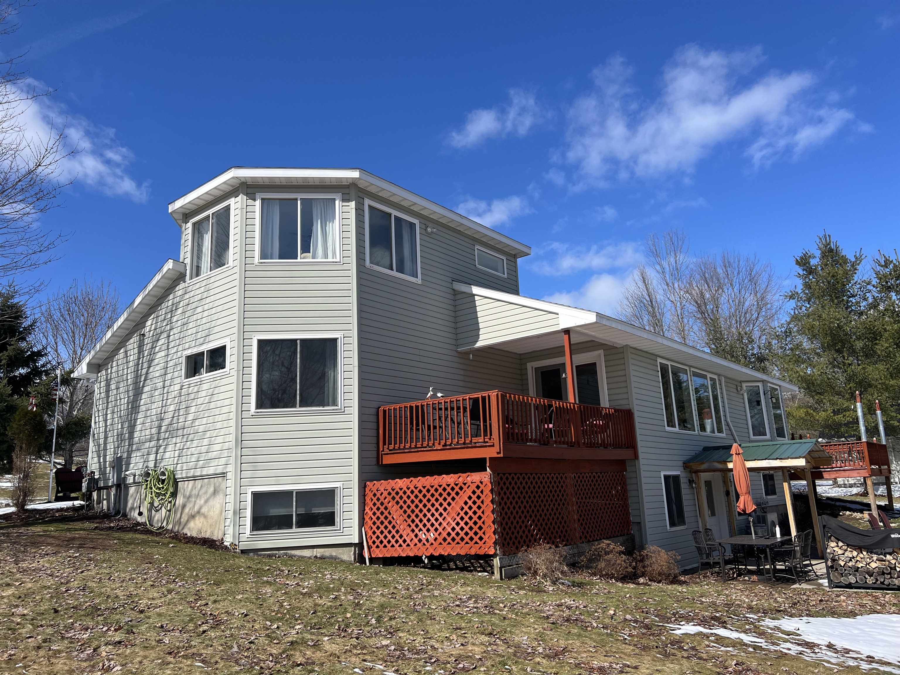 A rare opportunity to own a custom-built waterfront contemporary home on 2.56 acres of land, thoughtfully designed and constructed exclusively for the owners, nestled on a quiet cul-de-sac in Louisville, New York. This unique property offers the ease of one level living, complimented by a fully finished lower level featuring complete living quarters-ideal for guests, extended family, or private retreat space. The walk-out basement opens to an expansive, scenic lot that gently borders the beautiful Grasse River, providing serene water views and a peaceful natural setting. There are 2 bedrooms on main level with a master suite and a bedroom in the basement with full bathroom and kitchen. Total of three full bathrooms and two separate laundry rooms. There is a room on the second level which is ideal as an Artist studio or 4th bedroom. There are several windows in this room with a panoramic view of the river and the lot. With its distinctive design, spacious layout, and prime waterfront location, this home offers comfort and a lifestyle that is truly one of a kind.