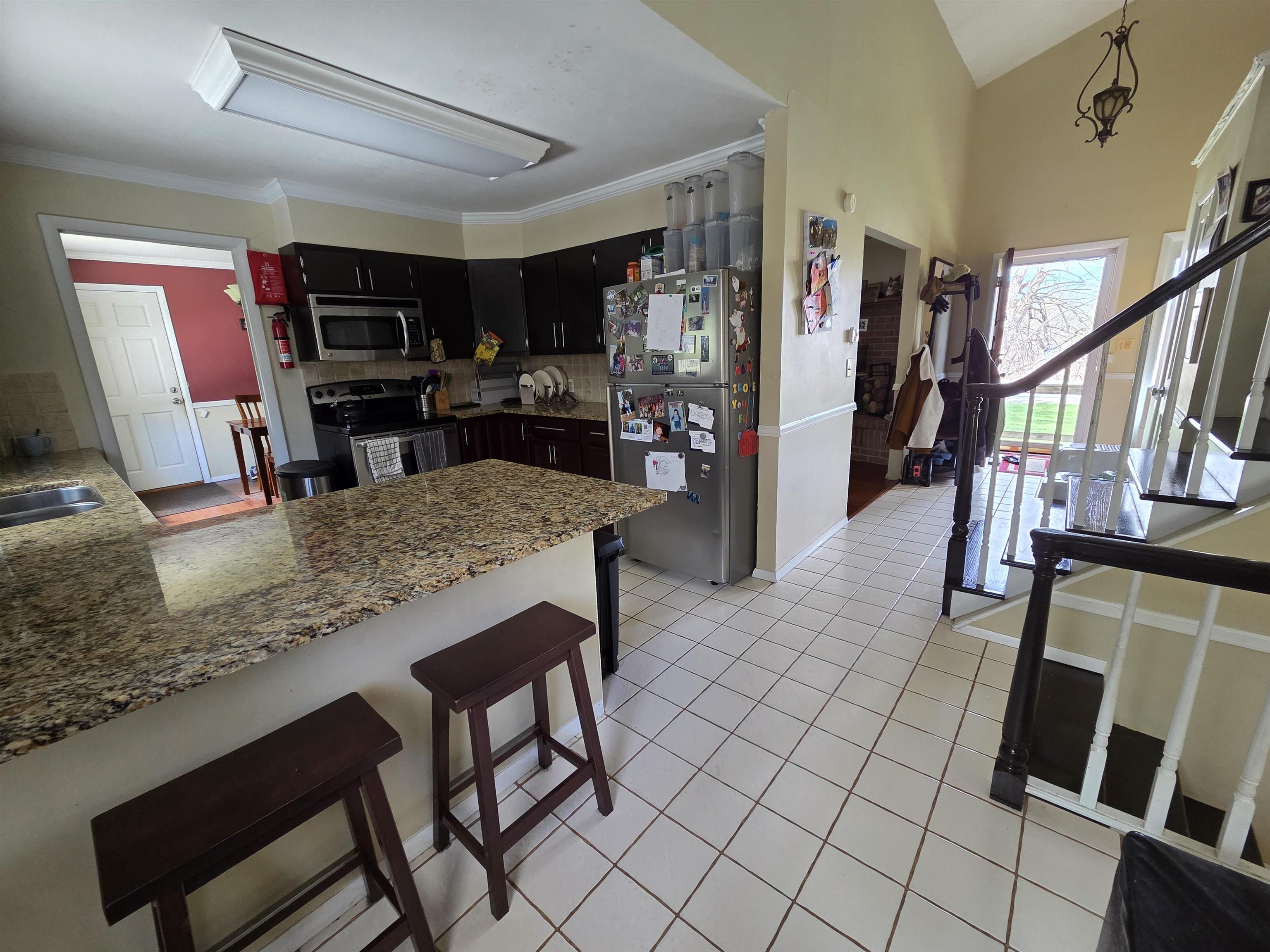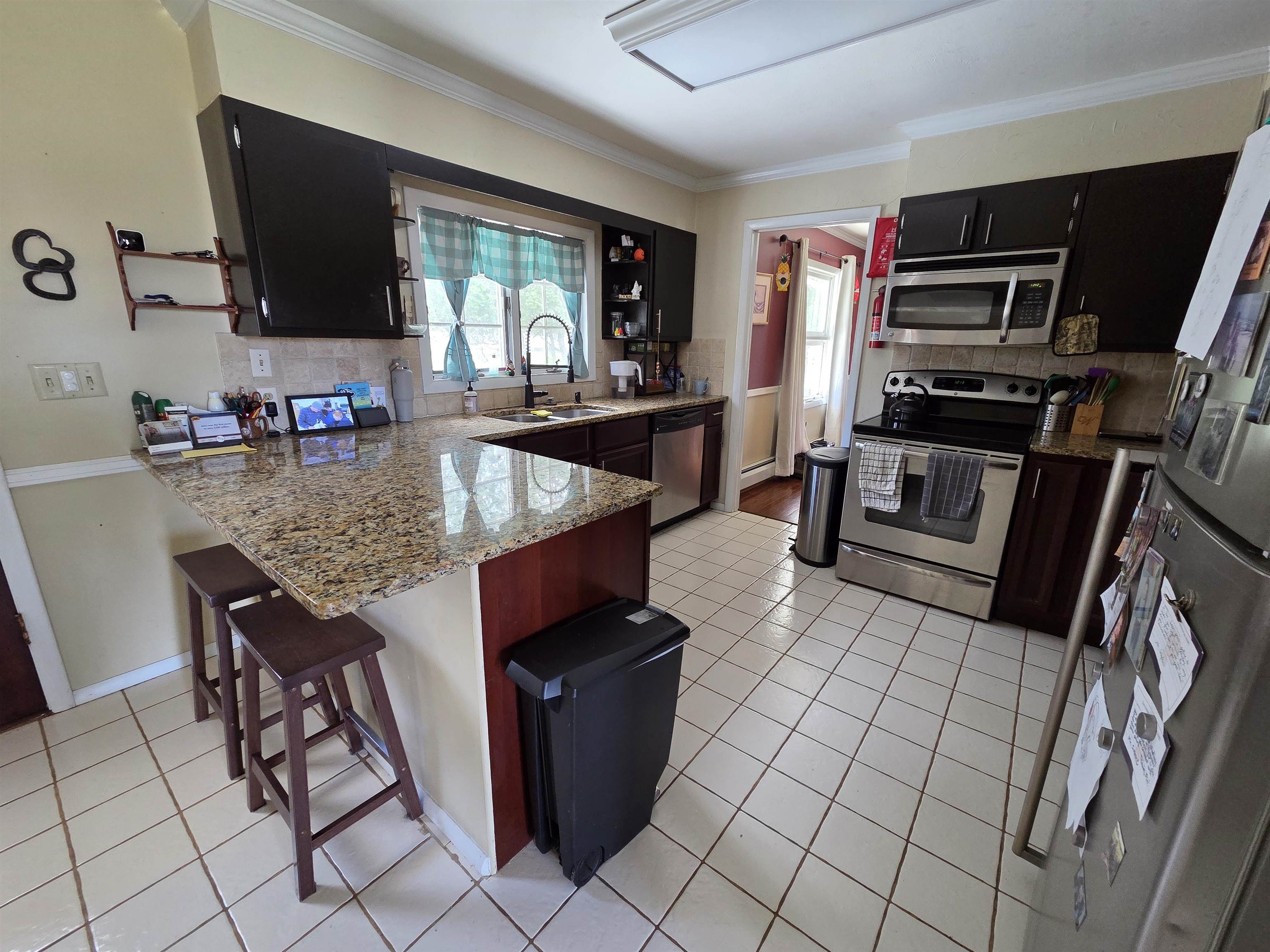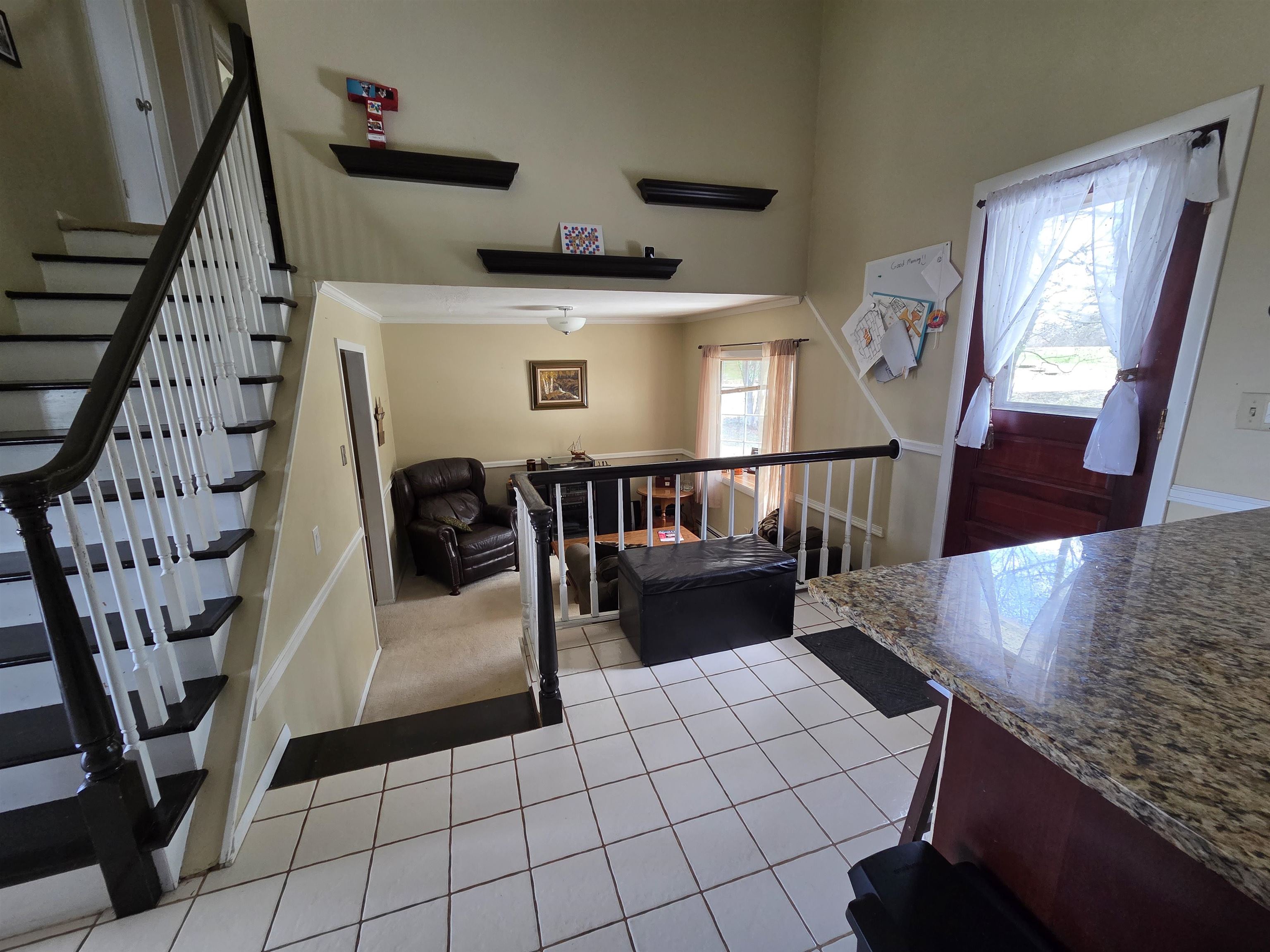 Welcome to this inviting home offering comfort, flexibility, and a convenient village location! The kitchen features granite countertops, stainless steel appliances, and ceramic tile flooring, while the entryway also showcases durable tile. Hardwood floors run through the living and dining rooms, adding warmth and character, complemented by a fireplace. The main level primary bedroom (just three steps down) includes cedar-lined closets and a full private bathroom. Additional flexible living space includes a cozy room off the kitchen, ideal for an office or play area, plus a basement with a dry basement system and open recreation space. Upstairs there are three bedrooms with newer carpeting and an updated full bathroom. Enjoy the large back deck and a setting that offers a peaceful, country feel while still being on the edge of the village. Priced well below the assessed value, this home is a must-see. Call to schedule your private showing.