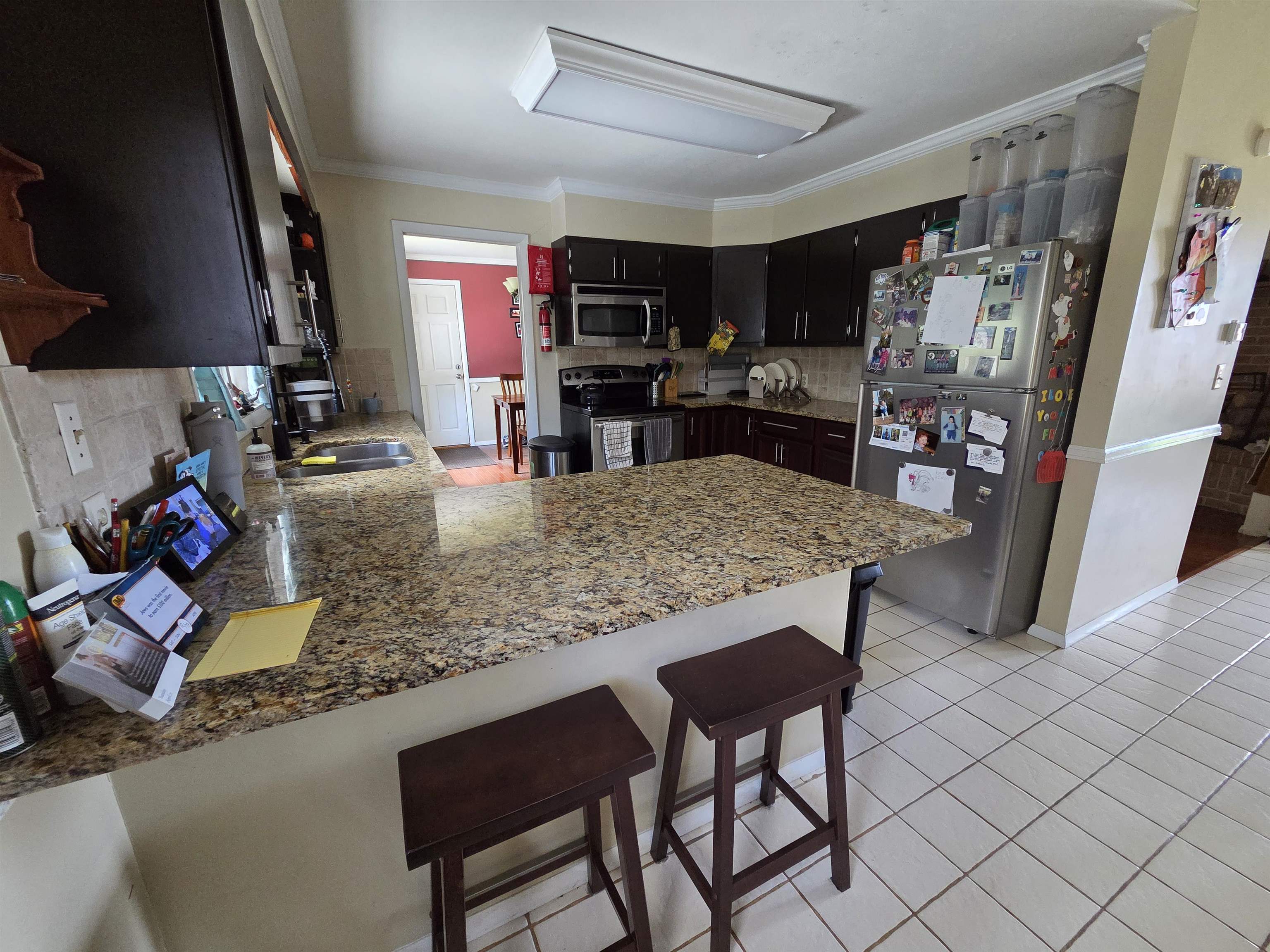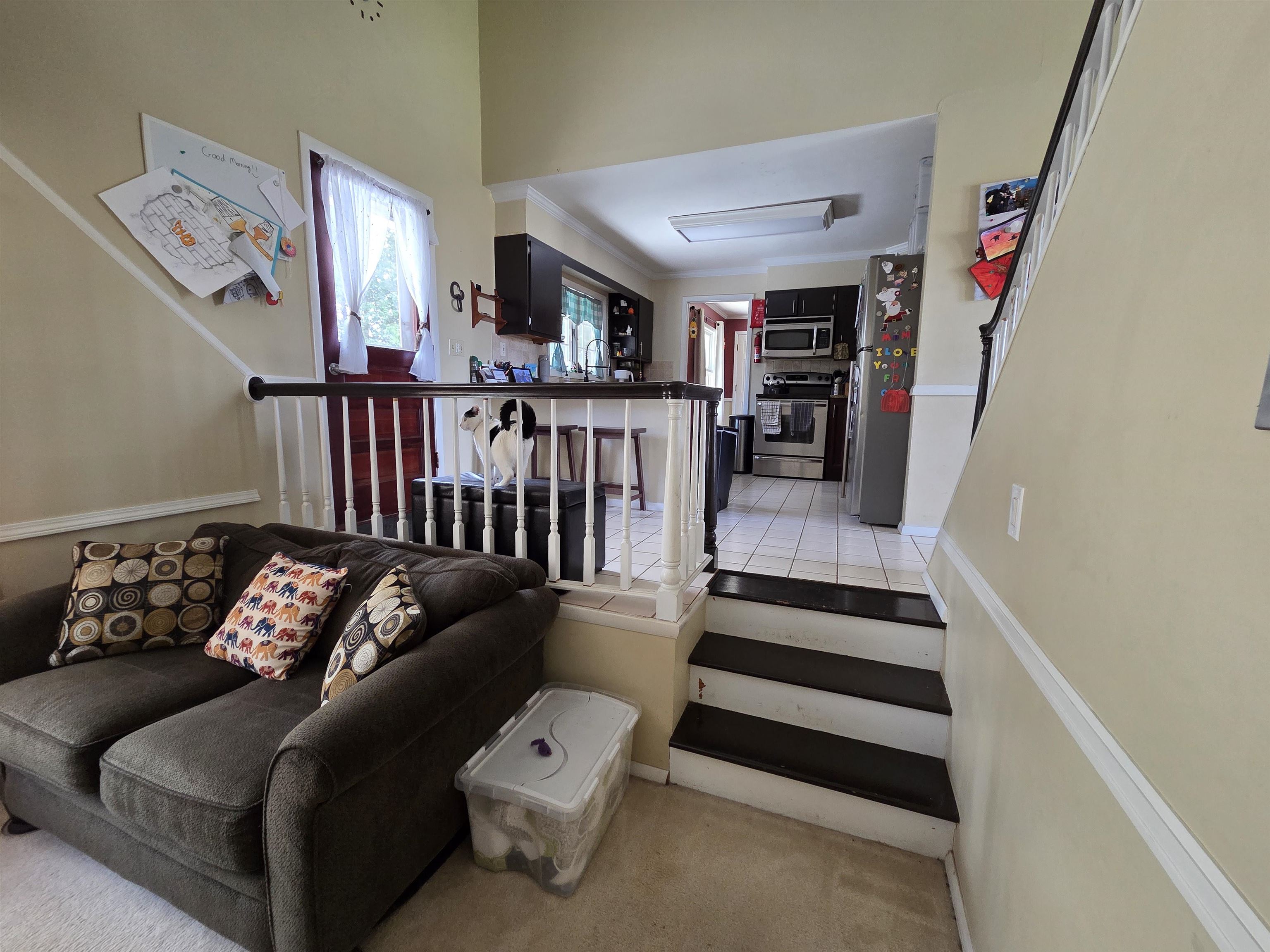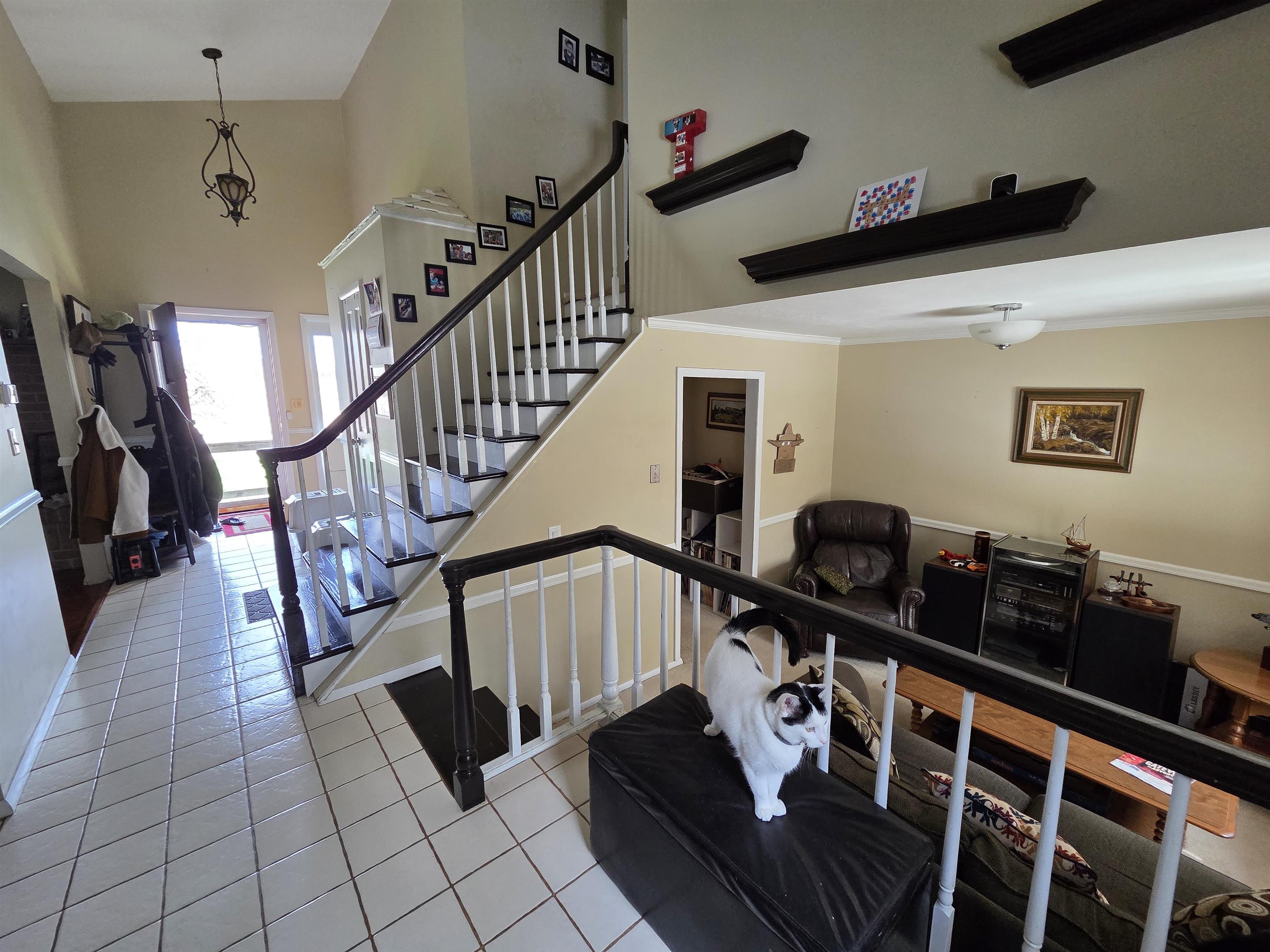 Welcome to this inviting home offering comfort, flexibility, and a convenient village location! The kitchen features granite countertops, stainless steel appliances, and ceramic tile flooring, while the entryway also showcases durable tile. Hardwood floors run through the living and dining rooms, adding warmth and character, complemented by a fireplace. The main level primary bedroom (just three steps down) includes cedar-lined closets and a full private bathroom. Additional flexible living space includes a cozy room off the kitchen, ideal for an office or play area, plus a basement with a dry basement system and open recreation space. Upstairs there are three bedrooms with newer carpeting and an updated full bathroom. Enjoy the large back deck and a setting that offers a peaceful, country feel while still being on the edge of the village. Priced well below the assessed value, this home is a must-see. Call to schedule your private showing.