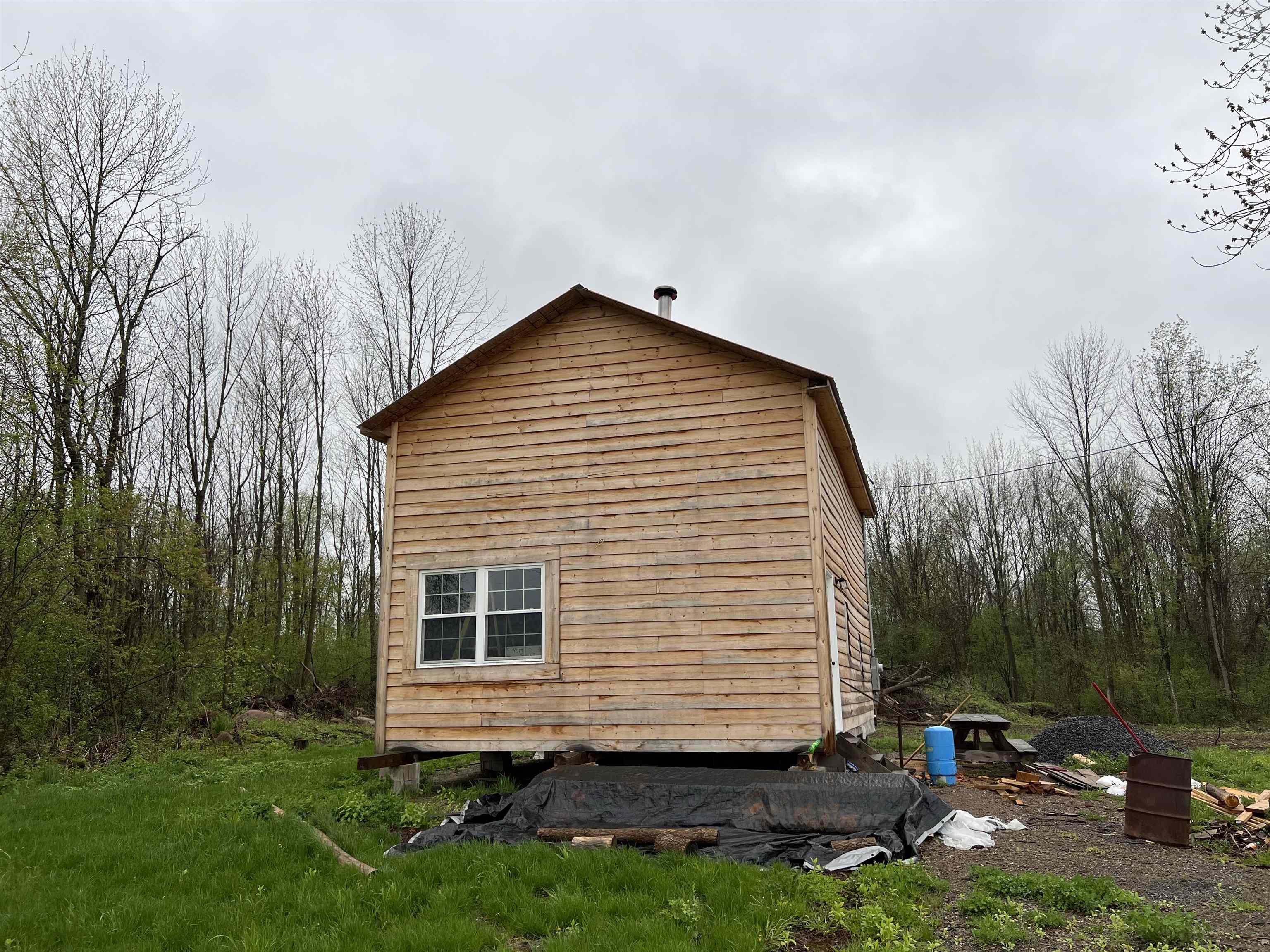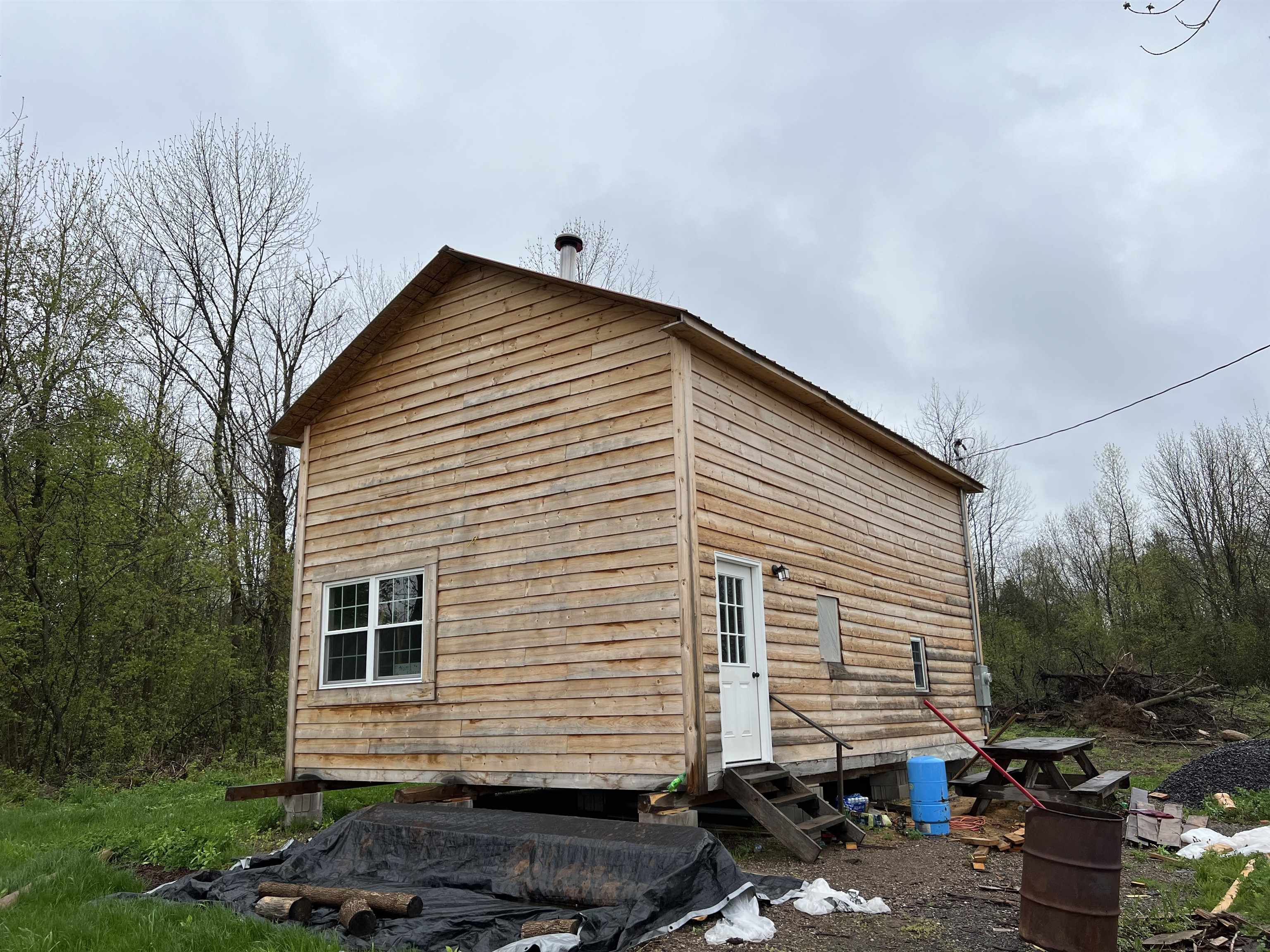 Make this what you want! Cabin on almost 1 acre in Massena School District and National Grid power. Owner started but it would be up to you to design and finish this cabin with a woodstove. No well or septic but it does have power. There is a loft area, and a kitchen sink will convey. A great get-away and its brand new!