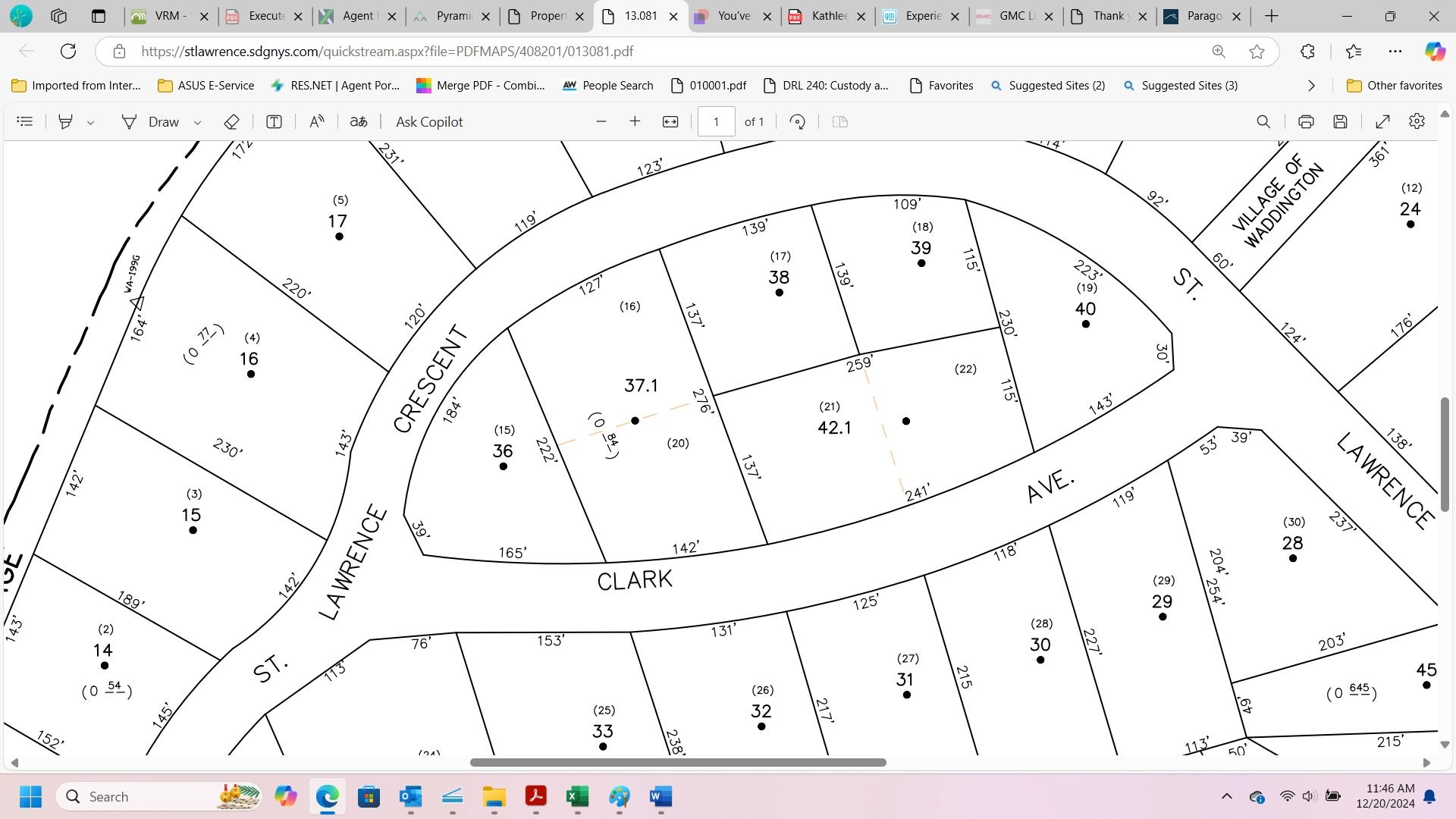 Waterview with all the Services Waddington Provides. Previously sold as 2 separate lots, now combined for 1 large building lot. Recently surveyed with frontage on St. Lawrence and Clark Ave. There is a culvert where a driveway was started. Property has access to town water and sewer for optimal building. A home on this property will face northwest and provides a beautiful sunset every night!