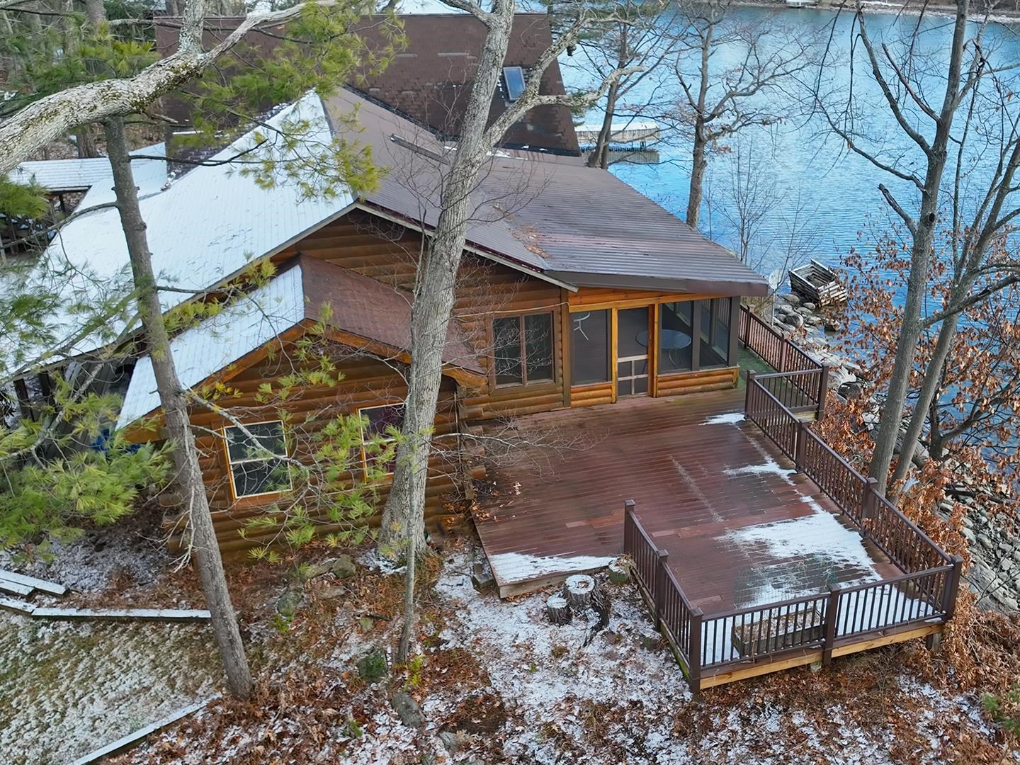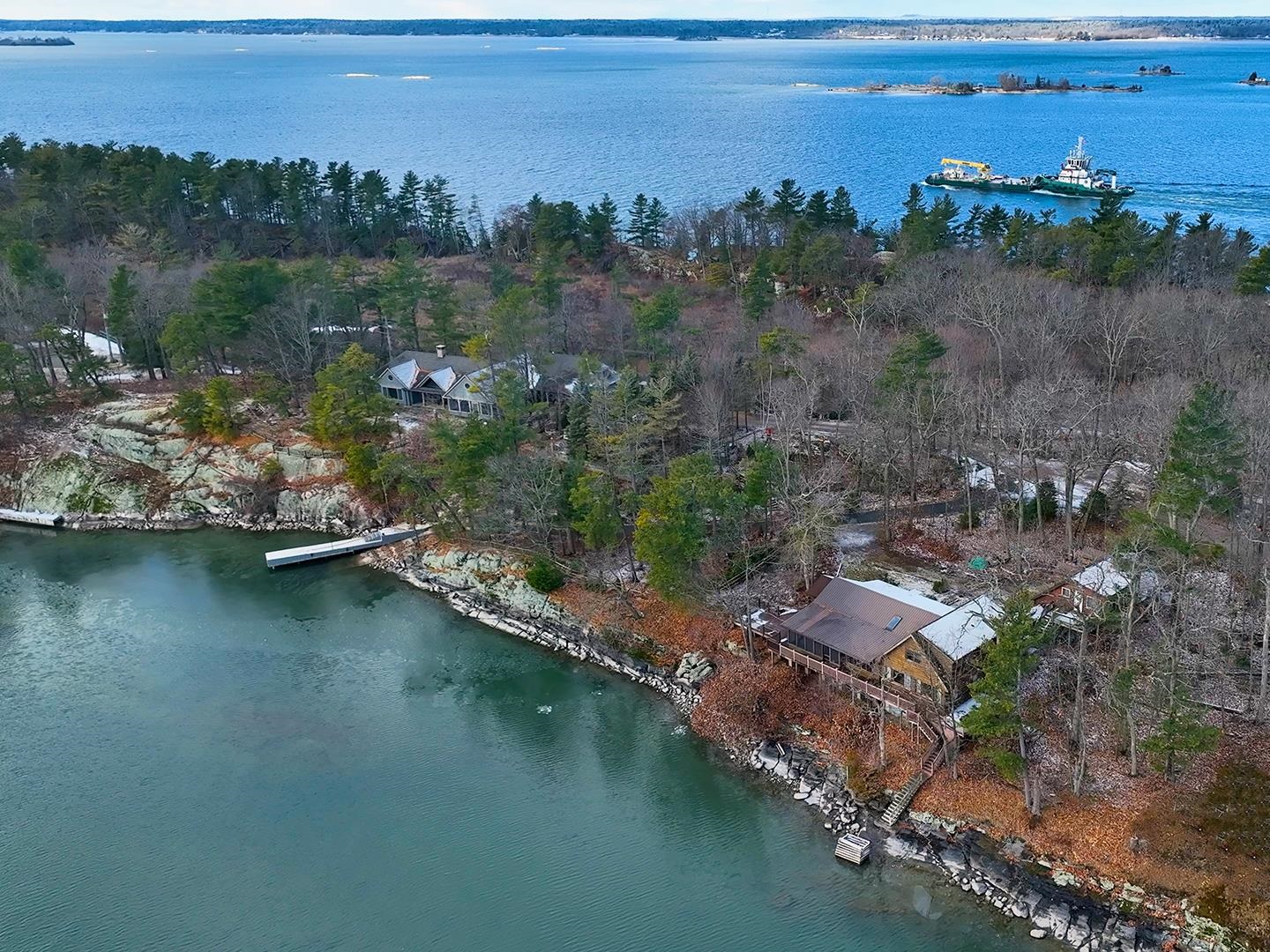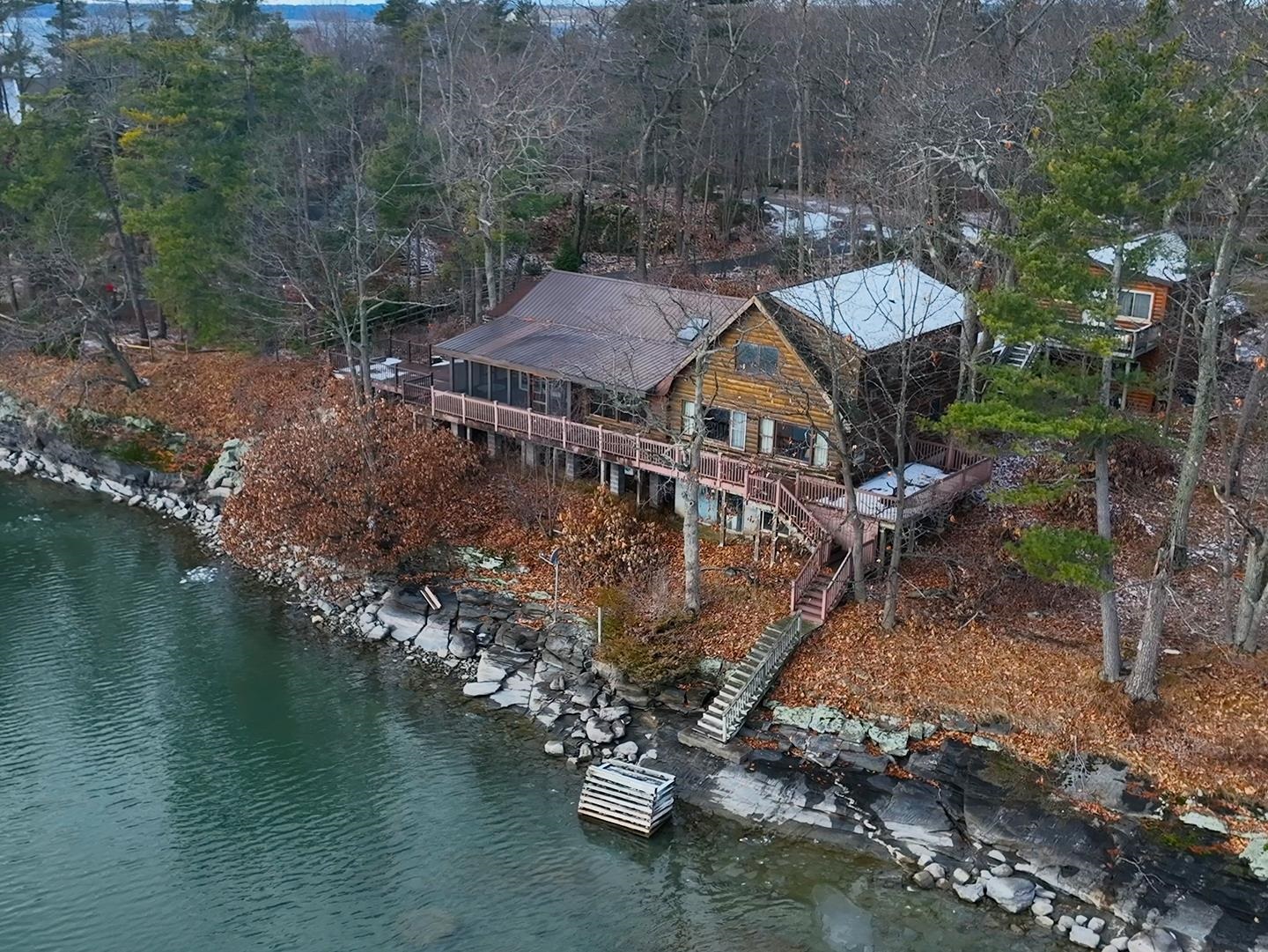 PREMIER RIVERFRONT located in the Thousand Islands Region along the St. Lawrence River. Enjoy year-round panoramic views of the islands and breathtaking sunrises, nestled in the sheltered bay area of Chippewa Bay and Little Chippewa Point offering deep water access. Peaceful wooded setting with an abundance of wildlife and natural beauty on a dead-end road. With 150 feet of shoreline, this picturesque parcel is a haven for fishing, boating, swimming, and relaxation. The property features a spacious 2-story log home (4-5 bedrooms, 3 baths). A separate, fully appointed apartment (1-bedroom, 1-bath) with private balcony - located above the detached 3-car heated garage. A breezeway connects the garage and apartment to the main house, ensuring year-round protection from the elements. A full-length deck spans the home’s waterfront facade, offering spectacular views and multiple entertaining spaces with options for privacy. The living room and dining area have large windows that frame the river views, with access to a three-season sunroom overlooking the water. Spacious kitchen with ample cabinetry, extensive counter space, large island, and dual sinks. Sizeable primary suite on the main floor with walk-in closet and ensuite bathroom. Also included on the main level are two additional rooms (bedroom/office), second full bath, and mudroom/laundry area. Upstairs, find two bedrooms and another full bath. Built for year-round enjoyment, the original log home was constructed in 1983, expanded in 1995, and enhanced by the detached garage/apartment addition in 2002. Ideal riverfront location with a short boat ride and easy access to Singer Castle, Hurricane Joe’s Marina, Cedar Island and numerous surrounding islands - with 15-20 mins to Alexandria Bay, Boldt Castle, and the Canadian Bridge. While the home is move-in ready, it does require some attention. Previously operated as a successful short-term vacation rental, this property offers incredible income-generating potential. Website with additional photos and information from that period are available upon request.