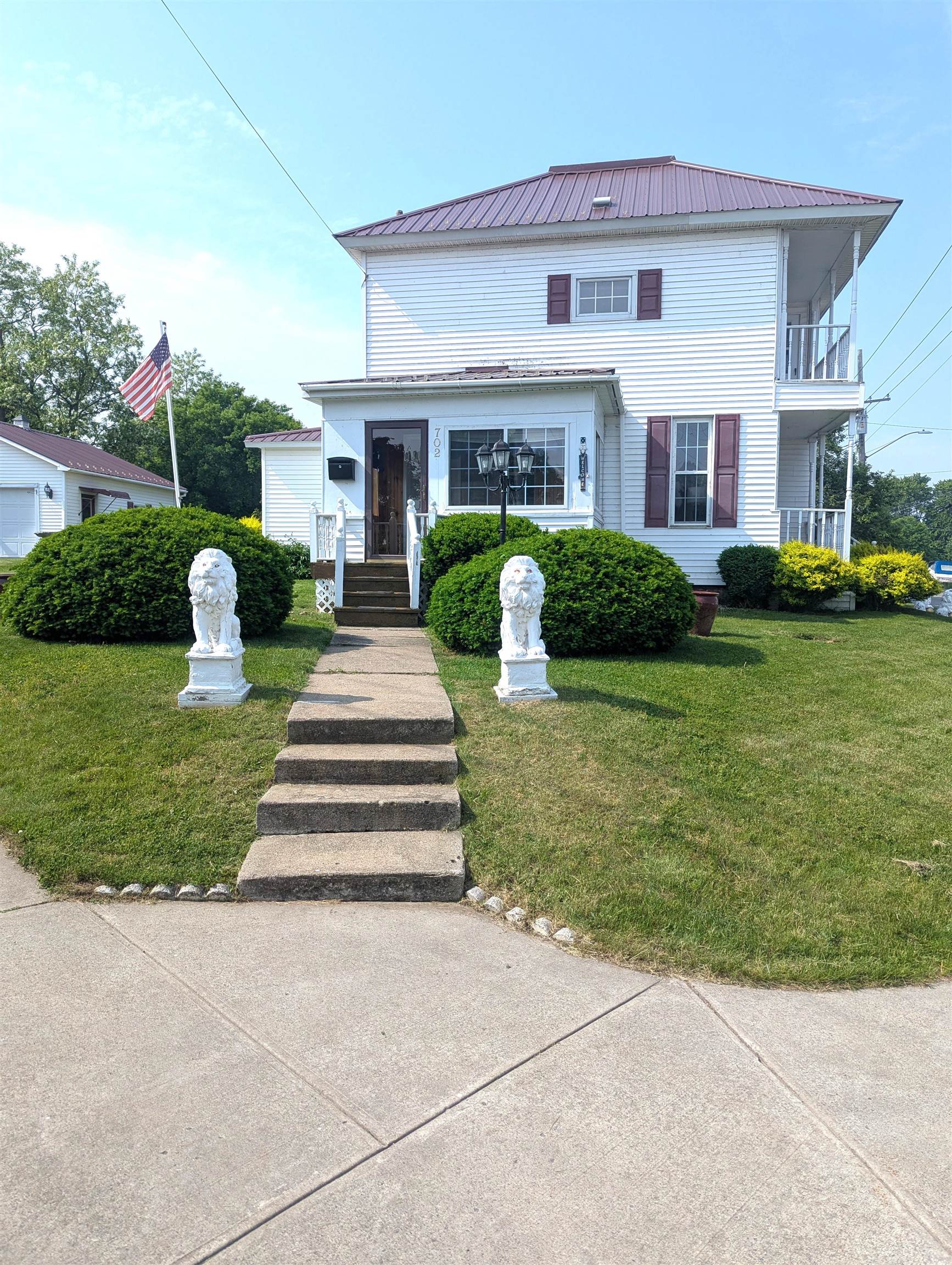 This well maintained, move-in-ready home has views of the St. Lawrence River and Canada. The same family have cared for it with pride for 60 years. There is a 24'x24' two stall detached heated garage with workspace, overhead storage and paved driveway. View the river from many inside rooms or outside from the three-season porch, back deck, or two covered porches. The house main floor there is a living room, family room (which could be a 4th bedroom), dining room, kitchen, with laundry/pantry room off the kitchen and a new full bath with standup shower next to the dining room. All three bedrooms and an additional full bath with tub shower combo, and access to the upper sitting porch is on the second floor. There is a large walk-up attic for extra storage. The water heater is only 2-years old and the furnace is only 3-years old. Call today to see this beauty!