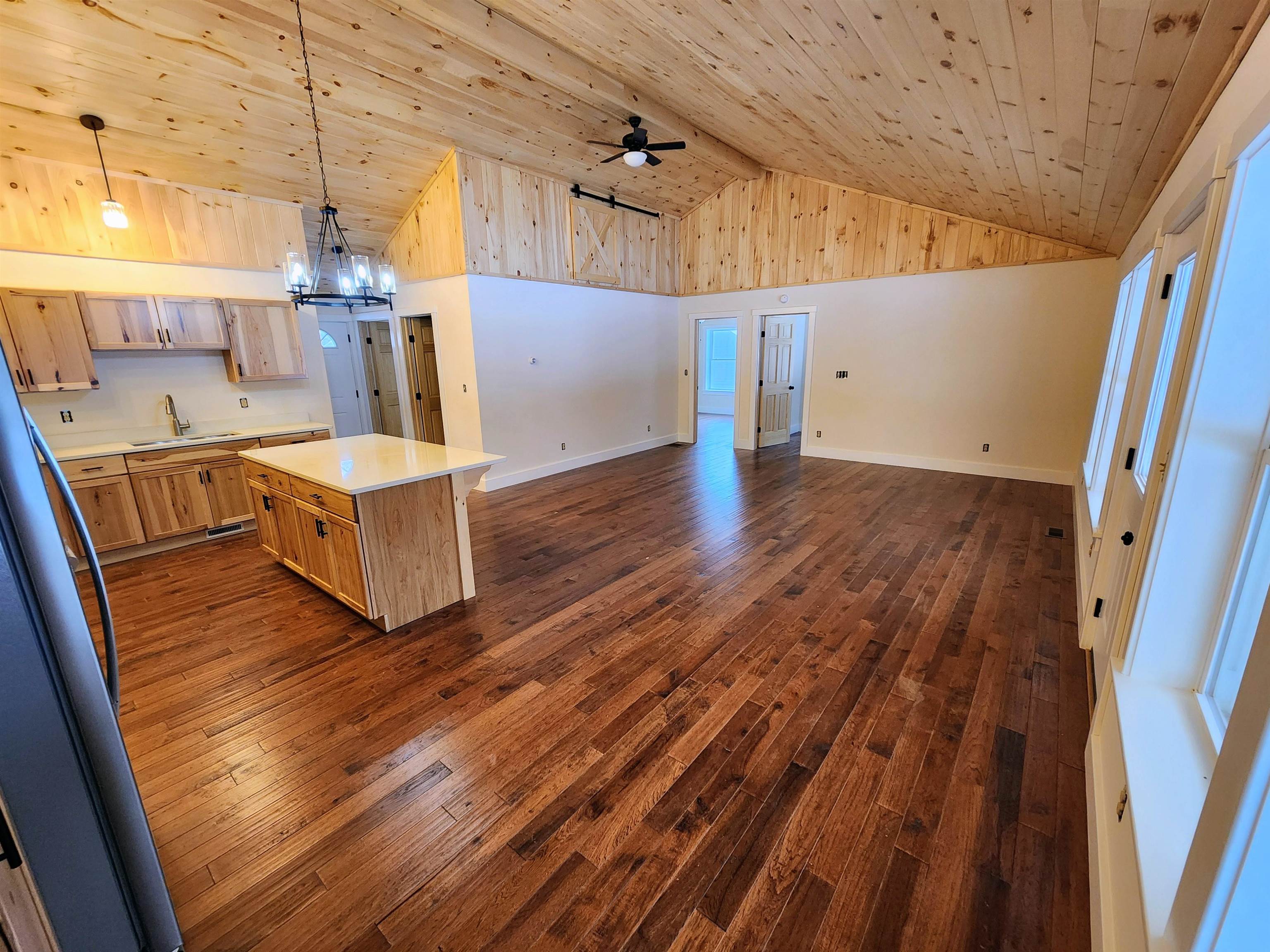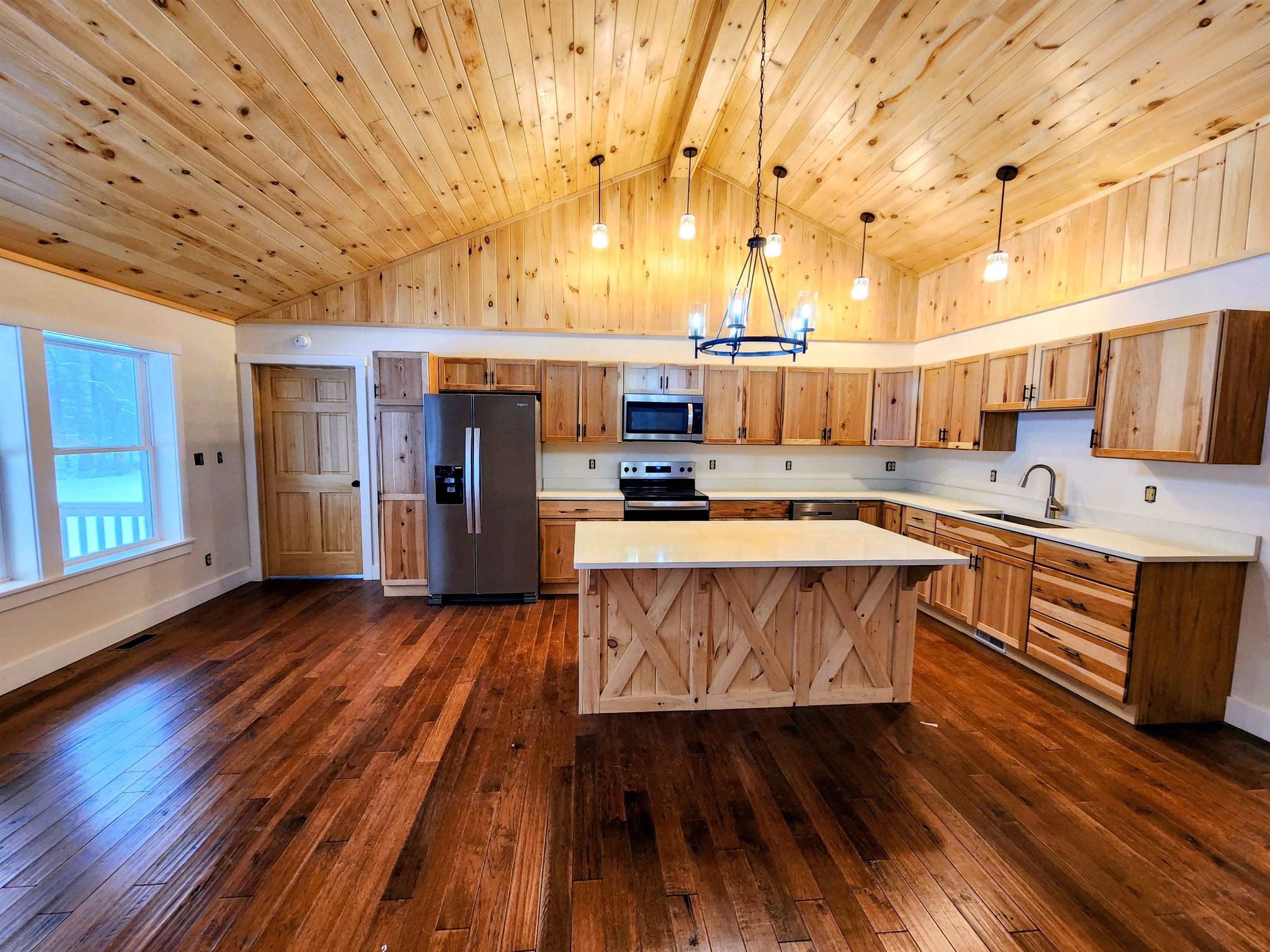 Brand-New Custom Home on 1.5 Acres – Just minutes from Potsdam and in the Potsdam School District. Welcome to your dream home—beautifully crafted and thoughtfully designed, inside and out. Nestled on 1.5 acres with high sandy soil for excellent drainage, this custom-built home offers peace of mind, modern comfort, and style in every detail. Inside, the main floor features three bedrooms and two full bathrooms, including a spacious primary suite with a luxurious ensuite and a large walk-in closet. The open-concept kitchen, dining, and living area is the true heart of the home, showcasing soaring wood cathedral ceilings and stunning ¾” solid hickory floors. The kitchen is both warm and functional, with rich hickory cabinetry, sleek quartz countertops, a large gathering island, and high-end appliances—all included. Every bedroom on the main floor is equipped with a ceiling fan with light. A generously sized laundry/mudroom completes the main level, equipped with washer, dryer, shelving, and hooks for added convenience. All interior doors are solid pine, finished with a clear poly for timeless appeal. The lower level (basement) is finished—except the utility room—and includes a large additional bedroom (or office) with a drop ceiling for future plumbing access, and a massive 54’ x 12’9” bonus room with endless possibilities. Basement ceilings are finished in wood and walls in drywall. Waterproof vinyl plank flooring ensures durability and style. Step outside to enjoy two large, covered porches—one at the front and an even larger one at the back, both with cedar-finished ceilings and lighting. Whether you're sipping morning coffee or hosting guests, these spaces offer the perfect setting. A custom standing seam metal roof ensures decades of durability, and the detached, oversized two-stall garage includes two power doors. There is an attached outdoor storage area to keep tools and equipment out of sight and out of the garage. The yard is level and private. Additional features: 305’ deep well producing 7.5 gallons per minute Excellent drainage thanks to high, sandy soil Peaceful, wooded backyard views 1.5 miles outside the village of Potsdam Don’t miss this rare opportunity to own a brand-new, custom home with quality finishes and room to grow. Ready by closing—schedule your tour today! Estimated taxes listed on the MLS apply only to a vacant lot. After contacting the assessor's office, the approximate taxes on this property would be $6,670 for Potsdam School Taxes and $2,915 for the town and county. These rates do not include any STAR, Military or any other discounts.