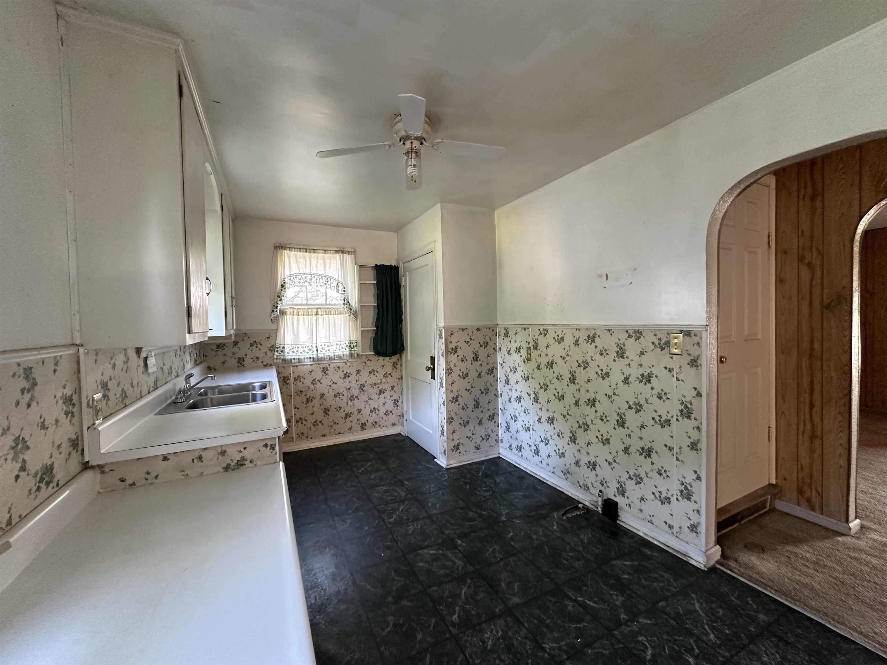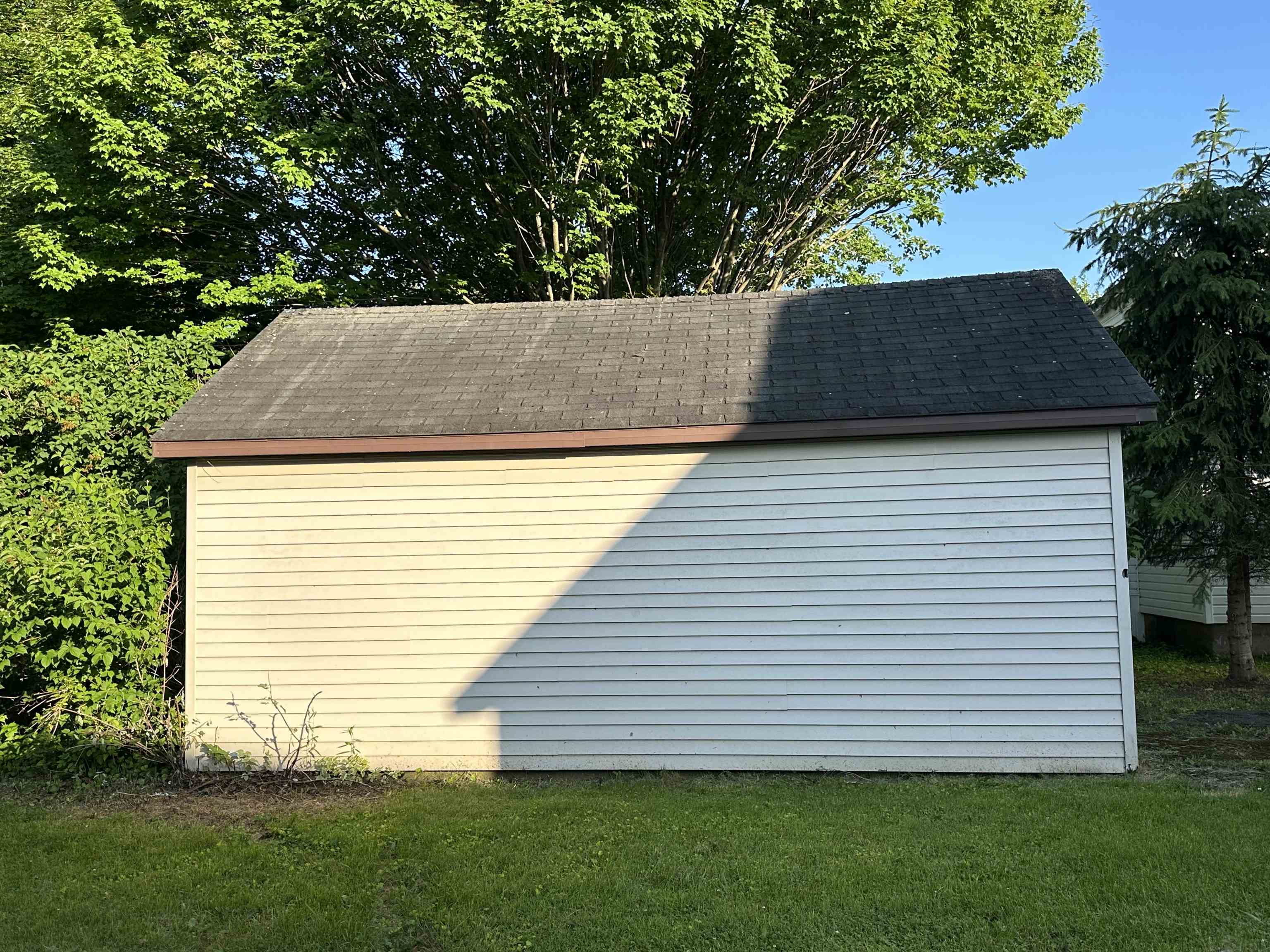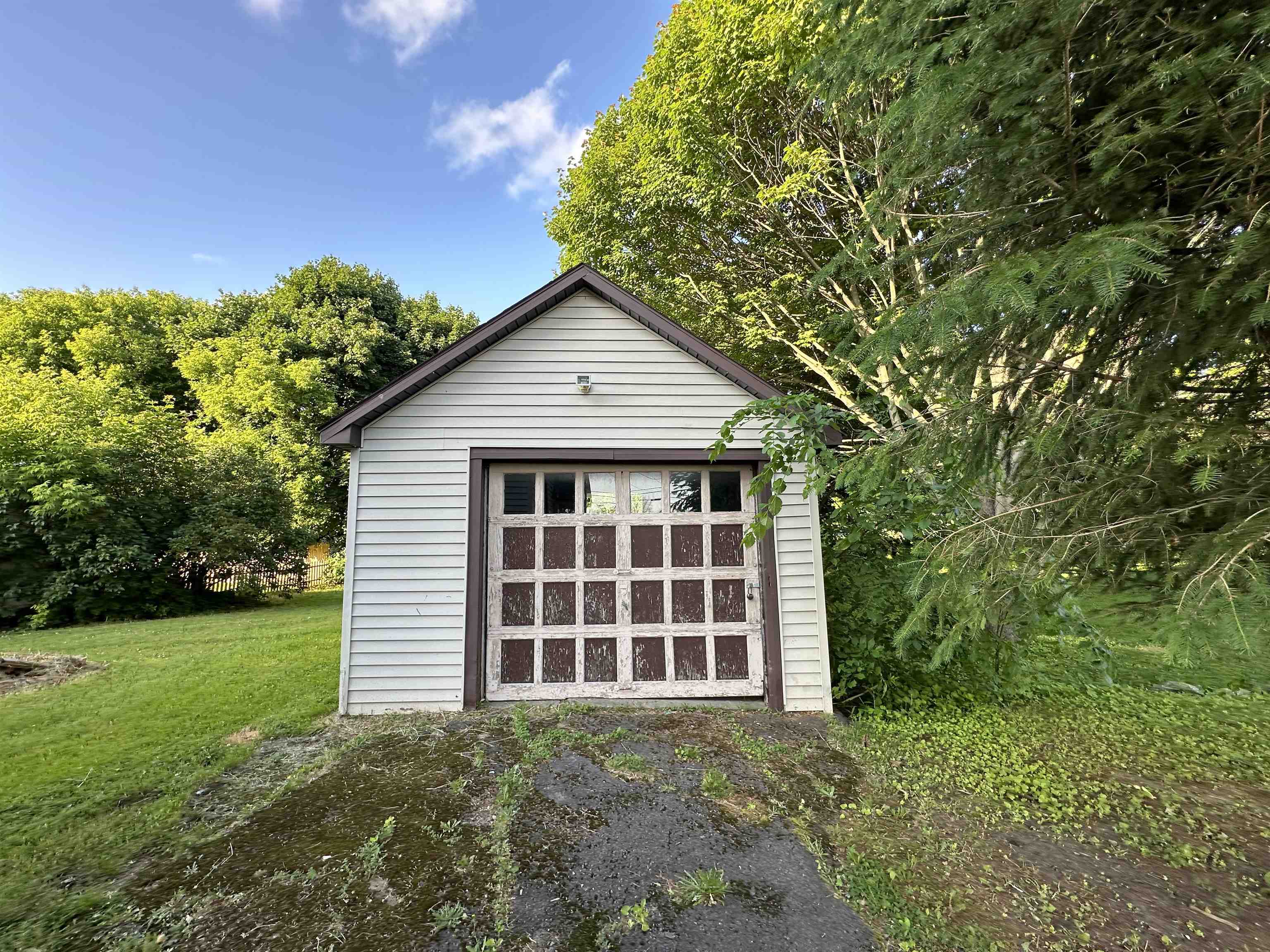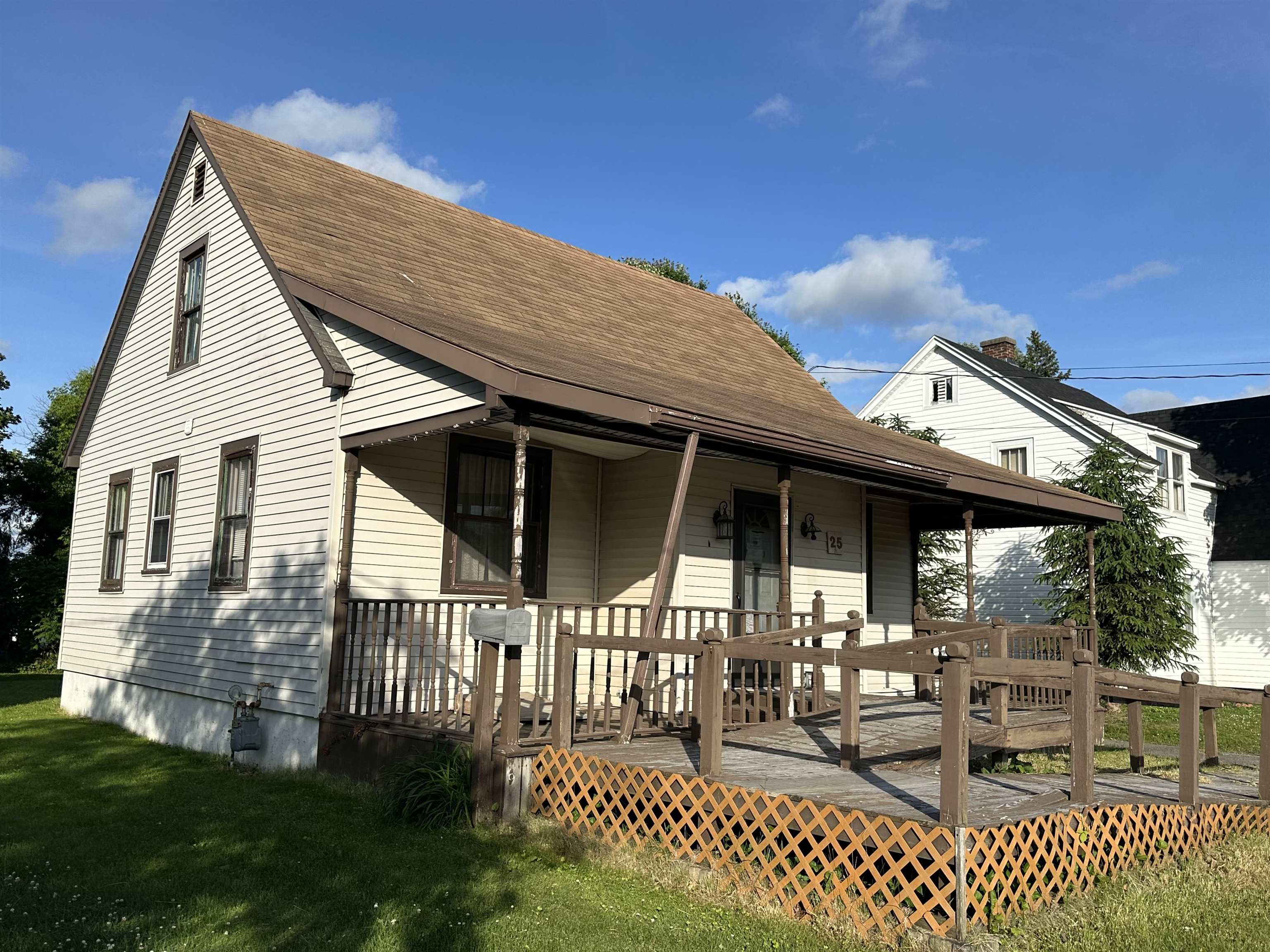 Three bedroom house in the village of Massena. Covered front porch, entry way with closet and storage. Living room has built in bookshelves and cupboards. There is one bedroom on the first floor and the other two bedrooms are upstairs. The bathroom is also on the first floor. Dining room was turned into a first floor laundry room. The laundry could be moved to the basement. There is also a one car detached garage and a paved driveway. Decent sized back yard. House is also across the street from the Massena Neighborhood Center.