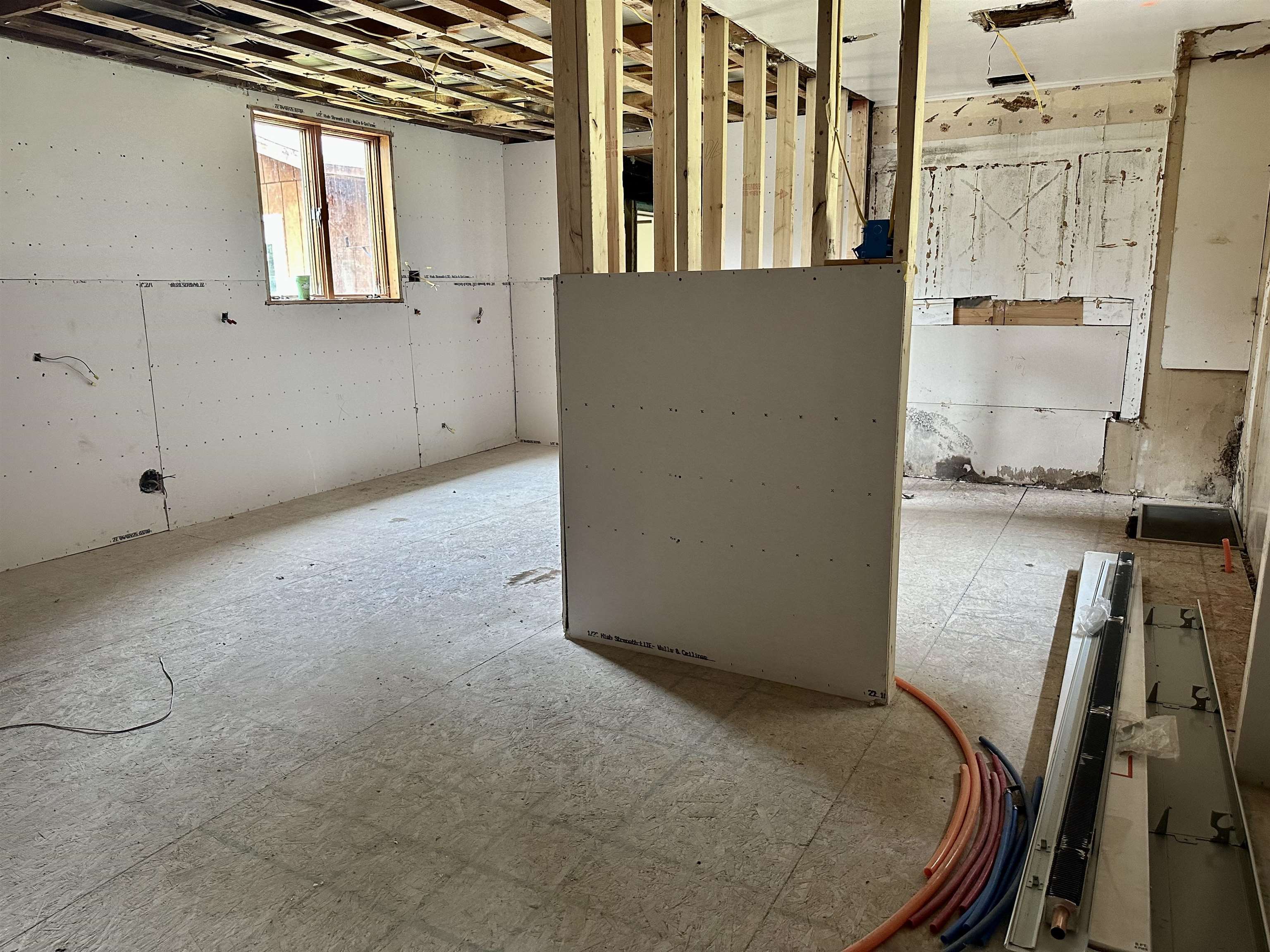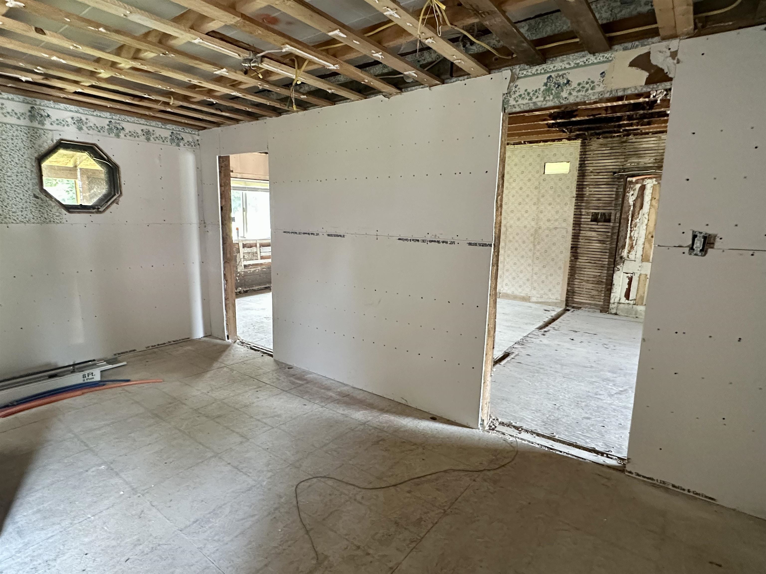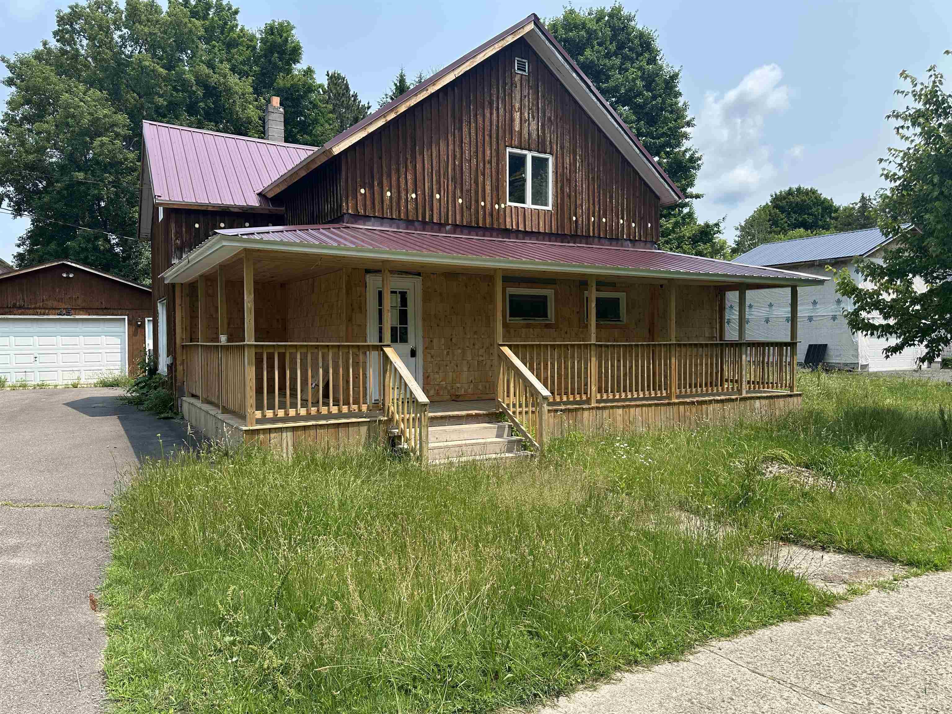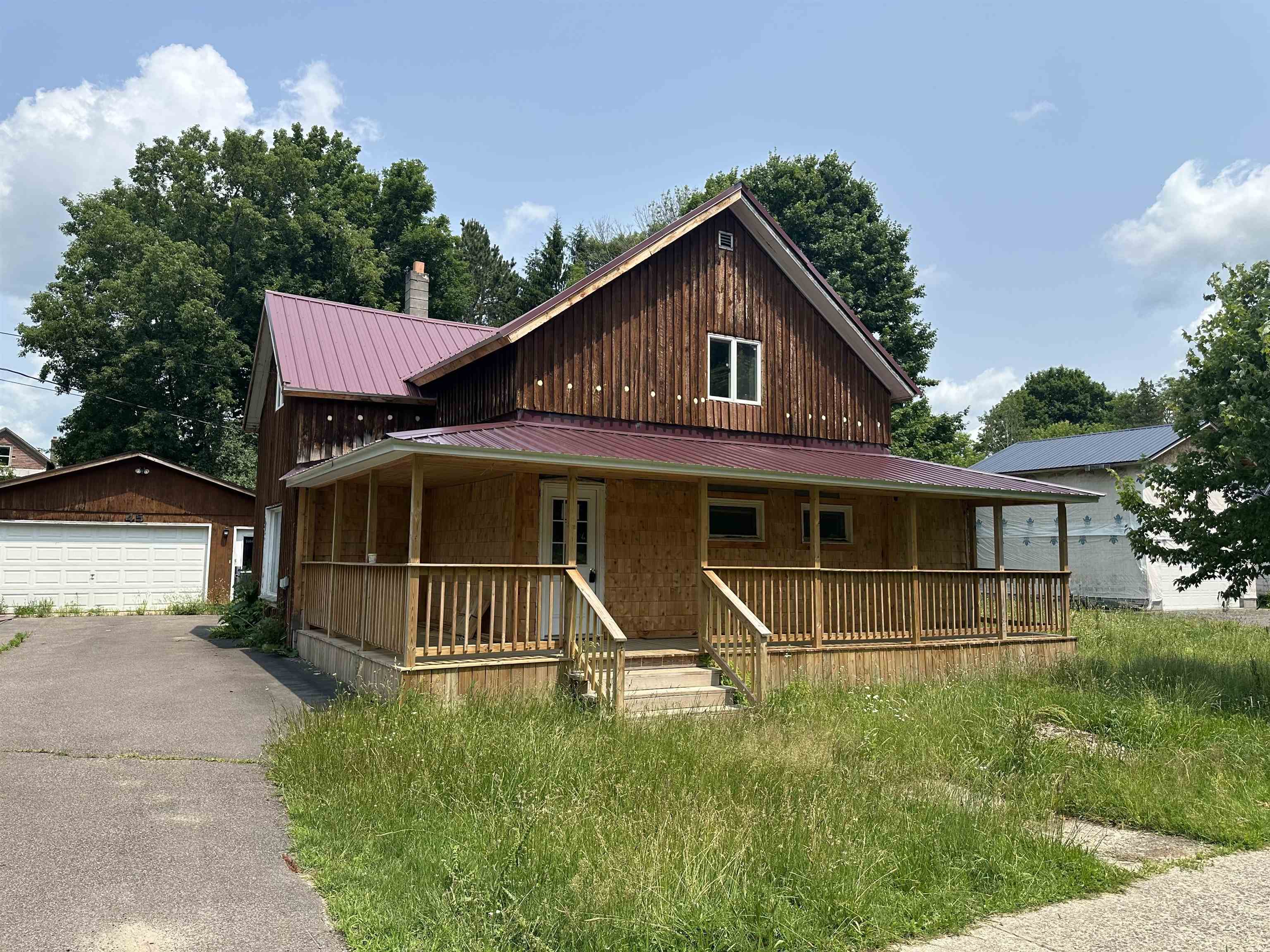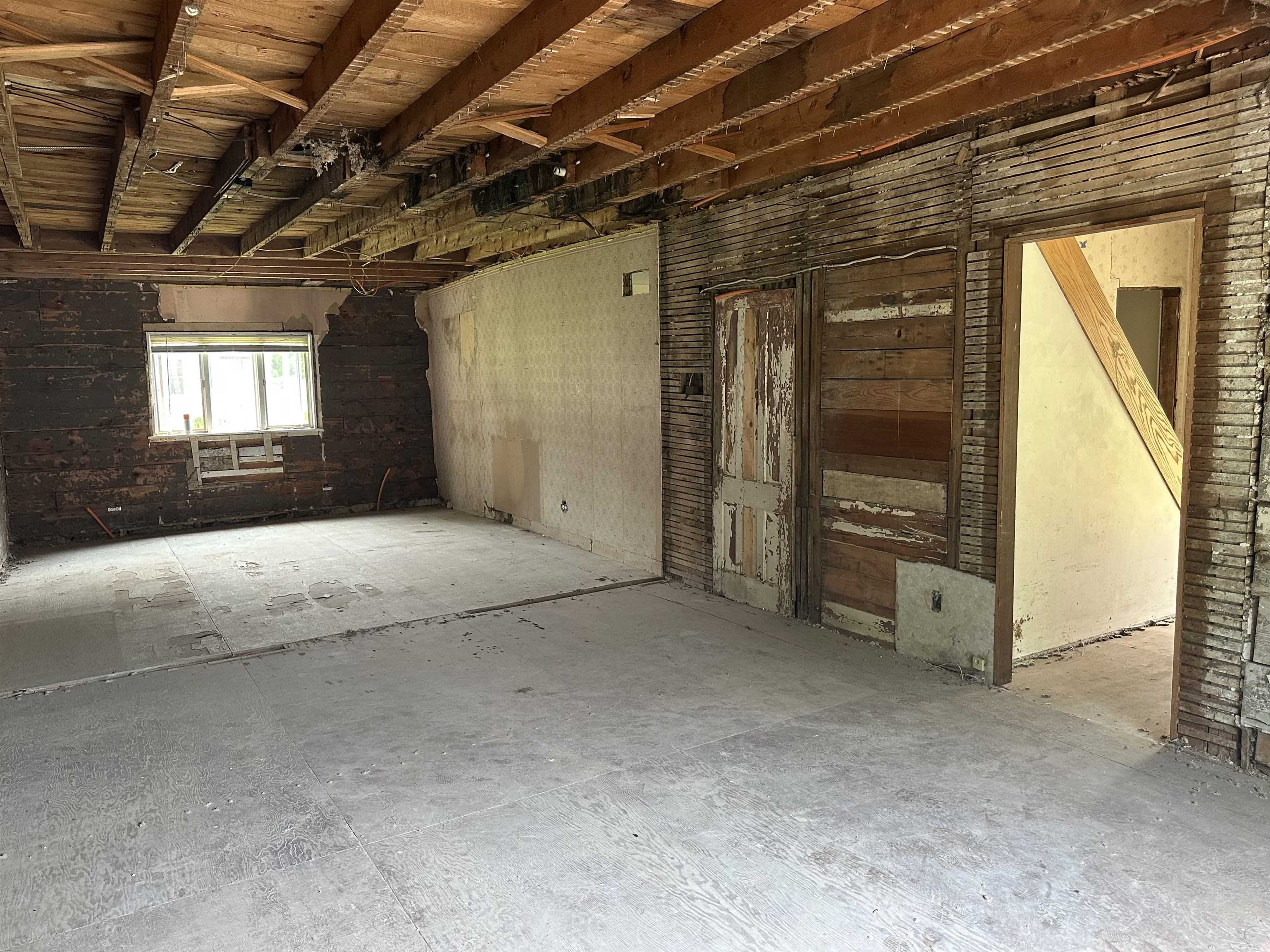 Bring your vision to life in this partially renovated home! The 4 bedroom has potential for 2 full baths and first floor laundry. The main floor offers the opportunity to create a first-floor bedroom with an ensuite full bath, along with a large mudroom and mechanical room housing a Weil-McLain boiler and a new hot water heater. Rough-in plumbing is in place for a kitchen and a full guest bath. The large family room has been gutted. Some electrical work has been completed. Upstairs, three spacious bedrooms have already been drywalled and half of the baseboard heaters have been installed and fully functioning. Outside, the property features a two-car detached garage with additional space behind it—ideal for a workshop or storage—along with a paved driveway, metal roof, and a generous yard. The newly built wrap-around porch is the perfect place to relax while making this your dream home. Located in Parishville NY - less than a quarter mile from the park and beach! Offered as is at $75,000, this property is perfect for an investor or handy buyer ready to unlock its potential.
