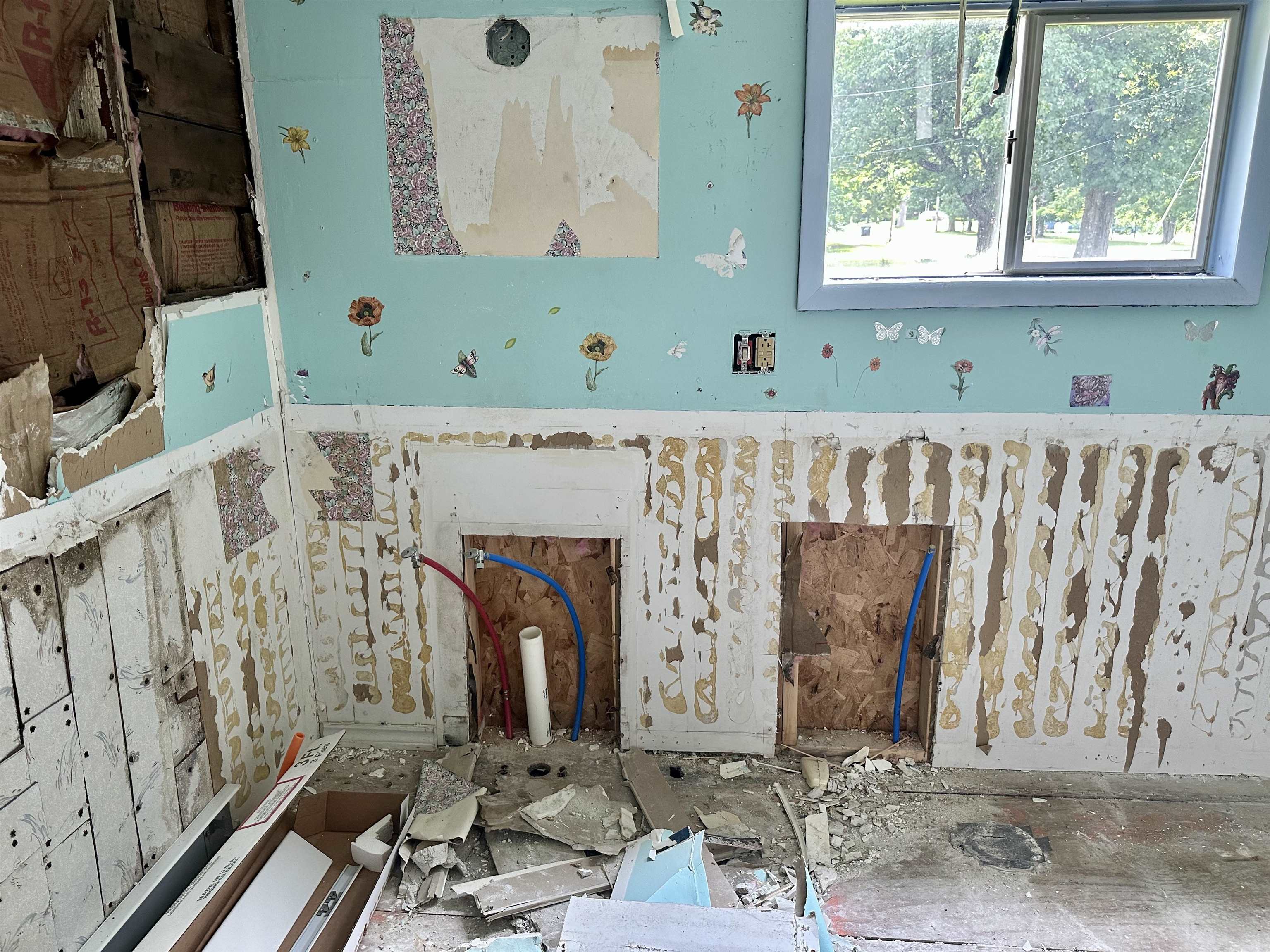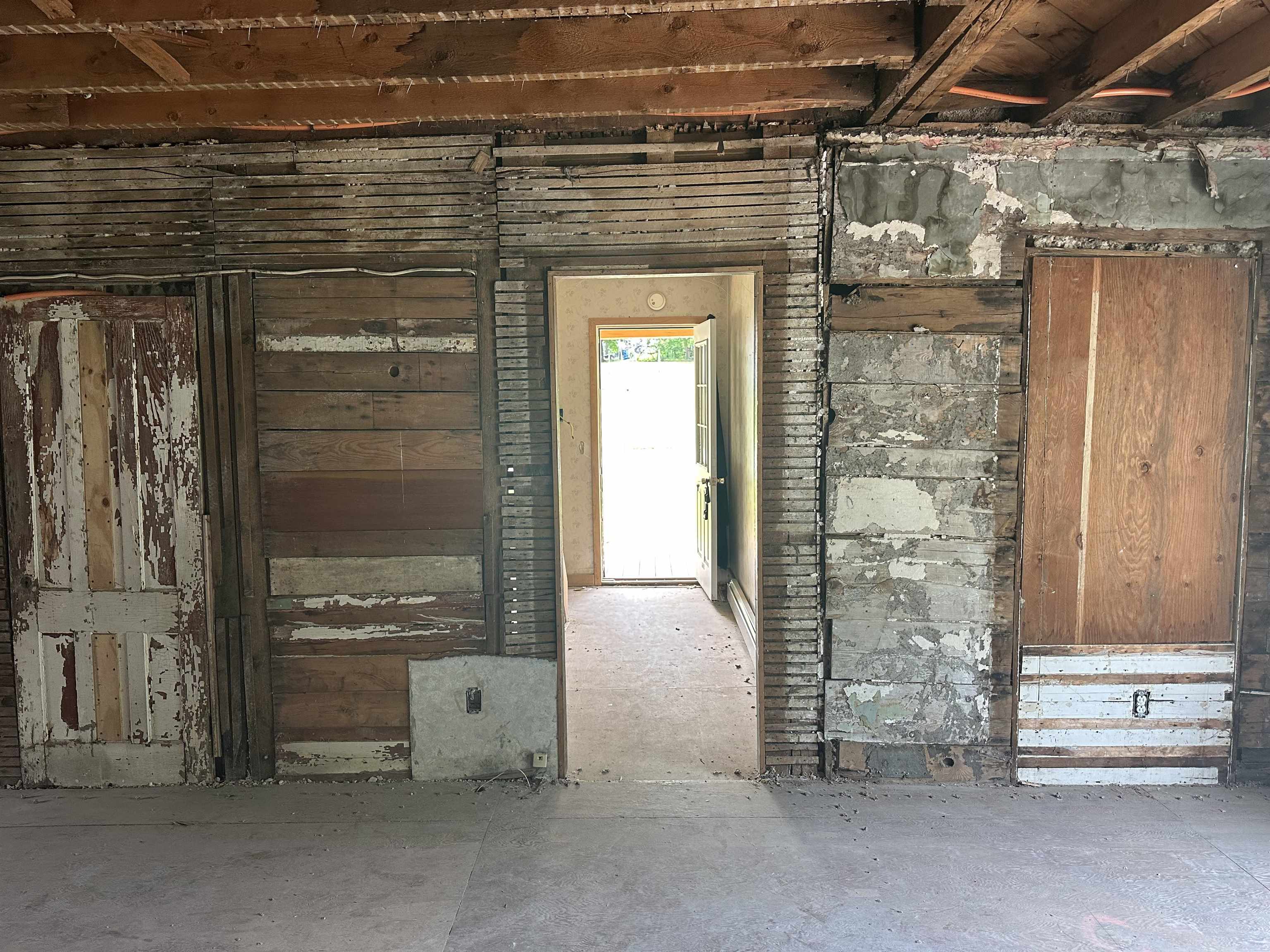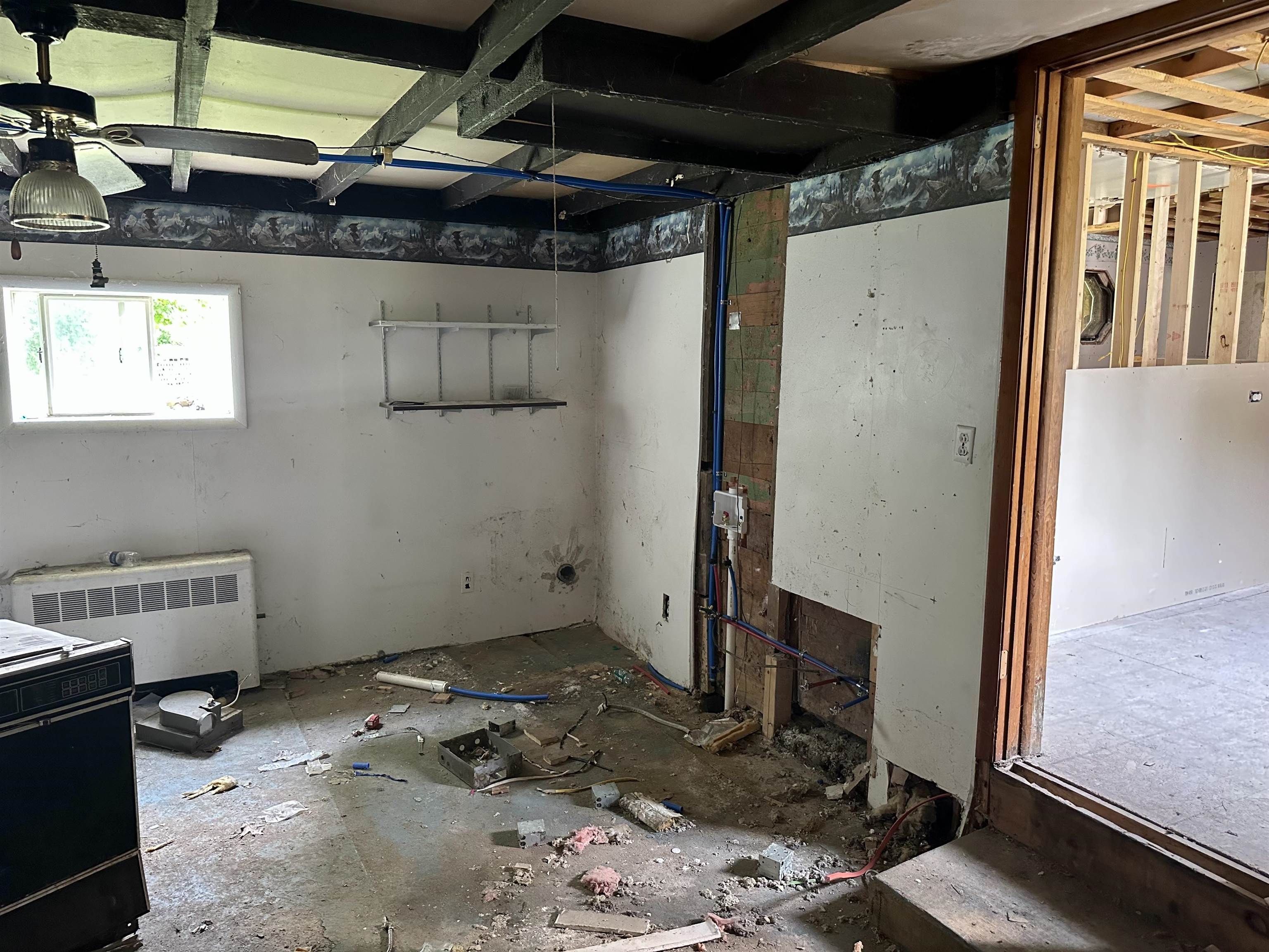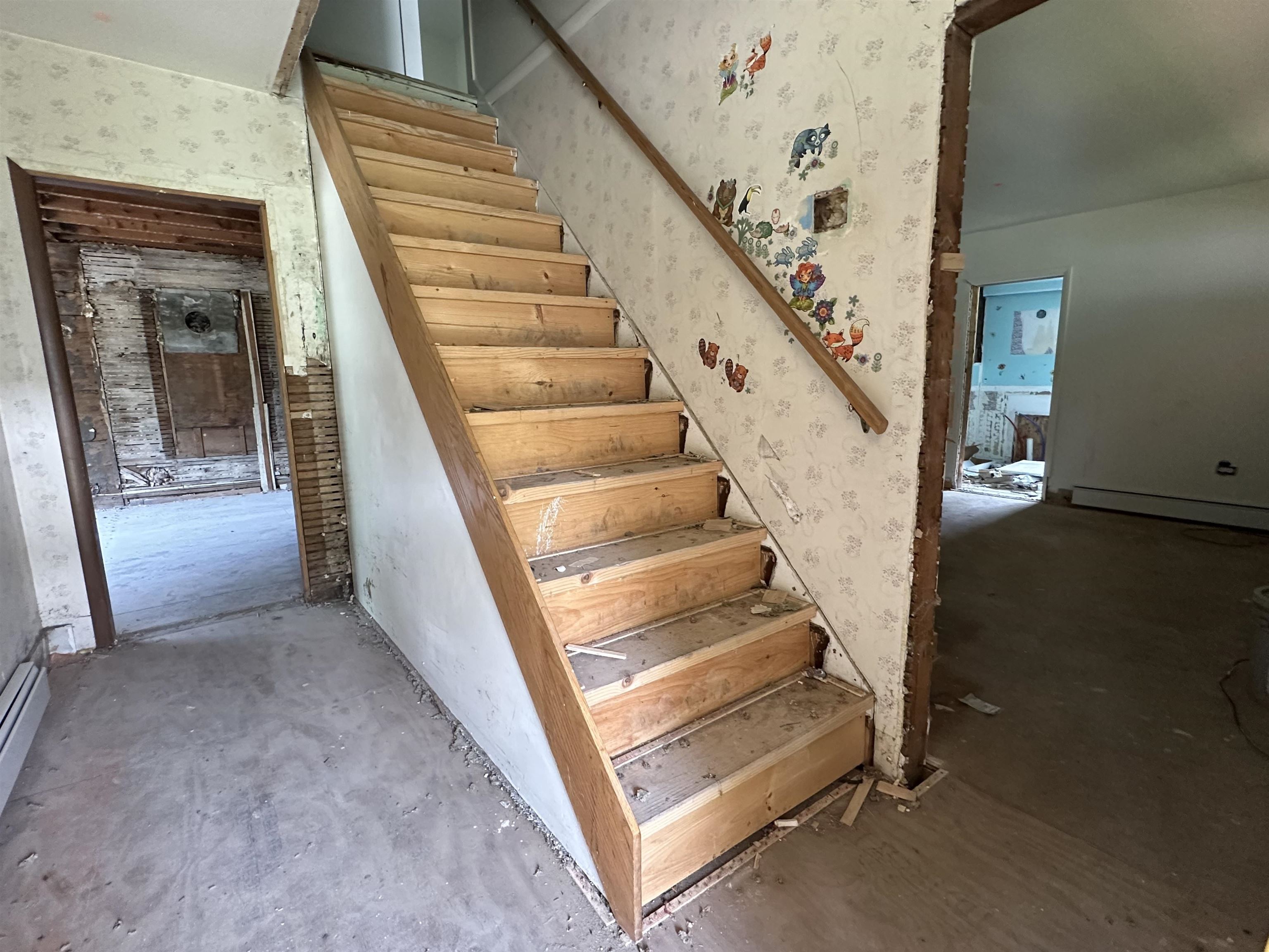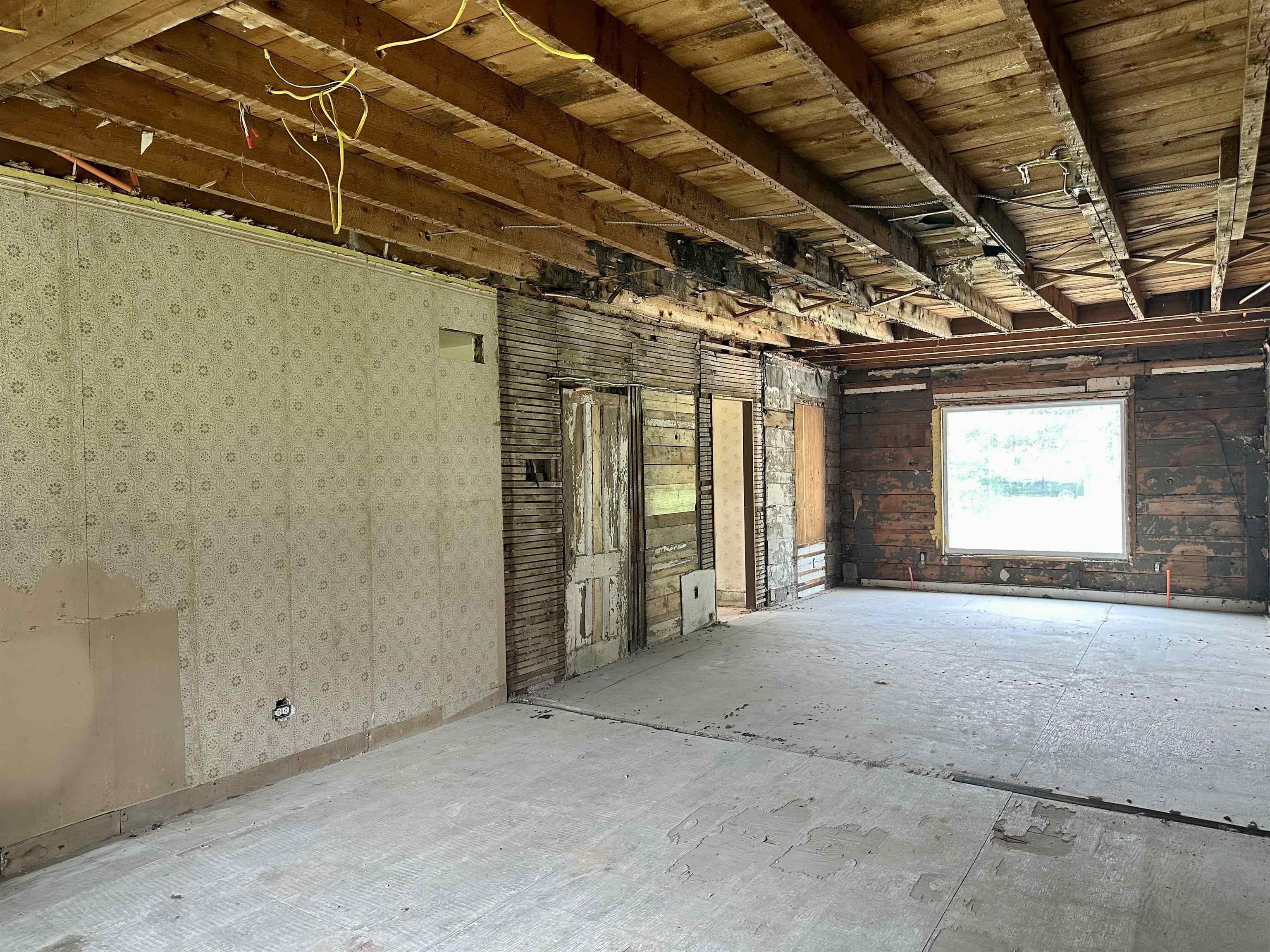 Bring your vision to life in this partially renovated home! The 4 bedroom has potential for 2 full baths and first floor laundry. The main floor offers the opportunity to create a first-floor bedroom with an ensuite full bath, along with a large mudroom and mechanical room housing a Weil-McLain boiler and a new hot water heater. Rough-in plumbing is in place for a kitchen and a full guest bath. The large family room has been gutted. Some electrical work has been completed. Upstairs, three spacious bedrooms have already been drywalled and half of the baseboard heaters have been installed and fully functioning. Outside, the property features a two-car detached garage with additional space behind it—ideal for a workshop or storage—along with a paved driveway, metal roof, and a generous yard. The newly built wrap-around porch is the perfect place to relax while making this your dream home. Located in Parishville NY - less than a quarter mile from the park and beach! Offered as is at $75,000, this property is perfect for an investor or handy buyer ready to unlock its potential.
