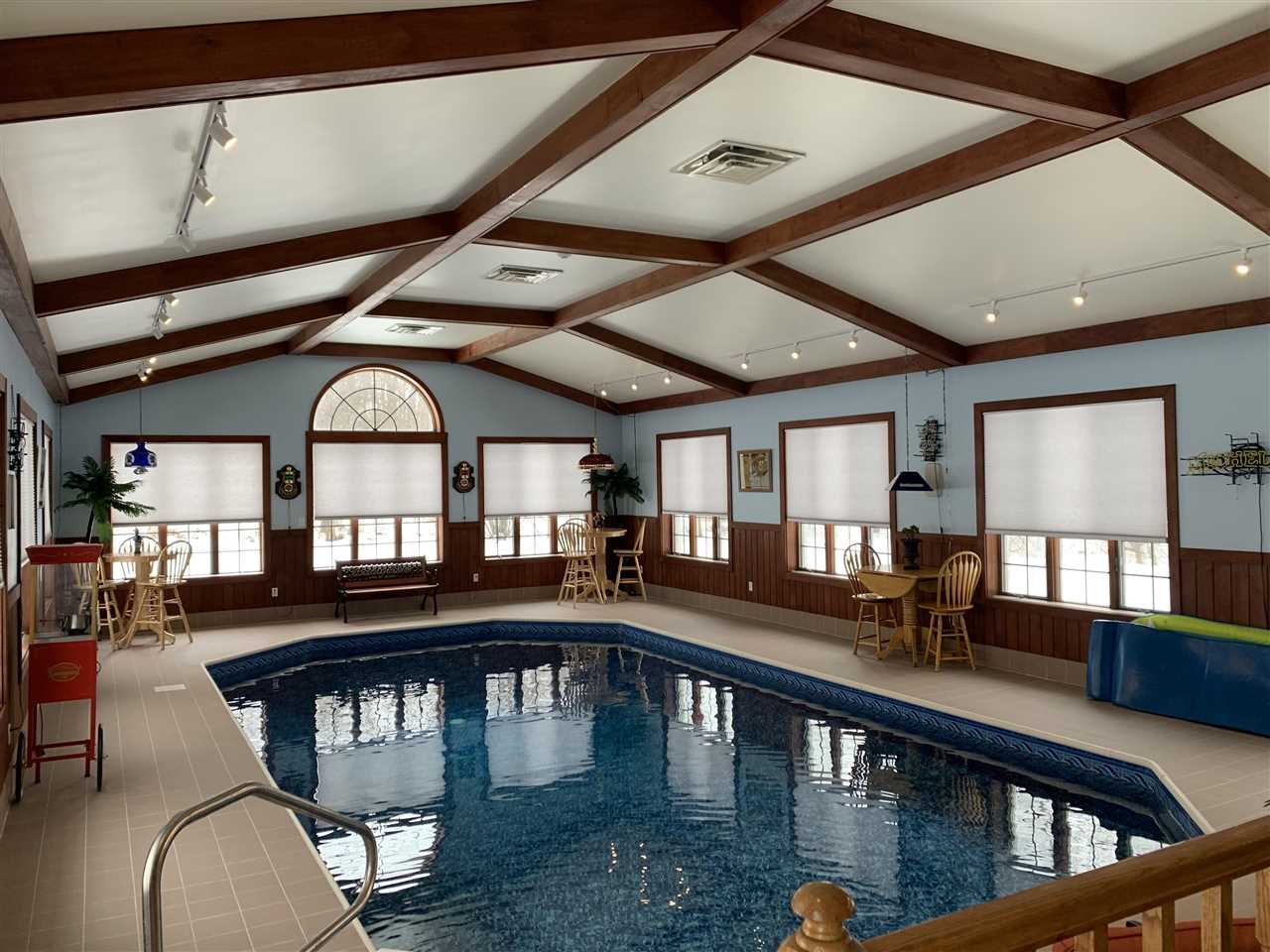 Contemporary Home with 6 bedrooms, Indoor heated pool located on a cul-de-sac in Massena, New York. This home is extraordinary and offers 5,200 square feet of living space and a 5-car attached heated garage. The owner has just made an extensive list of improvements including a brand-new roof, brand new master bathroom, new natural gas furnace, central air-conditioning, brand-new pool heater and all related equipment for the pool including a UV system and sand filter. Brand new hot tub, new front center doors, new gutters, new light fixtures throughout the home and new electrical switches throughout the home. There are brand-new stainless-steel appliances and washer, and dryer are brand new. New central vacuum system. There is a stamp crete patio with new sliding doors from the pool area to a fenced yard, new storage building, 5 new garage doors, new blinds all through the home, an indoor barbeque grill and a brand-new oak custom bar with refrigerators and bar stools. The list is extensive and there is more. Four bedrooms are on the second level and 2 bedrooms are in the basement. Large primary suite with bathroom includes a jacuzzi tub, double sinks and shower. There are 5 full and one-half bathrooms, marble floors along with hardwoods and ceramic throughout the home. Natural gas fireplace in the beautiful den offers warmth and there is a large pantry and first floor laundry. Granite counters and a formal dining room for entertaining. This home is one of a kind. Qualified buyers only please