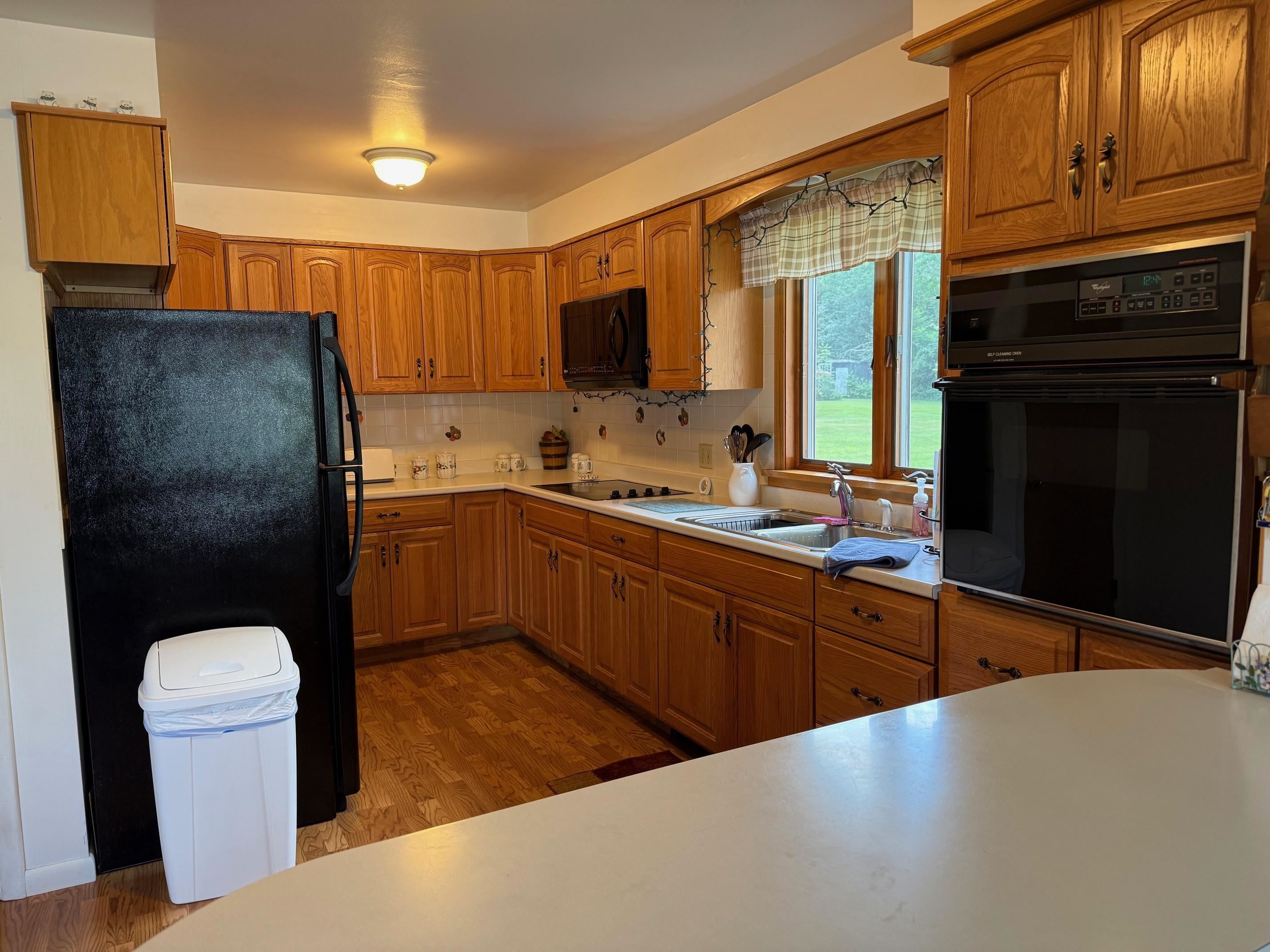 Country Ranch with Privacy... This 3-bedroom ranch features hardwood floors, an oak kitchen and a garage with a workshop. The fireplace in the living room is a beautiful fieldstone wood burner. The home has a basement system to ensure it stays dry. There is a paved driveway with a large turn around. This home is virtually maintenance free and will make any family comfortable. Get in today to view this gem, it won''t last long.
