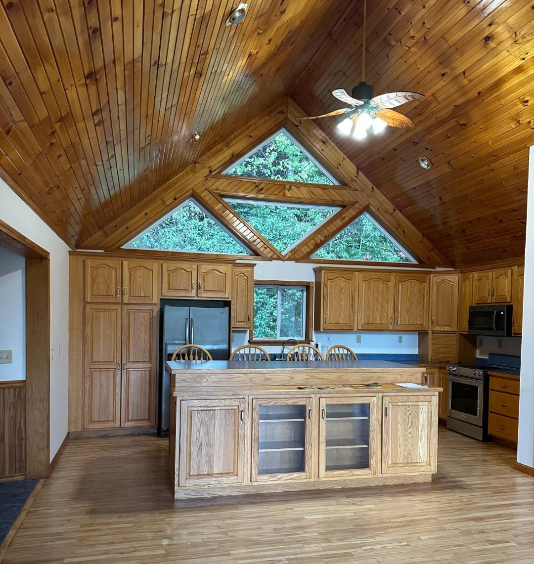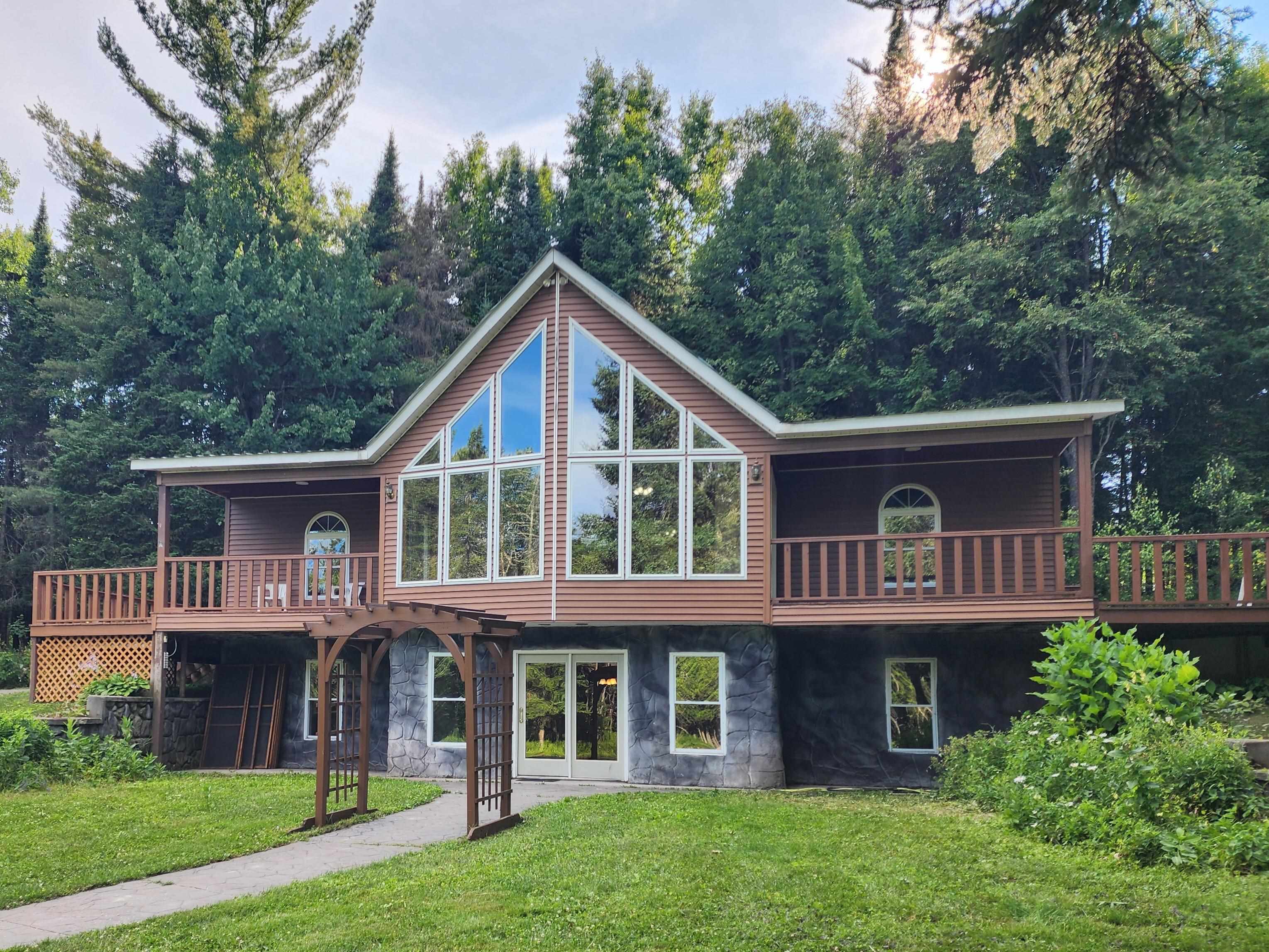 HERE IS YOUR CHANCE TO OWN A CHALET in the northern foothills of the Adirondack Park! Enjoy being 45 minutes from Lake Placid, the heart of the Adirondack, and access to an abundance of trails and waterways to hike, x-country ski, snowmobile, and paddle. This custom built home on 8 acres of land overlooks 2 ponds stocked with bullhead and trout and plenty wildlife roaming the area, all to be enjoyed from the floor to ceiling double paned windows or full sized deck. The main floor great room has cathedral ceilings done off with knotty pine, floor to ceiling windows, and beautiful hard wood floors. In the kitchen area you have a center island with lots of storage and matching custom made solid oak cabinets. Be sure and check out the pantry and all the pull-outs with it! Did I mention the windows?! No ordinary framed windows for this home. The double paned insulated windows were also custom designed and done off with gorgeous trim. The main floor has a master bedroom with 2 closets, one walk-in, and ensuite with jetted tub, 2 vanities, and separate shower. Main floor also has another bedroom and a smaller room that could be used as an office or sitting area. A lovely perk to this home is the one-ton hoist elevator installed in the kitchen that will take you to the basement area. No stairs to have to climb or carry things up and down! The basement area is a full sized living area consisting of a great room, large bedroom, full bathroom, laundry room with pull-out ironing board, utility room, and what the seller's called a root cellar room that could actually be used as a large pantry or big storage room. Zoned in-floor heat throughout the entire home allows for temperature control in main rooms. Not only that, but you have your choice of either using propane or the outside wood boiler. Here is an honorable mention, the stamped concrete sidewalks can be heated through the wood boiler. No shoveling if you choose! This beautiful home has so much to offer and will give plenty of enjoyment! Call for your showing soon!