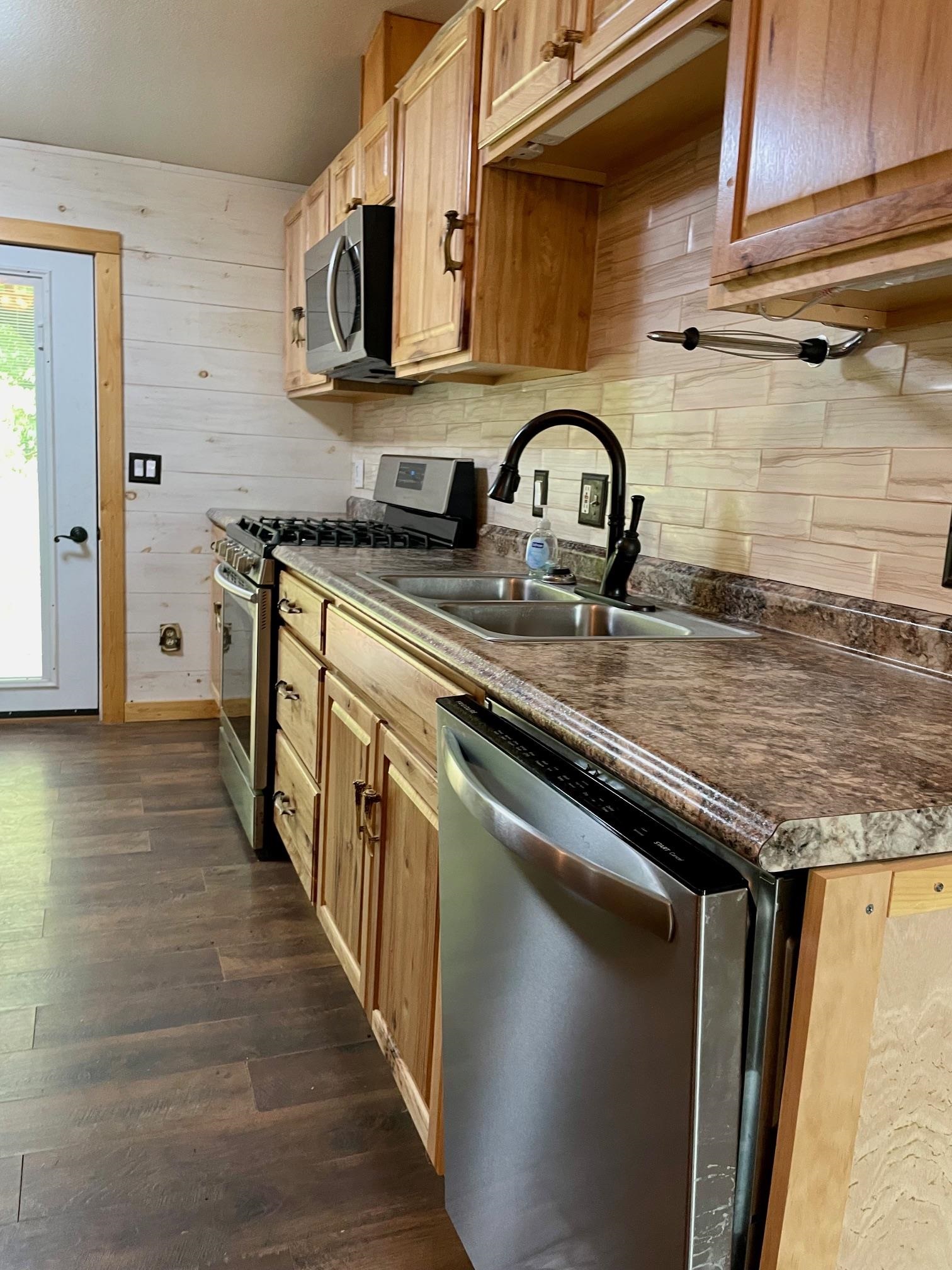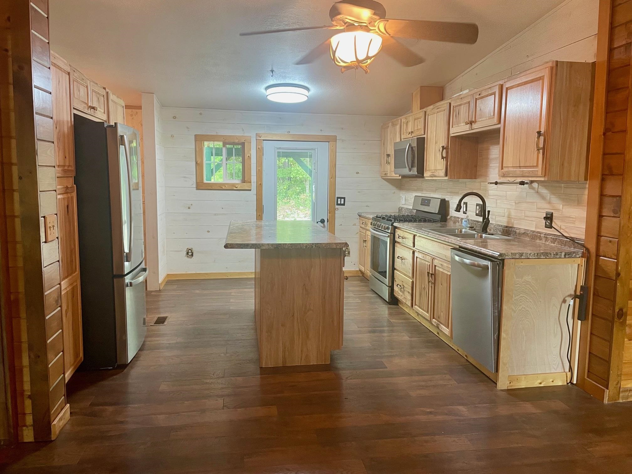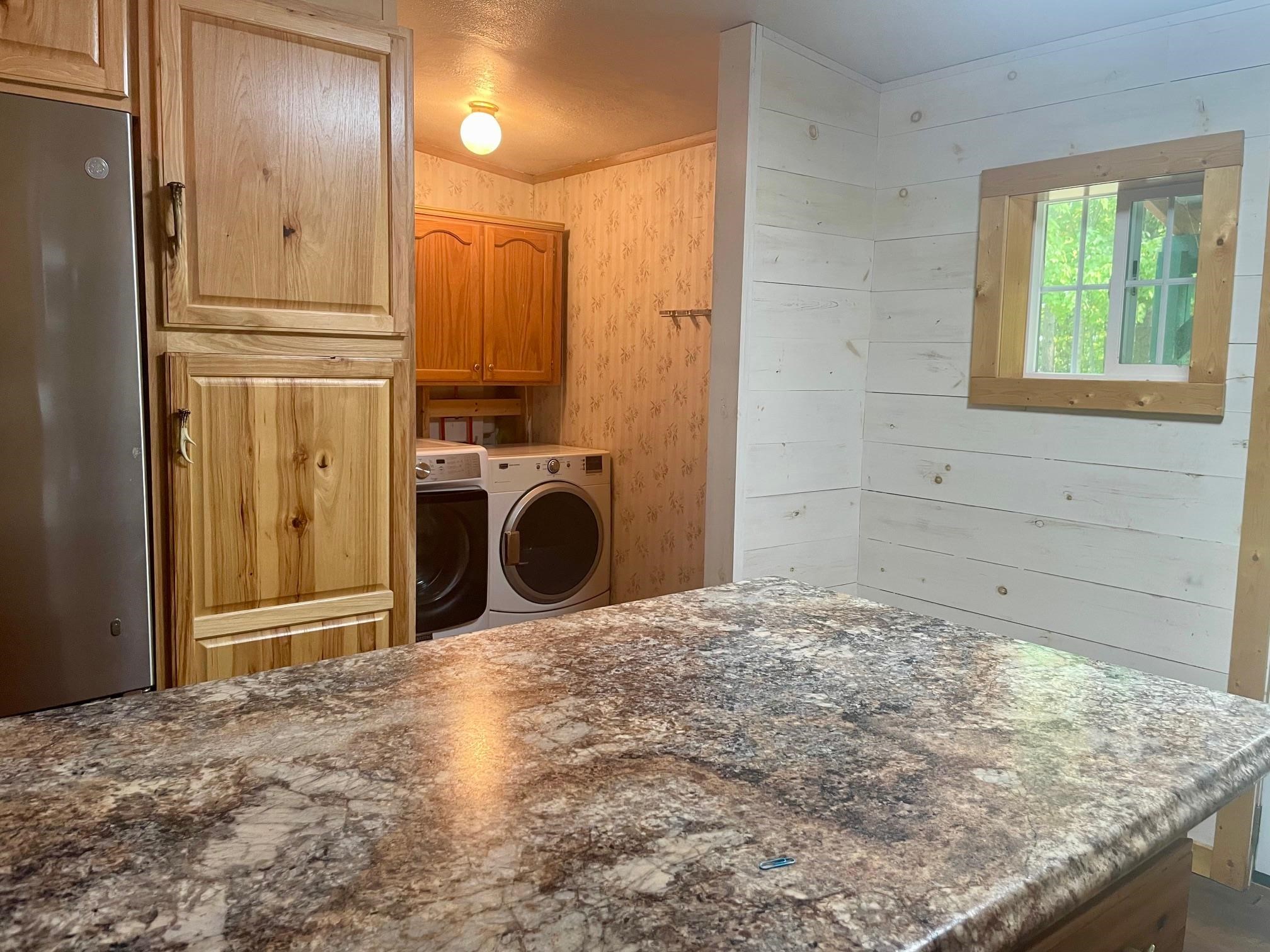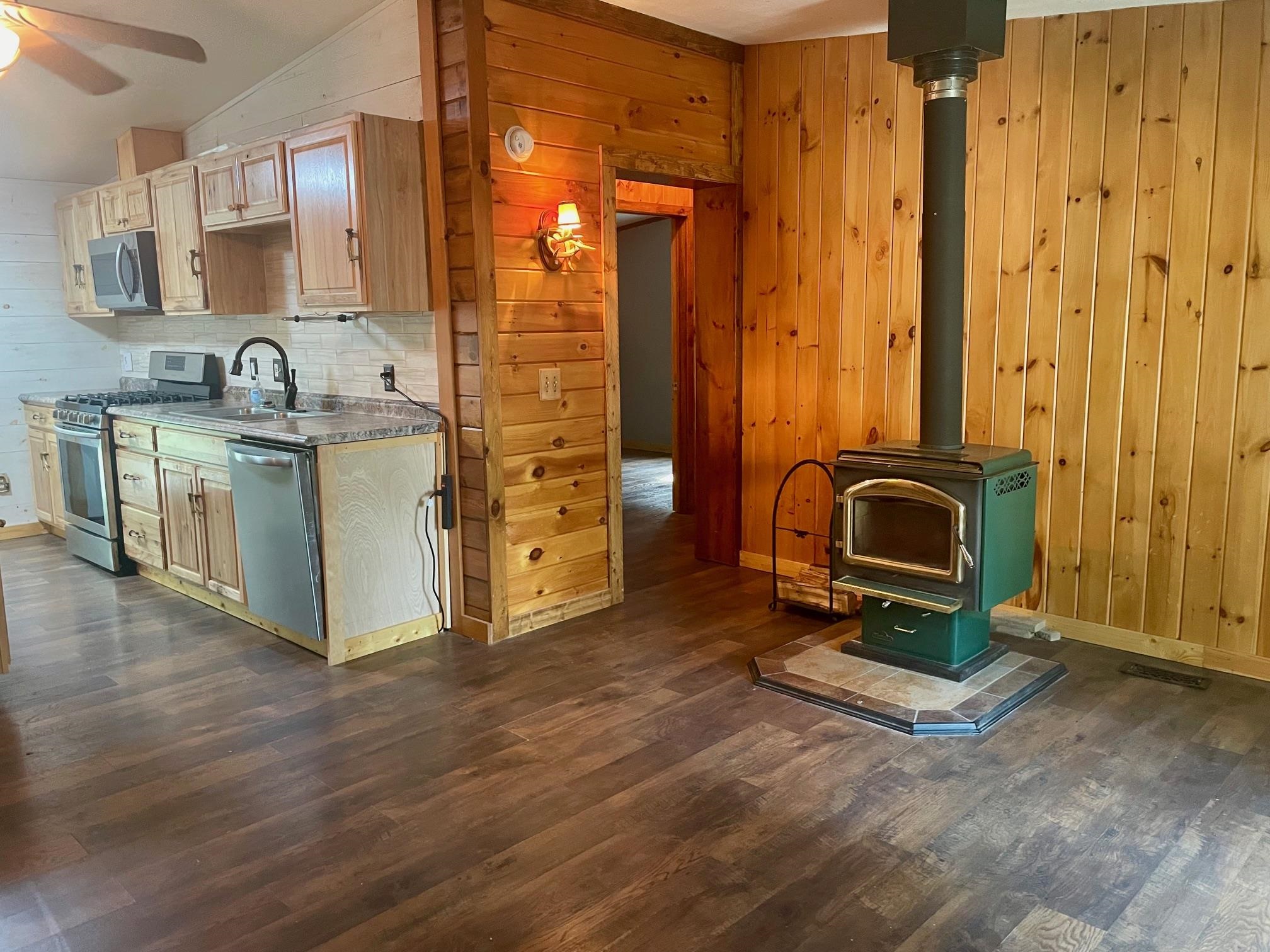 NEW PRICE! Don''t miss out! In the foothills of the Adirondacks, every detail of this home conveys the feeling of a cozy mountain cabin with all the convenience of a modern home. Set back from the road on a paved circular driveway, the home boasts a wood stove, propane heat, and Generac system. The sunny entryway, complete with a generous coat closet, leads to the open living space. Straight ahead, lots of hickory cabinets, including a large island, the wood-look tile backsplash, and all stainless steel appliances make up the efficient kitchen with a laundry room tucked into one corner. To the left, the primary suite has a walk-in closet and bathroom with a custom log double vanity - check out those copper sinks! To the right, a hallway holds a linen closet and leads to a recently updated bathroom and two more bedrooms, both with adequate closets. Seller has installed a new front door and replaced all but two windows with energy-efficient Anderson. The exterior of the home features a deck out the back door, a wood shed (containing wood for the next year or two, included in the sale), a roomy one-car garage, and a storage shed. There is nothing for the new owners to do but pack their bags and move on in.