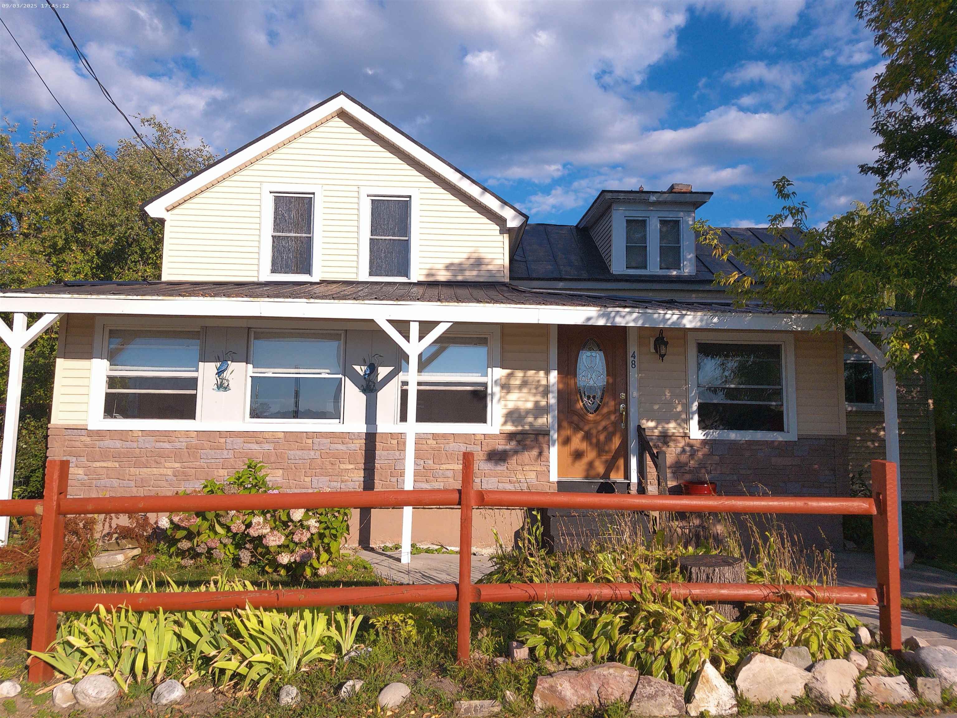 A four-bedroom house in the Village of Hammond offers much space for family and guests. A large enclosed porch that opens to the dining area and living room welcomes you home. French doors open to a spacious kitchen with extra room for future additions. A full bath and two bedrooms complete the first floor. Two separate sets of stairs lead to the second floor to two more bedrooms and an additional smaller room that may be just the space to add another bathroom and/or laundry room. A newer back deck connects to a large yard that is ideal for gardening, creating a play area for children, setting up an outdoor entertainment space, or building a garage. Amish-built storage buildings were also recently added to the property. Home features vinyl siding with insulation board under the siding. Public sewer. A well on the border of the property is shared with the neighbor. Pressure tank is less than two years old and the pump for the water is controlled by this property.