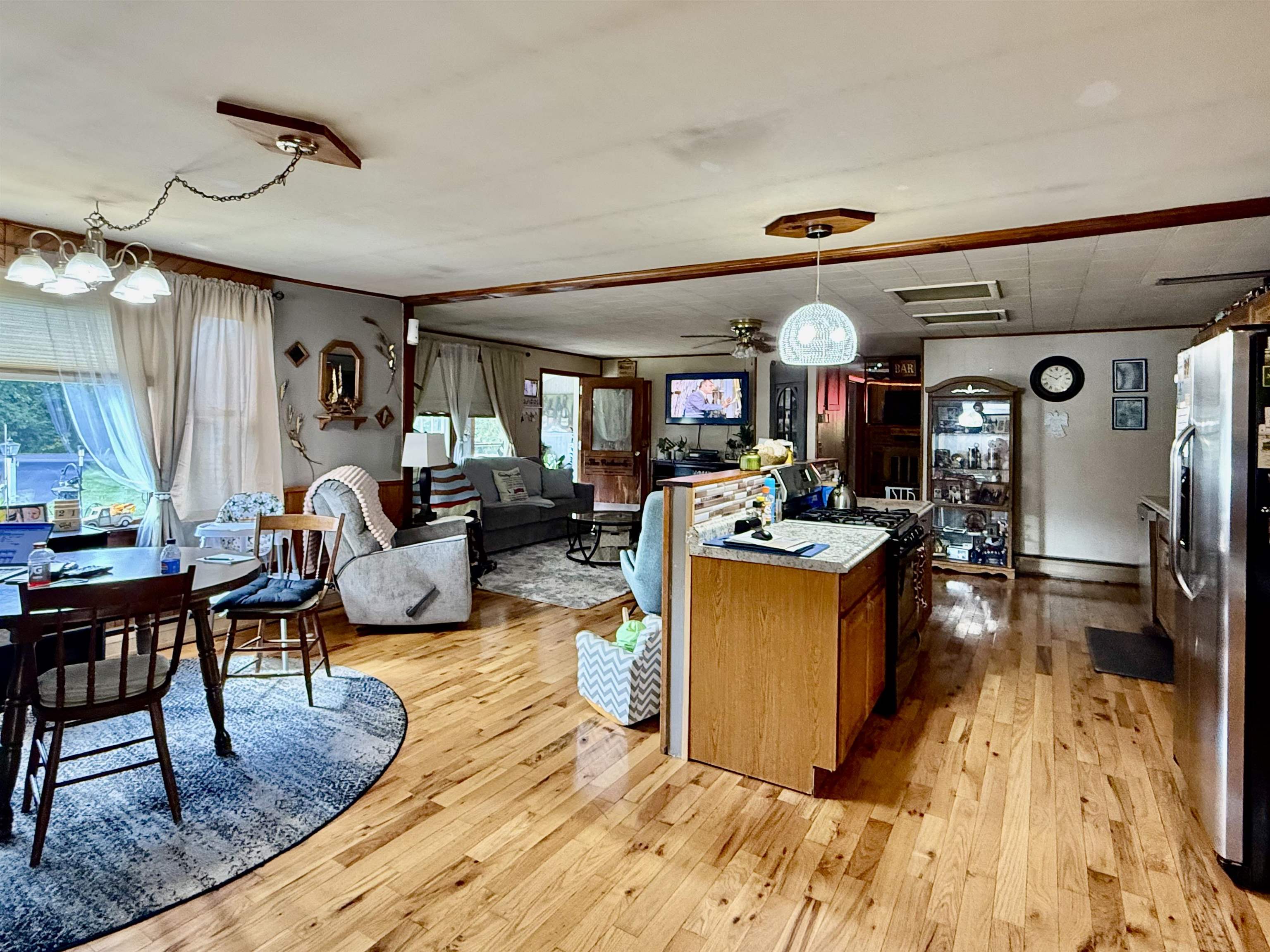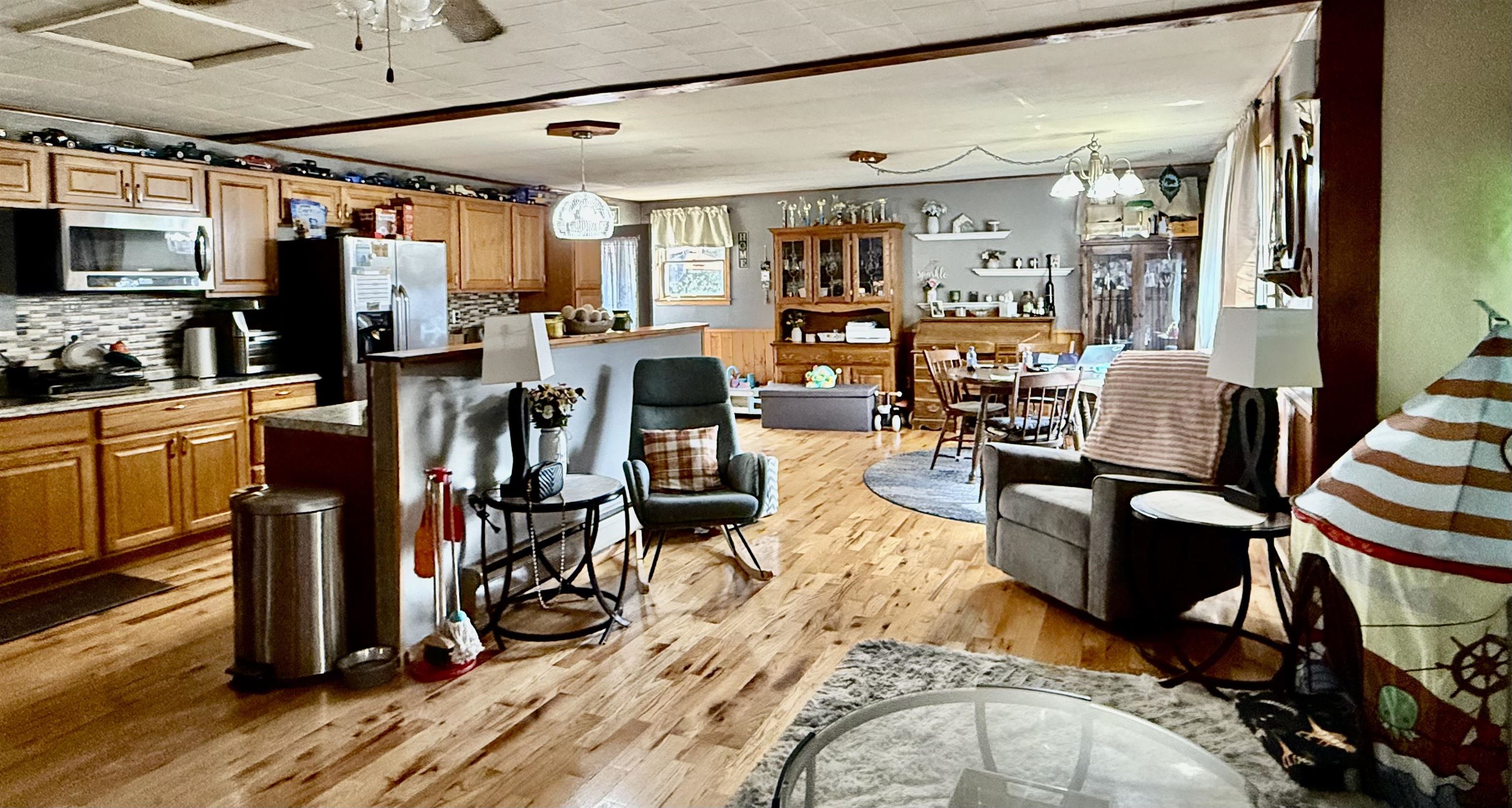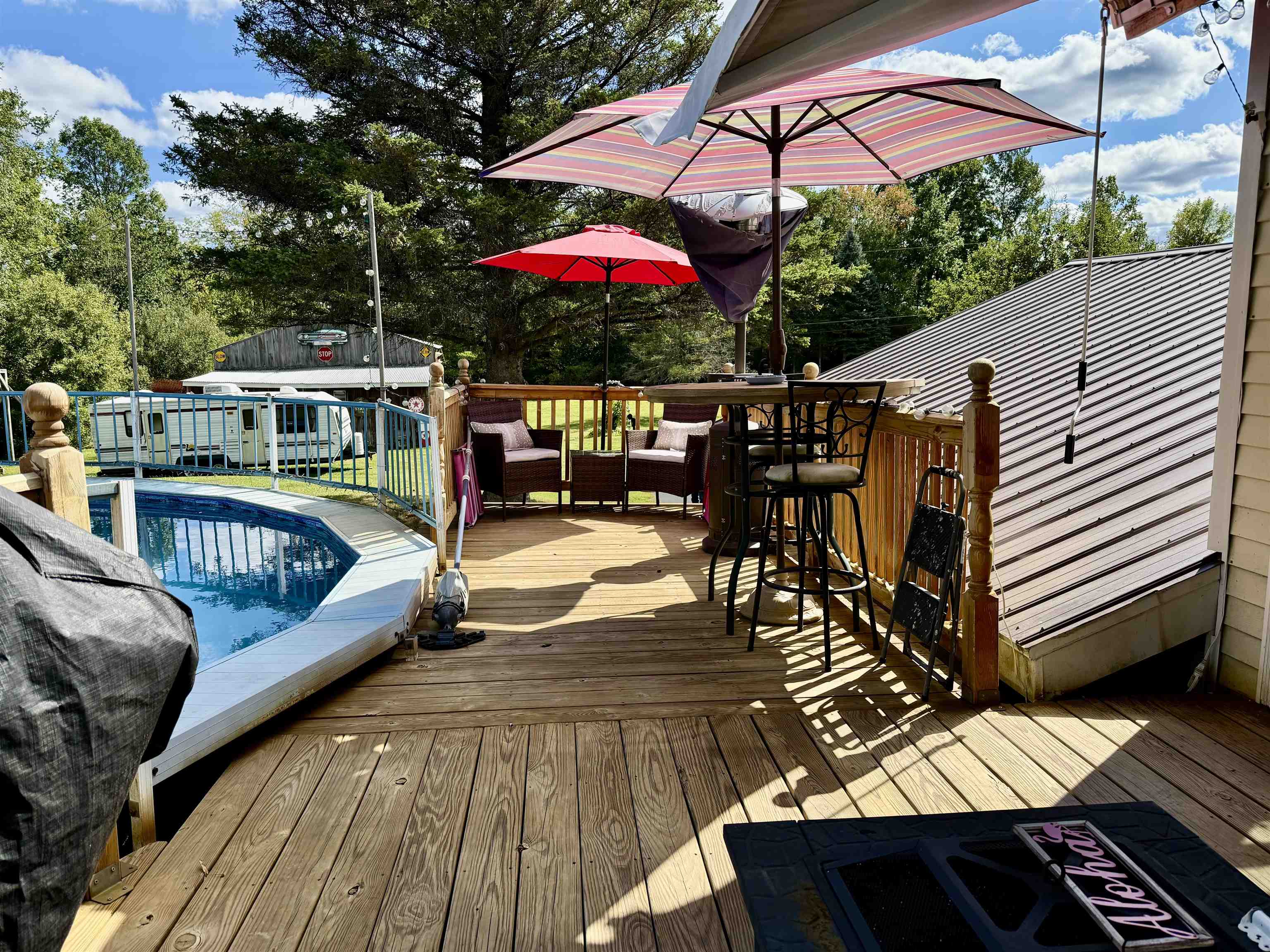 Discover country living with this charming 3-bedroom, 2-bath ranch-style home situated on 8.7 beautiful acres in the township of Potsdam, but in Canton School District. This well-maintained property features a spacious open-concept layout with a cozy fireplace, an updated kitchen, and a new deck perfect for outdoor entertaining. Enjoy the summer months in the above ground pool with a walk around deck with string lighting or gather around the fire pit on cool evenings. The home includes a 2-car attached garage, a large paved driveway, and two septic systems for added convenience. A standout feature is the massive storage barn that can accommodate up to six vehicles—ideal for hobbyists, car enthusiasts, or extra storage needs. The land is dotted with eight mature apple trees and offers ample space for gardening, recreation, or future expansion. This is a rare opportunity to enjoy privacy, functionality, and scenic beauty all in one property - just minutes from town - schedule your showing soon!