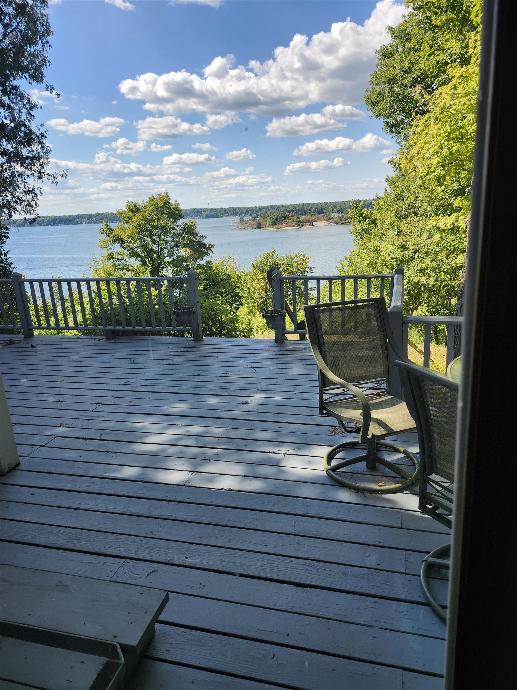 Experience the perfect blend of riverfront elegance and artistic charm in this stunning contemporary home overlooking the Saint Lawrence River. Built in 1990 and thoughtfully updated, this property offers panoramic water views, a private tram that carries you down the hillside to a deep-water dock, and a shoreline ideal for swimming and boating. View the 3D Tour with this link https://northcountry360tours.com/20LangbrookLane Inside, the home welcomes you with a sunlit living room featuring hardwood floors, beamed ceilings, and dramatic floor-to-ceiling windows that frame the river. The kitchen is spacious and functional, offering ample cabinetry, generous counter space, and a built-in dining area that makes entertaining effortless. Upstairs, the primary and second bedrooms both enjoy breathtaking views, separated by a cozy reading and napping nook. The large bathroom includes a jetted corner tub, a separate shower, and a vanity with abundant counter space and storage. A second full bathroom is located on the main floor, along with a rear entry that houses the laundry area and additional closet space. The exterior is equally impressive, with a large garage and plenty of paved parking. Above the garage, a fully equipped guest suite includes a kitchen, full bath, living room, and bedroom—ideal for visitors or potential rental income. The surrounding gardens are filled with artistic touches, creating a peaceful and inspiring outdoor environment. Recent upgrades include a new septic system installed in 2020 and a new roof added in 2021. This property is more than a home—it''s a lifestyle. Whether you''re seeking a year-round residence or a seasonal escape, this riverfront retreat offers luxury, privacy, and a deep connection to nature.
