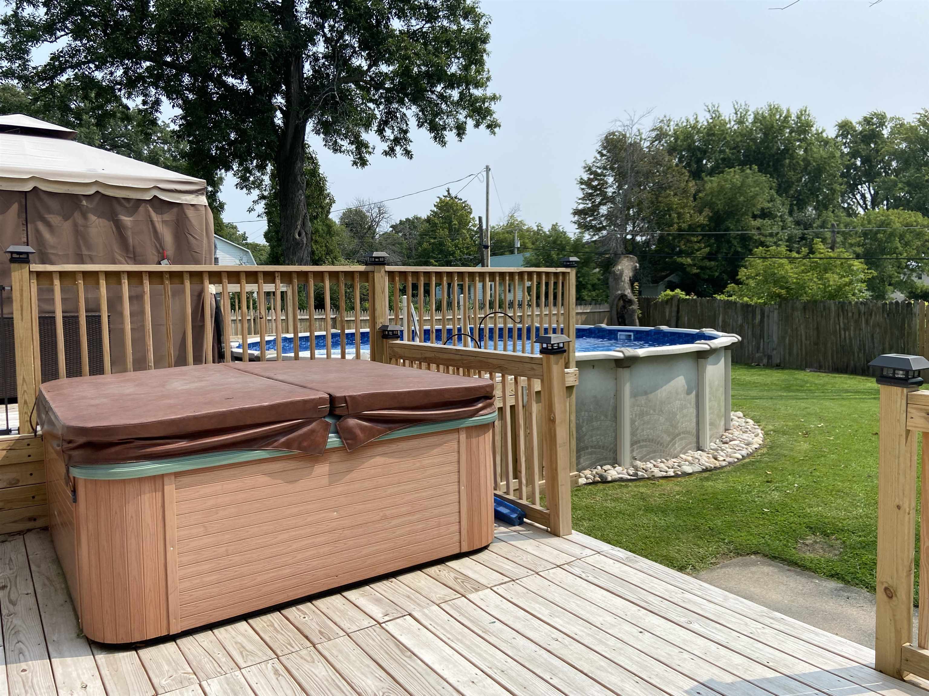 BEAUTIFULLY REMODELED HOME in the Village. This charming home has been recently updated and is stunning. It has a huge updated kitchen with all new stainless steel appliances, flooring and countertops. The living room has gleaming hardwood floors, fireplace and fresh paint. The family room has a fireplace with pellet stove, a fabulous stone wall and a half bathroom. Upstairs offers 5 big bedrooms. The primary bedroom has new flooring and a remodeled primary bathroom which offers jet tub, separate shower, new vanity and more. There is a third bathroom for the additional bedrooms. The home has all new light fixtures, updated replacement windows, two sets of sliding glass doors to large back deck. The home heats with a 4 zone gas hot water furnace. The exterior has a newer roof on the house, covered walkway, 2 car attached garage and a wonderful wrap around front porch. There is also a brand new fenced in back yard along with pool, deck and large shed. So many wonderful updates you better look today! Seller is motivated!