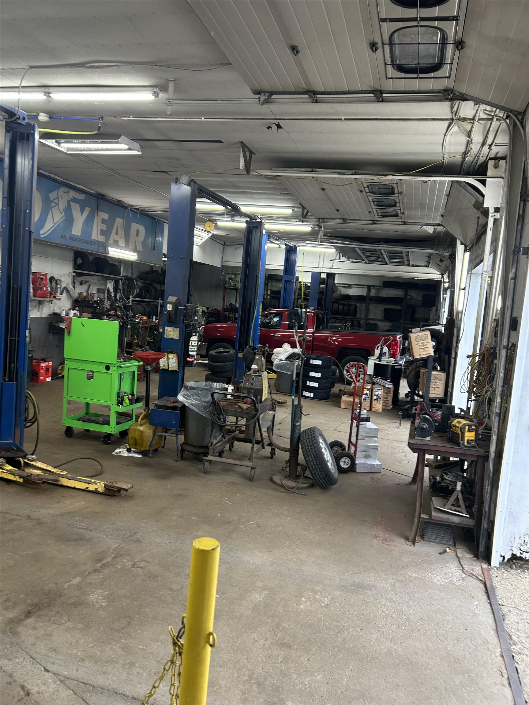 Exceptional opportunity to own a fully-operational turnkey automotive repair facility built in 1950. Spanning 4,880 sq ft, this well-established property features four service bays with three lifts, dedicated reception and service area (3420) waiting area (200 square feet), breakroom/office (252 Sq ft), stock and storage rooms. Additional overhead space is used for tire storage. Property is heated heating by two suspended natural gas units and a waste-oil heater. Bonus 1,100 sq ft rental unit provides additional income potential, historically leased for $1,400/month. Owner financing available.