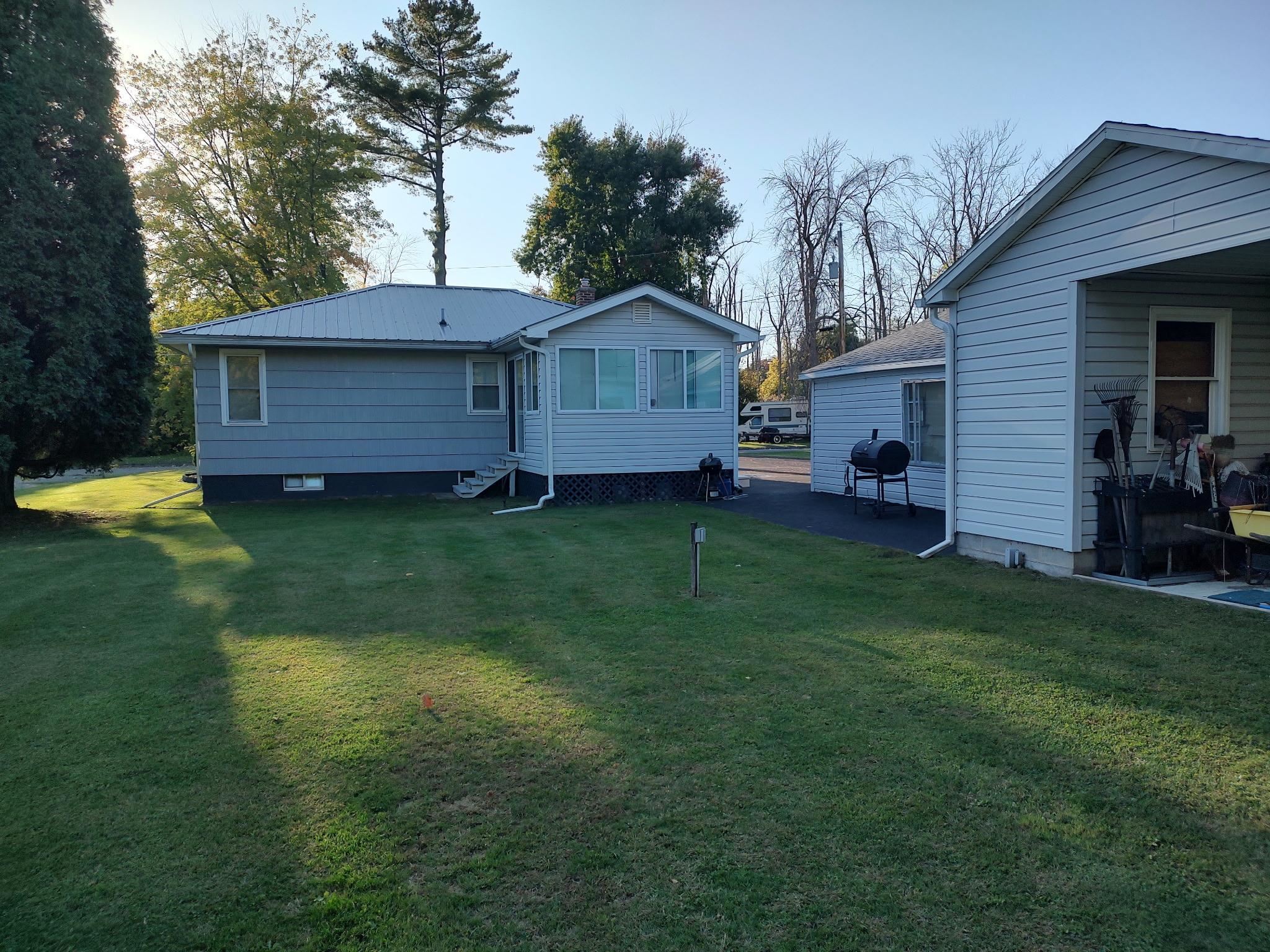 OUTSTANDING RANCH HOME and located on a quiet village street. This home has been lovingly maintained and updated by the owner. There are beautiful hardwood floors in the dining room, bedroom, and living room. The living room has a wonderful gas fireplace and large front window. The addition on the home offers two sets of sliding doors and wall to wall windows. This room could be used as bedroom or family room. The basement area had all new drain tiles done and is finished with two additional bedrooms, bathroom, laundry room and utility room. The home has a newer metal roof and double wide paved driveway. The detached garage is huge. The building could hold as many as 4 cars. The air compressor, work benches, wood stove and electric heater are included with the sale. This fine home won''t last long! Call for a private tour today!
