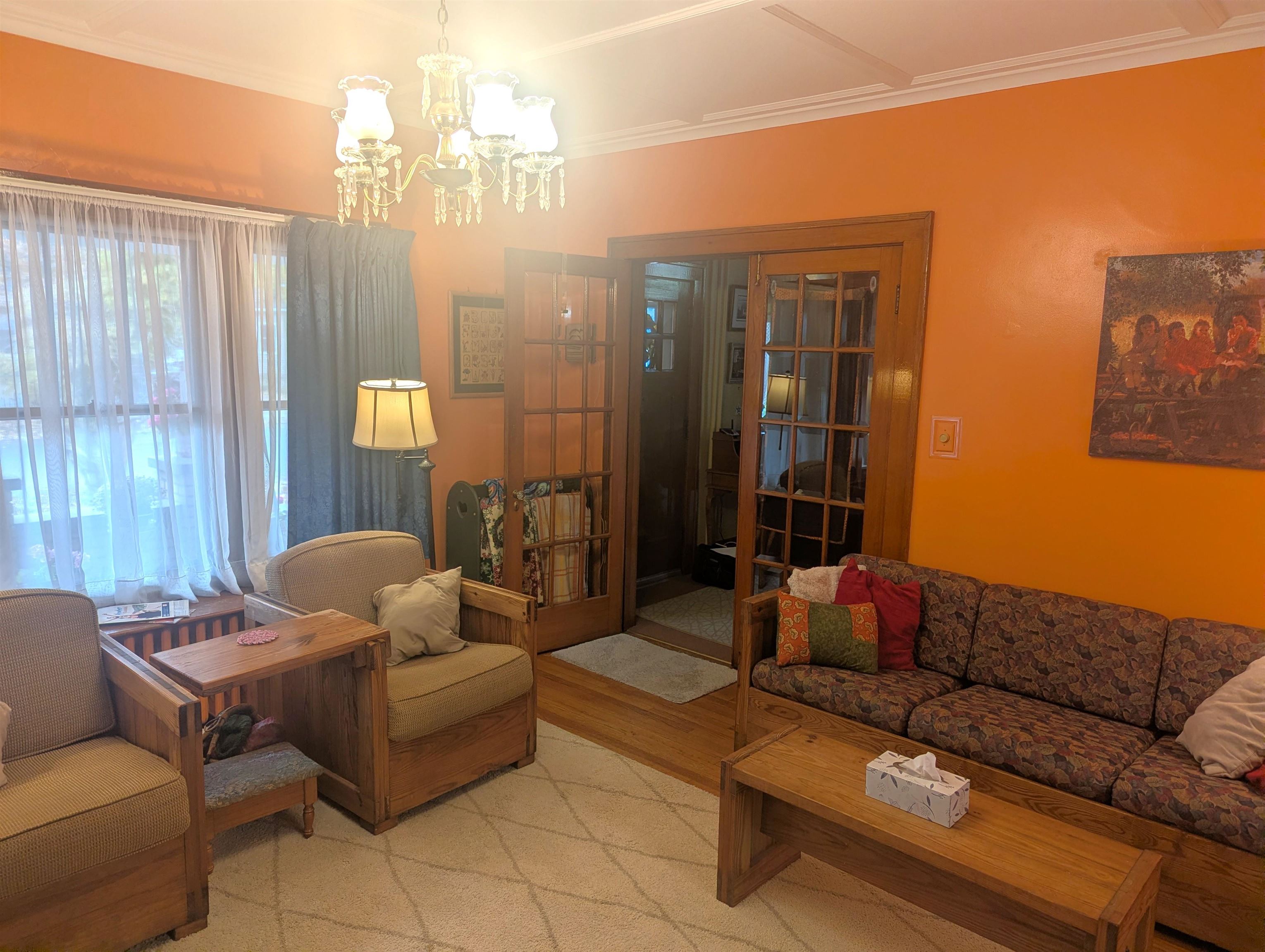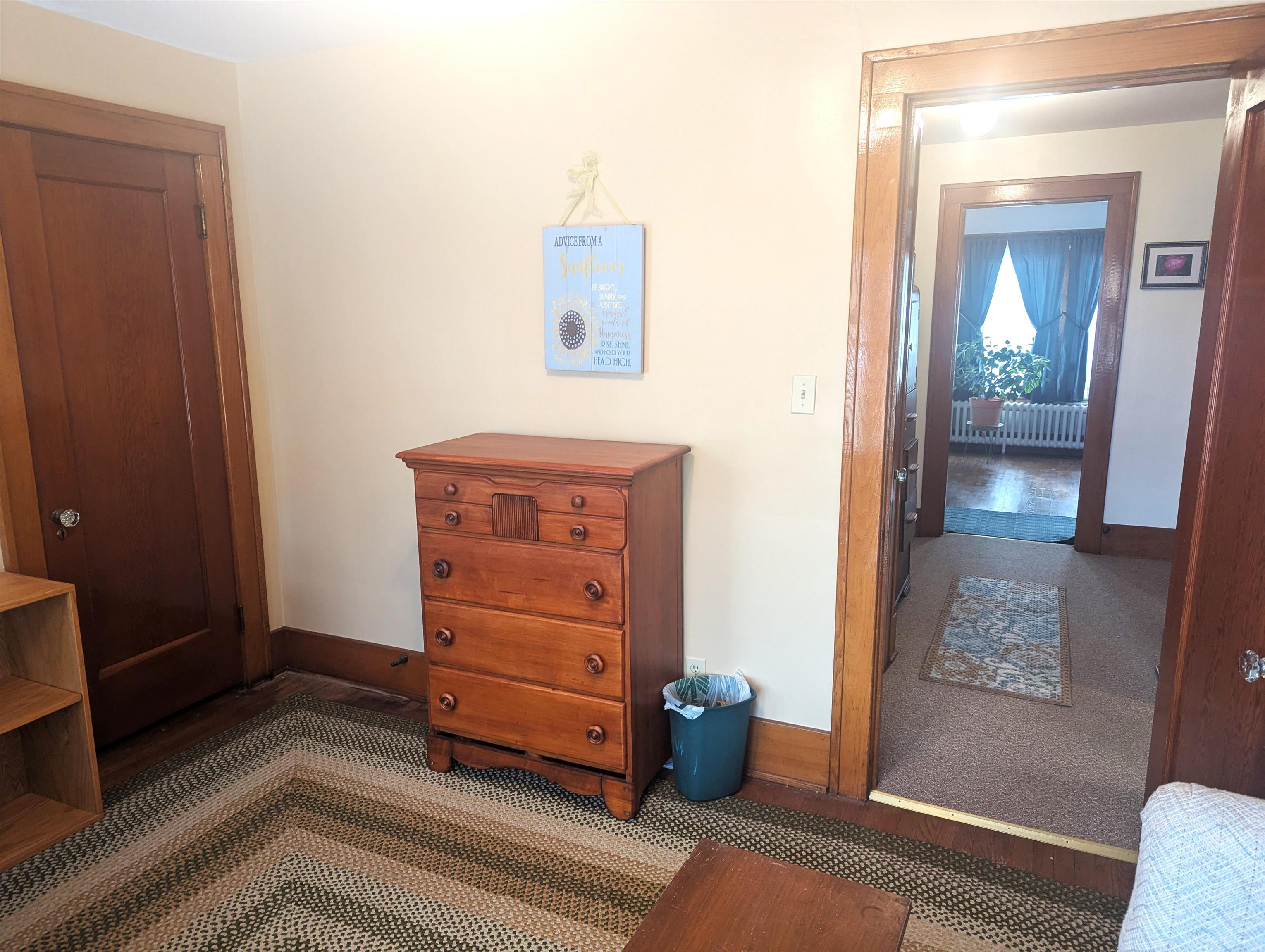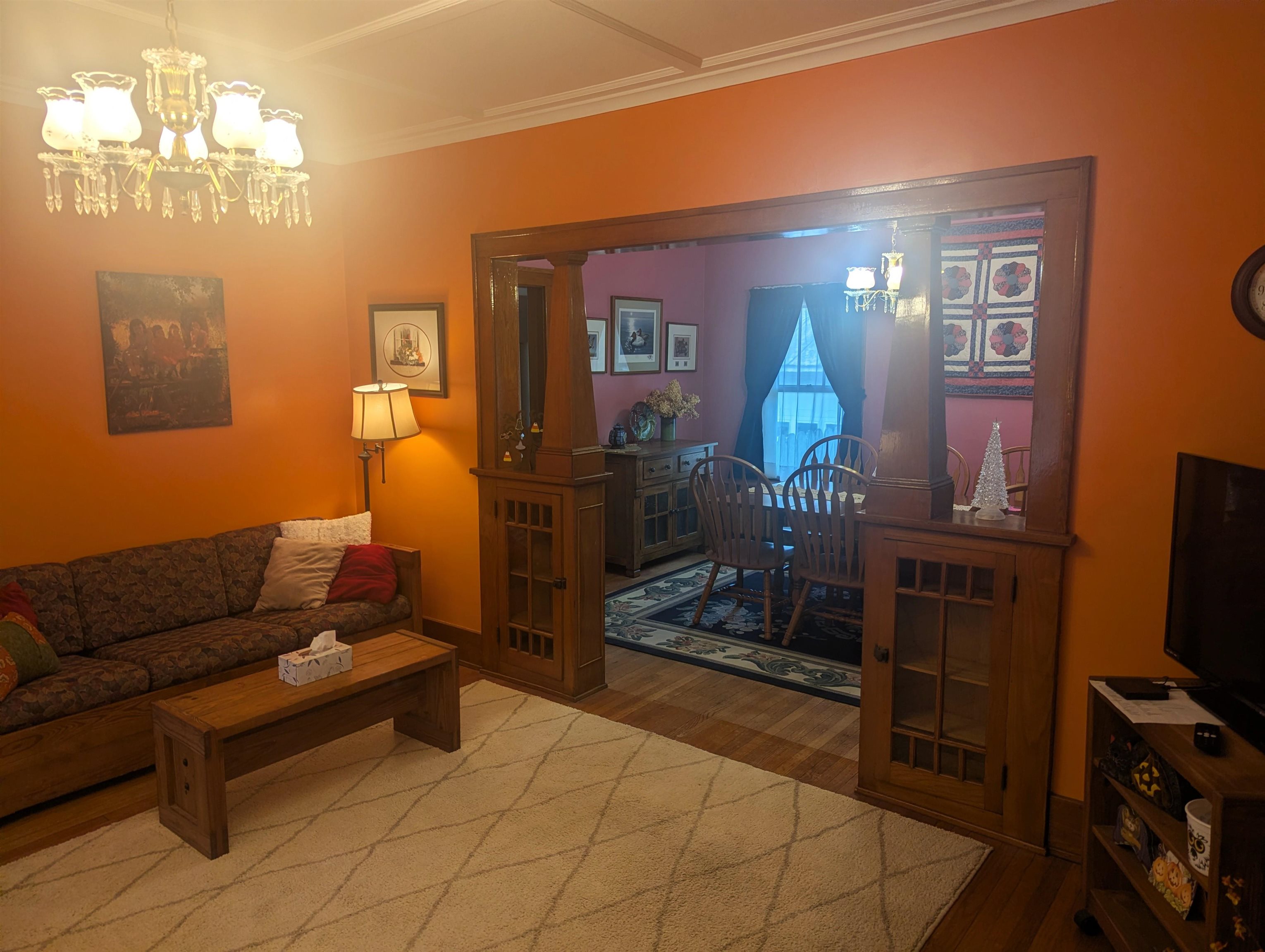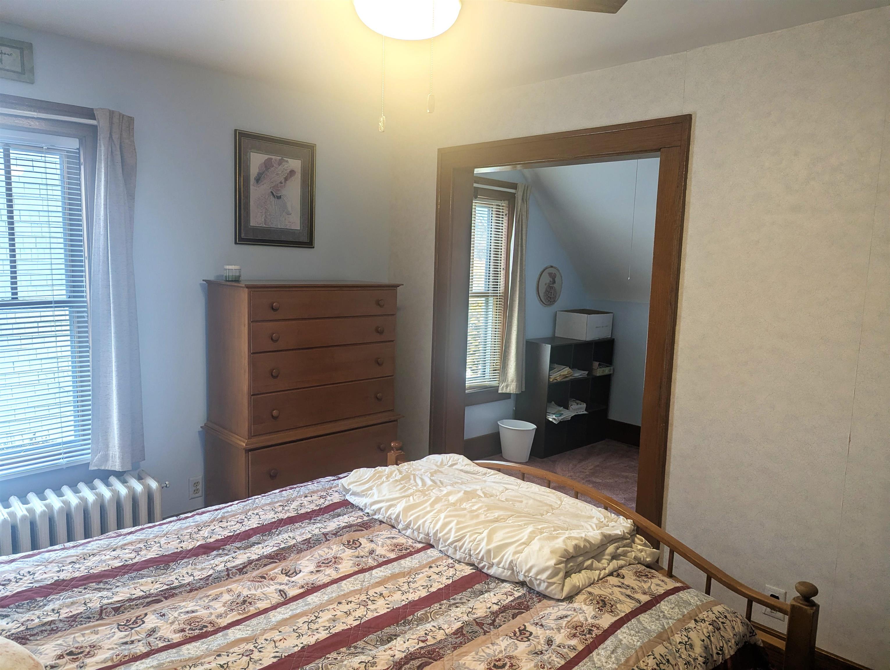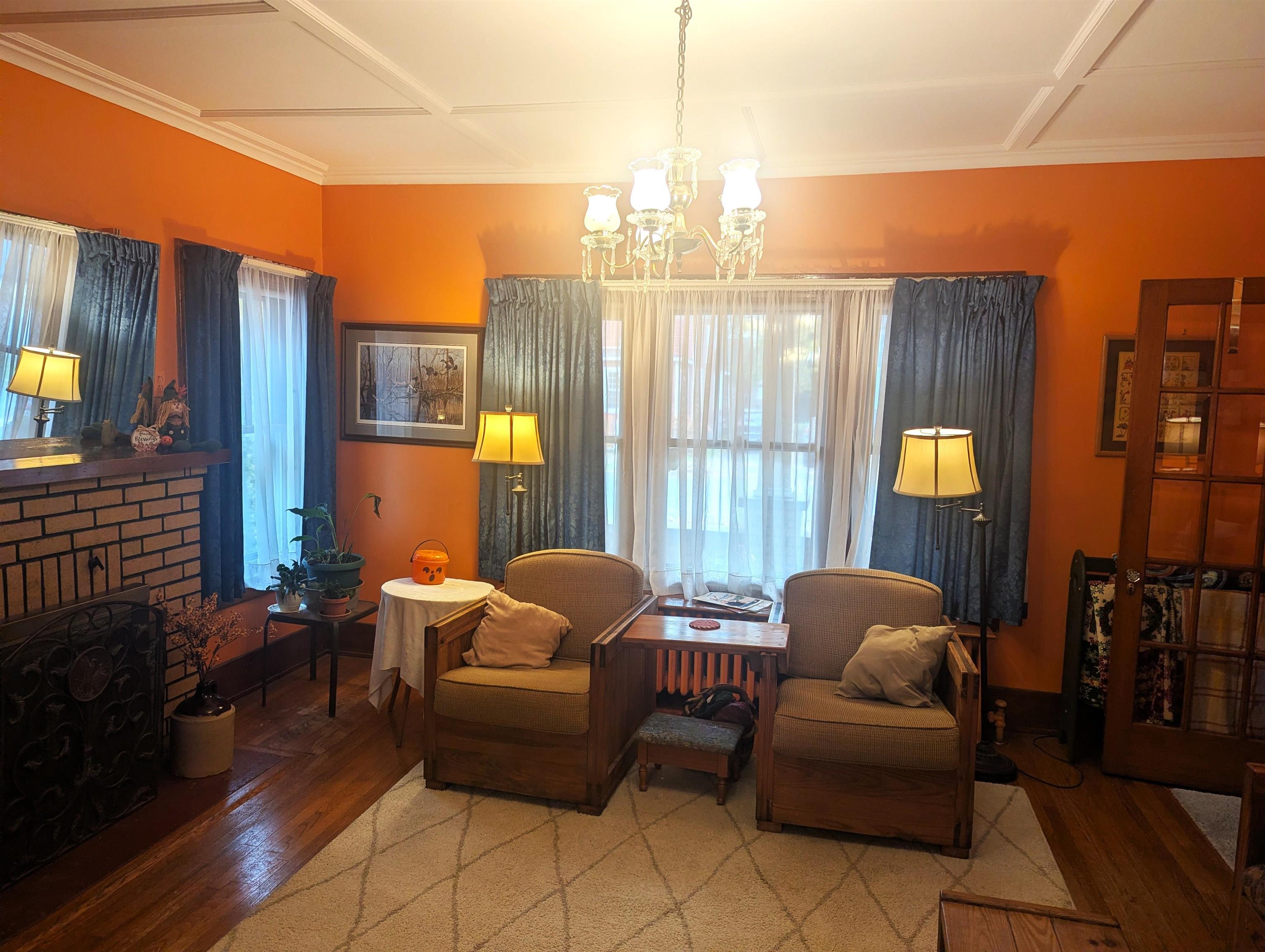Elegance and charm best describe this meticulously cared-for comfortable home. As you walk through the front door from the large, covered porch your attention is immediately drawn to beautiful woodwork, glass doors and hardwood flooring. The rooms are so big that they can easily accommodate many styles of furniture. The kitchen was updated several years ago including a new ceiling, recessed lights, countertops and a kitchen island. The kitchen area can accommodate a table and chairs, or you can opt to dine in the formal dining room. The living room fireplace adds warmth and comfort with the entire home is heated with a boiler hot water heating system. Upstairs you’ll find the bedrooms, a full bathroom and access to the full walkup attic. The front bedroom has a walk-in closet; the middle bedroom features an alcove, which has many optional uses including an office, possibly a place for a newborn crib or additional closet space that adds to the existing closet, to name a few. Other amenities include a large basement w/bathroom, a 2-stall garage, utility shed and fenced-in yard. Located close to the hospital, in a good neighborhood. Call soon to schedule a private showing!