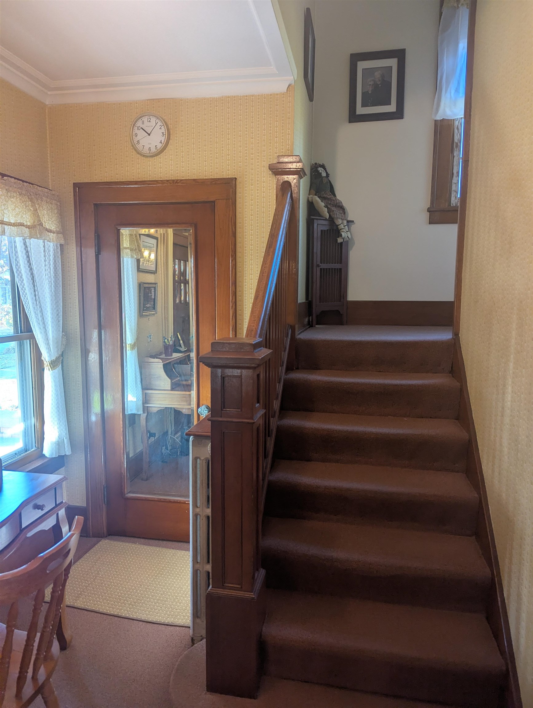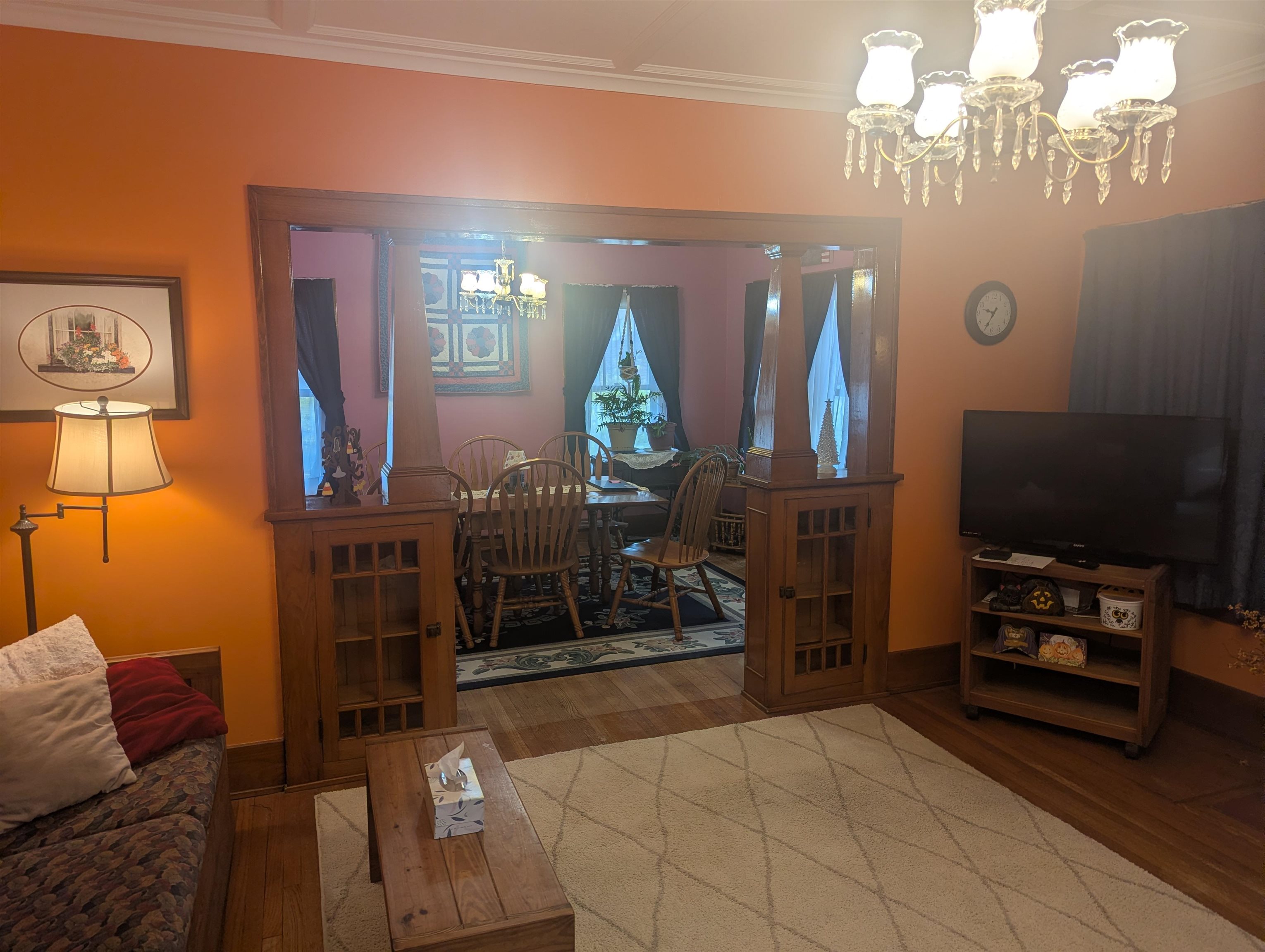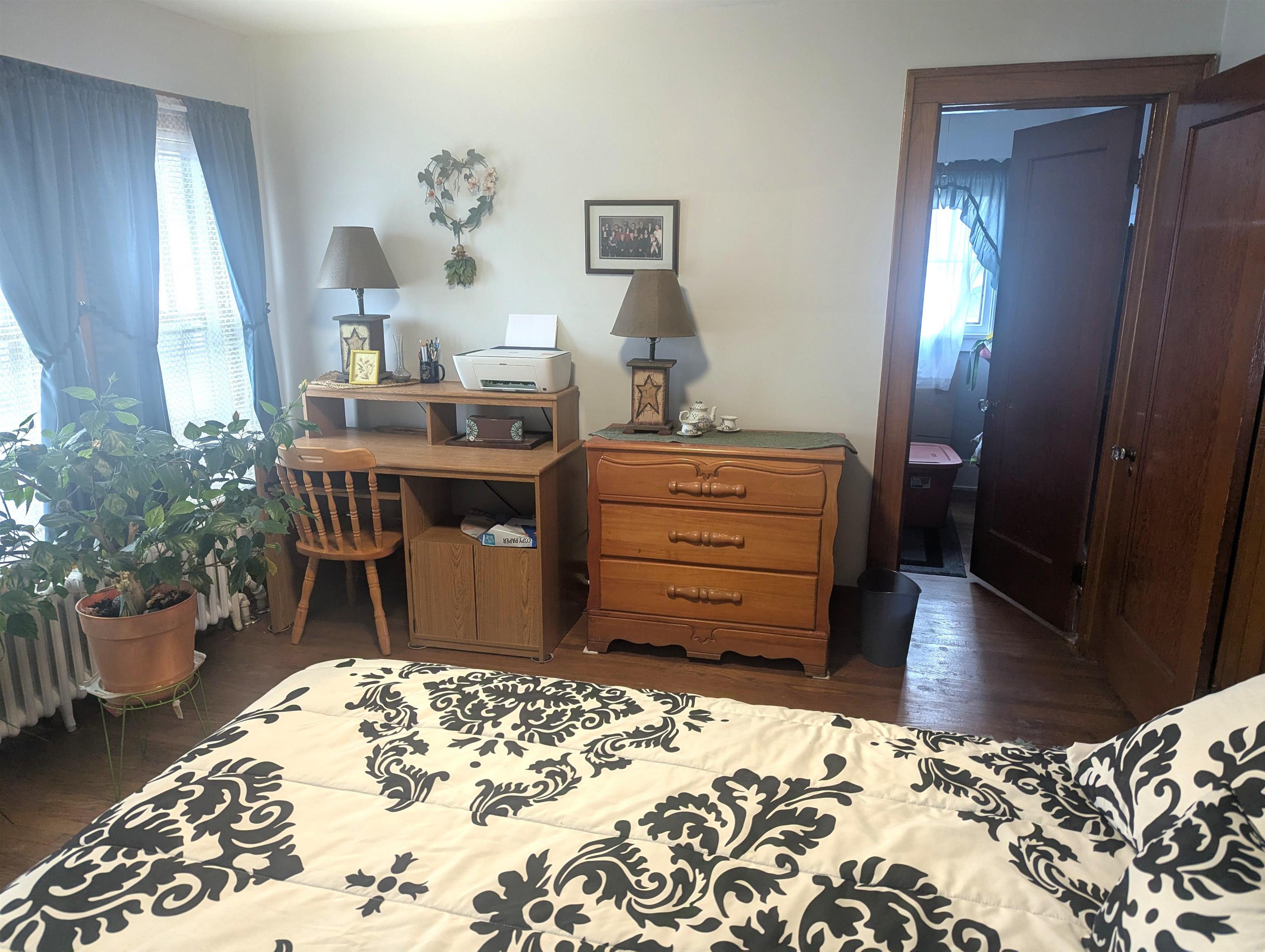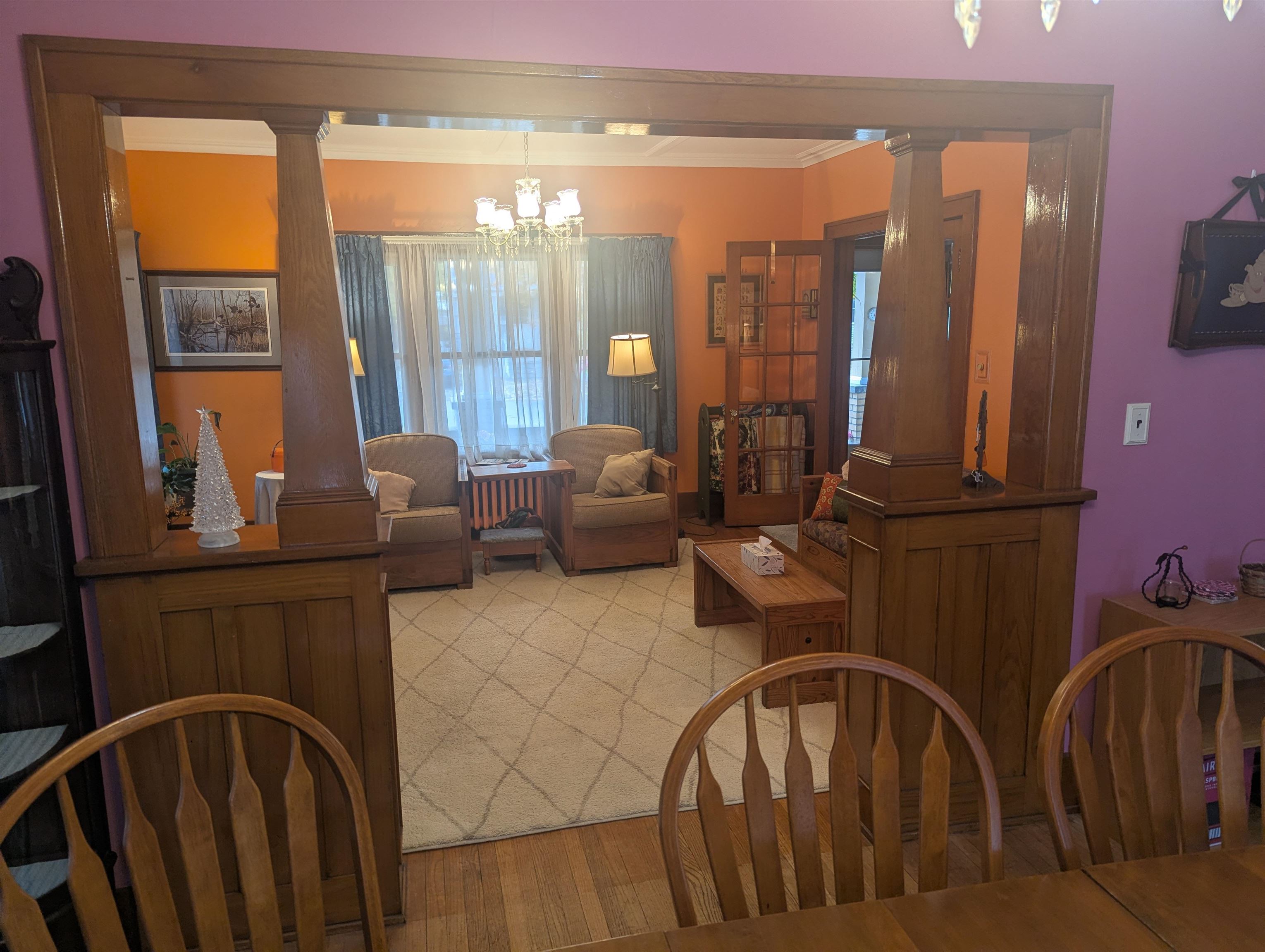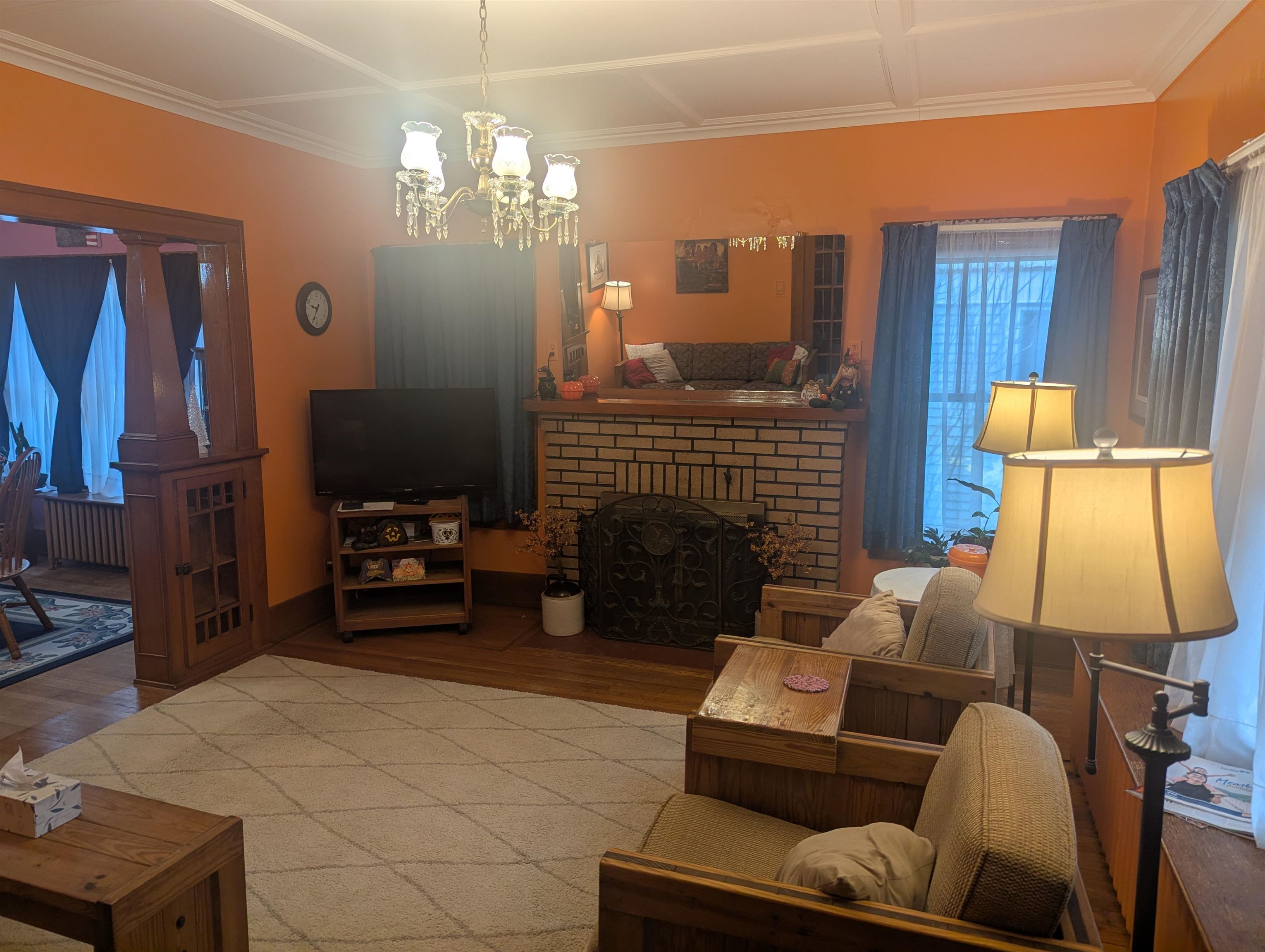 Elegance and charm best describe this meticulously cared-for comfortable home. As you walk through the front door from the large, covered porch your attention is immediately drawn to beautiful woodwork, glass doors and hardwood flooring. The rooms are so big that they can easily accommodate many styles of furniture. The kitchen was updated several years ago including a new ceiling, recessed lights, countertops and a kitchen island. The kitchen area can accommodate a table and chairs, or you can opt to dine in the formal dining room. The living room fireplace adds warmth and comfort with the entire home is heated with a boiler hot water heating system. Upstairs you’ll find the bedrooms, a full bathroom and access to the full walkup attic. The front bedroom has a walk-in closet; the middle bedroom features an alcove, which has many optional uses including an office, possibly a place for a newborn crib or additional closet space that adds to the existing closet, to name a few. Other amenities include a large basement w/bathroom, a 2-stall garage, utility shed and fenced-in yard. Located close to the hospital, in a good neighborhood. Call soon to schedule a private showing!