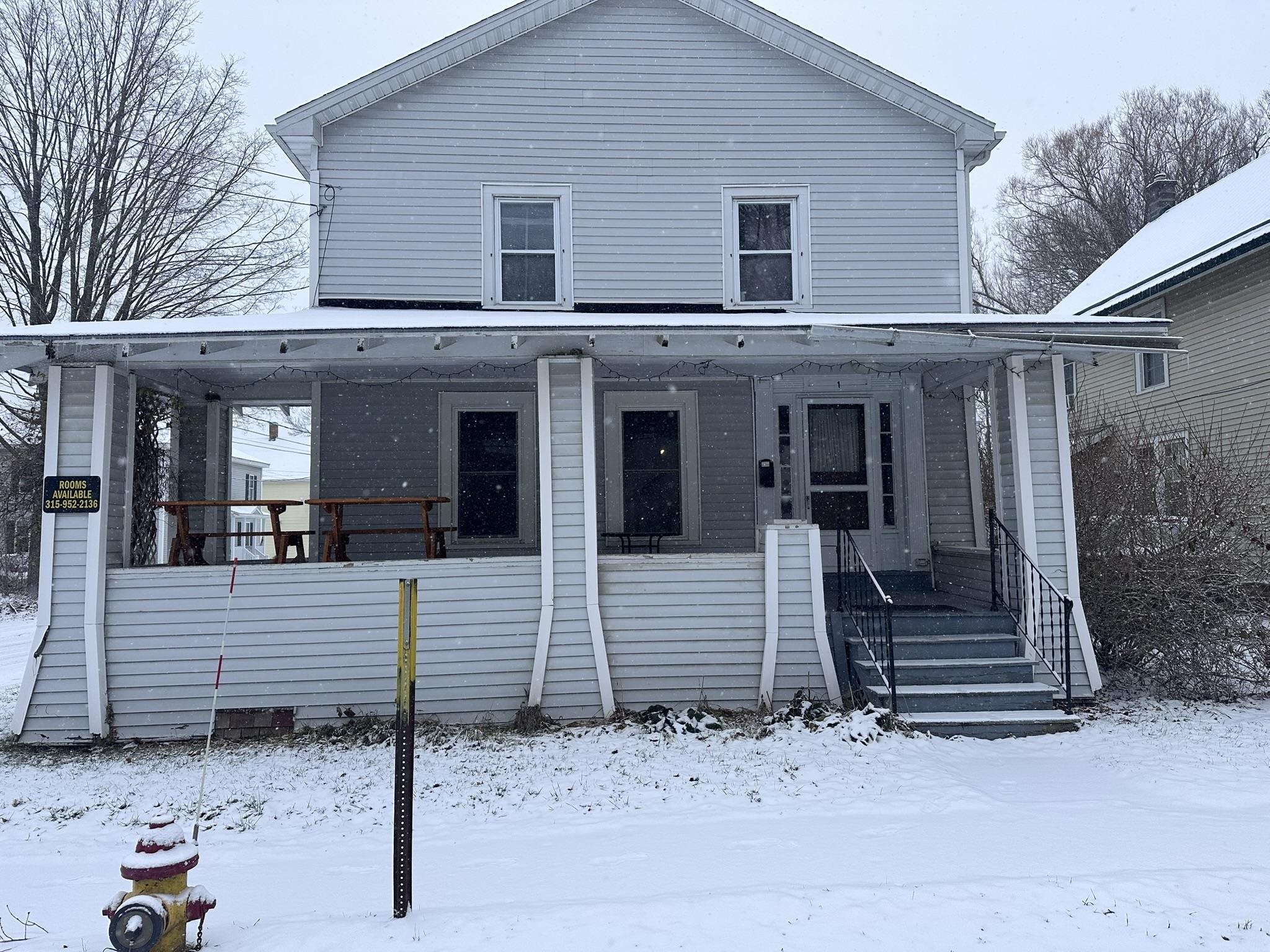Welcome to 11 Hamilton Street — A Versatile 5-Bedroom Investment or Residential Opportunity! This spacious 5-bedroom, 2-bath home offers exceptional flexibility as both a profitable investment property or a comfortable residence. Currently operating as a student rental, this well-maintained home generates positive cash flow with a 9% capitalization rate and reliable tenant occupancy. Whether you’re an investor seeking a turn-key opportunity or a homeowner looking for a generously sized property, 11 Hamilton Street checks every box. Located on a quiet side street, you will find the property very close to both SUNY Potsdam and Clarkson campus as well as downtown Potsdam. Inside, you’ll find beautiful hardwood floors throughout much of the home, adding warmth and character. The first floor features a primary bedroom with ensuite bathroom, a formal dining room, and an oversized living room—perfect for gatherings and entertaining. The welcoming front entry foyer opens from a charming 200 sq. ft. covered porch, offering a peaceful spot to enjoy mornings or unwind after a long day. Upstairs, a large open landing provides versatile multi-use space—ideal for a study area, lounge, or office. Four additional bedrooms (three large, one smaller) and another full bathroom complete the upper level. This property sits on a low-maintenance corner lot with a sizeable parking area behind the home and convenient covered porch entry into the kitchen. The kitchen is equipped with newer appliances, making it both functional and inviting. Additional updates include vinyl siding, vinyl windows, and a newer shingled roof, ensuring long-term durability and efficiency. Listed below assessed value, this home is truly a rare find—offering immediate income potential and/or spacious living at an unbeatable price. Don’t miss your chance to own this well-cared-for, versatile property in a prime location!