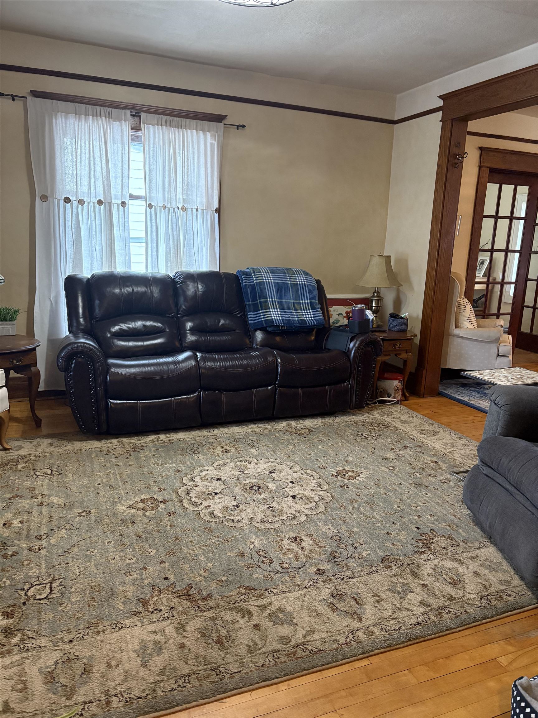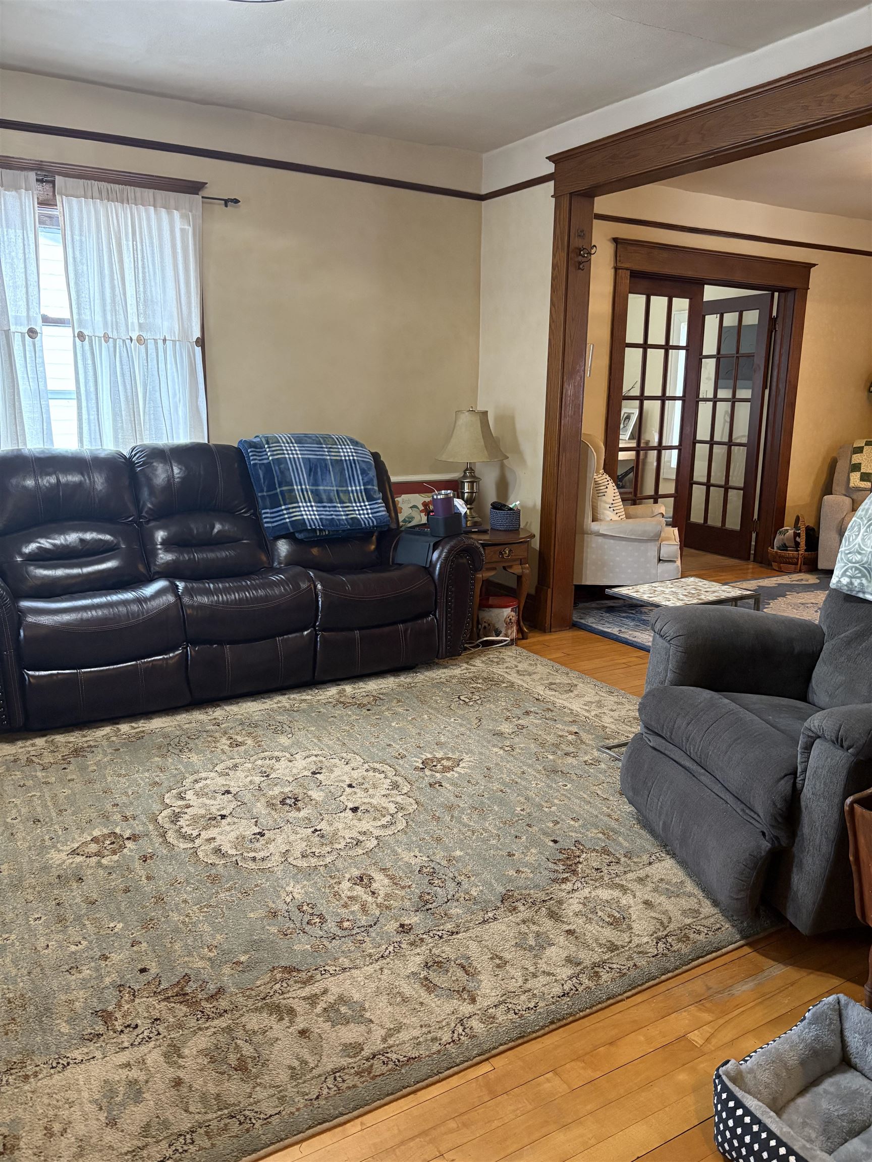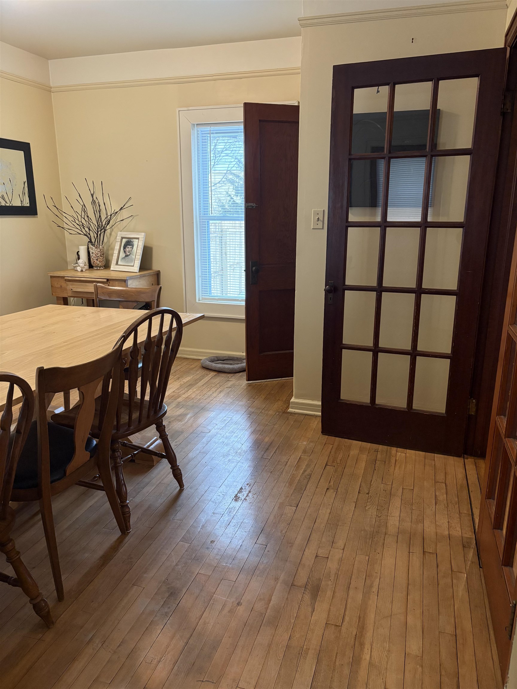 Meticulously maintained, this beautiful home showcases stunning natural woodwork, hardwood flooring, and classic French doors. Updated windows, a gas furnace, and 200-amp circuit breakers provide modern efficiency while preserving timeless charm. The spacious layout features an inviting eat-in kitchen, a formal dining room, and two generous living rooms, ideal for entertaining or everyday living. A finished attic offers additional bedroom space or flexible use options. Outside, enjoy a large newer two-car garage, a paved driveway, a back deck, and a fenced backyard. Relax year-round on the screened front porch or the enclosed second-story porch. A truly exceptional home blending character, comfort, and functionality. This one is a keeper!