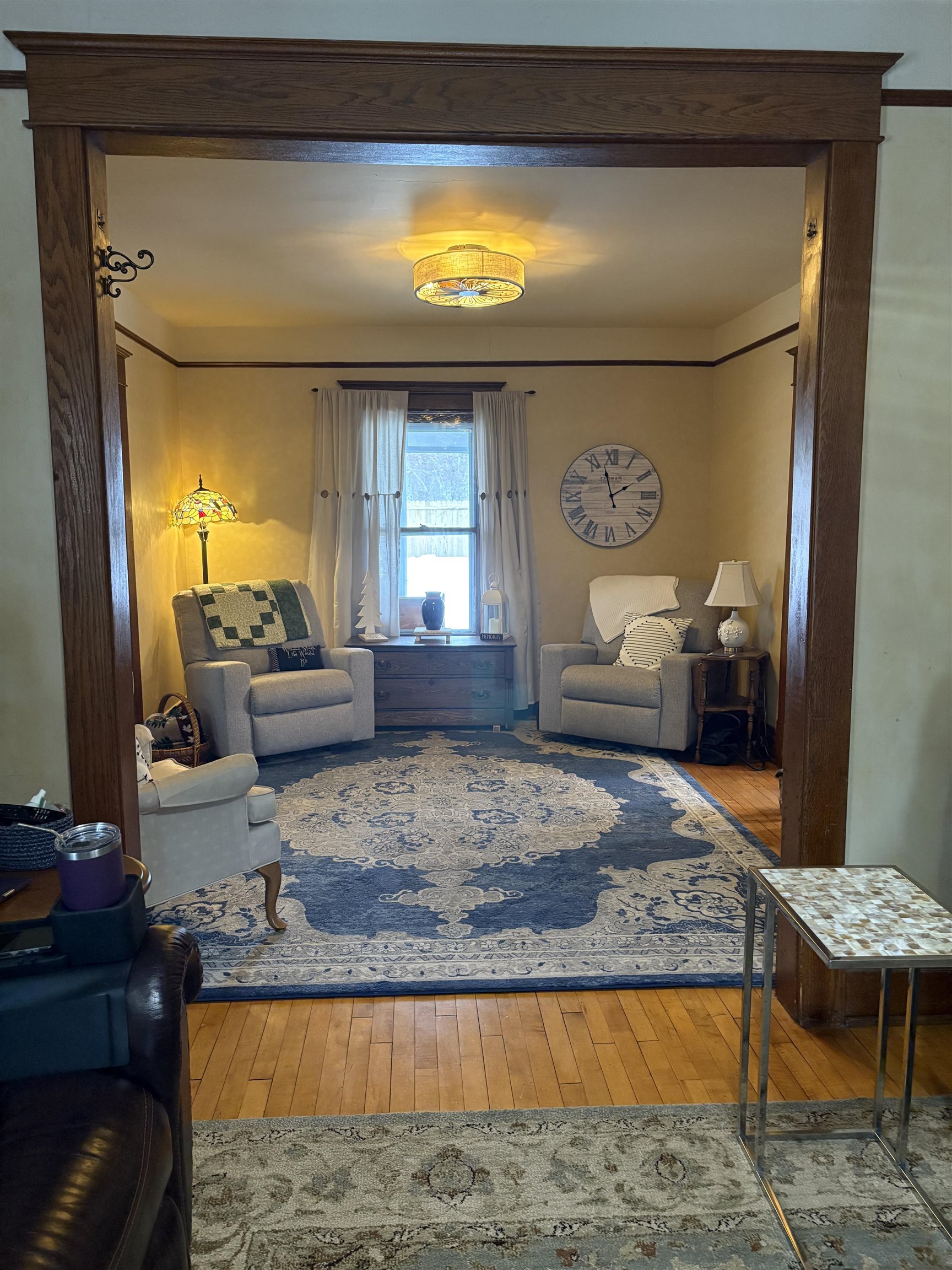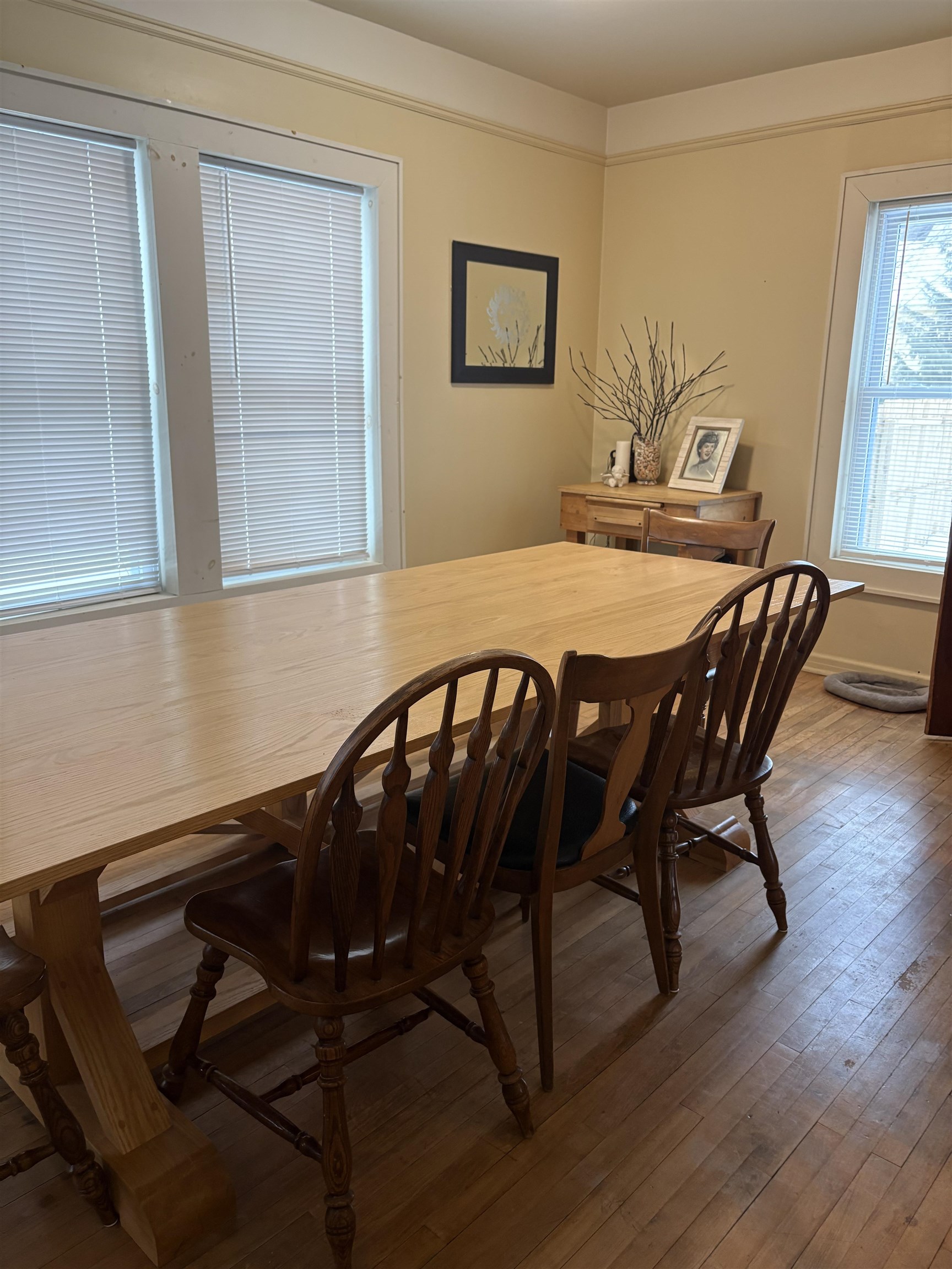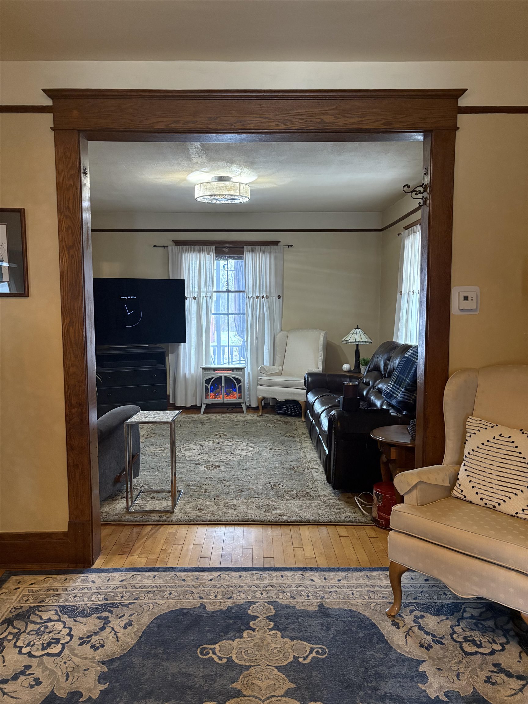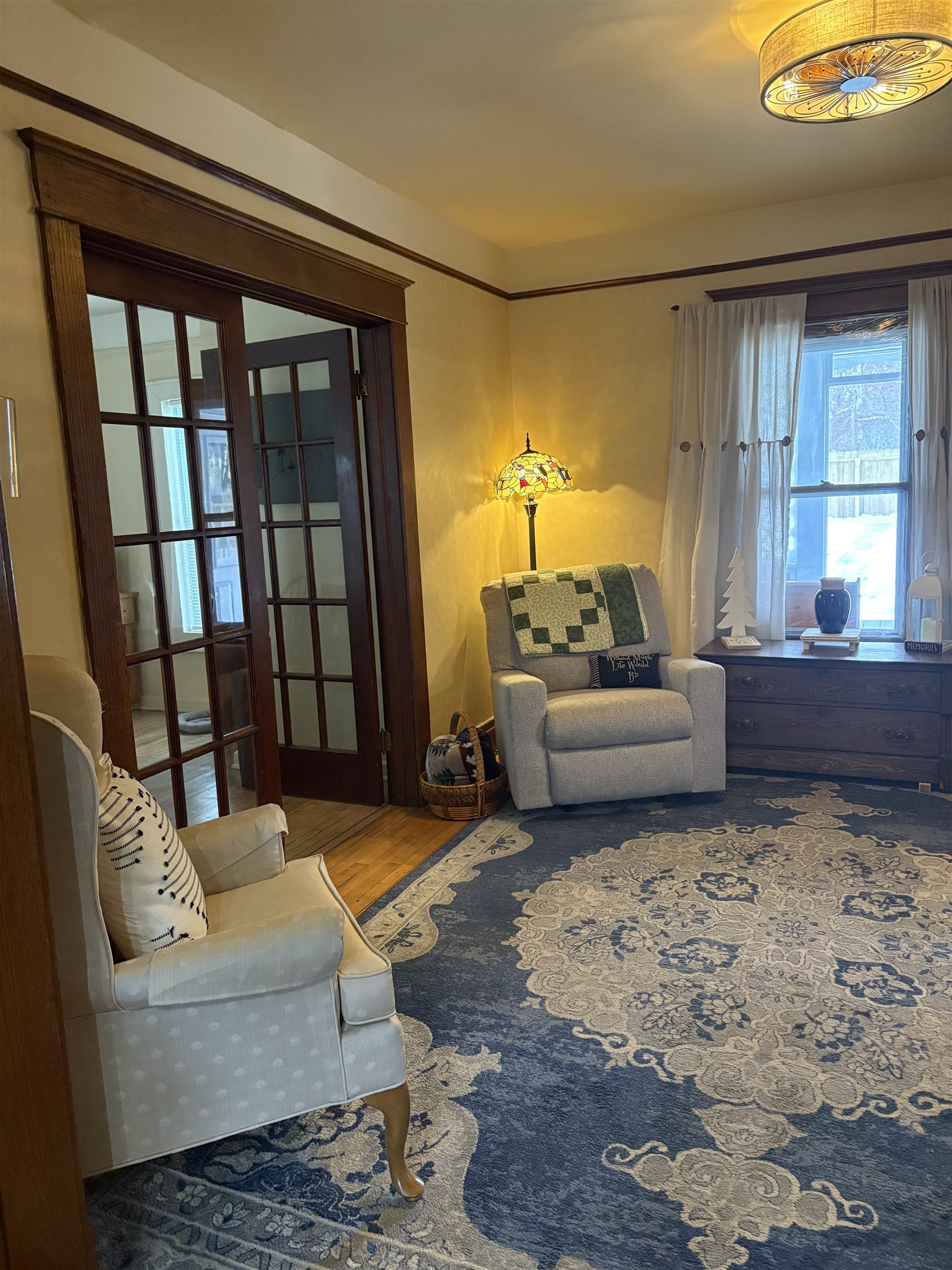 Meticulously maintained, this beautiful home showcases stunning natural woodwork, hardwood flooring, and classic French doors. Updated windows, a gas furnace, and 200-amp circuit breakers provide modern efficiency while preserving timeless charm. The spacious layout features an inviting eat-in kitchen, a formal dining room, and two generous living rooms, ideal for entertaining or everyday living. A finished attic offers additional bedroom space or flexible use options. Outside, enjoy a large newer two-car garage, a paved driveway, a back deck, and a fenced backyard. Relax year-round on the screened front porch or the enclosed second-story porch. A truly exceptional home blending character, comfort, and functionality. This one is a keeper!