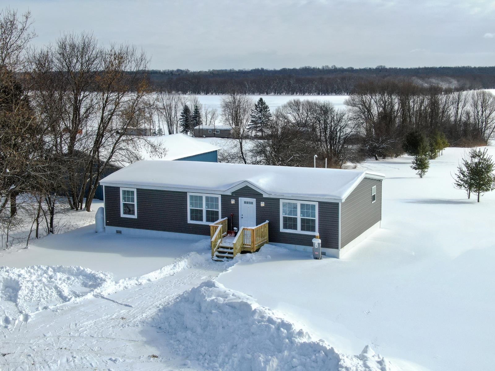 2025 RANCH-STYLE WATERFRONT HOME ON BLACK LAKE This beautifully designed home sits on a gorgeous 1.4-acre level lot overlooking the peaceful waters of Black Lake. With 100 feet of private waterfront, the property offers an ideal setting for anyone who loves nature, recreation, and the tranquility of lakeside living. The home features 3 bedrooms, 2 bathrooms, a master suite, open living area with cathedral ceilings, that create a bright and airy feeling. The kitchen features beautiful hickory cabinets, a large island for family gatherings & entertaining and stainless-steel farmhouse sink & appliances. Throughout the home there is luxury vinyl flooring, offering durability and a clean, contemporary look. Black Lake is widely known for its excellent fishing, making this location perfect for outdoor enthusiasts. This property is only 15 minutes to the St Lawrence River, giving you east access to even more boating and recreational opportunities. This home blends modern comfort with the natural beauty of waterfront living, creating a perfect year -round residence or vacation getaway.