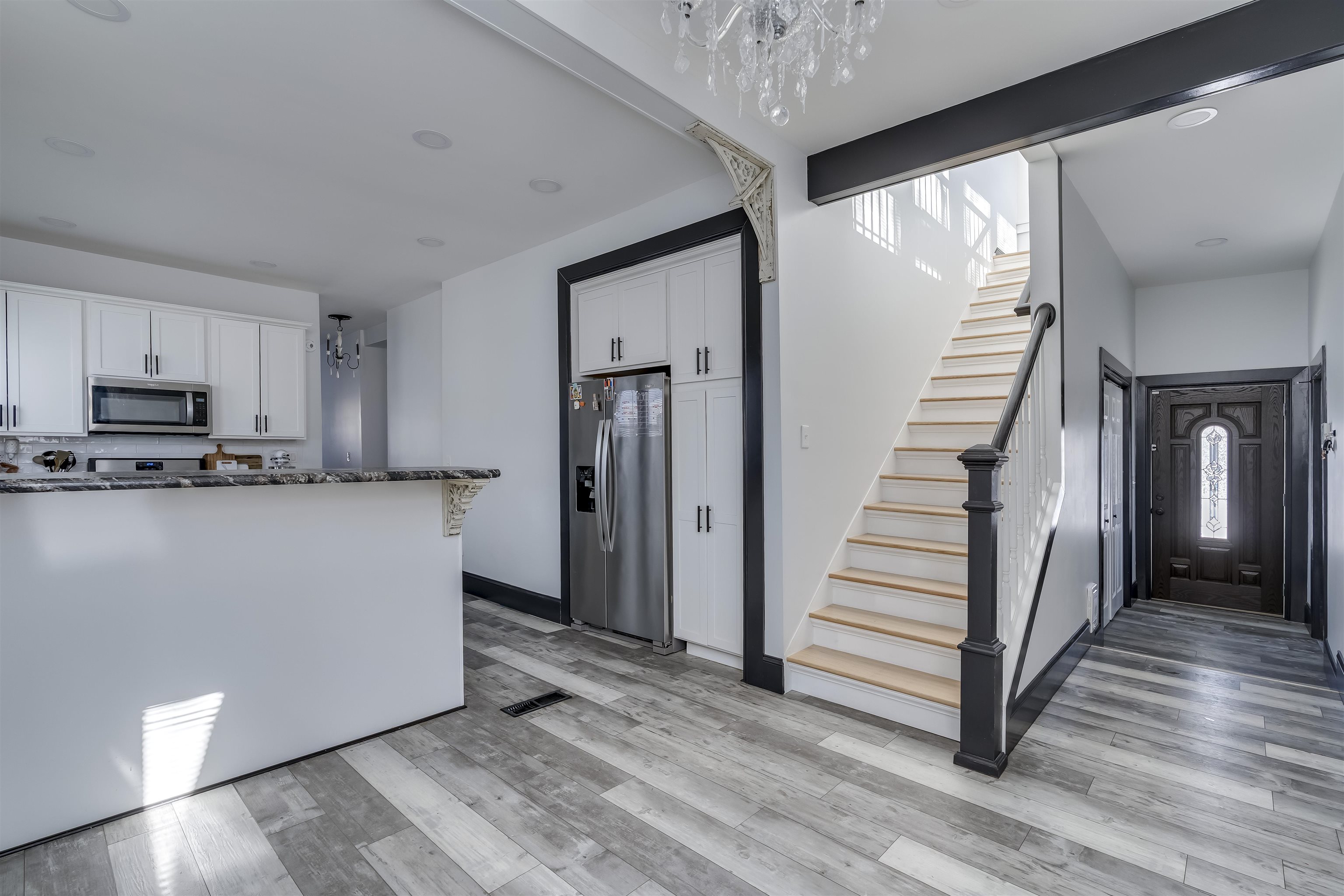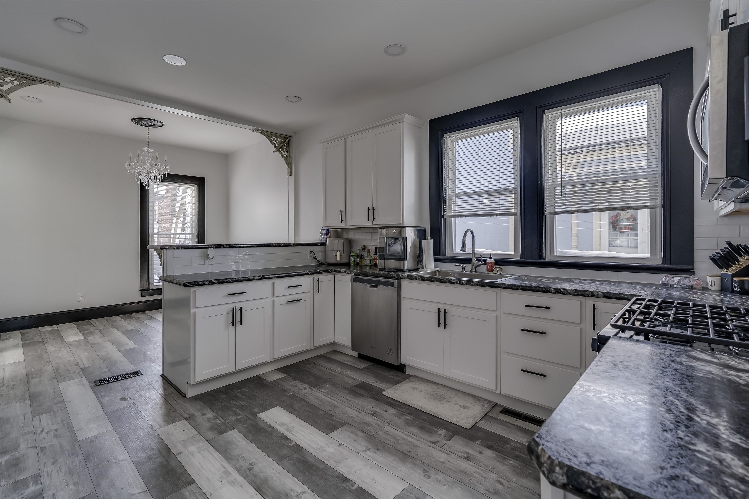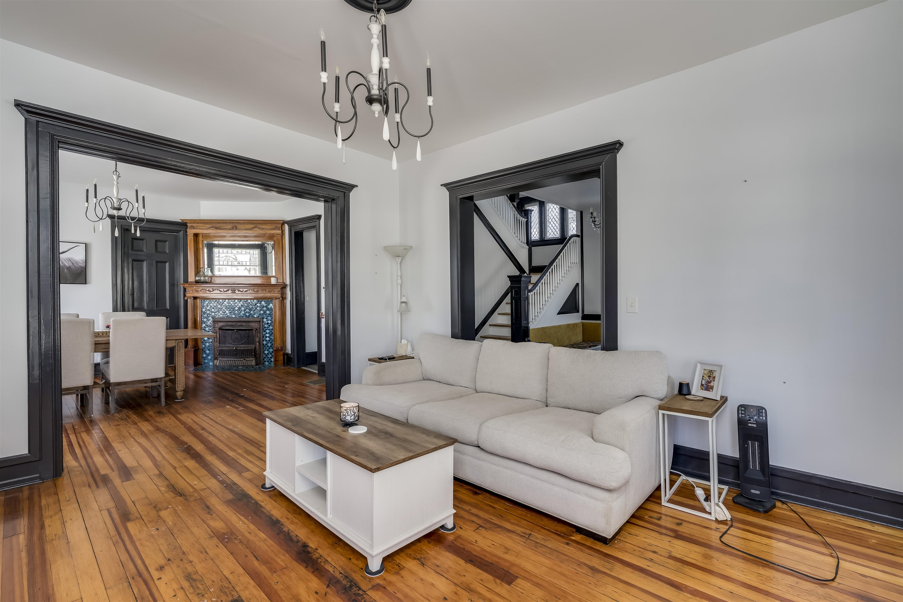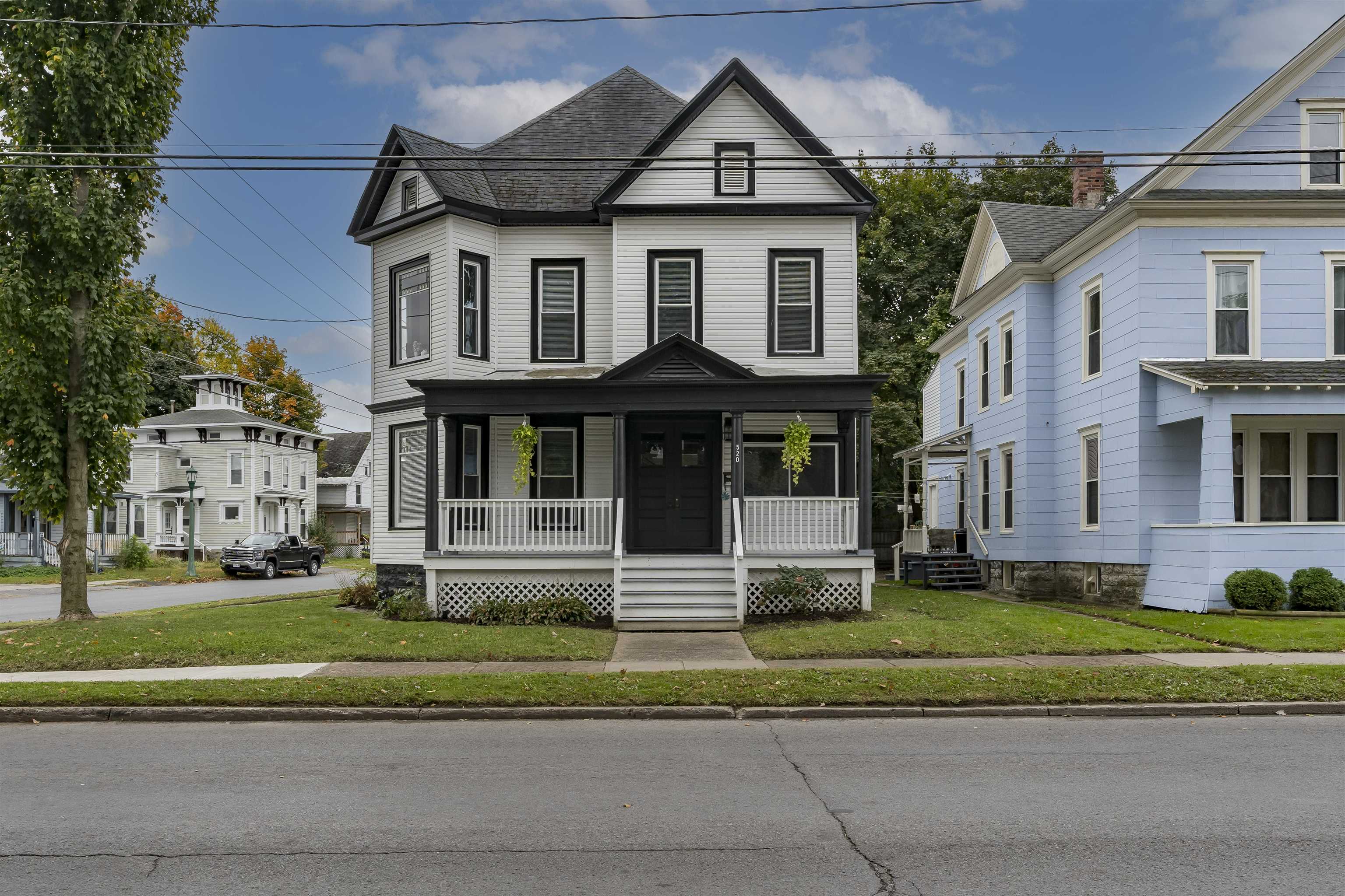 *BEAUTIFULLY PRESERVED CITY OF WATERTOWN HOME THAT BLENDS HISTORIC CHARM WITH MODERN AMENITIES* From the moment you step through the front door of this 5 bed, 3 bath home, you’re greeted by a breathtaking staircase that anchors the foyer and sets the tone for this beautifully reimagined home. Every room has been tastefully updated with intention and care, creating a warm, cohesive feel throughout. The bright and airy living room flows effortlessly into the formal dining room, where a decorative fireplace adds classic charm and elegance. The updated kitchen features stainless steel appliances, an abundance of cabinetry and counter space, and a welcoming eat-in dining area that overlooks the back staircase. From here, enjoy convenient access to a side entrance and the attached three-stall garage—a rare find in the city. An additional side entrance leads to the basement, adding to the home’s smart and functional layout.The first floor offers incredible flexibility with a bedroom that can easily serve as a home office or bonus room, along with a full bathroom. Upstairs, you’ll find four additional bedrooms, including a spacious primary suite with an exceptionally large private bathroom. A second full bathroom and laundry facilities on the second floor add everyday convenience. At the top of the back staircase, a charming sitting area with a wall of windows floods the space with natural light—perfect for reading, relaxing, or a quiet workspace. The third-floor walk-up attic is unfinished and ideal for storage, while the corner lot offers a manageable, low-maintenance yard—perfect for those who prefer less upkeep without sacrificing outdoor space. Enjoy peace of mind with recent updates, including a brand new furnace and ductwork installed in January 2025. This home has been beautifully updated while preserving its historic character, blending old-world charm with modern comfort. Ideally located close to local amenities and just a short drive to Fort Drum, 520 Academy Street is truly move-in ready and designed to be loved.