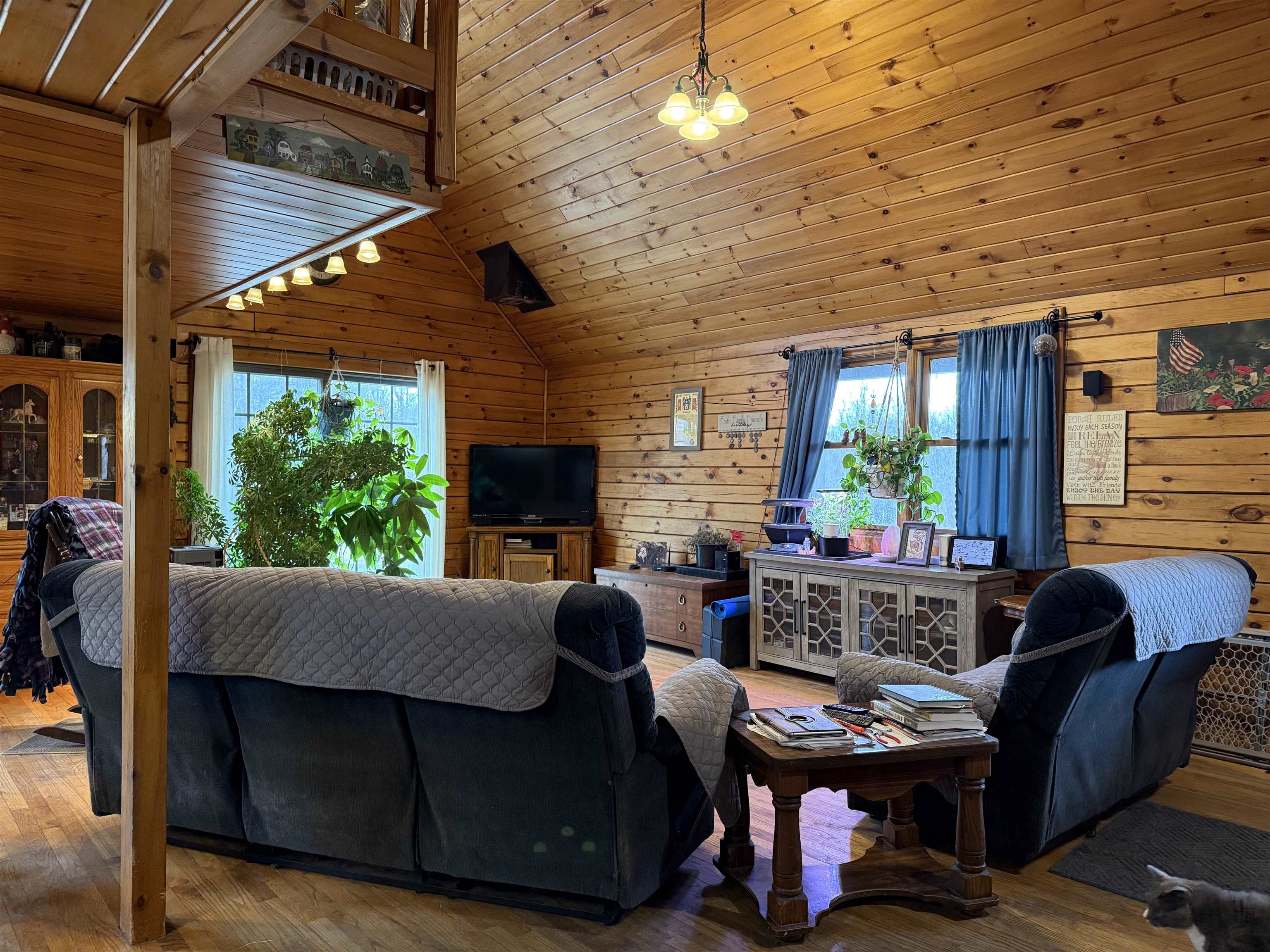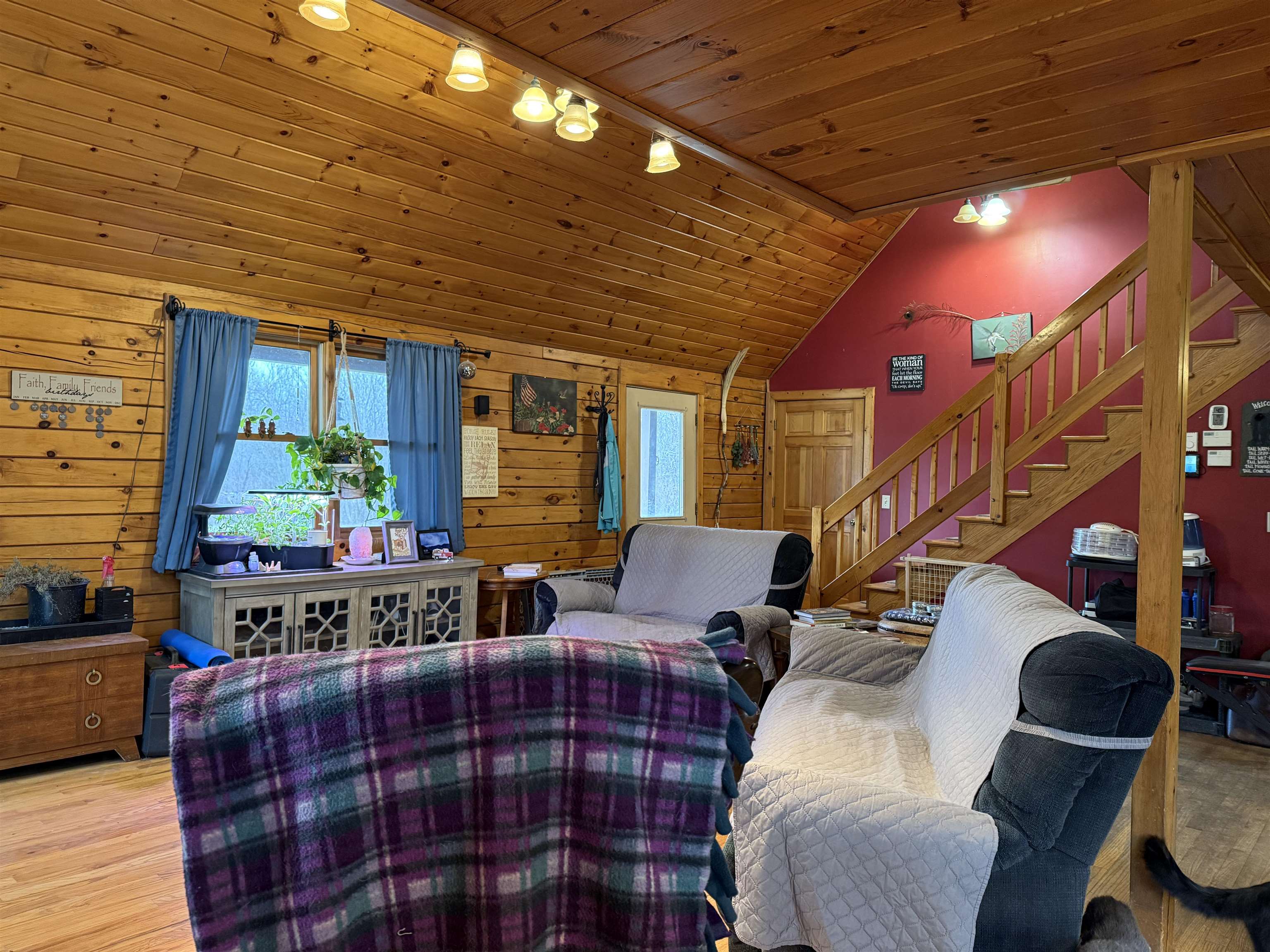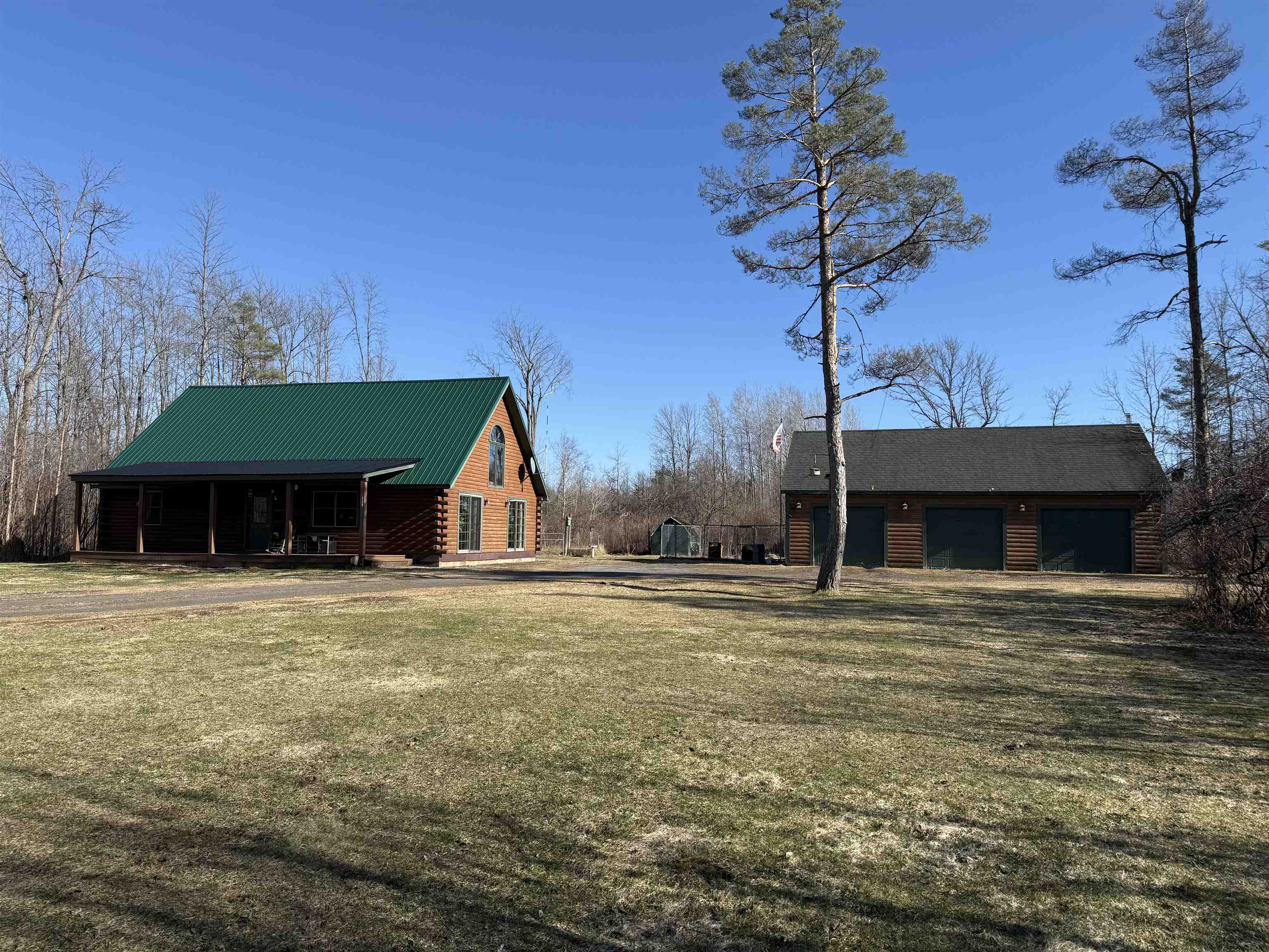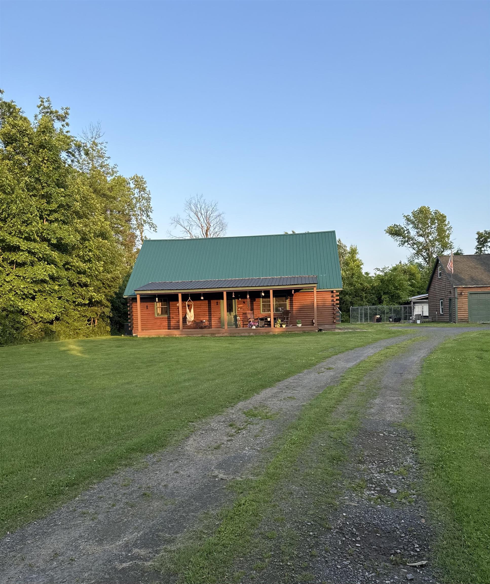 WELCOME TO THIS LOVELY LOG HOME SITUATED ON 21.7 ACRES! This beautifully maintained 3 bedroom, 2 full bathroom log home has an open concept living area, a large loft, an oversized 3 car garage (that could be heated) with storage space upstairs, a new propane boiler, a new on demand water heater, a generator, a covered front porch, a patio, a fenced in dog area and offers the perfect blend of charm, modern comforts, and privacy. Set well back from the road and framed by mature trees, the home provides a peaceful, secluded setting while still being conveniently located. Inside, you will find a bright, open concept living area filled with natural light. As you enter, the living room welcomes you with a beautiful staircase and a spacious loft overlooking the main level, making it an ideal space for a home office or reading nook near the large window, with a convenient coat closet at the base of the stairs. The kitchen is designed for both everyday living and entertaining, featuring an island and stainless steel appliances including a refrigerator, stove, dishwasher, and microwave that all convey with the home, while the dining area offers large windows perfect for plants and enjoying views of the surrounding property. The main floor includes two bedrooms, a full bathroom, and an oversized laundry closet with cabinetry for additional storage. Upstairs, you will find the expansive loft, the primary bedroom with a walk-in closet, and a spacious full bathroom with a large vanity and ample cabinet space. Outside you will enjoy relaxing on the covered front porch or the back patio and there is plenty of room for get togethers and BBQ's! Additional highlights include an oversized, 3 car garage (that could be heated) with storage space above and a fenced dog kennel area attached to the garage with an interior room that could be heated. Located in Potsdam and close to Canton, Madrid, and Norwood, this exceptional log home offers the best of privacy and convenience and truly feels like an oasis—schedule your showing today!