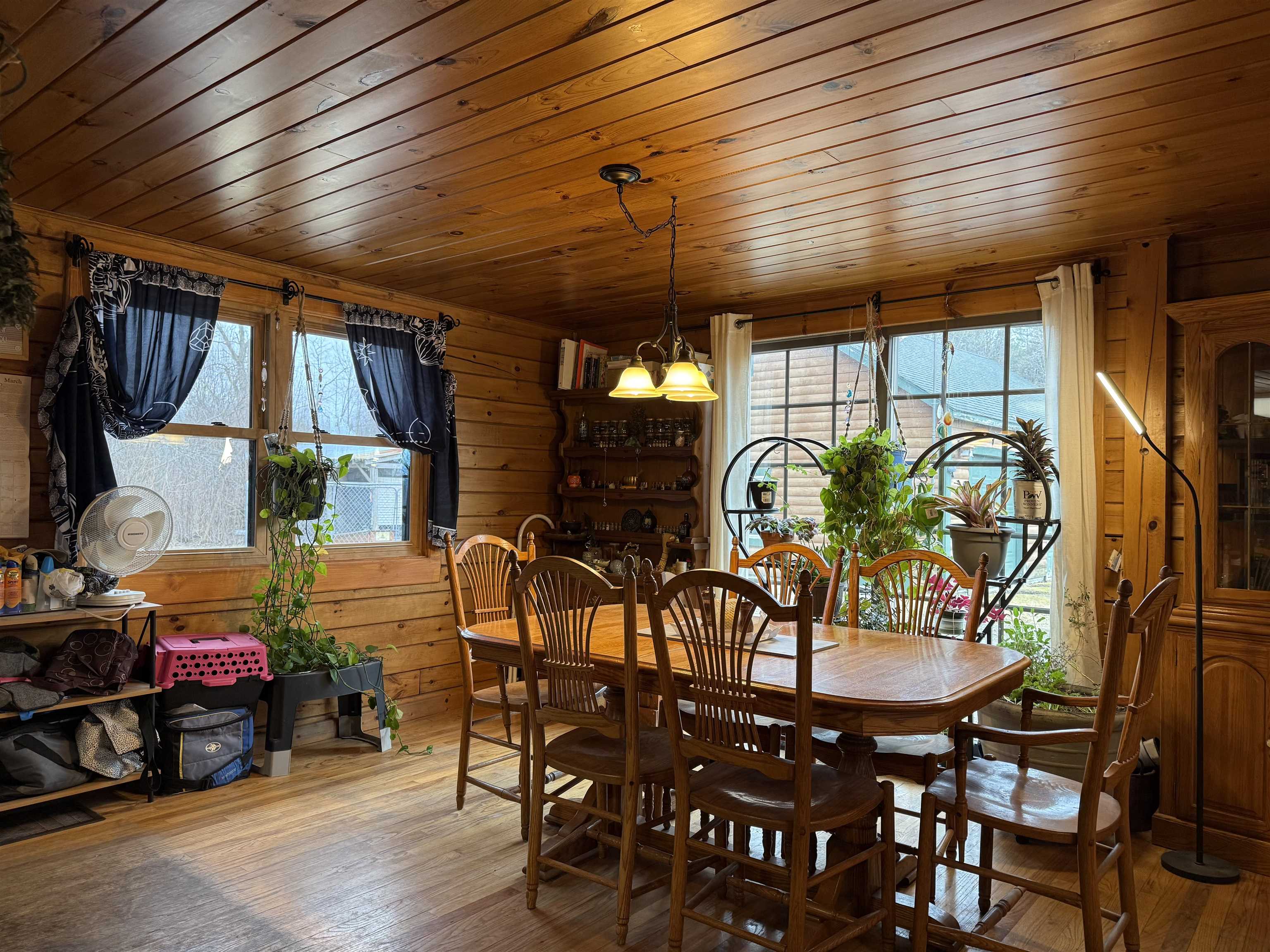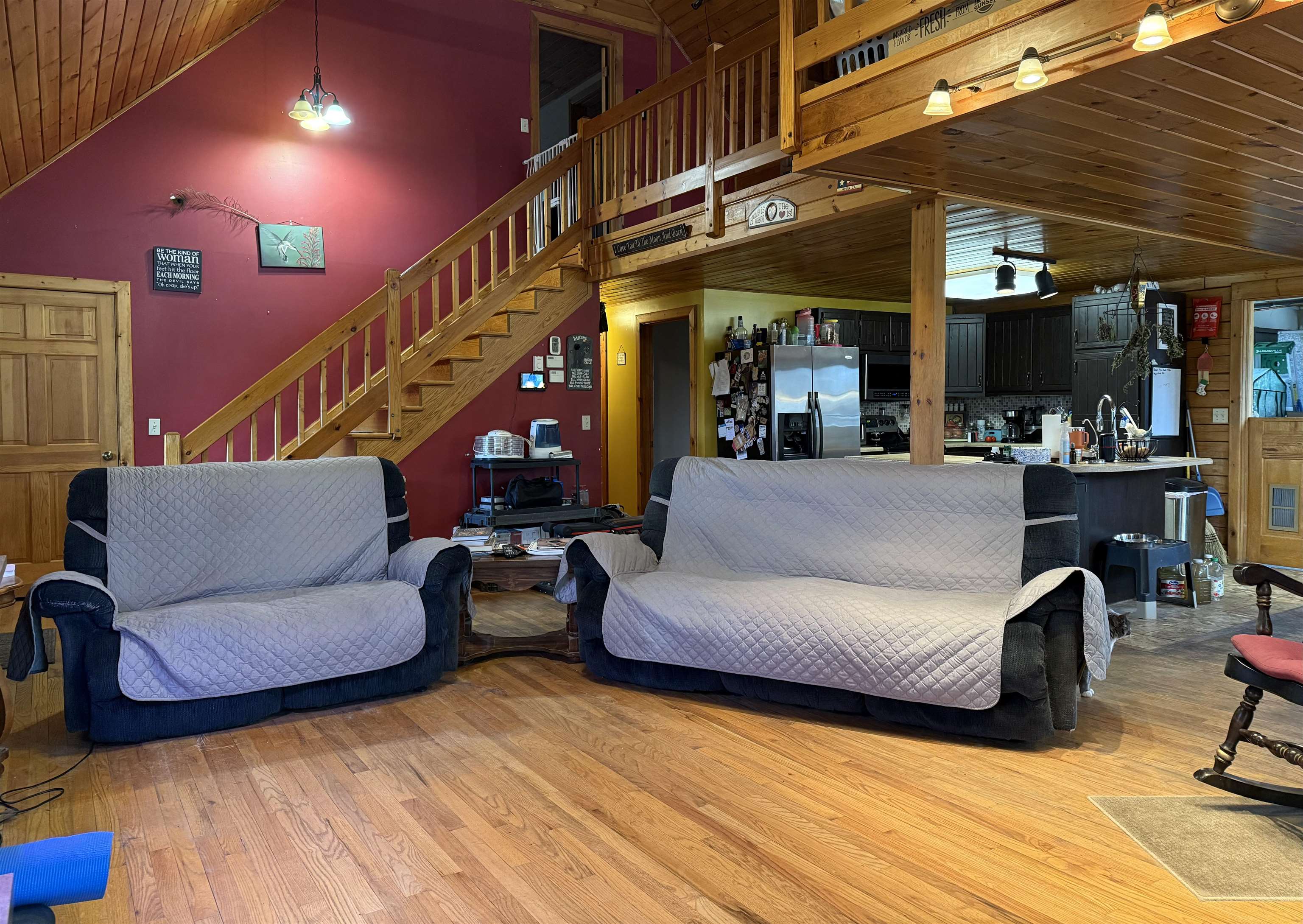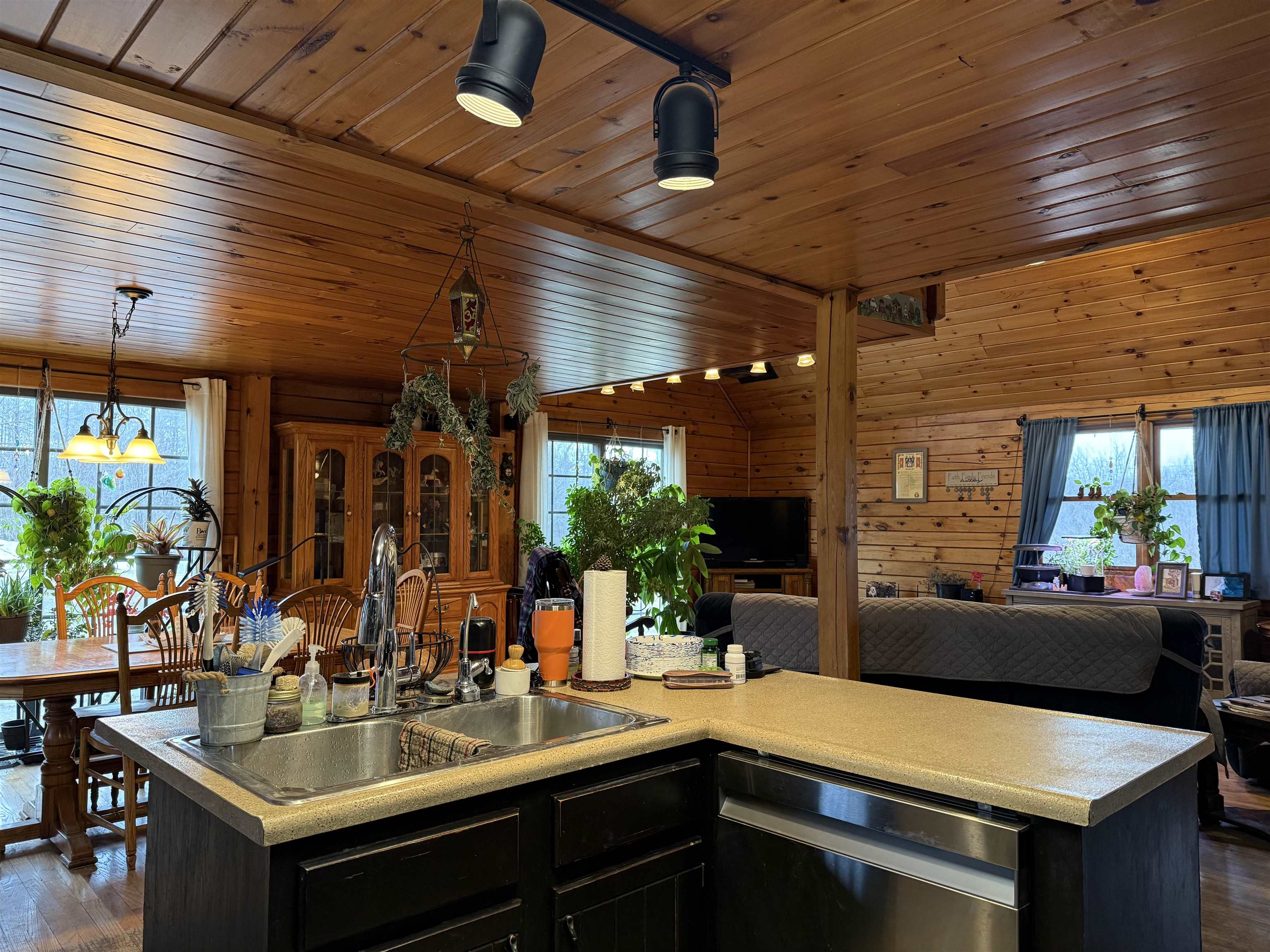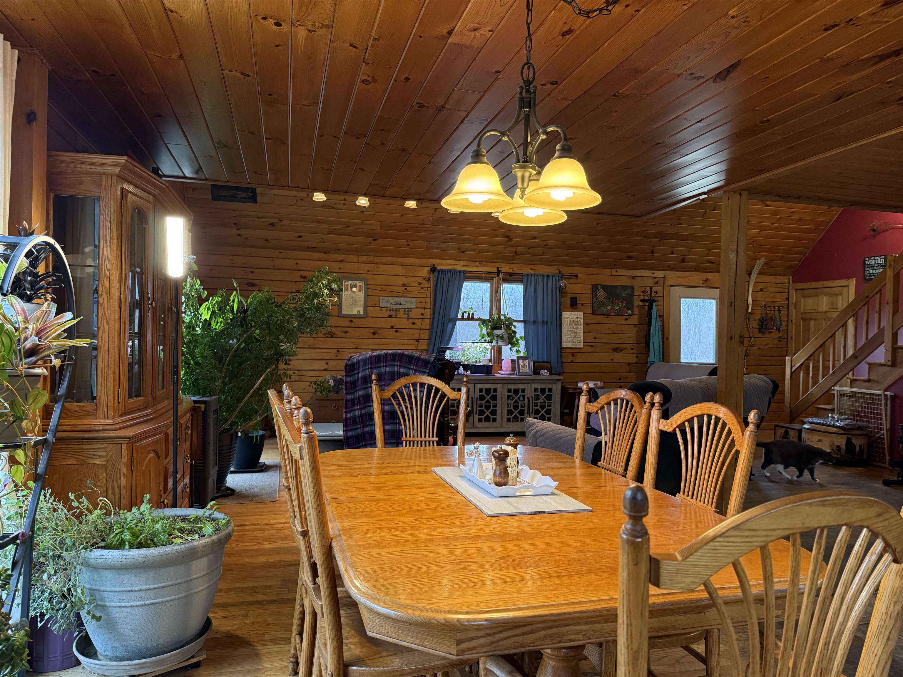 WELCOME TO THIS LOVELY LOG HOME SITUATED ON 21.7 ACRES! This beautifully maintained 3 bedroom, 2 full bathroom log home has an open concept living area, a large loft, an oversized 3 car garage (that could be heated) with storage space upstairs, a new propane boiler, a new on demand water heater, a generator, a covered front porch, a patio, a fenced in dog area and offers the perfect blend of charm, modern comforts, and privacy. Set well back from the road and framed by mature trees, the home provides a peaceful, secluded setting while still being conveniently located. Inside, you will find a bright, open concept living area filled with natural light. As you enter, the living room welcomes you with a beautiful staircase and a spacious loft overlooking the main level, making it an ideal space for a home office or reading nook near the large window, with a convenient coat closet at the base of the stairs. The kitchen is designed for both everyday living and entertaining, featuring an island and stainless steel appliances including a refrigerator, stove, dishwasher, and microwave that all convey with the home, while the dining area offers large windows perfect for plants and enjoying views of the surrounding property. The main floor includes two bedrooms, a full bathroom, and an oversized laundry closet with cabinetry for additional storage. Upstairs, you will find the expansive loft, the primary bedroom with a walk-in closet, and a spacious full bathroom with a large vanity and ample cabinet space. Outside you will enjoy relaxing on the covered front porch or the back patio and there is plenty of room for get togethers and BBQ's! Additional highlights include an oversized, 3 car garage (that could be heated) with storage space above and a fenced dog kennel area attached to the garage with an interior room that could be heated. Located in Potsdam and close to Canton, Madrid, and Norwood, this exceptional log home offers the best of privacy and convenience and truly feels like an oasis—schedule your showing today!