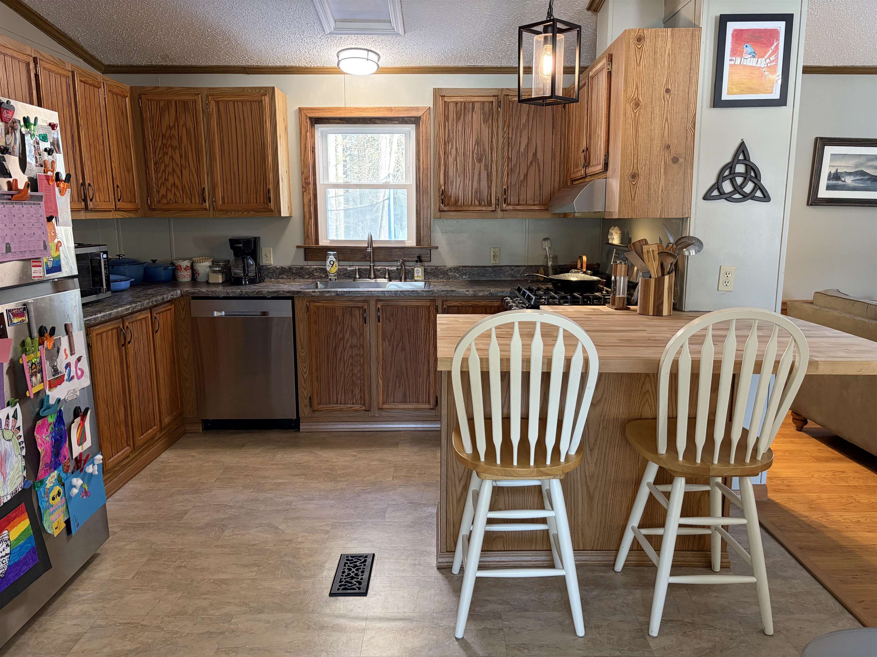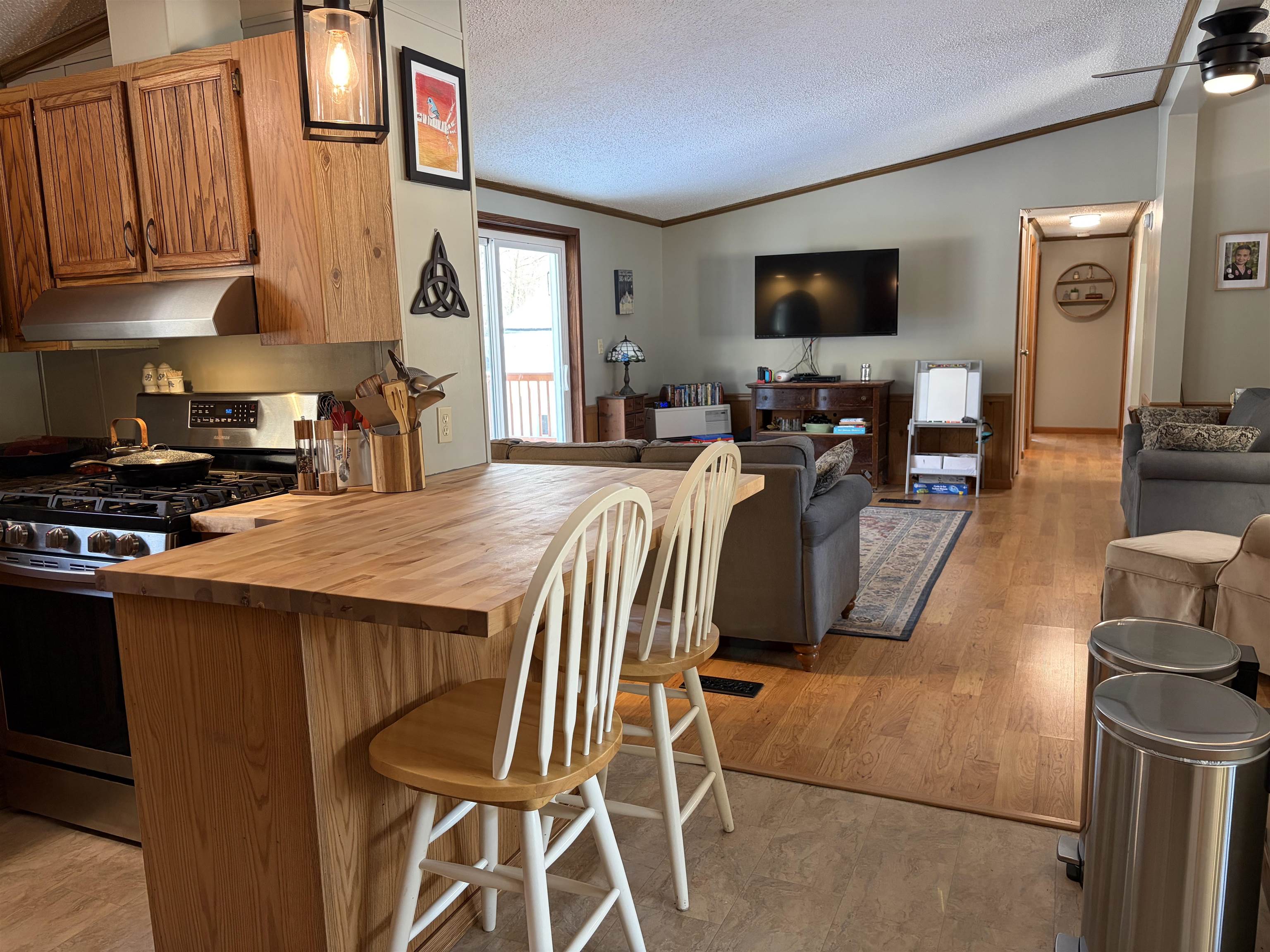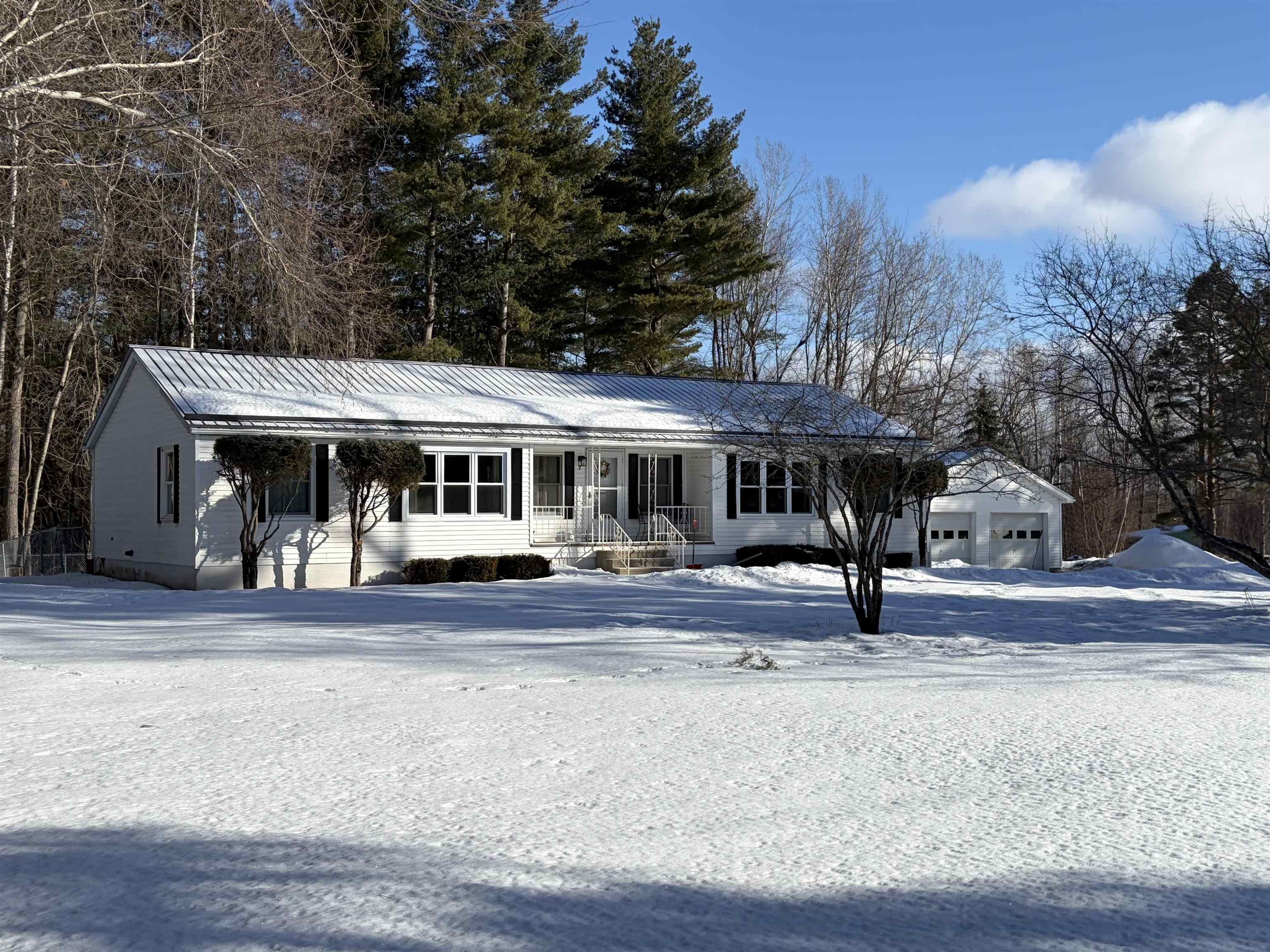 Set on just over 6 acres, this beautifully maintained three-bedroom, two-bath single story home offers the perfect combination of space, privacy, and modern updates - including a generator hookup and Central air! Tucked back from the road with a paved driveway, the setting provides a peaceful retreat while still being conveniently located. The exterior features a covered front porch, an oversized two-car garage with automatic door openers and generous storage space, along with a separate insulated shed with power that is currently used as a workshop. A fenced-in backyard and new deck create an ideal outdoor living space for relaxing or entertaining. Inside, the home showcases numerous updates since ownership including, but not limited to new lighting throughout most of the rooms, a new sliding glass door, custom tile shower, & flooring in the entry. The spacious living room overlooks the private back yard. The kitchen is adjacent to the living room and is complete with a butcher block peninsula/eating area that flows into the living area, a pantry, stainless steel appliances, and gas range. A formal dining room provides a dedicated eating space, while a separate office or second living area adds flexibility to suit your lifestyle. The primary suite is thoughtfully designed, featuring a walk-in closet, double vanity in a dressing area, and a stunning custom tile shower in the renovated bathroom. Two additional bedrooms and a full bath are located on the opposite end of the home, offering privacy and functionality. A laundry area has additional cabinet storage above and has another door to the back yard. With its single-level living, quality updates, and expansive lot, this property delivers comfort, versatility, and a serene setting.