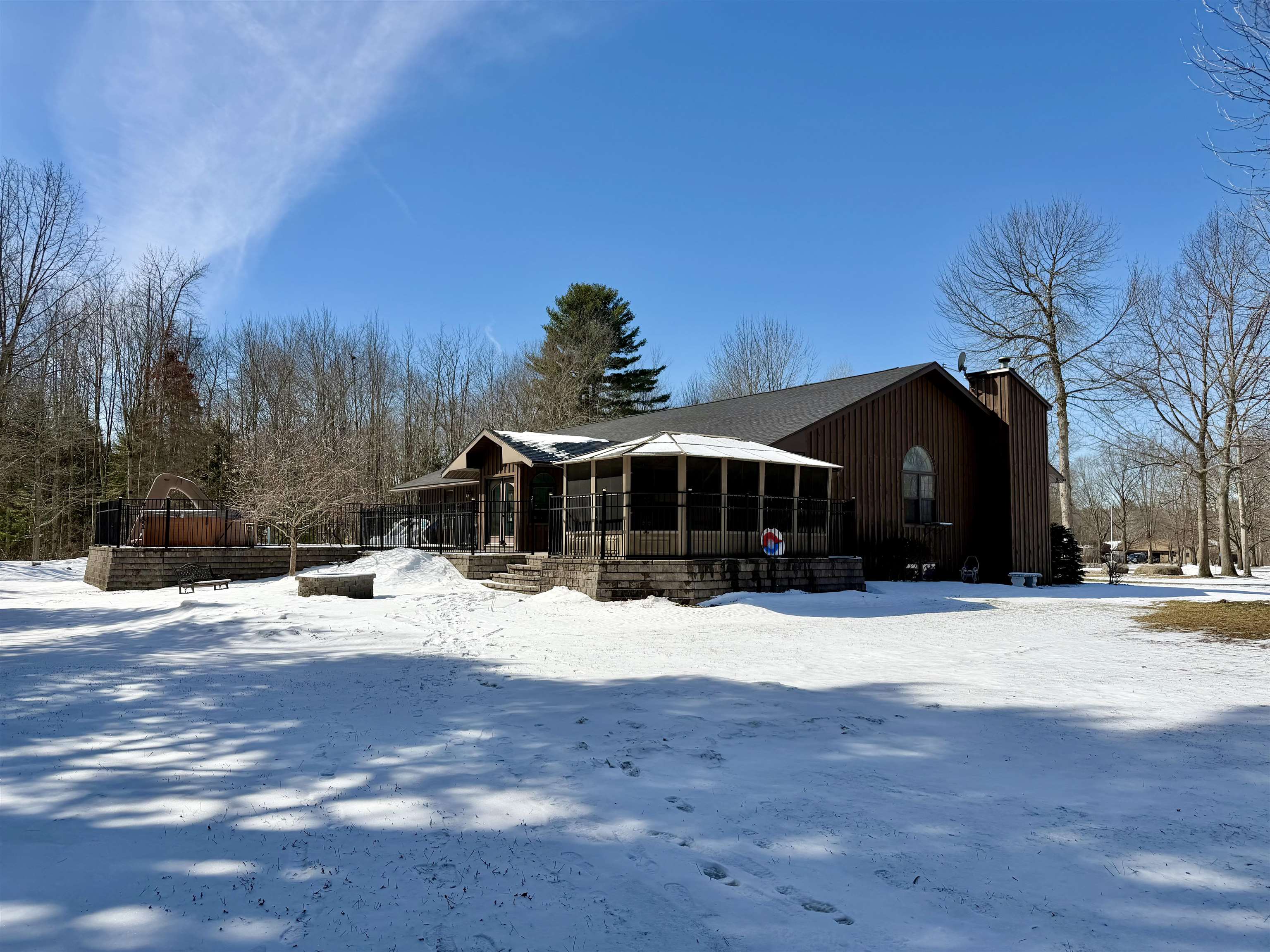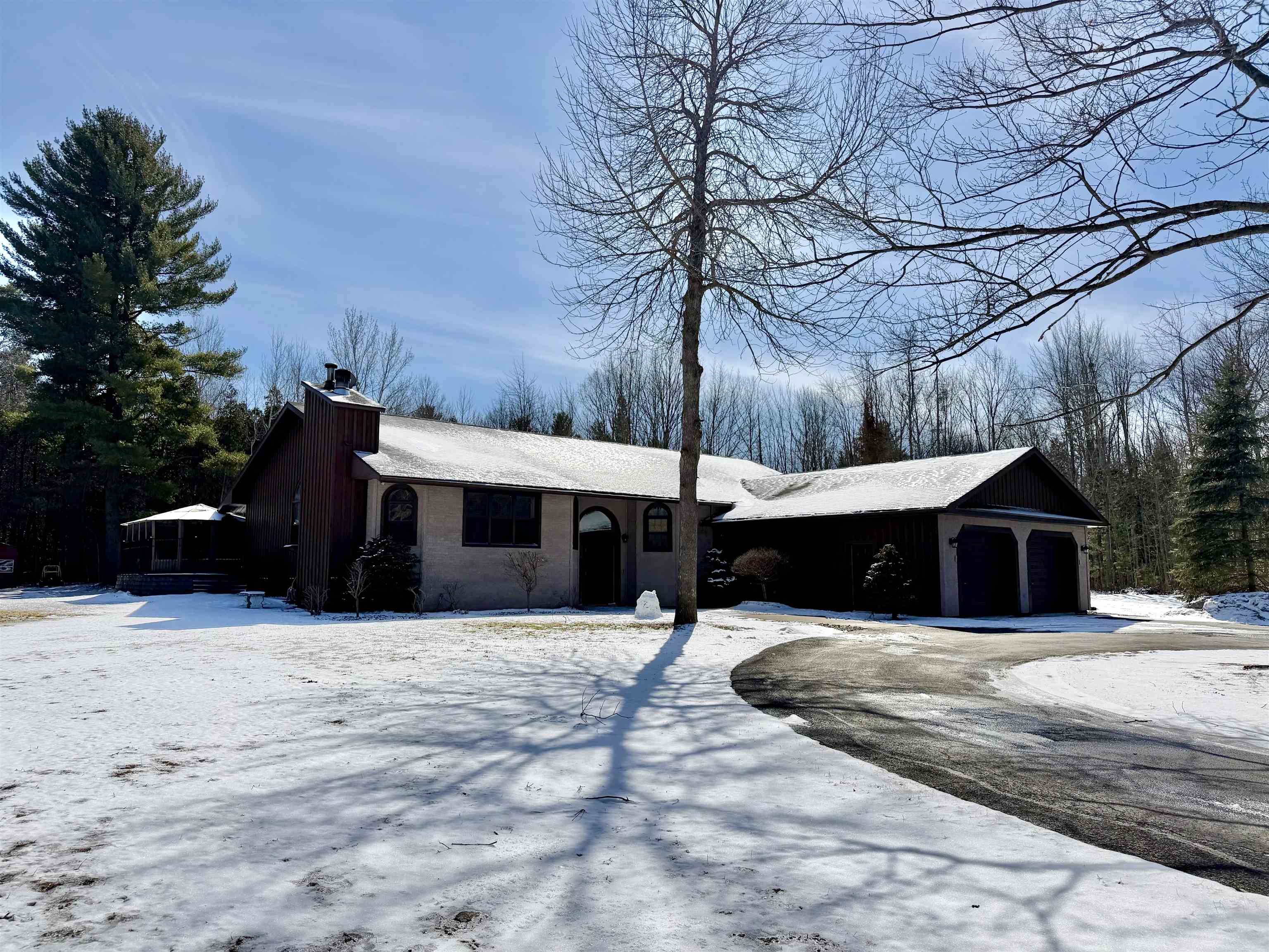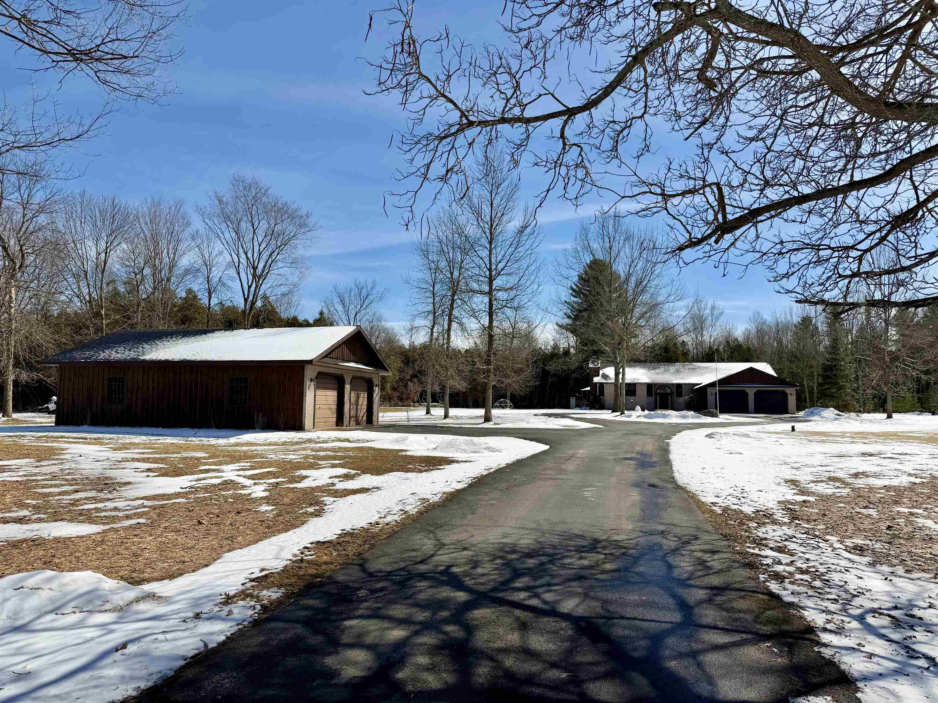 WELCOME TO YOUR NEW OASIS SITUATED ON 30.2 ACRES! This stunning 7-bedroom, 2.5-bath home offers 2,842 sq ft of beautifully designed living space with radiant in floor heat, an above ground pool, a hot tub, a deck, a gazebo, a new roof, an attached 2 car garage, a detached 4 car garage, a paved circle driveway, plus a mostly finished basement ~ all situated on 30.2 acres towards the end of a dead-end road. The main level features a spacious kitchen with abundant cabinetry, a center island with seating, and the appliances convey. Elegant rounded archways and a cathedral ceiling add character and charm throughout. Enjoy gatherings in the formal dining room, relax in the cozy sitting area, or unwind in the large living room with a wood-burning fireplace. Also on the main floor, you’ll find the primary suite complete with a walk-in closet and a beautifully appointed private bath, along with three additional bedrooms, a full bathroom, and a convenient laundry room. The finished basement expands your living space with a bar area and pool table (included), three more bedrooms, and an additional room perfect for a home office or guest space. Step outside to your backyard retreat featuring a spacious deck, above-ground pool, hot tub, and gazebo—ideal for entertaining or simply enjoying the lovely surroundings. The expansive property offers endless opportunities for outdoor recreation, including ATV riding, snowmobiling, cross-country skiing, hiking, and more. Additional highlights include radiant in-floor heating, a new roof, an attached two-car garage, a detached four-car garage, and a paved circular driveway. Don’t miss your chance to own this incredible property ~ schedule your private showing today!
