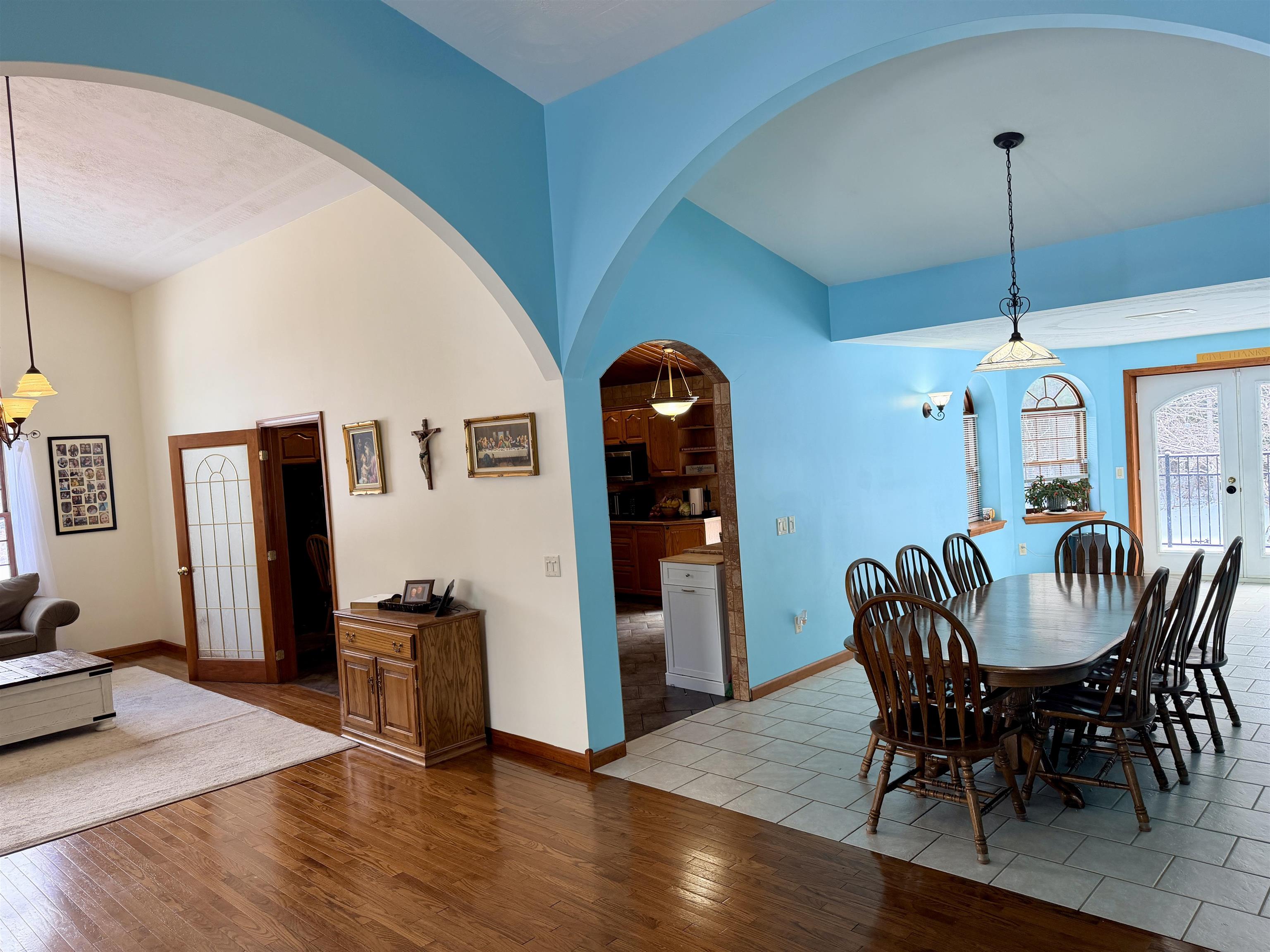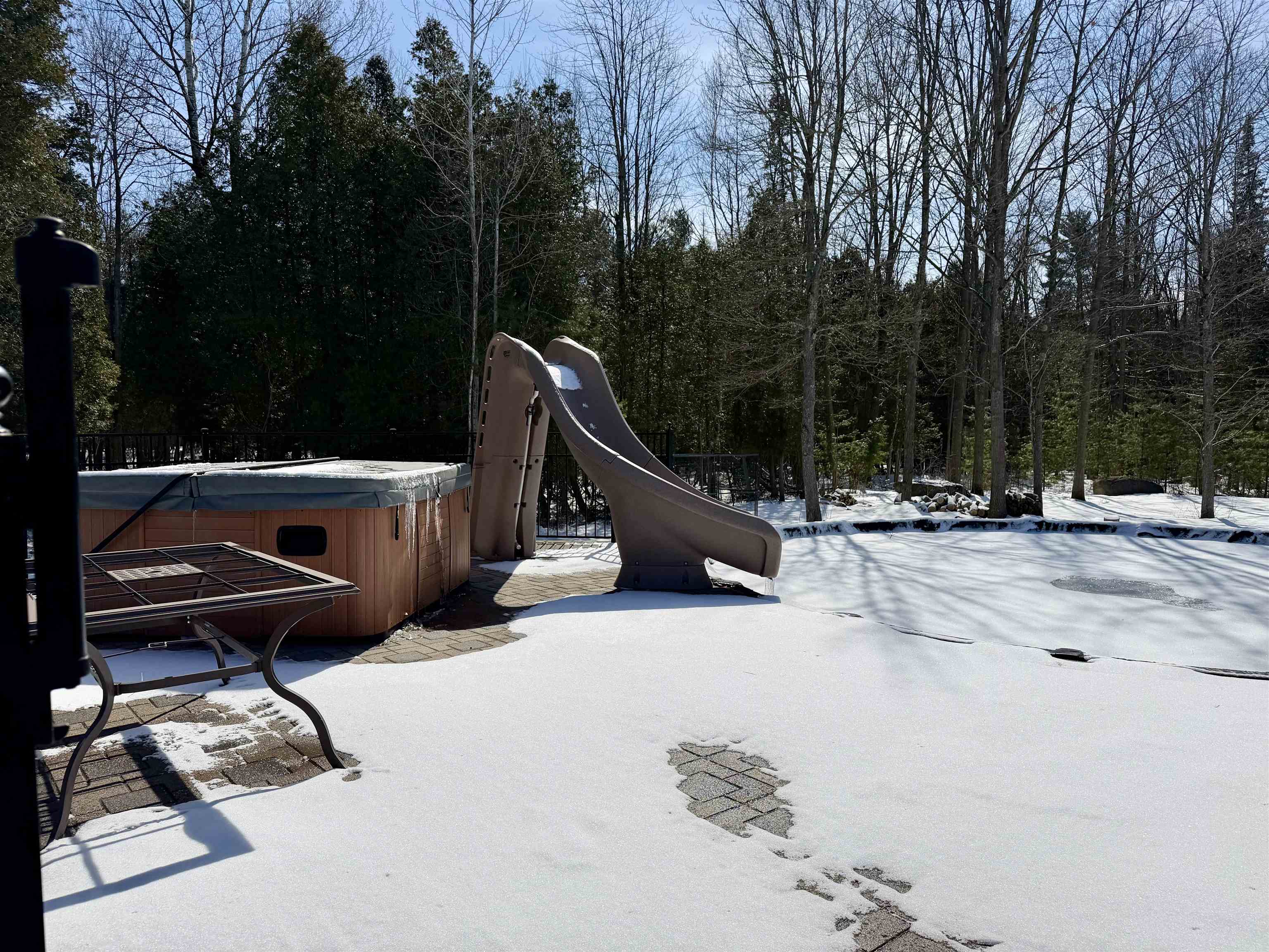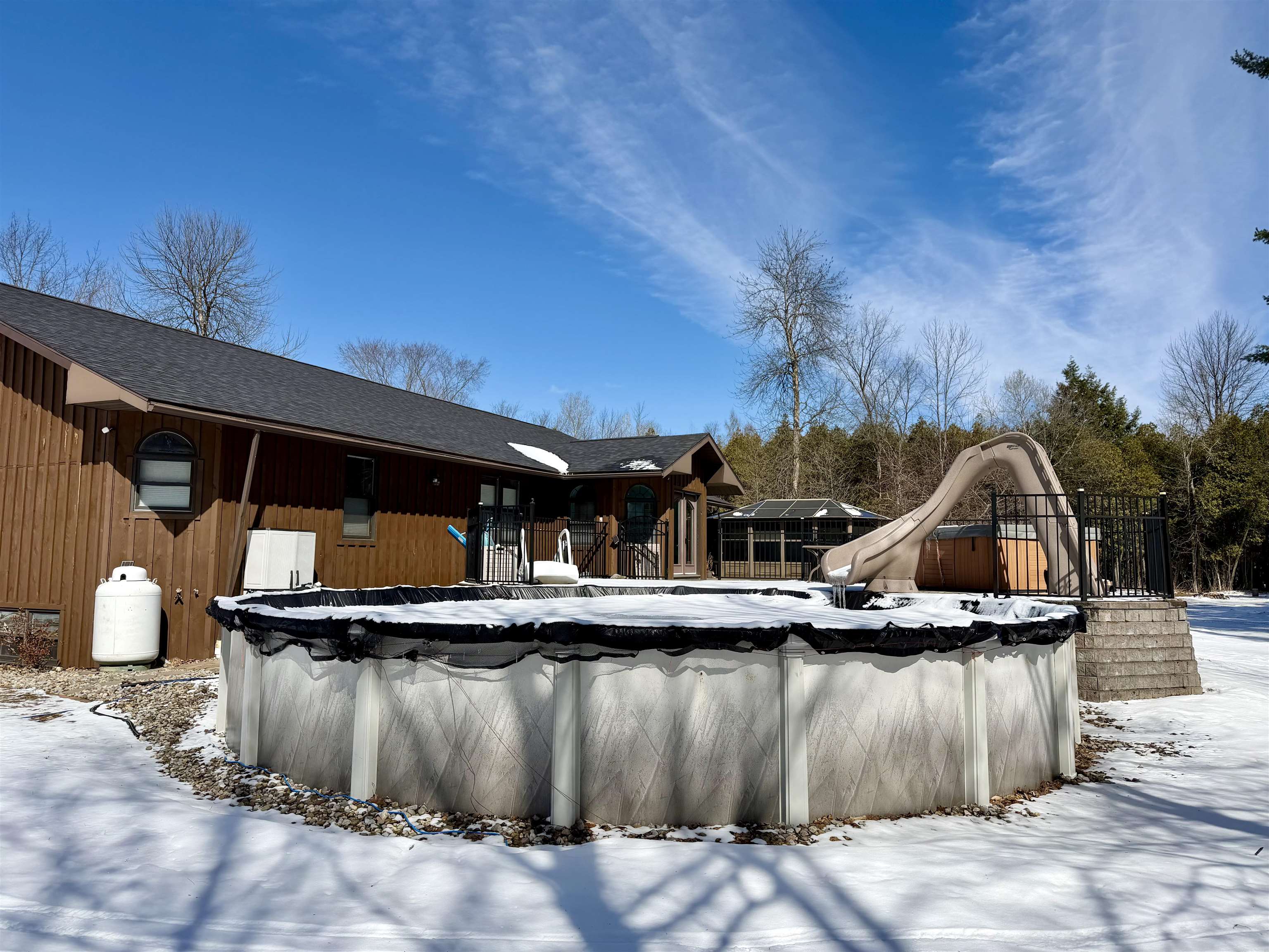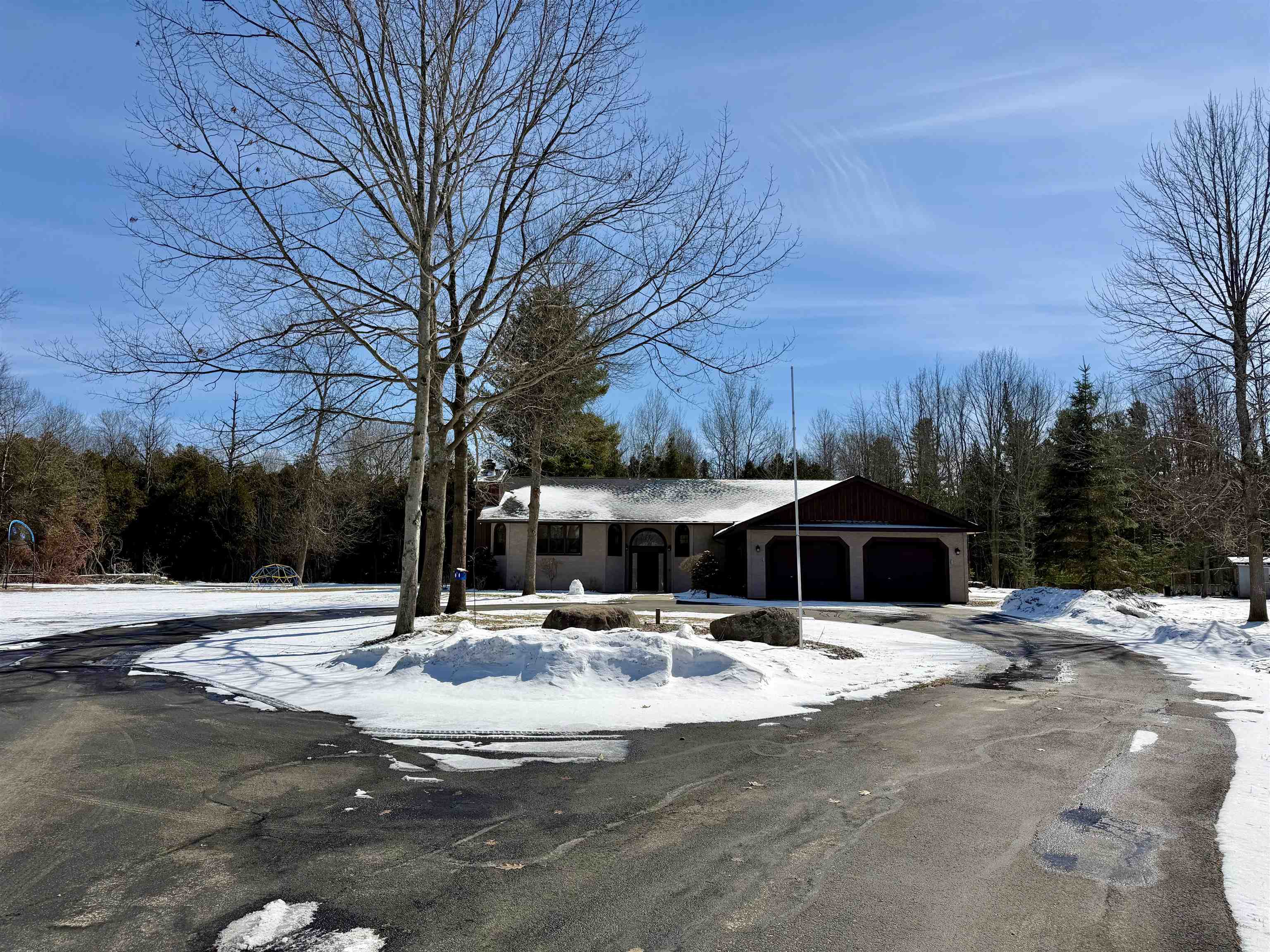 WELCOME TO YOUR NEW OASIS SITUATED ON 30.2 ACRES! This stunning 7-bedroom, 2.5-bath home offers 2,842 sq ft of beautifully designed living space with radiant in floor heat, an above ground pool, a hot tub, a deck, a gazebo, a new roof, an attached 2 car garage, a detached 4 car garage, a paved circle driveway, plus a mostly finished basement ~ all situated on 30.2 acres towards the end of a dead-end road. The main level features a spacious kitchen with abundant cabinetry, a center island with seating, and the appliances convey. Elegant rounded archways and a cathedral ceiling add character and charm throughout. Enjoy gatherings in the formal dining room, relax in the cozy sitting area, or unwind in the large living room with a wood-burning fireplace. Also on the main floor, you’ll find the primary suite complete with a walk-in closet and a beautifully appointed private bath, along with three additional bedrooms, a full bathroom, and a convenient laundry room. The finished basement expands your living space with a bar area and pool table (included), three more bedrooms, and an additional room perfect for a home office or guest space. Step outside to your backyard retreat featuring a spacious deck, above-ground pool, hot tub, and gazebo—ideal for entertaining or simply enjoying the lovely surroundings. The expansive property offers endless opportunities for outdoor recreation, including ATV riding, snowmobiling, cross-country skiing, hiking, and more. Additional highlights include radiant in-floor heating, a new roof, an attached two-car garage, a detached four-car garage, and a paved circular driveway. Don’t miss your chance to own this incredible property ~ schedule your private showing today!