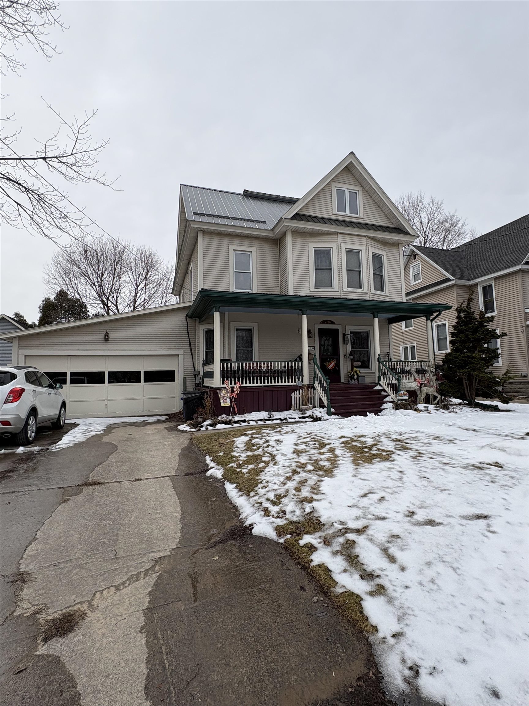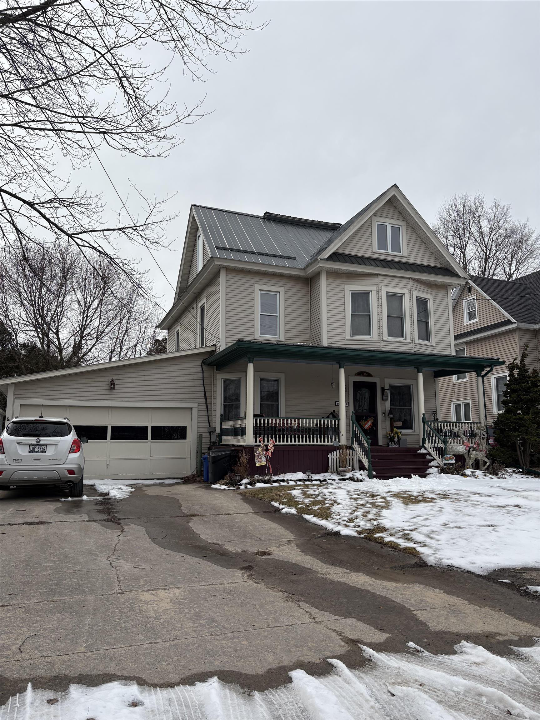 This stately Victorian home, located in a quiet and desirable neighborhood, offers timeless charm paired with modern updates. Inside, you’ll find beautiful original woodwork complemented by a mix of hardwood and tile flooring throughout. The spacious layout features a welcoming living room, a formal dining room perfect for entertaining, and a cozy family room complete with a gas fireplace. The updated kitchen is both stylish and functional, offering ample cabinetry, modern finishes, and all included appliances. There is also a full bathroom on the main floor. Upstairs, the home includes four generously sized bedrooms and full bathroom along with separate laundry room, providing plenty of space for family and guests. Additional highlights include an attached 1.5-car garage, a high-efficiency gas furnace, gas water heater, updated 200-amp electrical service, and a newer metal roof, offering both comfort and peace of mind. There is a huge walk up attic and the covered front porch is calling your name. This beautiful home combines classic character with thoughtful updates, making it a must-see. Priced right!