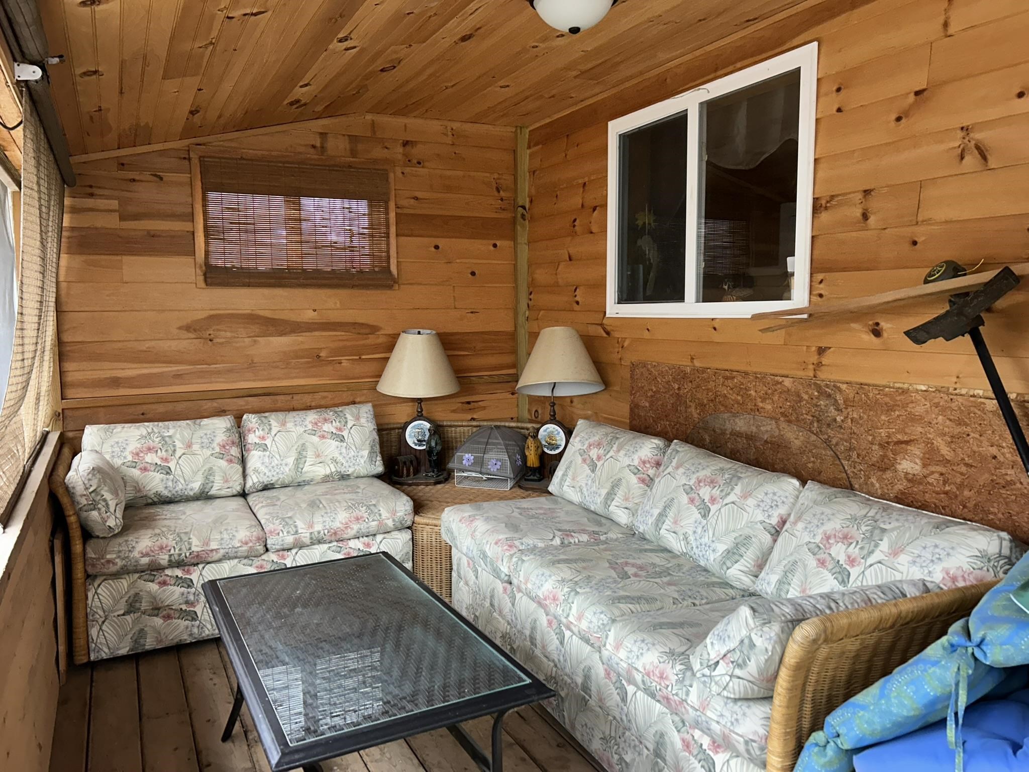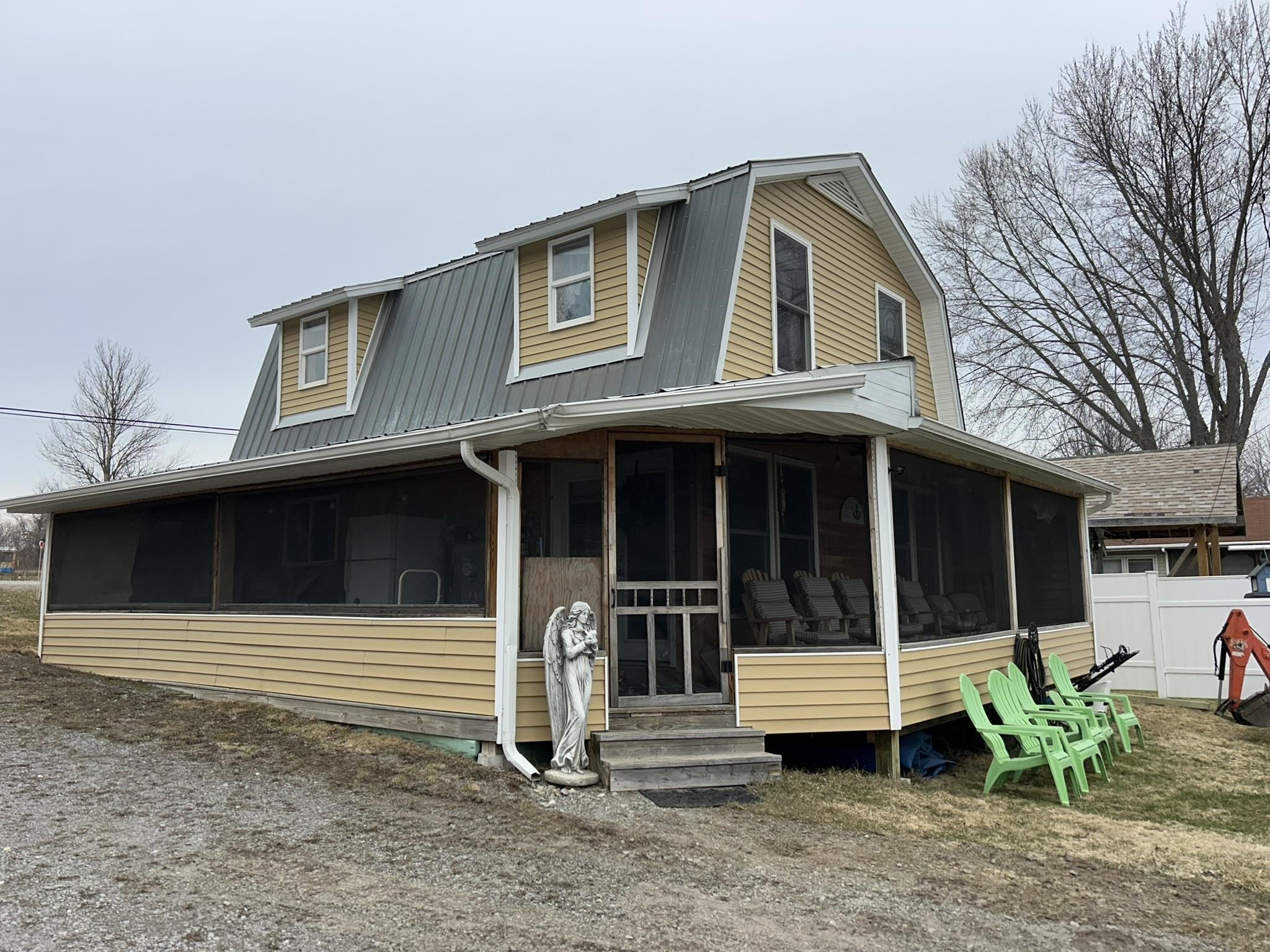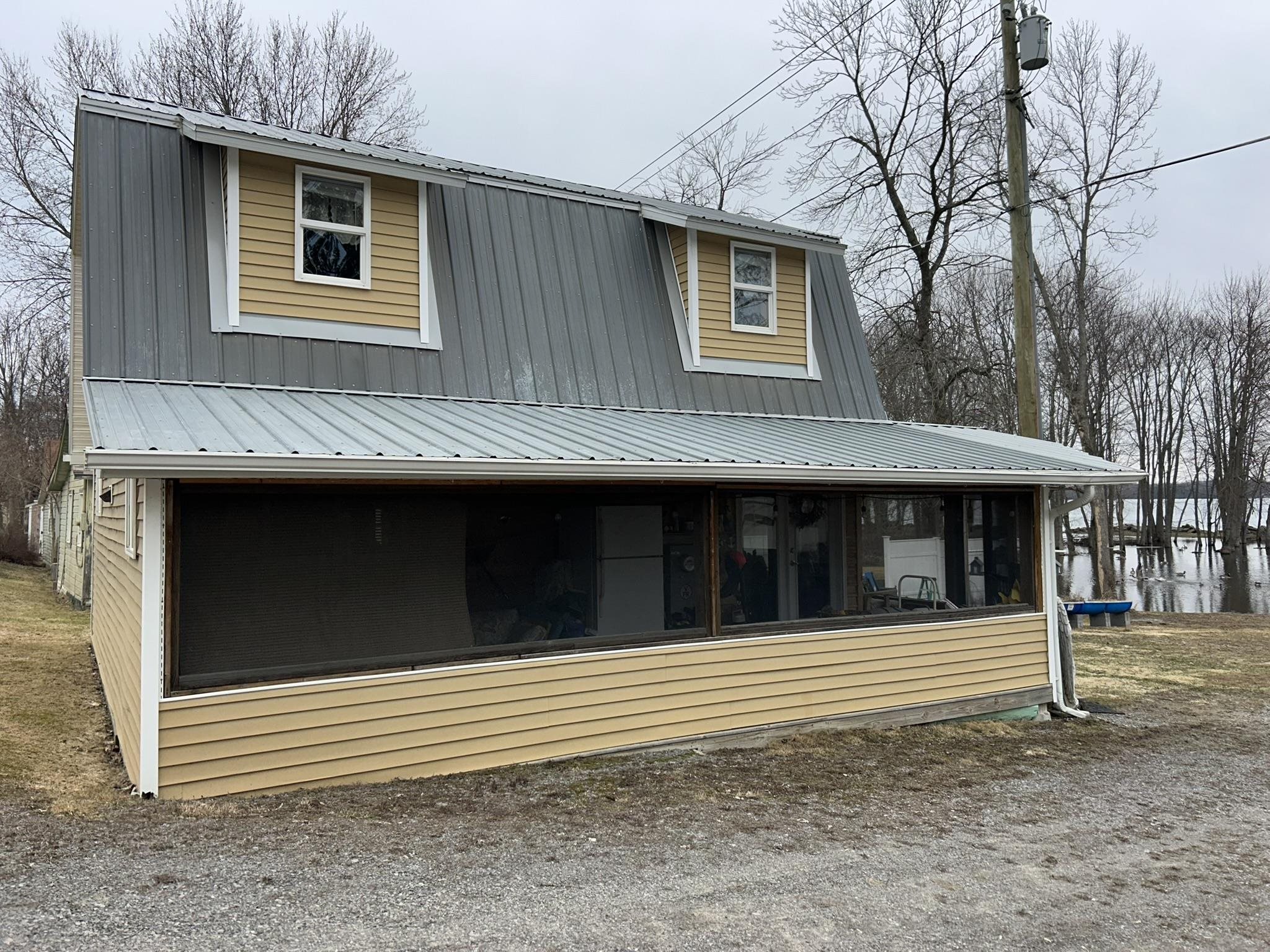 Year round opportunity on Black Lake. Newer built 4 bedroom, 1.5 bath with first floor laundry. A wrap around screened porch with vast views of the lake. This property has everything you need to drop your bags and enjoy the lake. Completely furnished, dock, boat hoists and lawn mower, picnic tables, grill and outdoor swing all convey. Shed. Wood storage stocked with firewood. 145'' of frontage. The first floor has an open concept with living room, kitchen, dining nook, full bath with a shower, stackable laundry and a large closet. Upstairs there are 4 bedrooms with a half bathroom. Tongue and grove interior. Camper hookup.