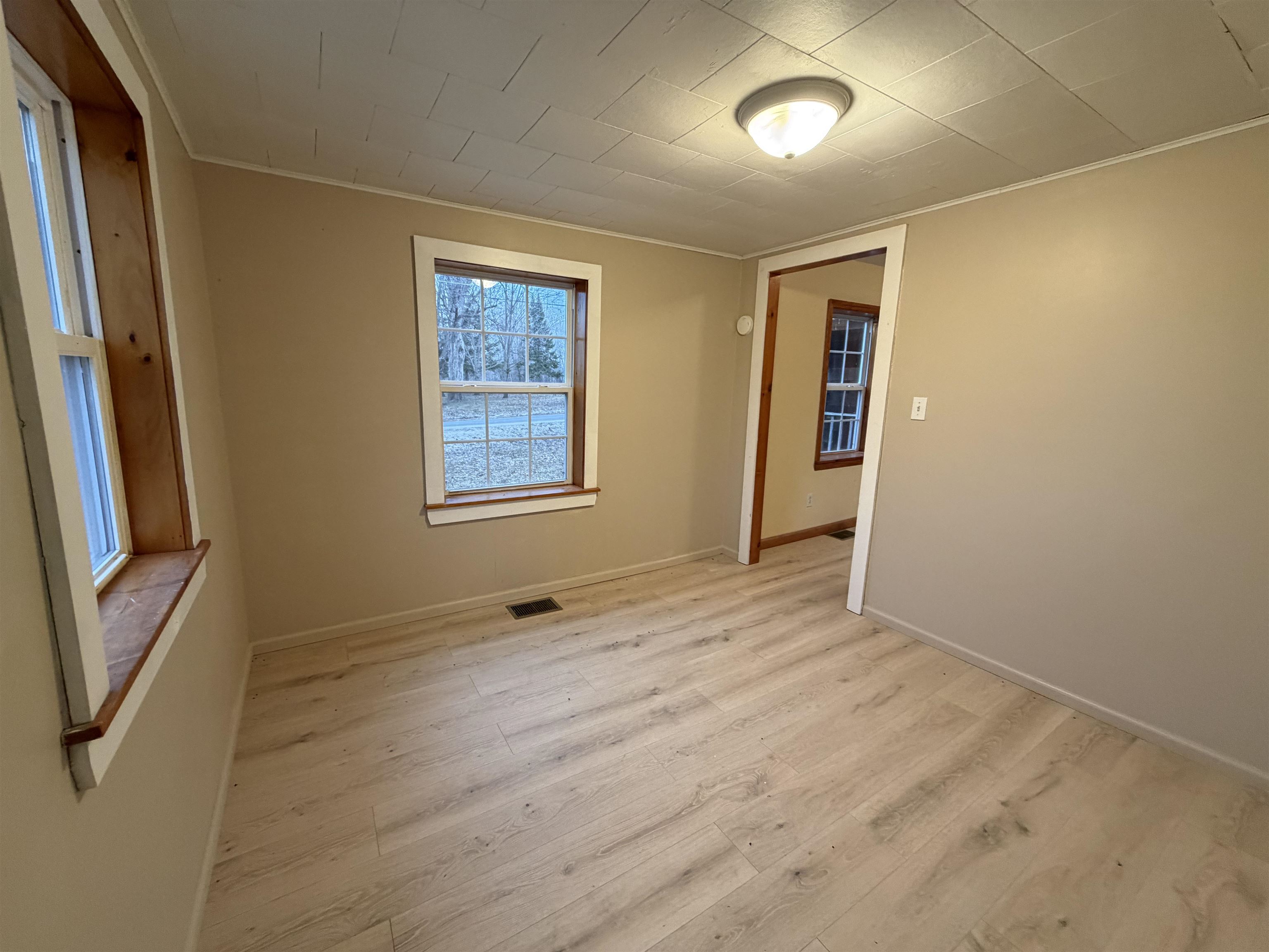 Cute 1.5 story home situated on a quiet country road in the Brasher Falls School District. Upon entering from the covered front porch you will see the interior of the home has been freshly painted, newer windows, modern kitchen with new stainless steel appliances and a large walk-in pantry, new bathroom, first floor bedroom, living room, and dining room. Hard wood floors and hard wood laminate throughout the house. Upstairs are two bedrooms. Exterior of the home is cedar shakes. Built in 1824 it is one of the older homes in the area. Owners recently had a water softener installed.