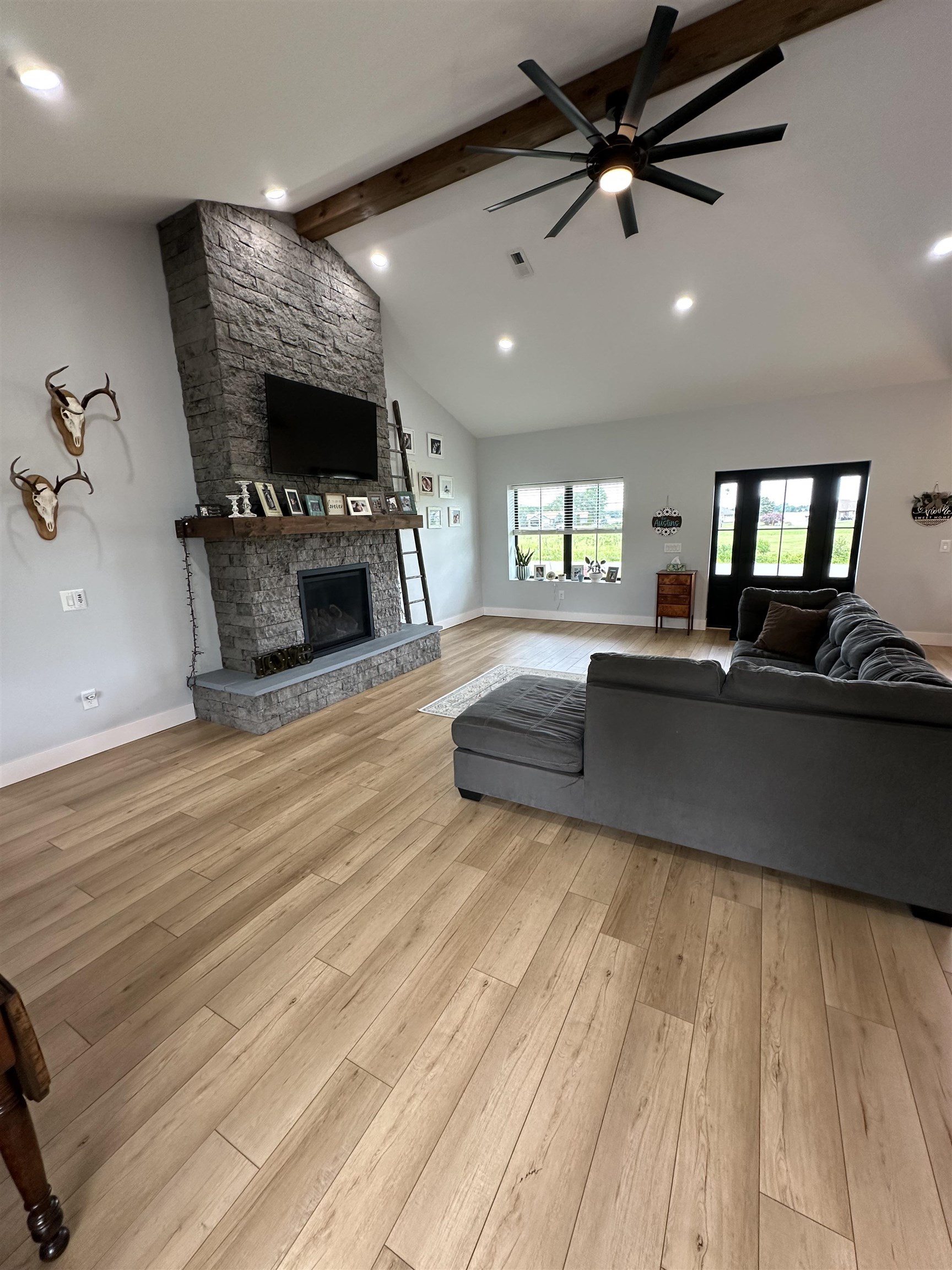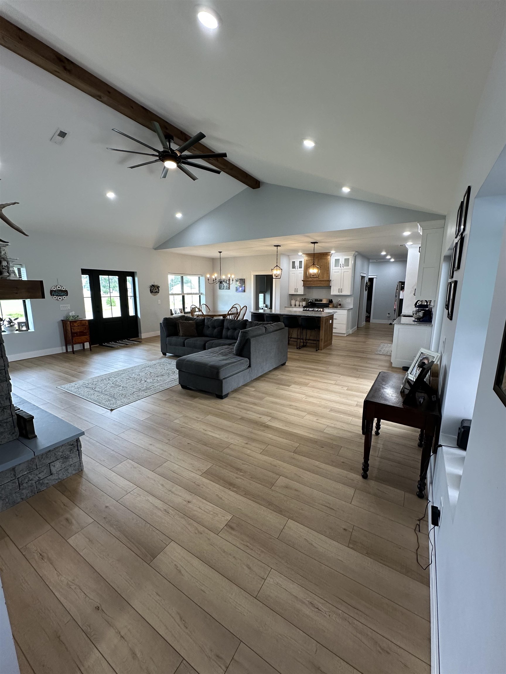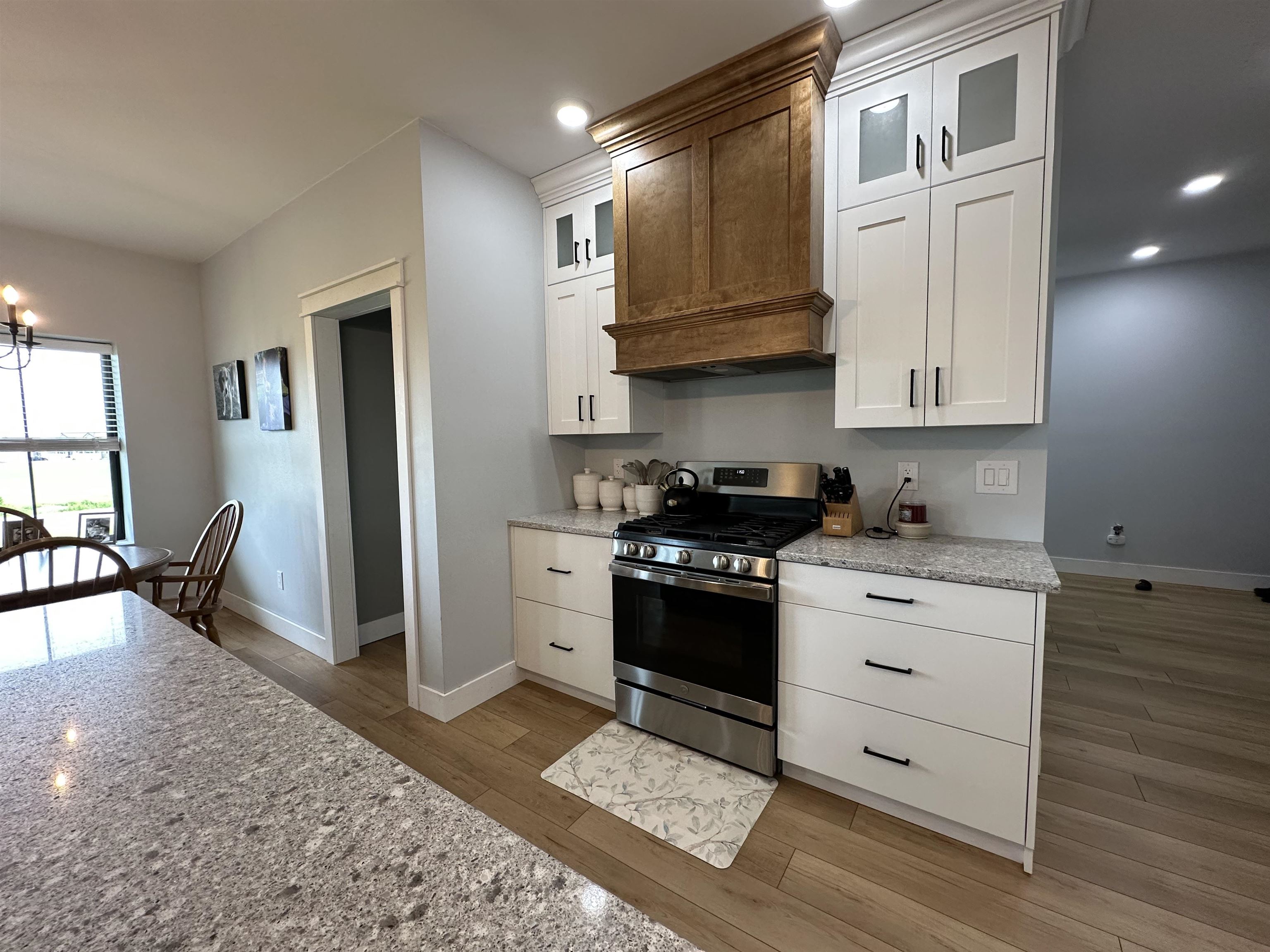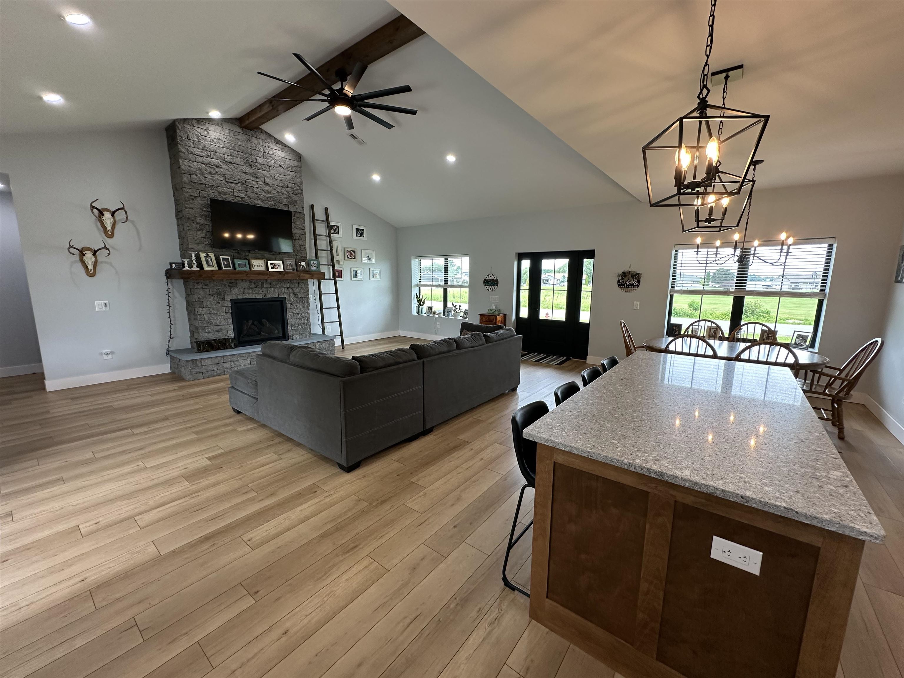 This one is a BEAUTY. Built in 2021, this ranch home will make you want to call it your own the second you walk in the door. The kitchen, dining area, and living room are all one gorgeous great room, with 13' cathedral ceilings in the living room and views of the St. Lawrence River. Also in the living room are a natural gas fireplace (see pictures), a wood-beam ceiling, and French doors leading out to the back patio. The kitchen features Quartz countertops, a center island measuring 3'6 x 7’6, and stainless steel appliances. The cabinets were custom-built by "From The Heart Cabinetry" in Potsdam and have soft-closing drawers. There are two pantry closets, one of which is a walk-in. The laundry room has the convenience of a sink, cabinets, and a closet. A lovely little half bath greets you upon entering the home, too. The primary bedroom provides views of the St. Lawrence River, and there is a primary bath with a soaker tub, a tiled shower, and a walk-in closet. The cabinets and vanities in here were also custom-built by "From The Heart Cabinetry". On the other side of the home are the three other bedrooms and the hall bathroom. The entire home has Luxury Vinyl Plank flooring and recessed lighting. It heats with fabulous in-floor radiant heat. The heating cost is minimal due to the ICF (Insulated Concrete Forms) construction of the home. It provides continuous insulation and is also an excellent sound barrier (and also keeps the bugs out!) The ceilings in the home are 9’. The doors throughout are all solid 6-panel pine. The windows and front and back doors are high quality Marvin brand. There is an attached 2-car, heated garage and a beautifully paved driveway with a turnaround. You will also love the soffit lighting around all of the eaves. A ranch like this one doesn’t come around often, so get your appointment scheduled quickly on this one before it’s too late!