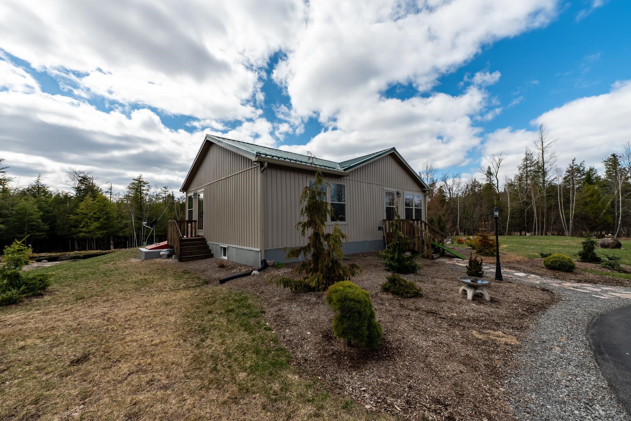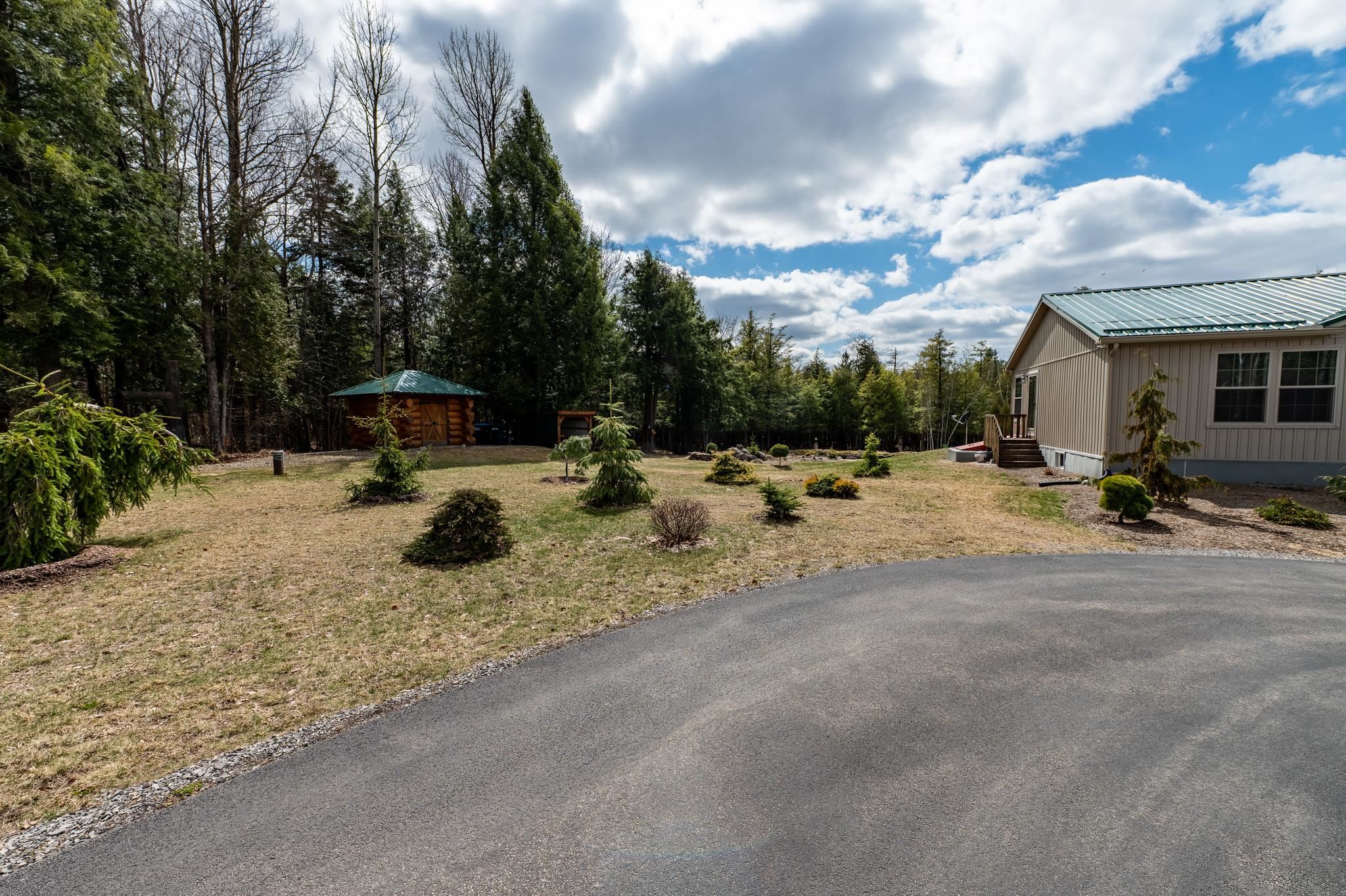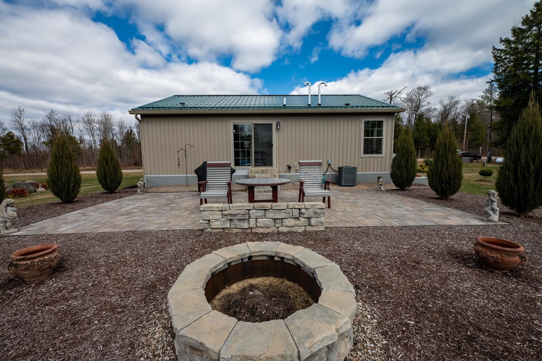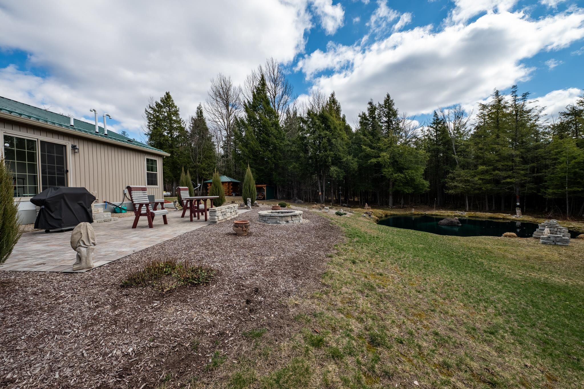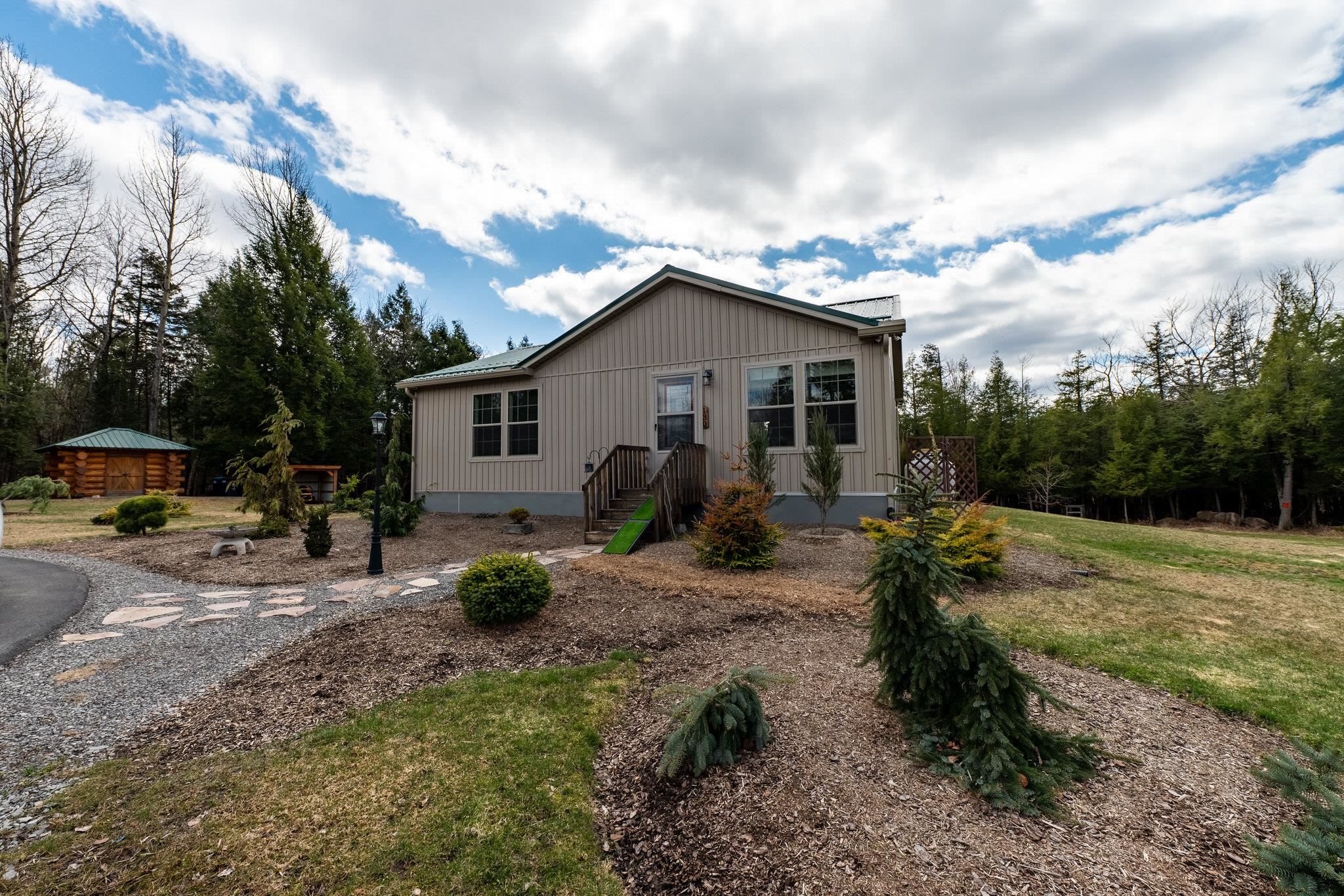 Welcome to this beautifully maintained 2-bedroom, 1-bath home situated on an expansive 30-acre parcel at 130 Fisk Rd in Nicholville, NY. Built in 2021, this property offers the perfect blend of modern efficiency, quality craftsmanship, and peaceful country living. From the moment you arrive, you’ll appreciate the home’s attractive board and batten vinyl siding, along with the convenience of a paved wrap-around driveway providing easy access and ample parking. The grounds have been thoughtfully landscaped with stunning conifers that enhance the natural beauty of the setting. Inside, no detail has been overlooked. The home features gorgeous Armstrong waterproof laminate flooring in the sought-after Prizm color, offering both durability and style throughout. The open and functional layout is complemented by high-quality systems designed for comfort and reliability. Enjoy year-round peace of mind with a Kohler whole-house generator that automatically activates during power outages. The high-efficiency heating and central air system includes an Amana 2.5-ton compressor and evaporator, with the central air component newly installed in 2025, ensuring modern comfort in every season. Adding to the property’s charm is a stunning 45-foot diameter artesian-fed pond, creating a serene focal point and a perfect place to relax and enjoy the surrounding nature. A beautiful hand-crafted log shed adds both character and practical storage, perfectly complementing the property’s rustic appeal. With 30 acres of land, this property offers endless possibilities—whether you’re seeking privacy, recreation, or future expansion. This is a rare opportunity to own a thoughtfully designed, move-in ready home with premium features in a peaceful setting.