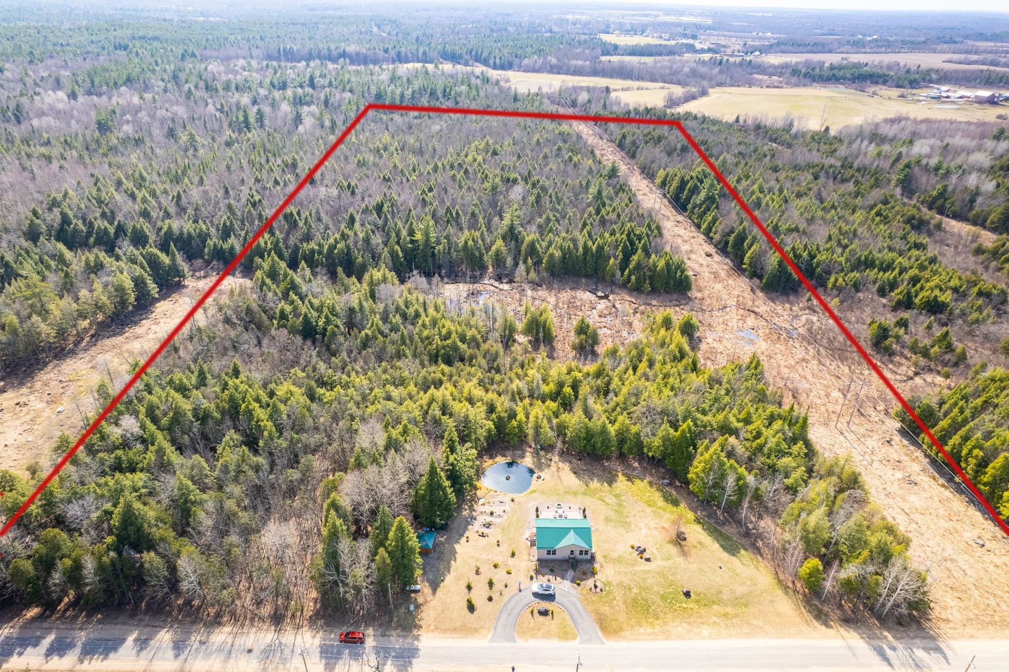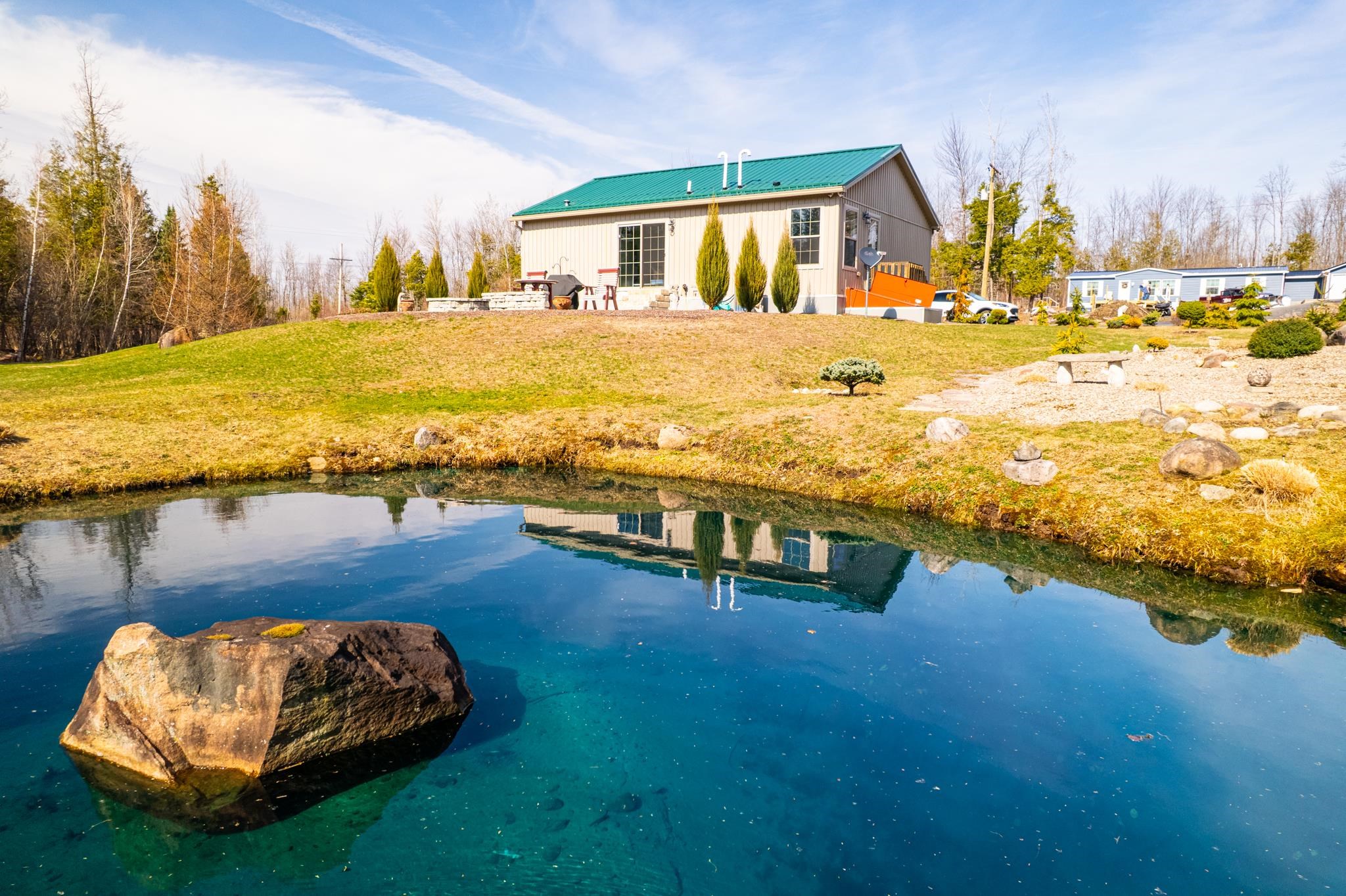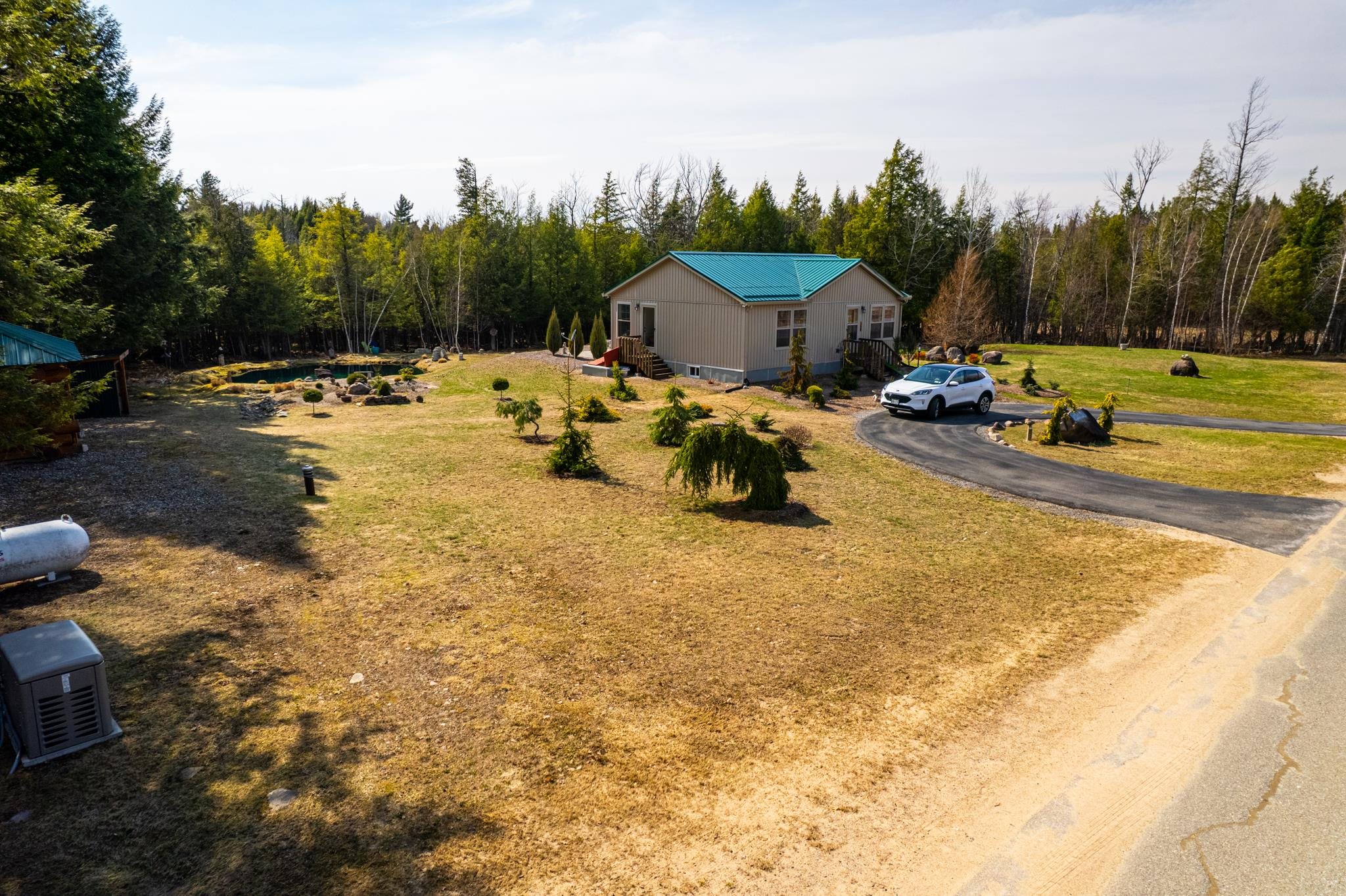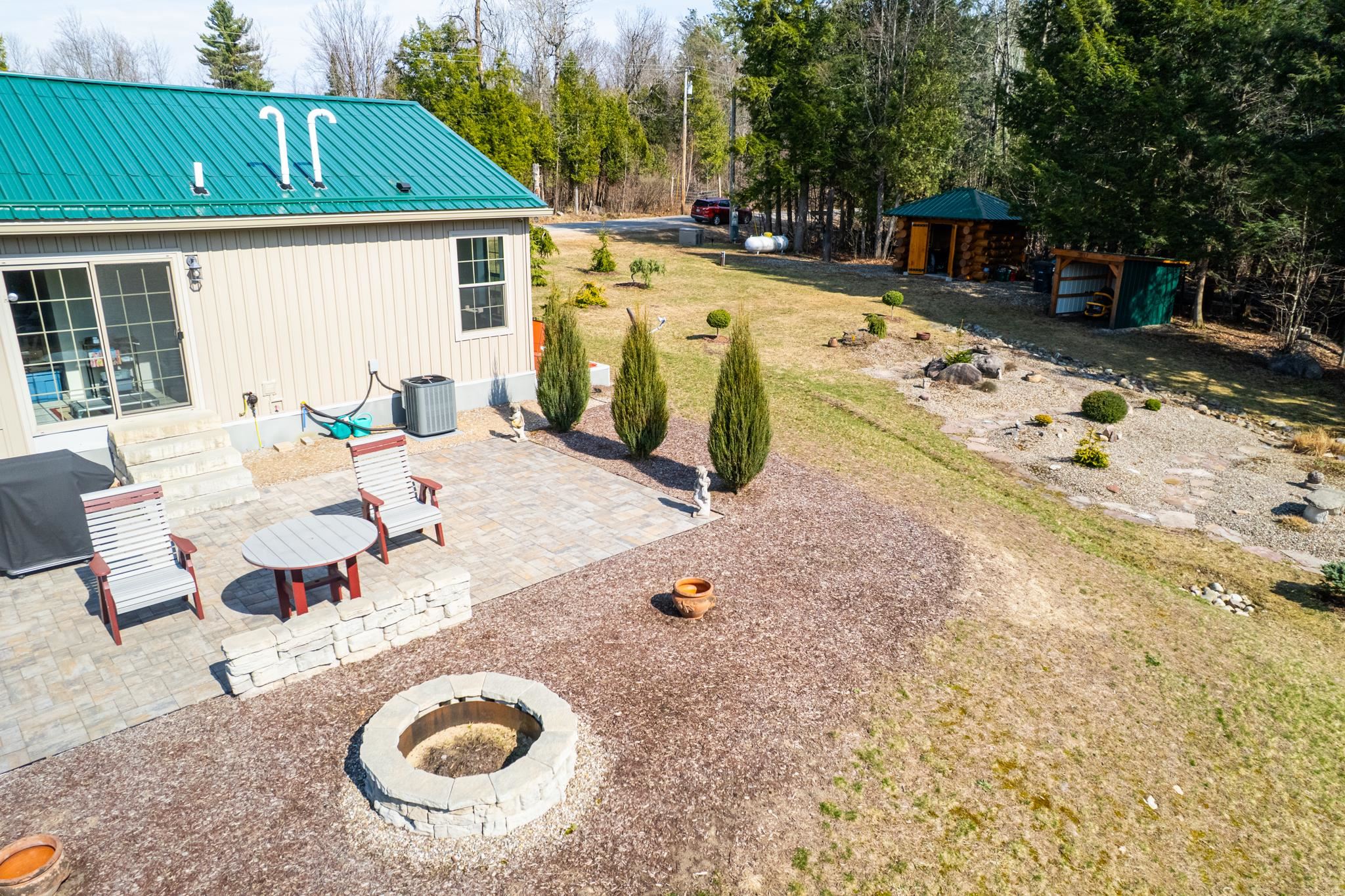 Welcome to this beautifully maintained 2-bedroom, 1-bath home situated on an expansive 30-acre parcel at 130 Fisk Rd in Nicholville, NY. Built in 2021, this property offers the perfect blend of modern efficiency, quality craftsmanship, and peaceful country living. From the moment you arrive, you’ll appreciate the home’s attractive board and batten vinyl siding, along with the convenience of a paved wrap-around driveway providing easy access and ample parking. The grounds have been thoughtfully landscaped with stunning conifers that enhance the natural beauty of the setting. Inside, no detail has been overlooked. The home features gorgeous Armstrong waterproof laminate flooring in the sought-after Prizm color, offering both durability and style throughout. The open and functional layout is complemented by high-quality systems designed for comfort and reliability. Enjoy year-round peace of mind with a Kohler whole-house generator that automatically activates during power outages. The high-efficiency heating and central air system includes an Amana 2.5-ton compressor and evaporator, with the central air component newly installed in 2025, ensuring modern comfort in every season. Adding to the property’s charm is a stunning 45-foot diameter artesian-fed pond, creating a serene focal point and a perfect place to relax and enjoy the surrounding nature. A beautiful hand-crafted log shed adds both character and practical storage, perfectly complementing the property’s rustic appeal. With 30 acres of land, this property offers endless possibilities—whether you’re seeking privacy, recreation, or future expansion. This is a rare opportunity to own a thoughtfully designed, move-in ready home with premium features in a peaceful setting.