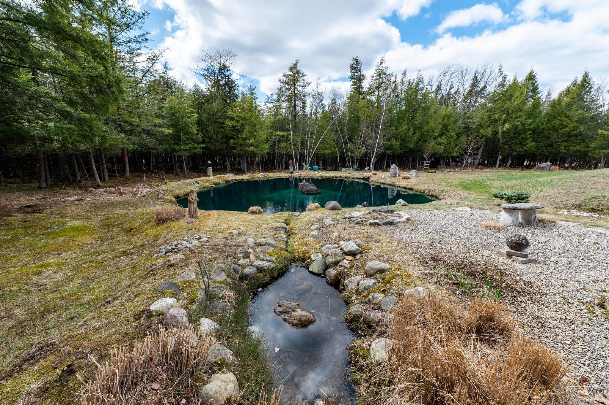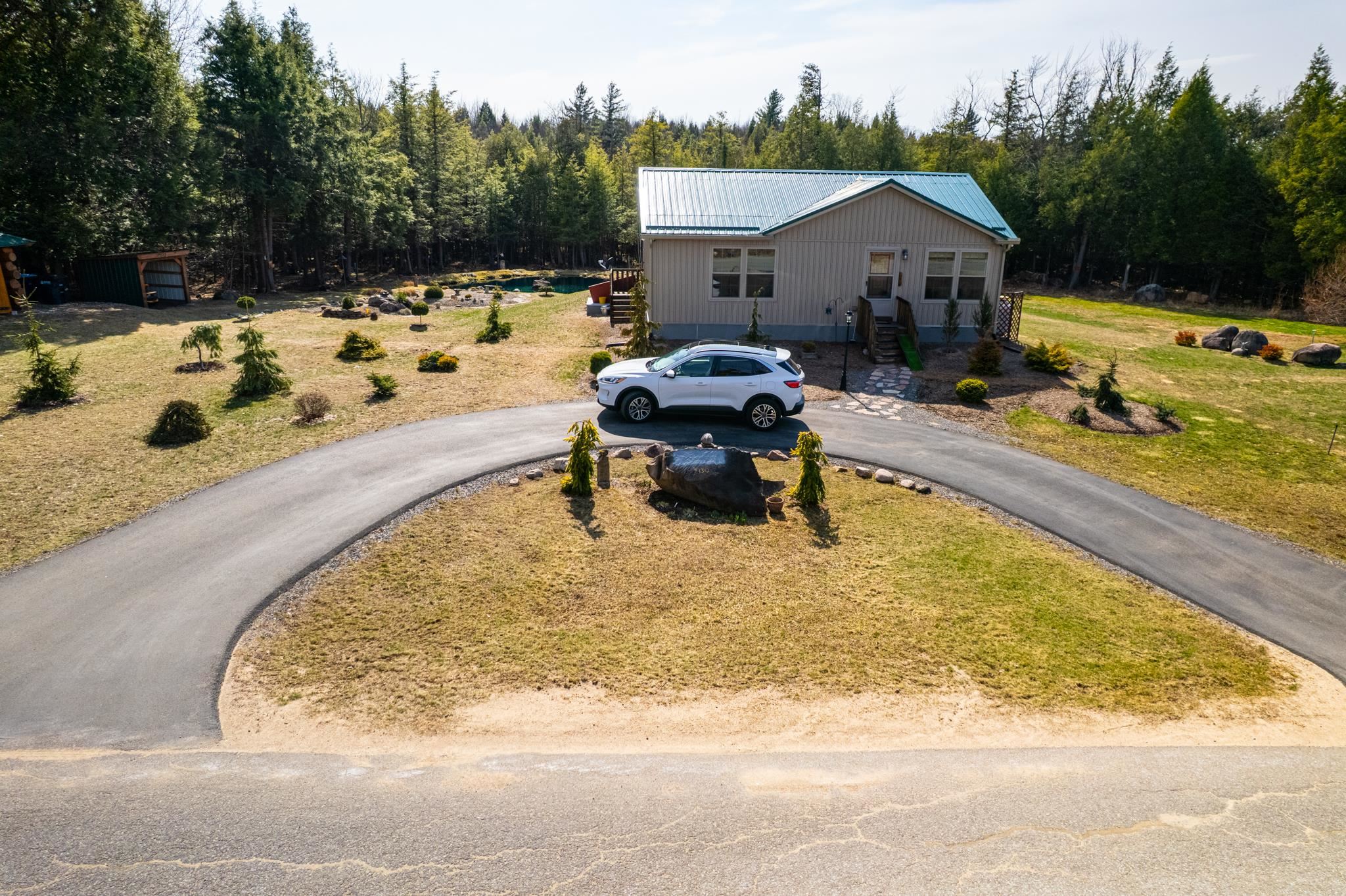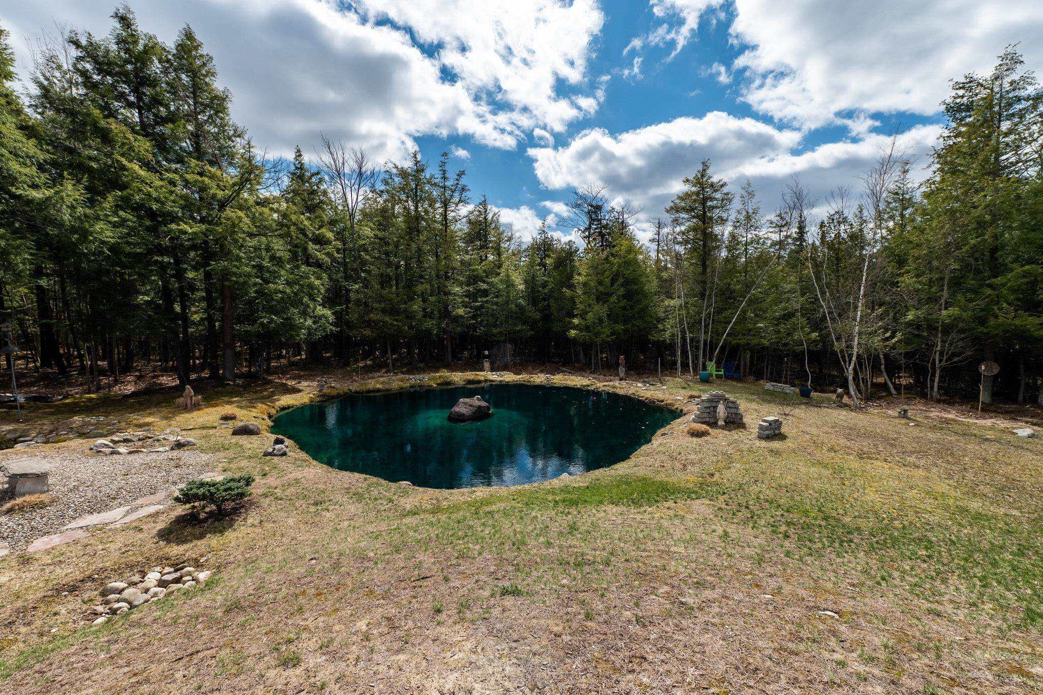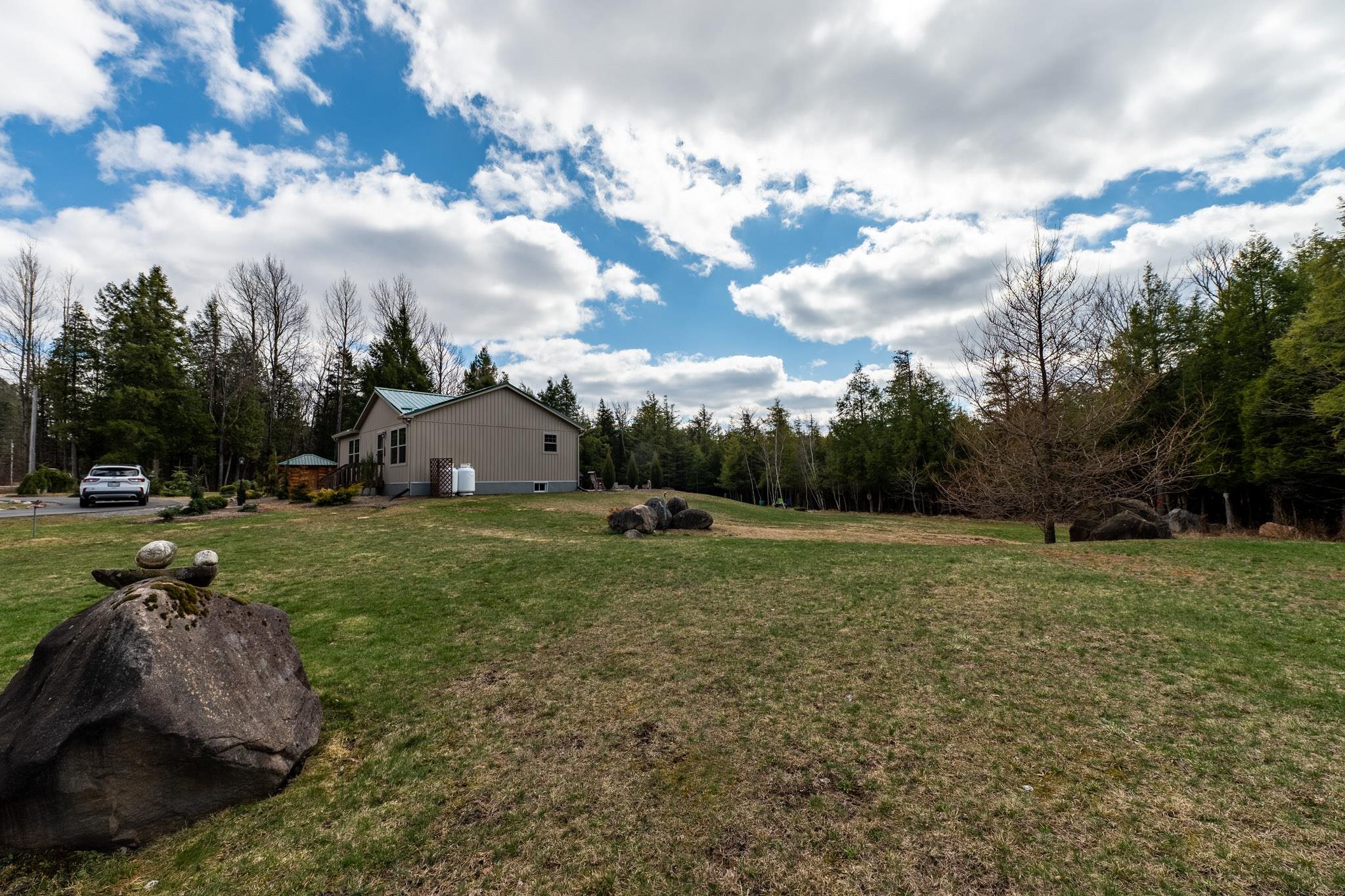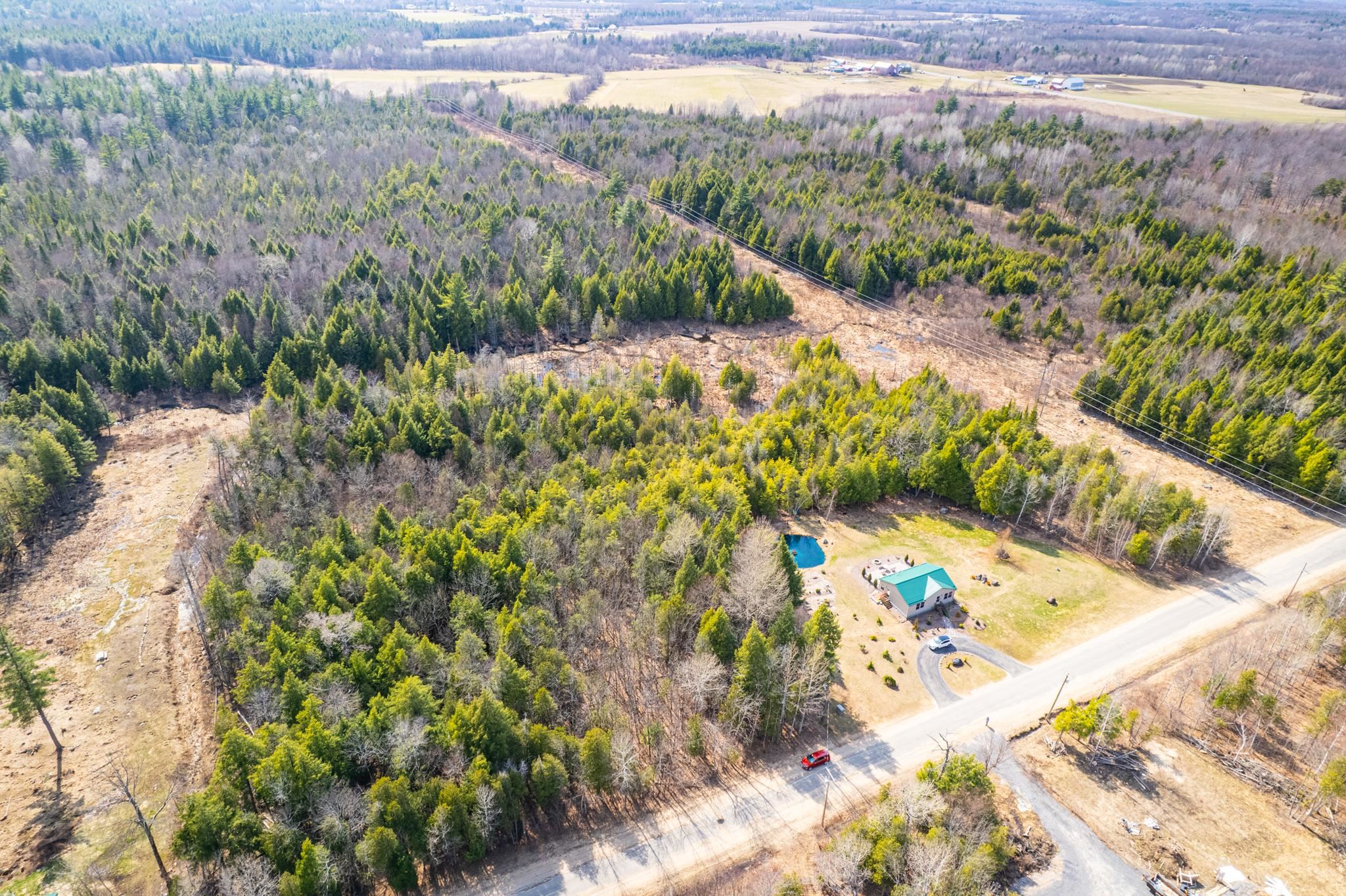 Welcome to this beautifully maintained 2-bedroom, 1-bath home situated on an expansive 30-acre parcel at 130 Fisk Rd in Nicholville, NY. Built in 2021, this property offers the perfect blend of modern efficiency, quality craftsmanship, and peaceful country living. From the moment you arrive, you’ll appreciate the home’s attractive board and batten vinyl siding, along with the convenience of a paved wrap-around driveway providing easy access and ample parking. The grounds have been thoughtfully landscaped with stunning conifers that enhance the natural beauty of the setting. Inside, no detail has been overlooked. The home features gorgeous Armstrong waterproof laminate flooring in the sought-after Prizm color, offering both durability and style throughout. The open and functional layout is complemented by high-quality systems designed for comfort and reliability. Enjoy year-round peace of mind with a Kohler whole-house generator that automatically activates during power outages. The high-efficiency heating and central air system includes an Amana 2.5-ton compressor and evaporator, with the central air component newly installed in 2025, ensuring modern comfort in every season. Adding to the property’s charm is a stunning 45-foot diameter artesian-fed pond, creating a serene focal point and a perfect place to relax and enjoy the surrounding nature. A beautiful hand-crafted log shed adds both character and practical storage, perfectly complementing the property’s rustic appeal. With 30 acres of land, this property offers endless possibilities—whether you’re seeking privacy, recreation, or future expansion. This is a rare opportunity to own a thoughtfully designed, move-in ready home with premium features in a peaceful setting.