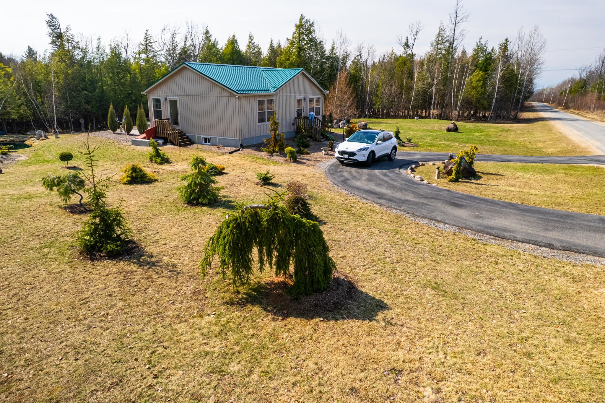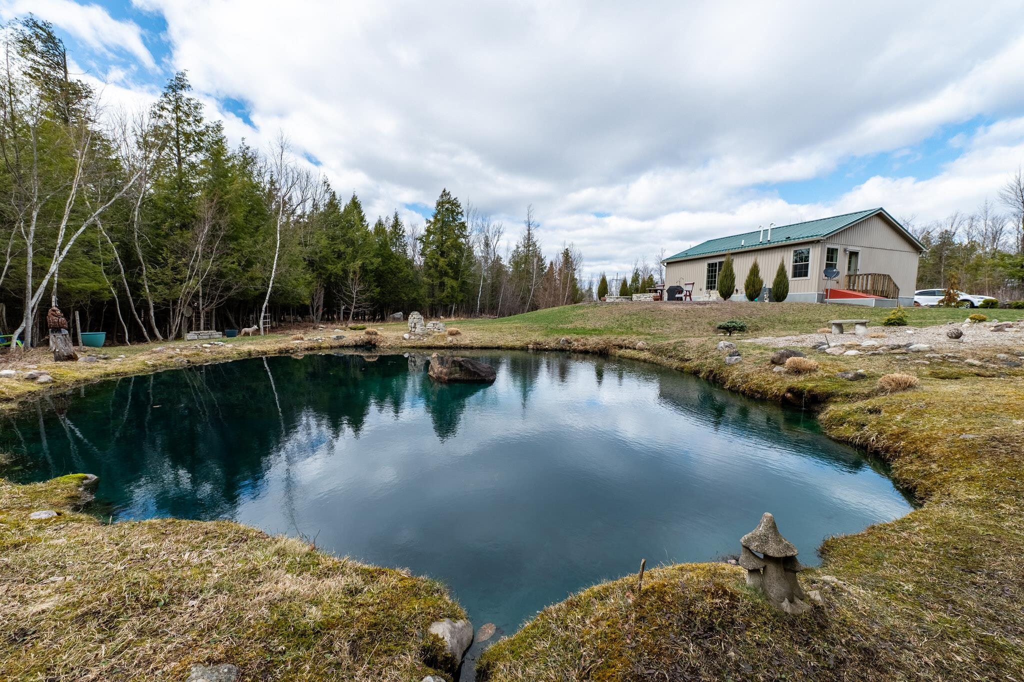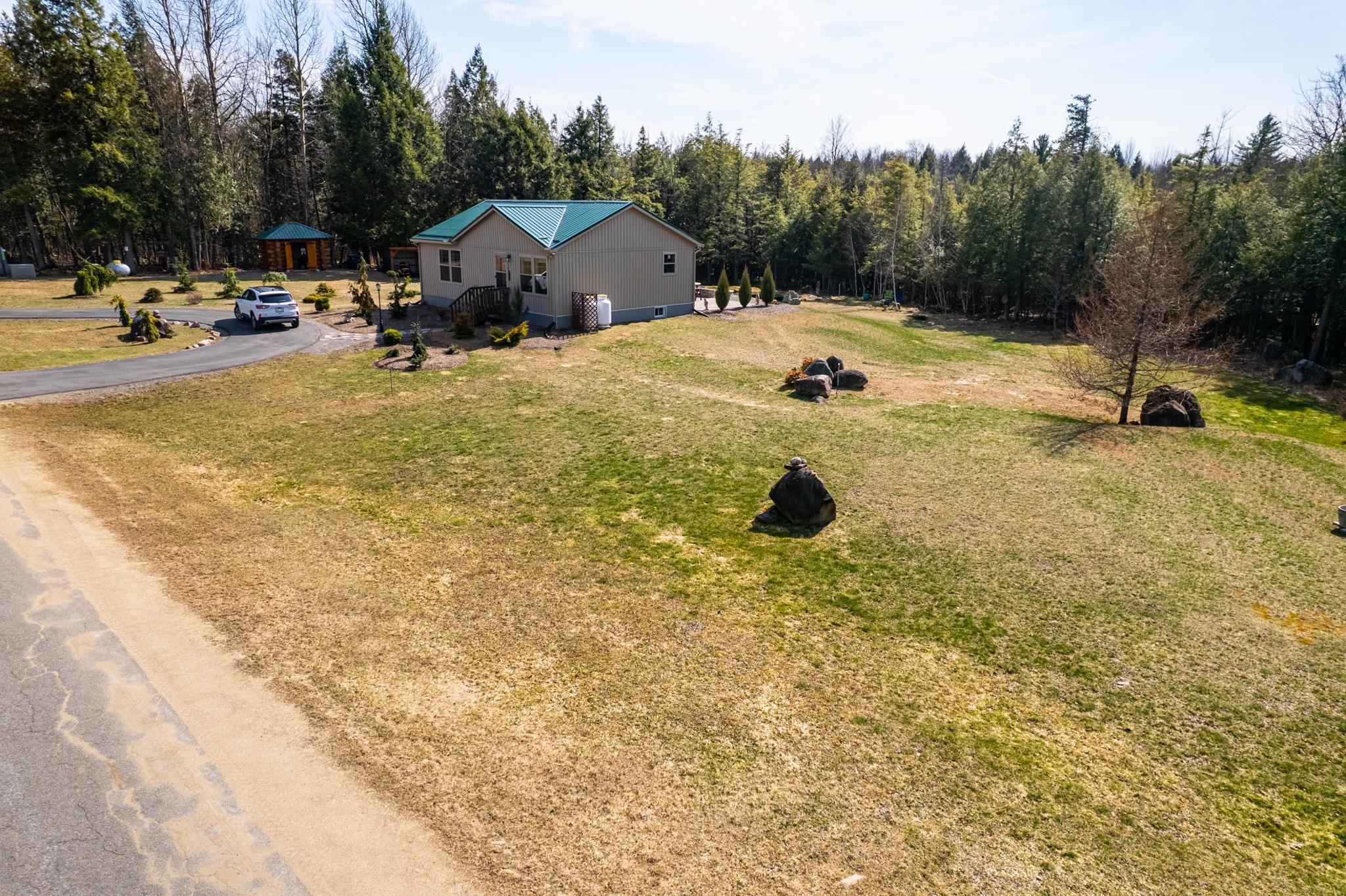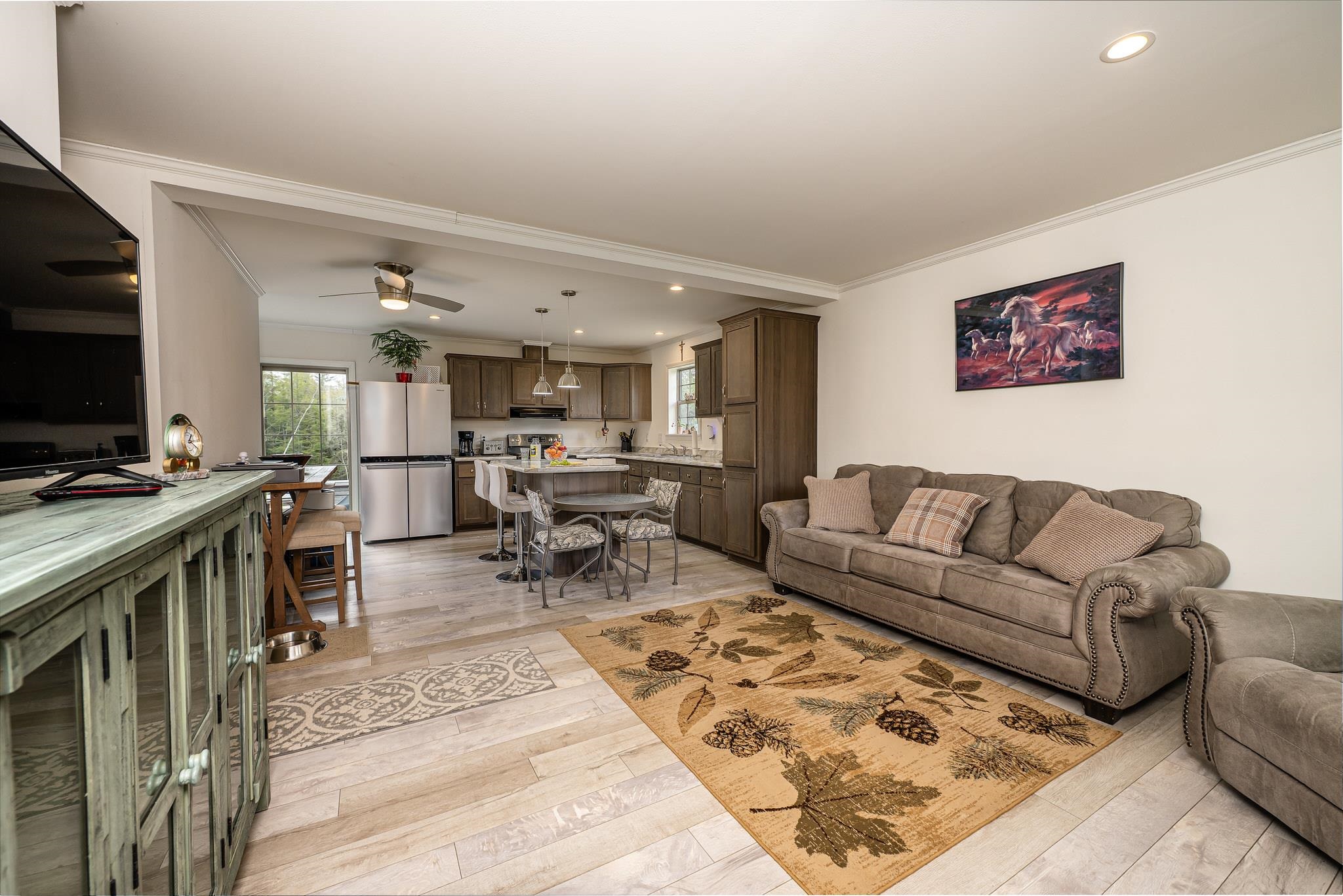 Welcome to this beautifully maintained 2-bedroom, 1-bath home situated on an expansive 30-acre parcel at 130 Fisk Rd in Nicholville, NY. Built in 2021, this property offers the perfect blend of modern efficiency, quality craftsmanship, and peaceful country living. From the moment you arrive, you’ll appreciate the home’s attractive board and batten vinyl siding, along with the convenience of a paved wrap-around driveway providing easy access and ample parking. The grounds have been thoughtfully landscaped with stunning conifers that enhance the natural beauty of the setting. Inside, no detail has been overlooked. The home features gorgeous Armstrong waterproof laminate flooring in the sought-after Prizm color, offering both durability and style throughout. The open and functional layout is complemented by high-quality systems designed for comfort and reliability. Enjoy year-round peace of mind with a Kohler whole-house generator that automatically activates during power outages. The high-efficiency heating and central air system includes an Amana 2.5-ton compressor and evaporator, with the central air component newly installed in 2025, ensuring modern comfort in every season. Adding to the property’s charm is a stunning 45-foot diameter artesian-fed pond, creating a serene focal point and a perfect place to relax and enjoy the surrounding nature. A beautiful hand-crafted log shed adds both character and practical storage, perfectly complementing the property’s rustic appeal. With 30 acres of land, this property offers endless possibilities—whether you’re seeking privacy, recreation, or future expansion. This is a rare opportunity to own a thoughtfully designed, move-in ready home with premium features in a peaceful setting.