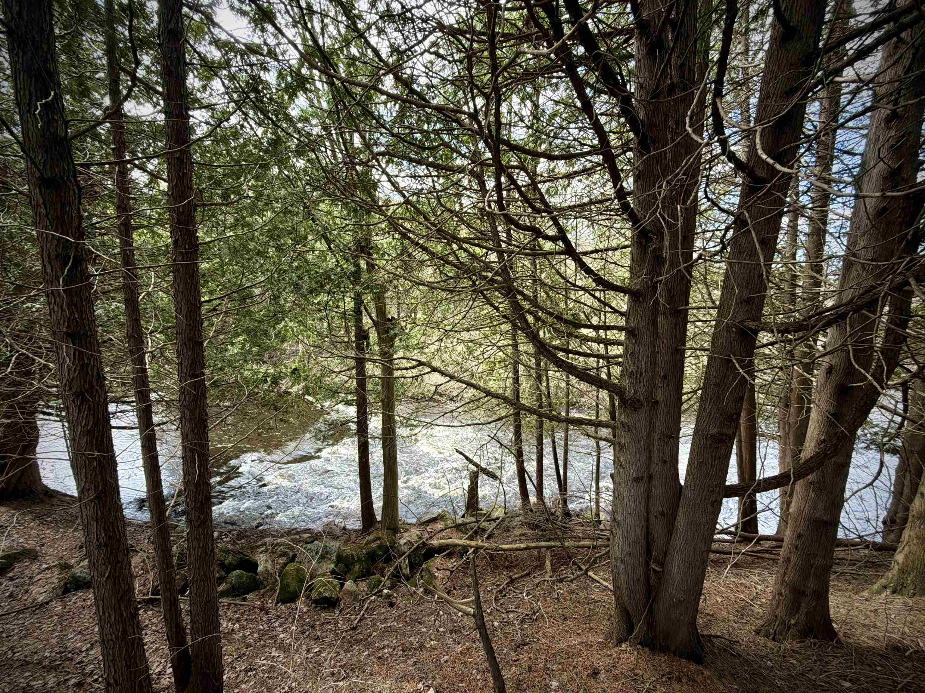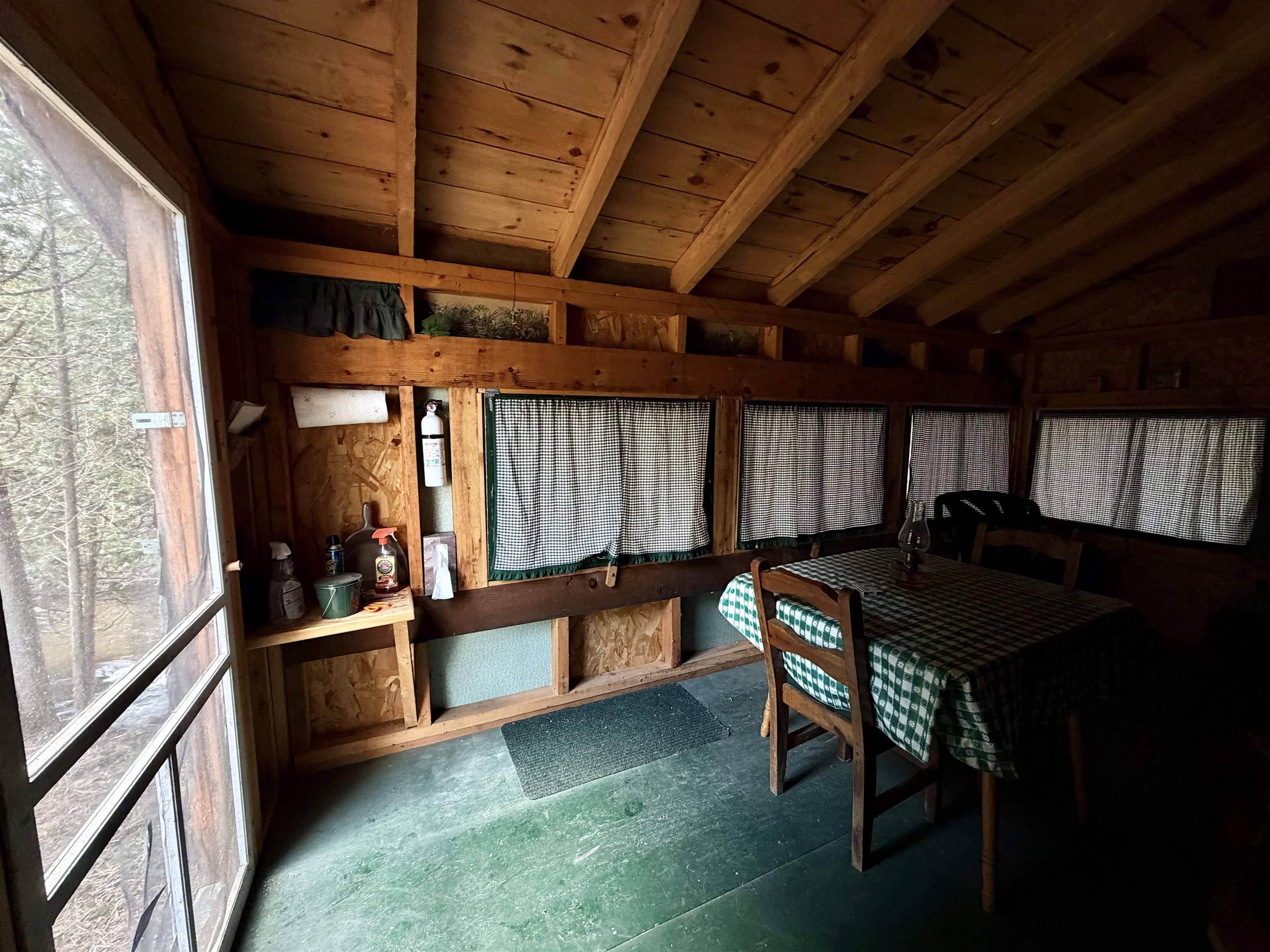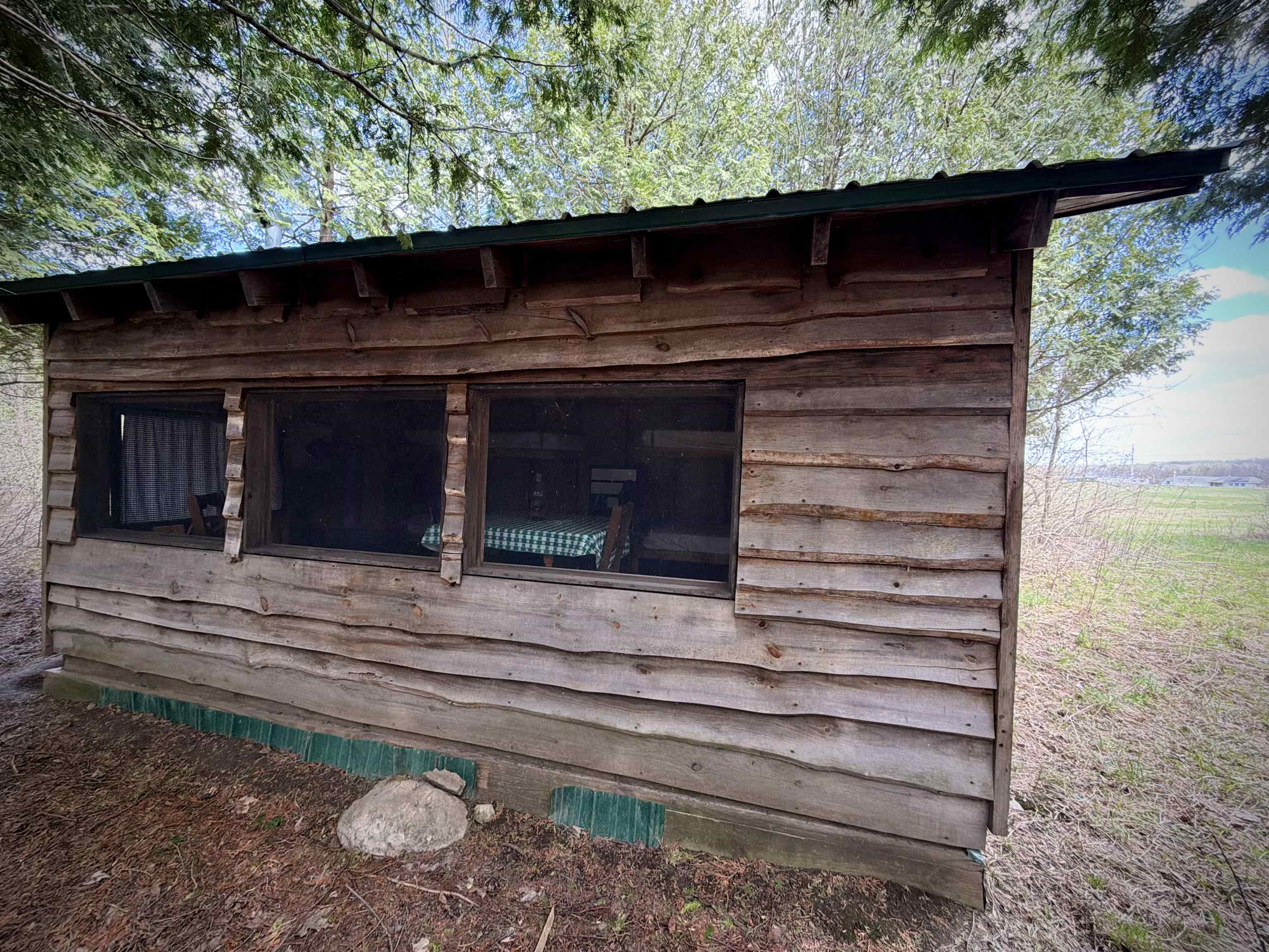 A charming meadow from the road, but so much more — just follow the sound of rushing water. On the far side of the meadow you’ll find a short path leading to a primitive cottage on a fragrant, cedar-lined ridge above a small waterfall. The cottage itself is only one room, yet it efficiently houses four single beds, a table and chairs, with room to spare. Open those windows and enjoy the soundscape without fear of mosquitoes. A second trail leads you down to a lower cleared area, which has tons of potential! Local lore has it that, as there is no dam between this property and the ocean, a well-timed fishing trip could land a lucky angler a salmon. This property is wonderful as is, but could also serve as a great spot to build your forever home.